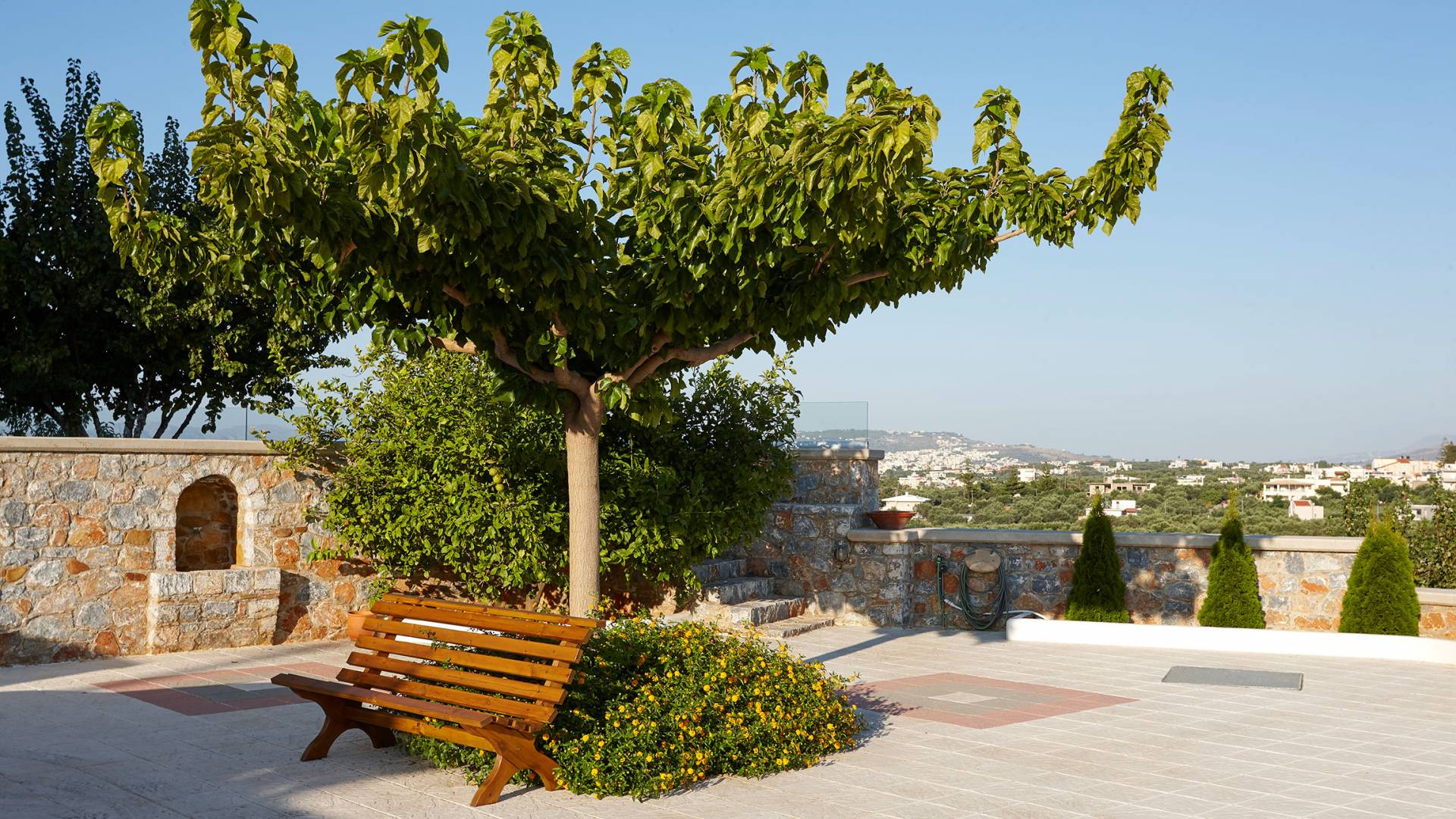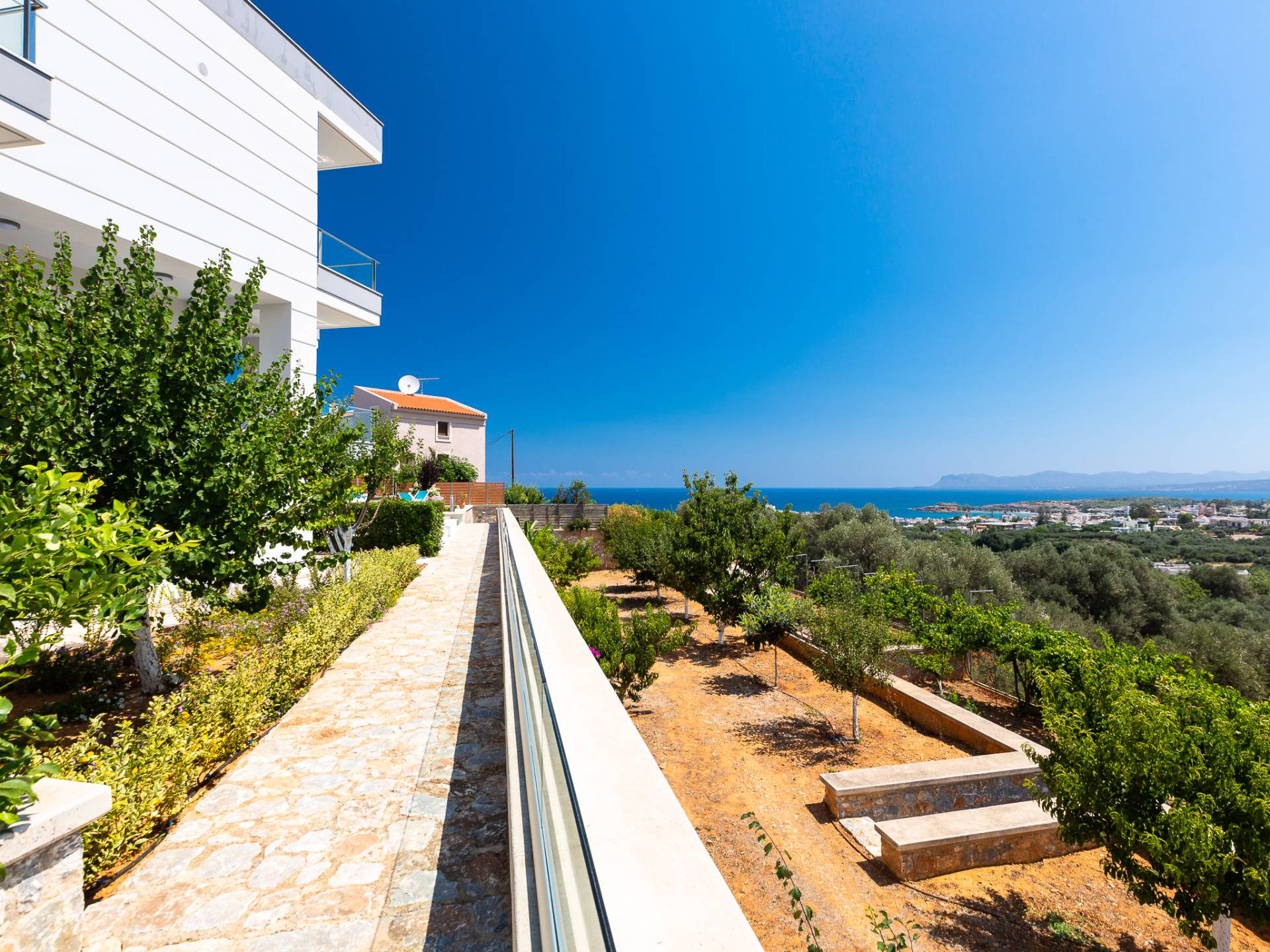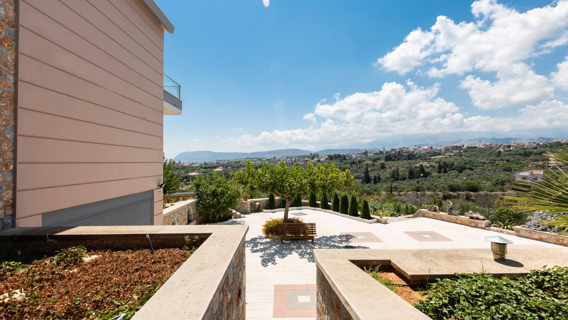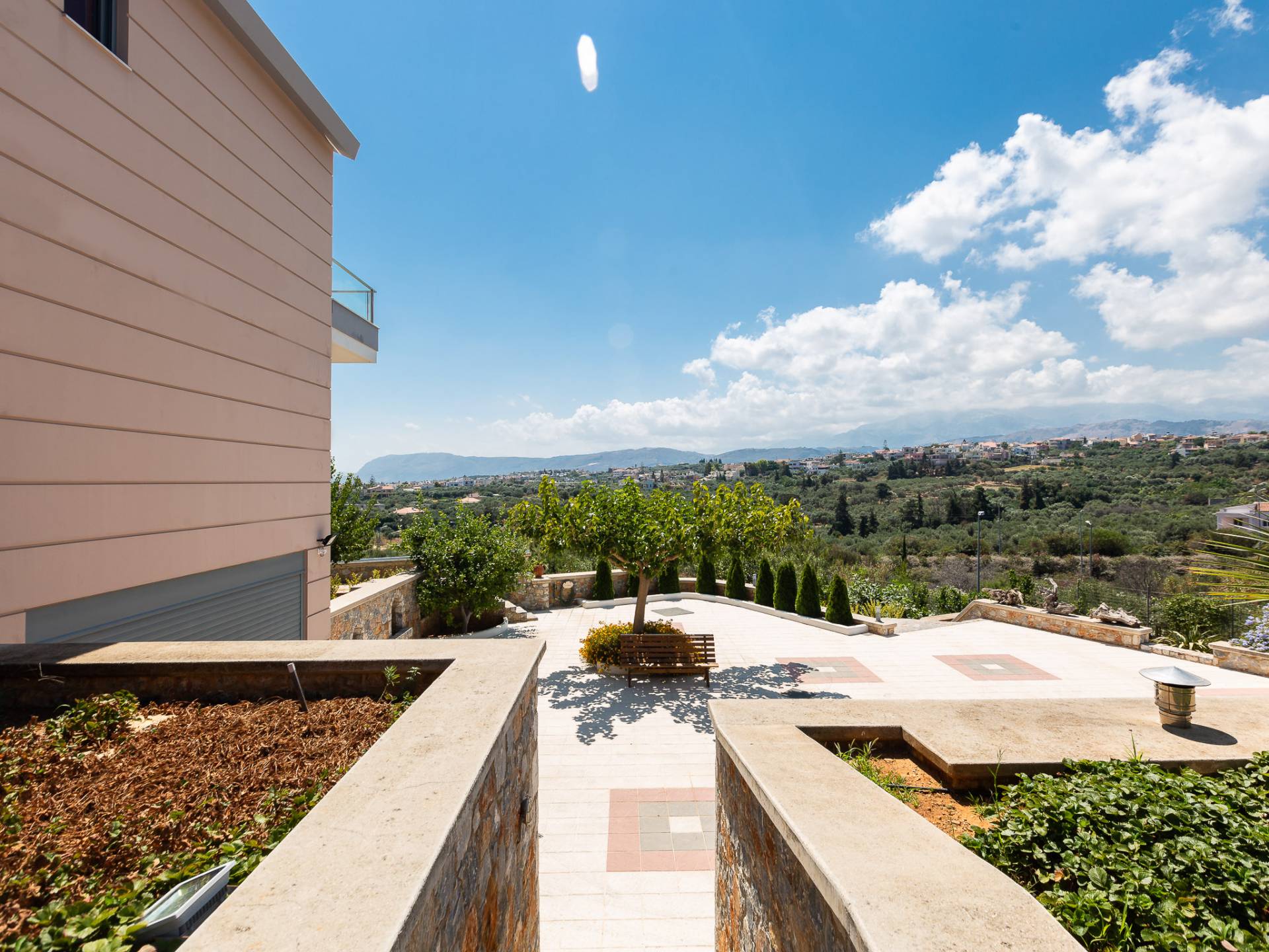Le bleu de la mer Égée et le paysage montagneux sauvage de la Crète, le tout dans une image enchanteresse qui pourrait plaire à toutes sortes de goûts. Vous serez charmé par les magnifiques couleurs qui inondent le ciel et plus tard même par le lever de lune rougeoyant illuminant la mer en contrebas. L'extérieur est dominé par de riches jardins de pelouse où des arbres fruitiers locaux, tels que des orangers, des mandariniers, des pomelos, des citronniers, un arbre joyeux, des grenadiers, des pommiers, des raisins et même des fraises et des bananes prêts à les manger arbre, à condition de venir à la bonne saison !