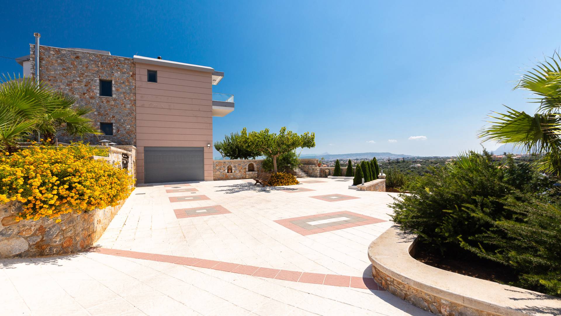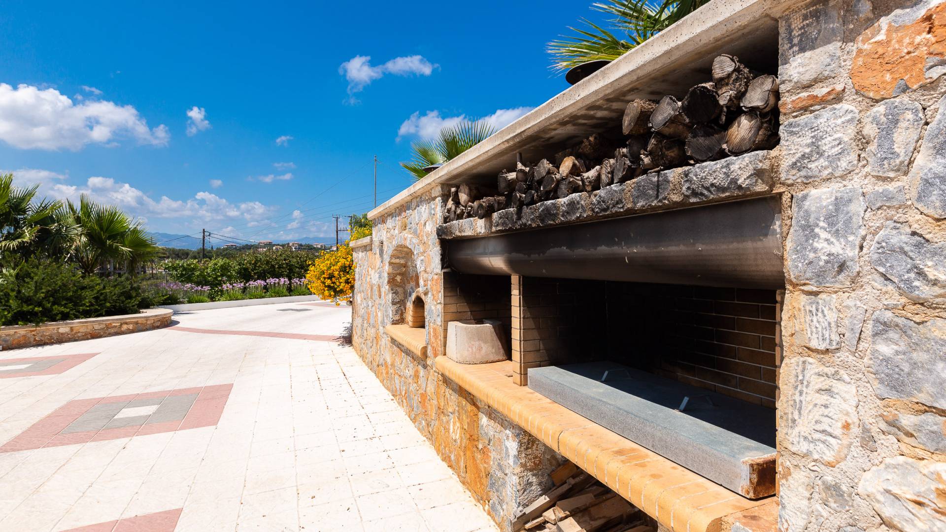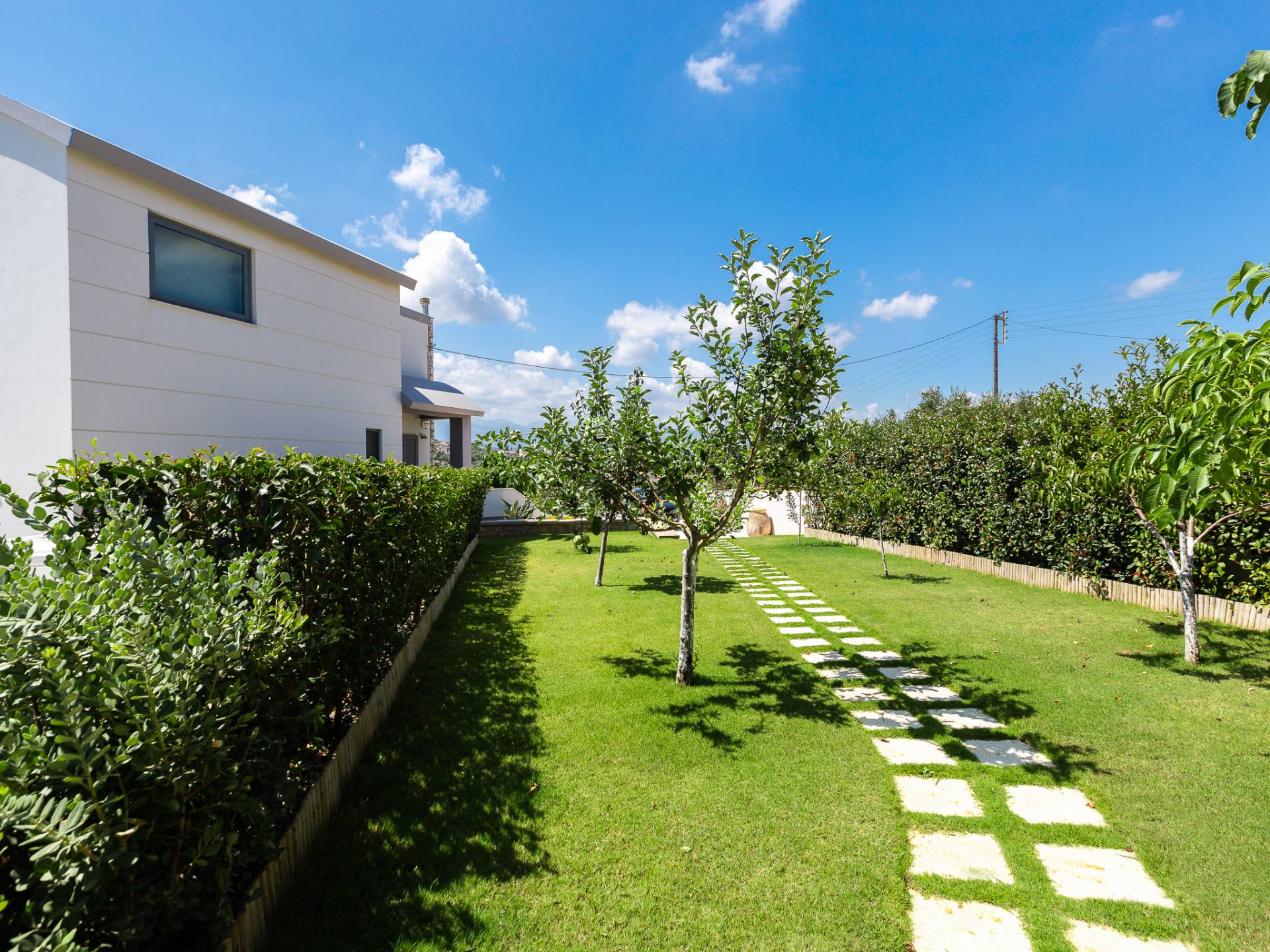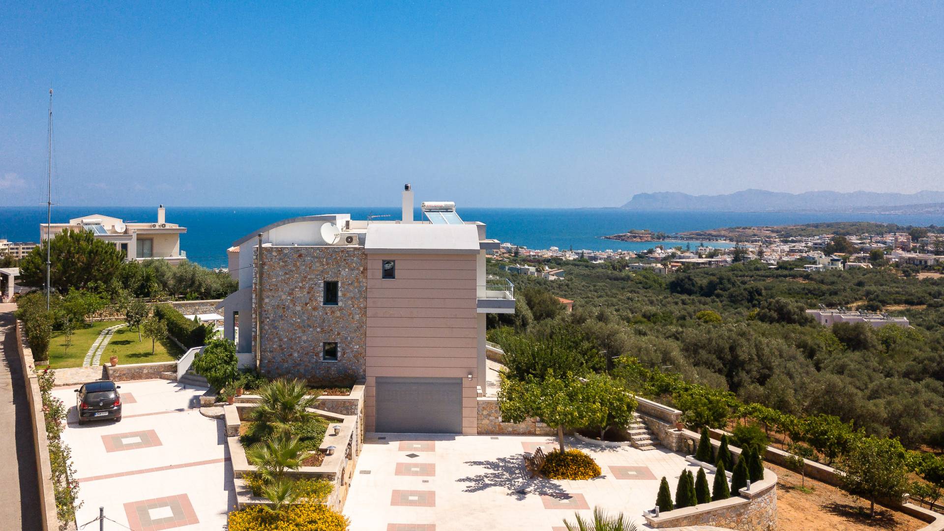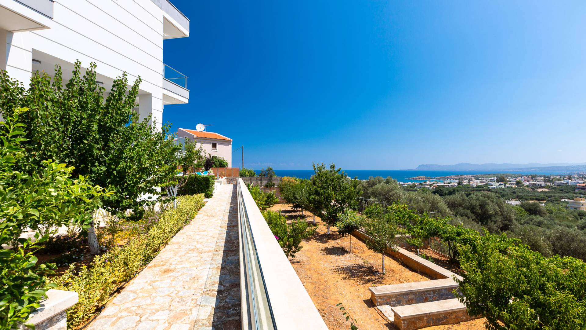 Le bleu de la mer Égée et le paysage montagneux sauvage de la Crète, le tout dans une image enchanteresse qui pourrait plaire à toutes sortes de goûts. Vous serez charmé par les magnifiques couleurs qui inondent le ciel et plus tard même par le lever de lune rougeoyant illuminant la mer en contrebas. L'extérieur est dominé par de riches jardins de pelouse où des arbres fruitiers locaux, tels que des orangers, des mandariniers, des pomelos, des citronniers, un arbre joyeux, des grenadiers, des pommiers, des raisins et même des fraises et des bananes prêts à les manger arbre, à condition de venir à la bonne saison !