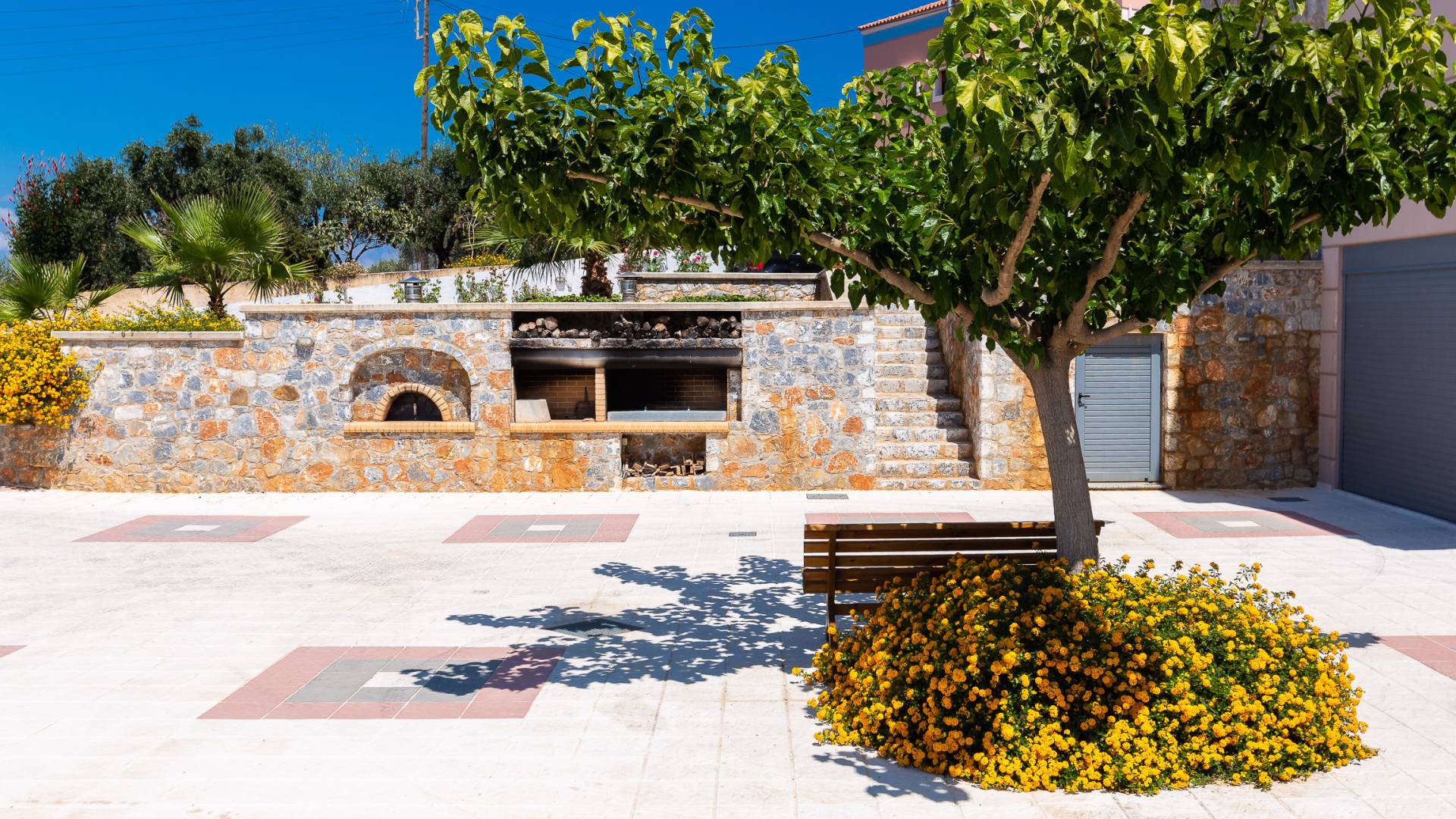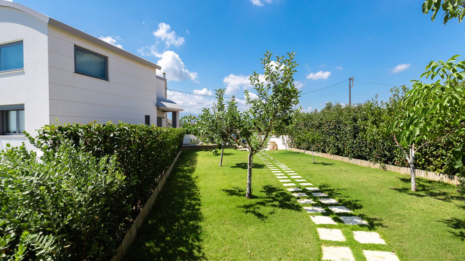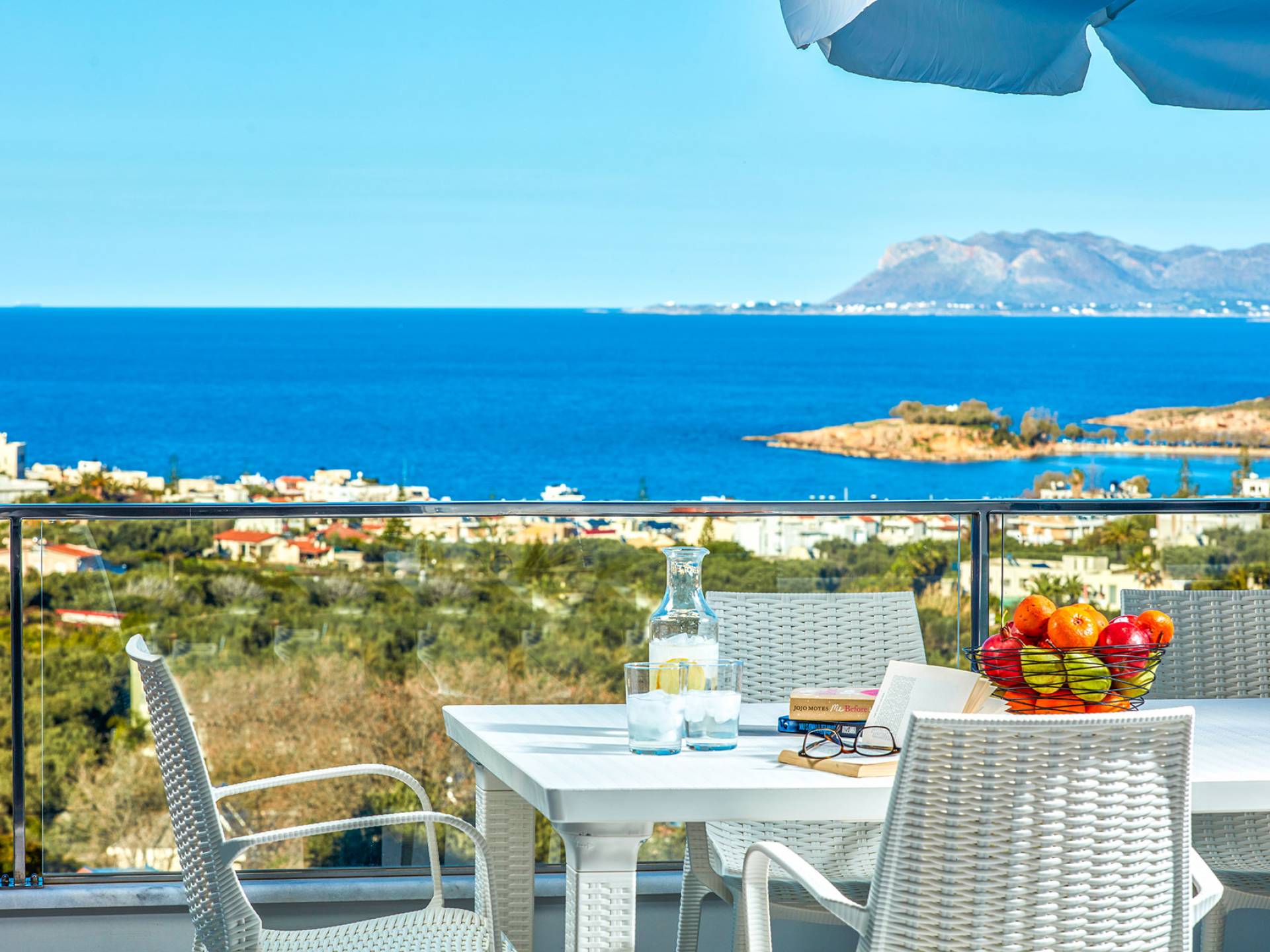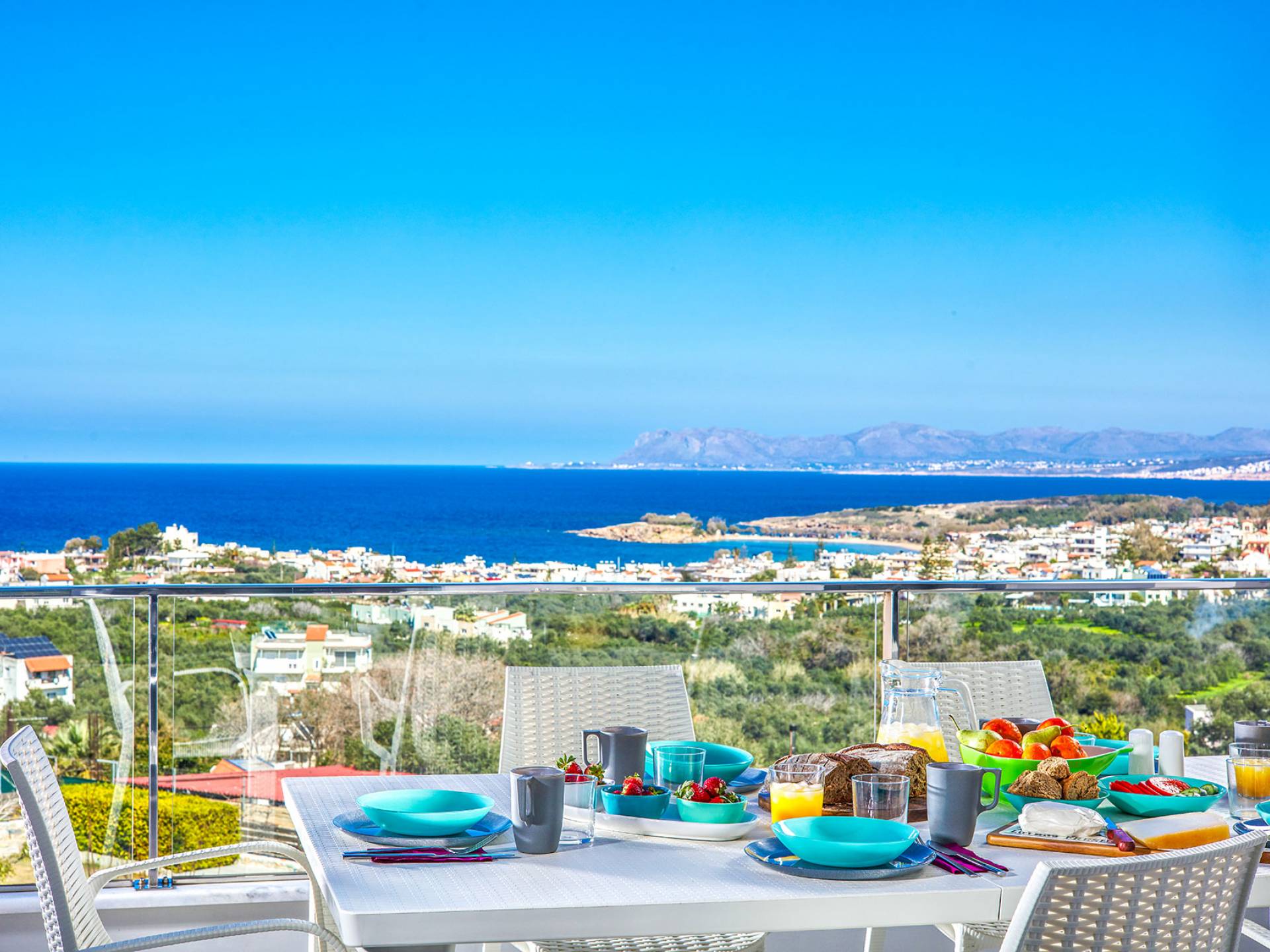 Le bleu de la mer Égée et le paysage montagneux sauvage de la Crète, le tout dans une image enchanteresse qui pourrait plaire à toutes sortes de goûts. Vous serez charmé par les magnifiques couleurs qui inondent le ciel et plus tard même par le lever de lune rougeoyant illuminant la mer en contrebas. L'extérieur est dominé par de riches jardins de pelouse où des arbres fruitiers locaux, tels que des orangers, des mandariniers, des pomelos, des citronniers, un arbre joyeux, des grenadiers, des pommiers, des raisins et même des fraises et des bananes prêts à les manger arbre, à condition de venir à la bonne saison !