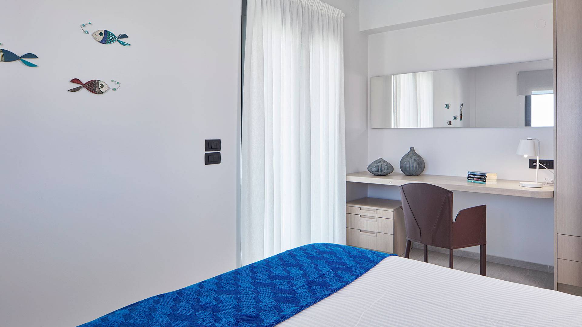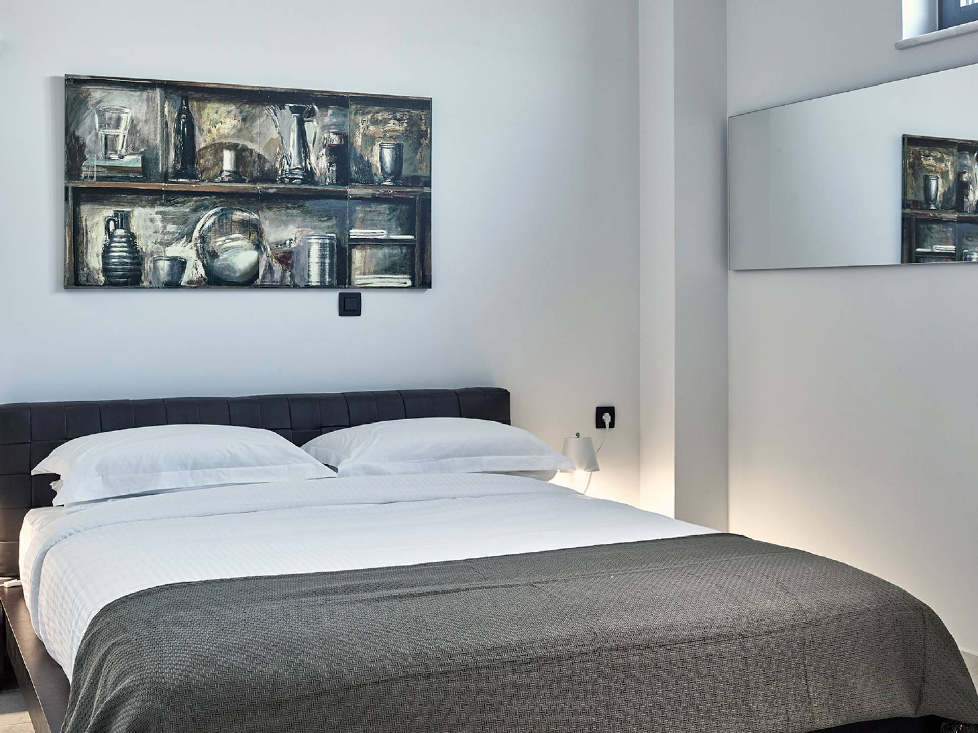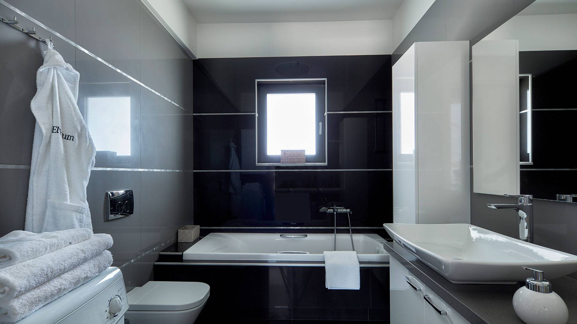 Au rez-de-chaussée, il y a une chambre avec un lit double et une salle de bain. L'Elysium Villa Chania abrite également une salle de sport. Au niveau de la piscine, il y a une chambre principale avec un lit double et une salle de bain attenante et une autre chambre double. Il y a aussi une chambre lits jumeaux avec 2 lits simples et une grande salle de bains commune avec baignoire. Au premier niveau, il y a une cuisine entièrement équipée, une salle à manger, un grand salon et une autre chambre avec un lit double et une salle de bain.