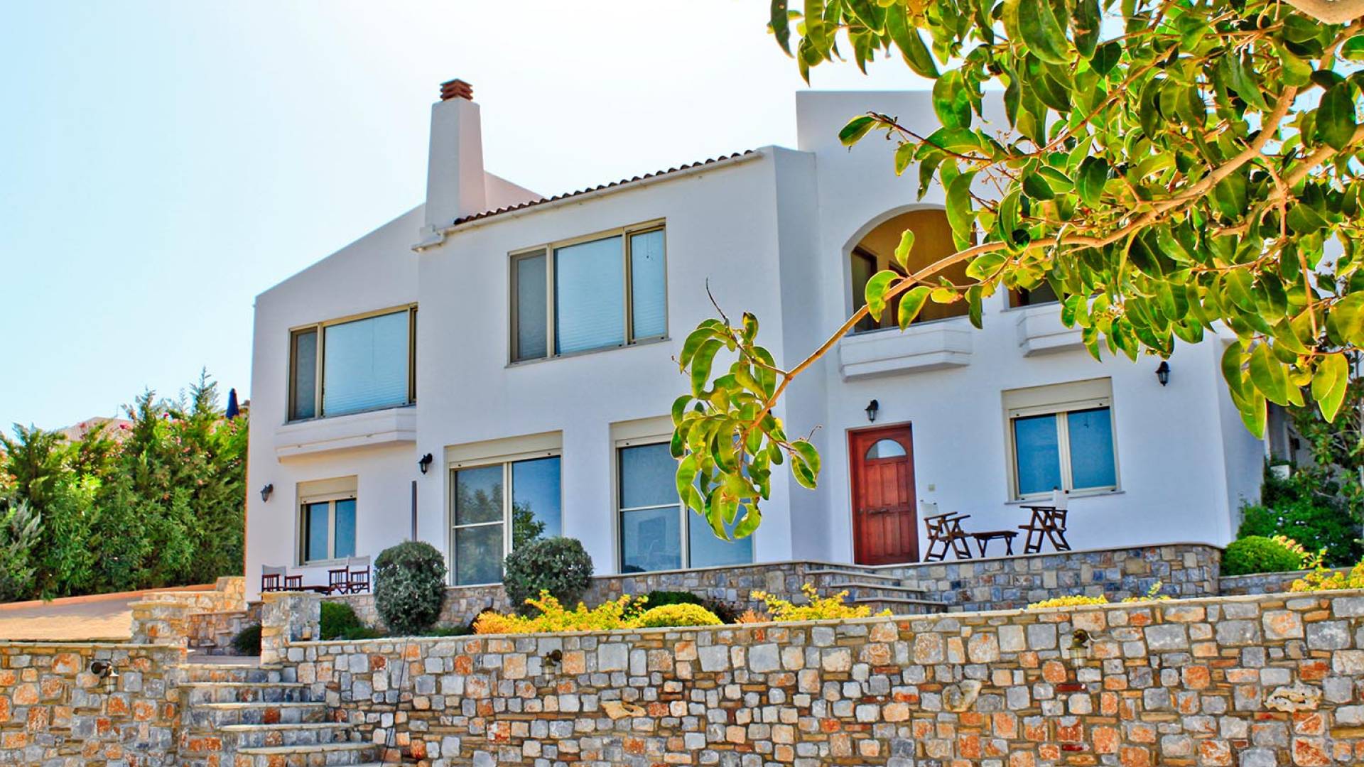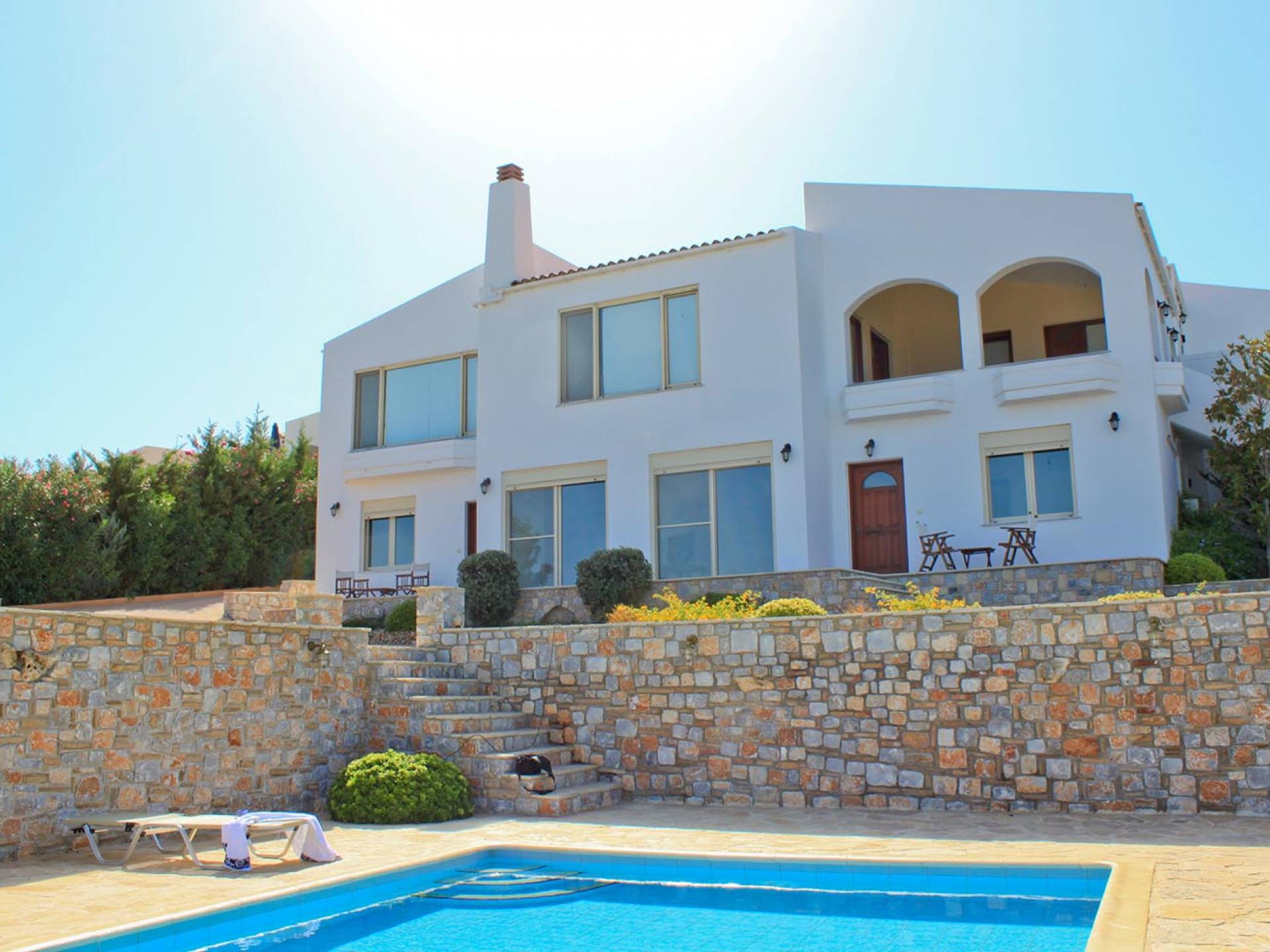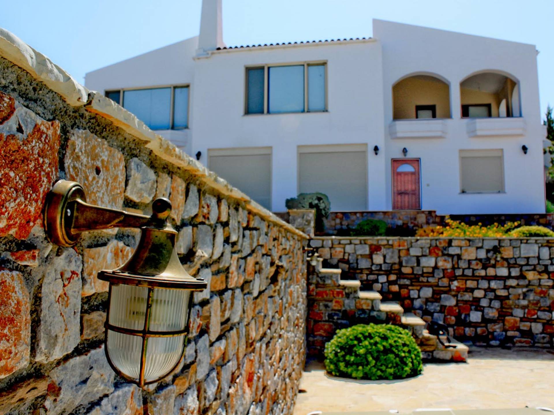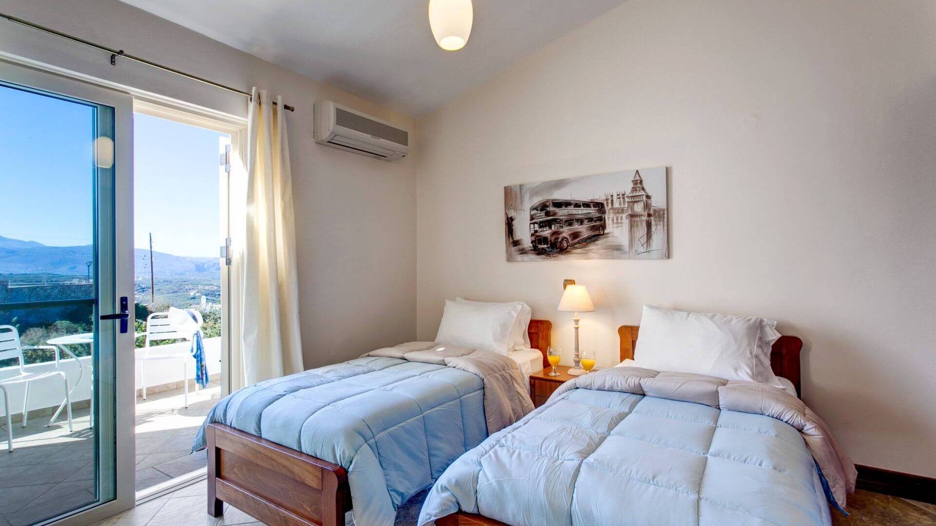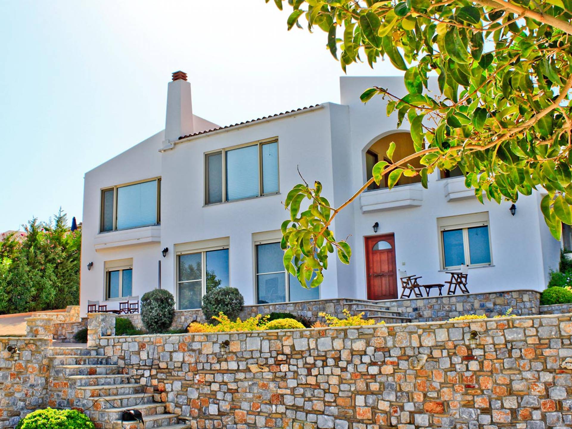 Disposition d'Eros Villa Chania : La Villa dispose de cinq chambres - trois avec lits doubles et deux avec deux lits simples - quatre salles de bains, une cuisine entièrement équipée, un salon avec vue sur la mer et une grande piscine. Au rez-de-chaussée, il y a un appartement indépendant avec deux chambres et une salle de bain, une cuisine entièrement équipée et un salon avec une télévision. Au premier étage, il y a trois autres chambres, trois salles de bains, une deuxième cuisine entièrement équipée, une salle à manger et un grand salon. A ce niveau spécifique et à l'intérieur du salon, il y a deux canapés-lits pouvant accueillir jusqu'à trois personnes supplémentaires. Votre séjour à Eros Villa Chania sera inoubliable !