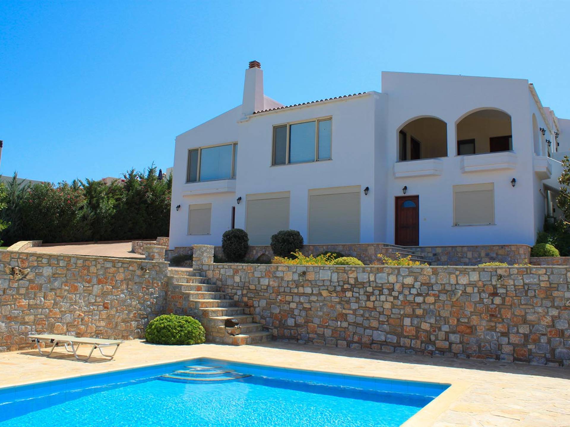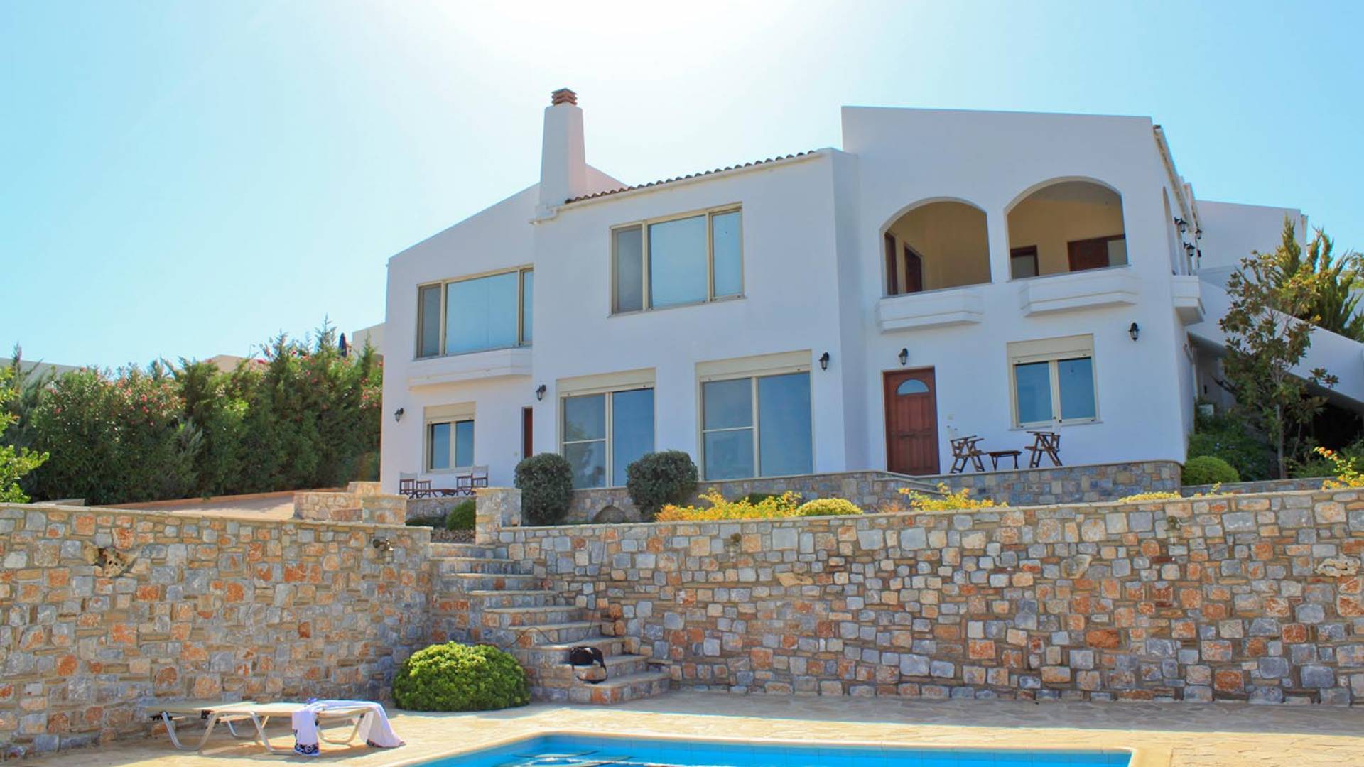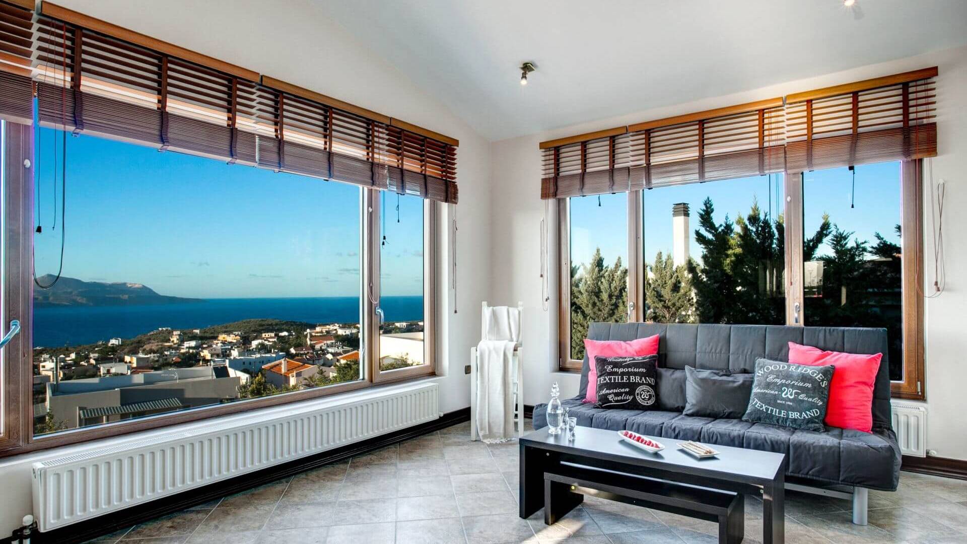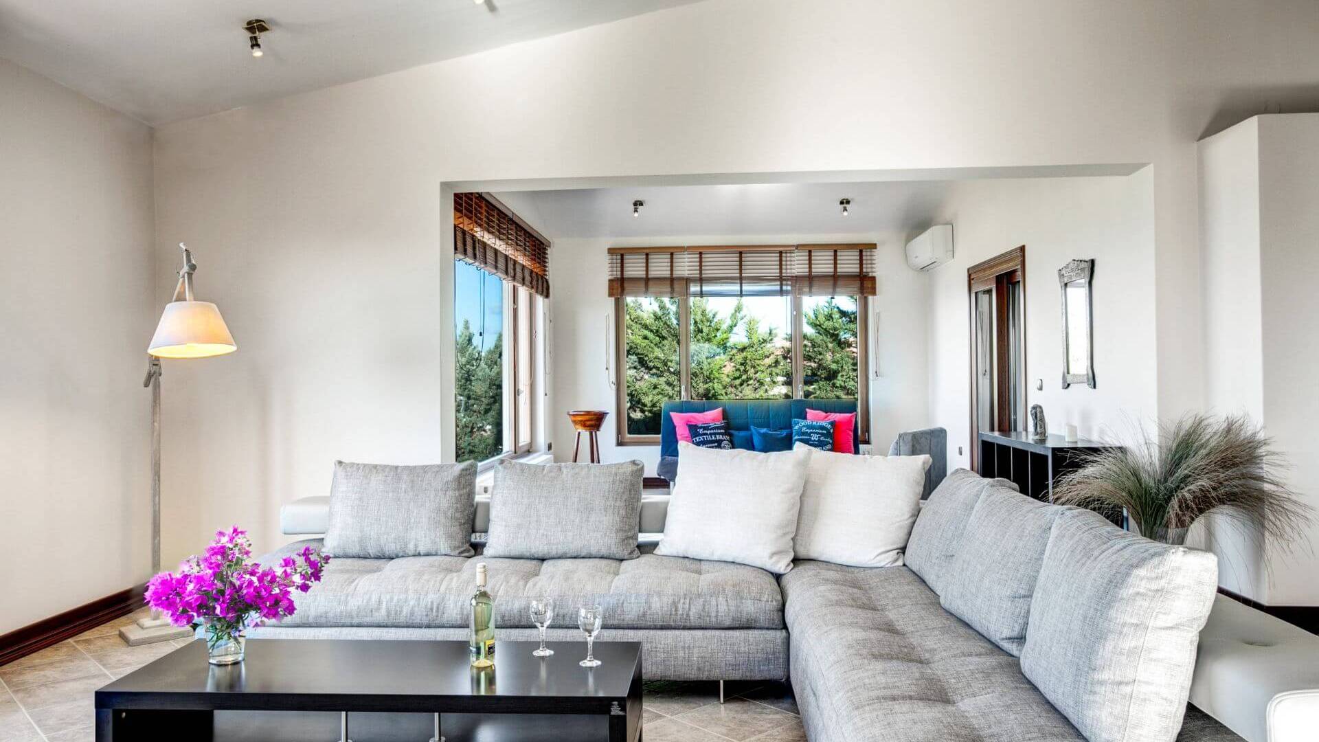 Disposition d'Eros Villa Chania : La Villa dispose de cinq chambres - trois avec lits doubles et deux avec deux lits simples - quatre salles de bains, une cuisine entièrement équipée, un salon avec vue sur la mer et une grande piscine. Au rez-de-chaussée, il y a un appartement indépendant avec deux chambres et une salle de bain, une cuisine entièrement équipée et un salon avec une télévision. Au premier étage, il y a trois autres chambres, trois salles de bains, une deuxième cuisine entièrement équipée, une salle à manger et un grand salon. A ce niveau spécifique et à l'intérieur du salon, il y a deux canapés-lits pouvant accueillir jusqu'à trois personnes supplémentaires. Votre séjour à Eros Villa Chania sera inoubliable !