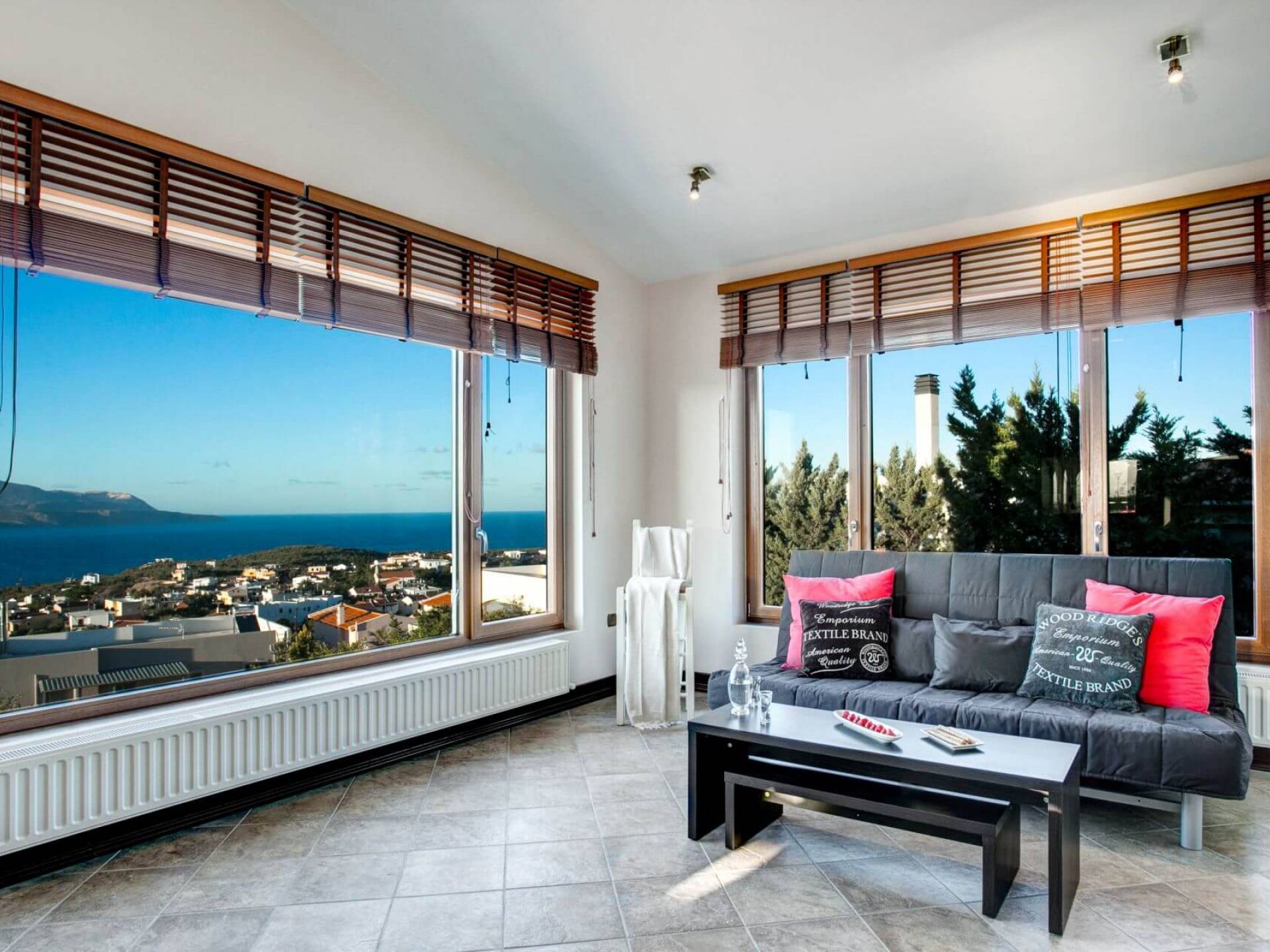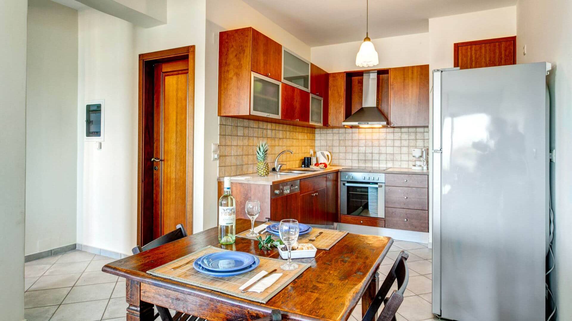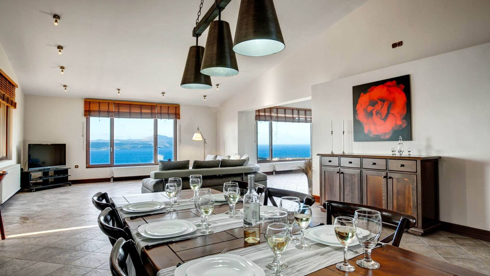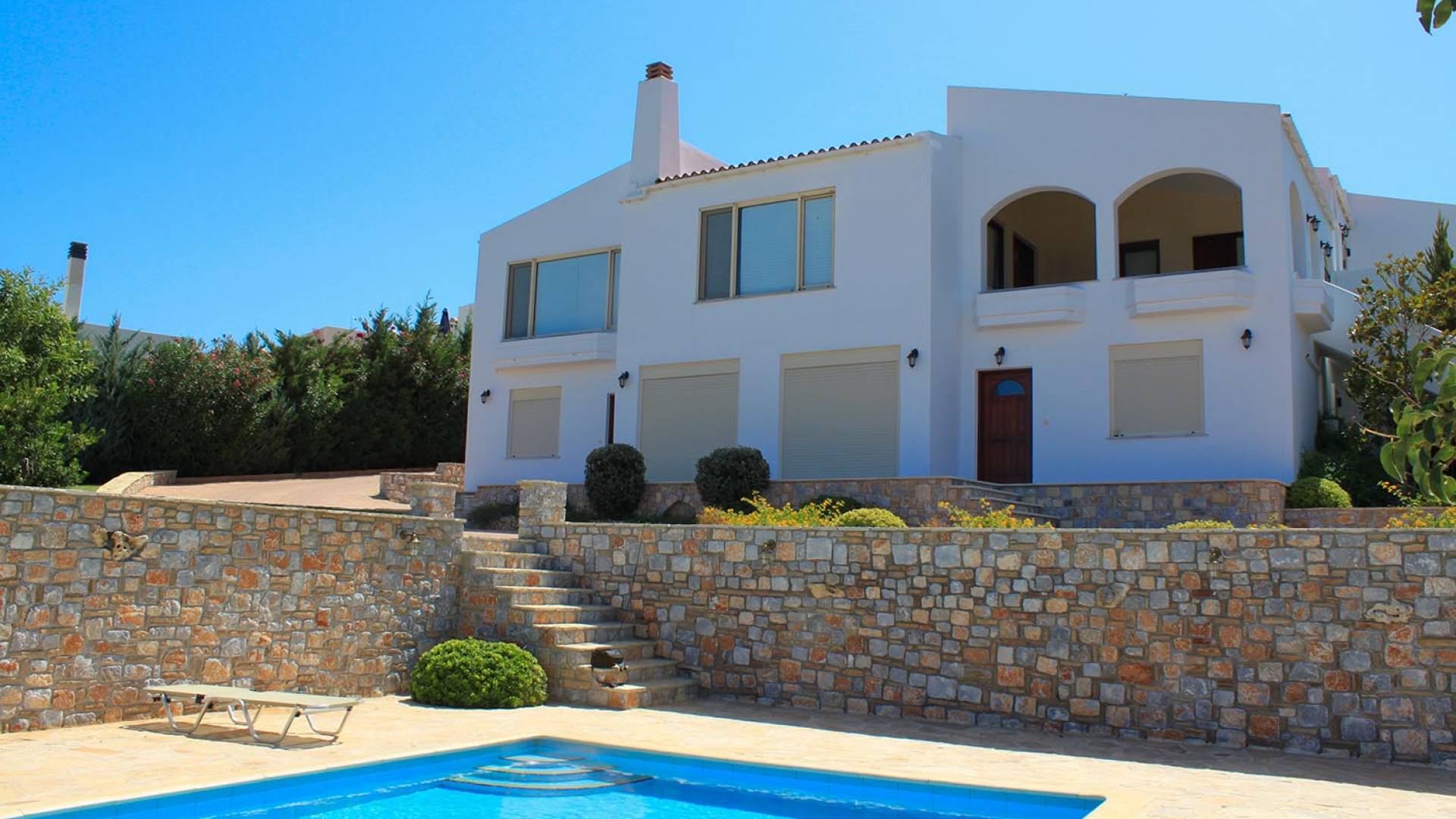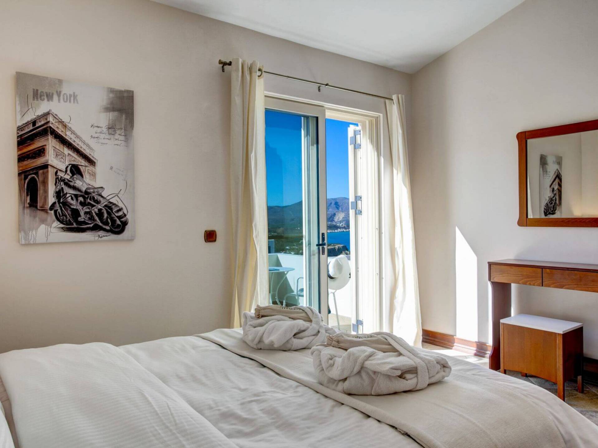 Disposition d'Eros Villa Chania : La Villa dispose de cinq chambres - trois avec lits doubles et deux avec deux lits simples - quatre salles de bains, une cuisine entièrement équipée, un salon avec vue sur la mer et une grande piscine. Au rez-de-chaussée, il y a un appartement indépendant avec deux chambres et une salle de bain, une cuisine entièrement équipée et un salon avec une télévision. Au premier étage, il y a trois autres chambres, trois salles de bains, une deuxième cuisine entièrement équipée, une salle à manger et un grand salon. A ce niveau spécifique et à l'intérieur du salon, il y a deux canapés-lits pouvant accueillir jusqu'à trois personnes supplémentaires. Votre séjour à Eros Villa Chania sera inoubliable !