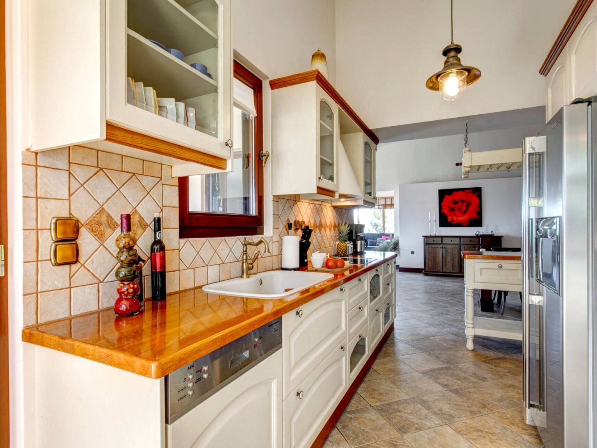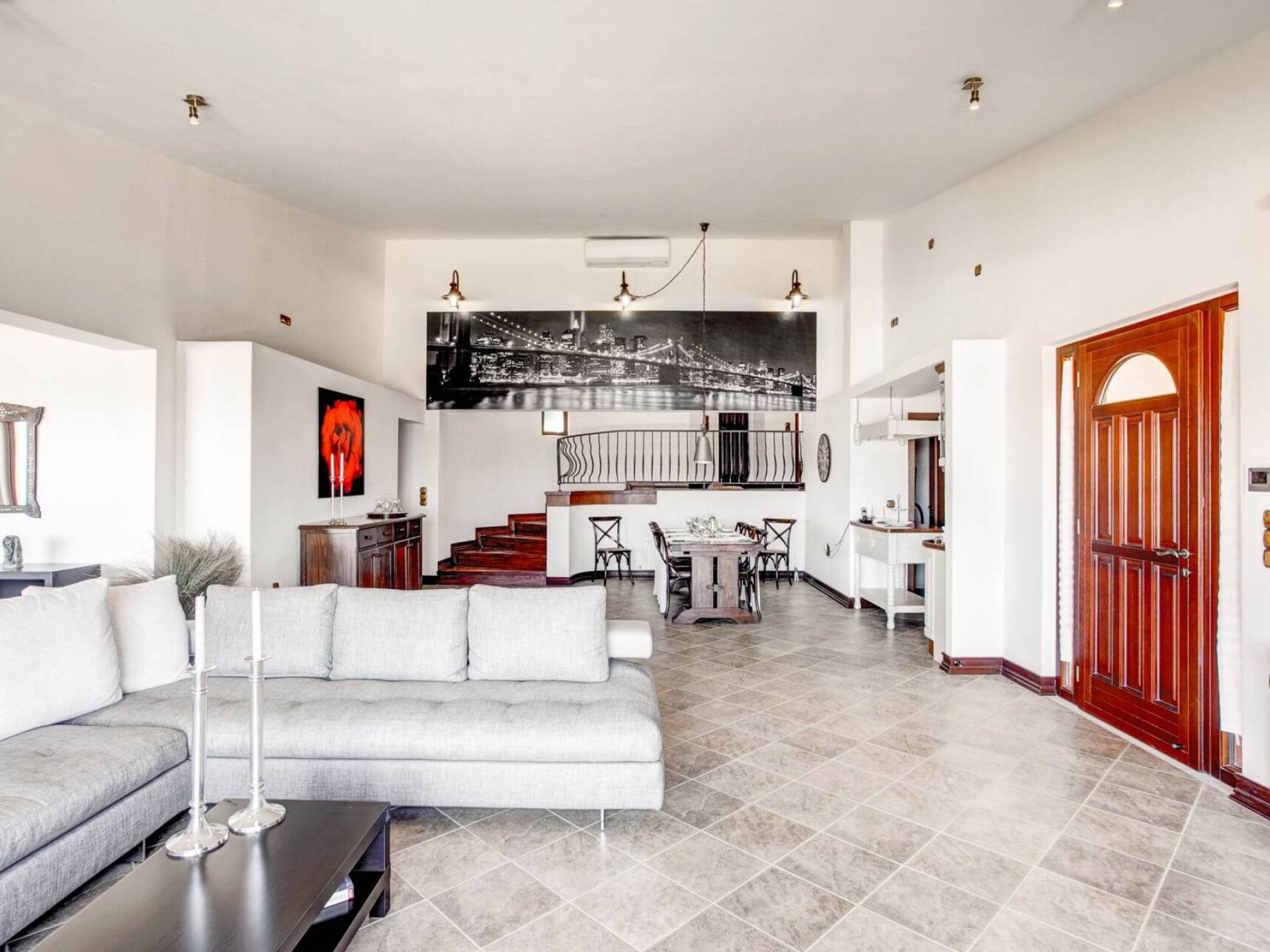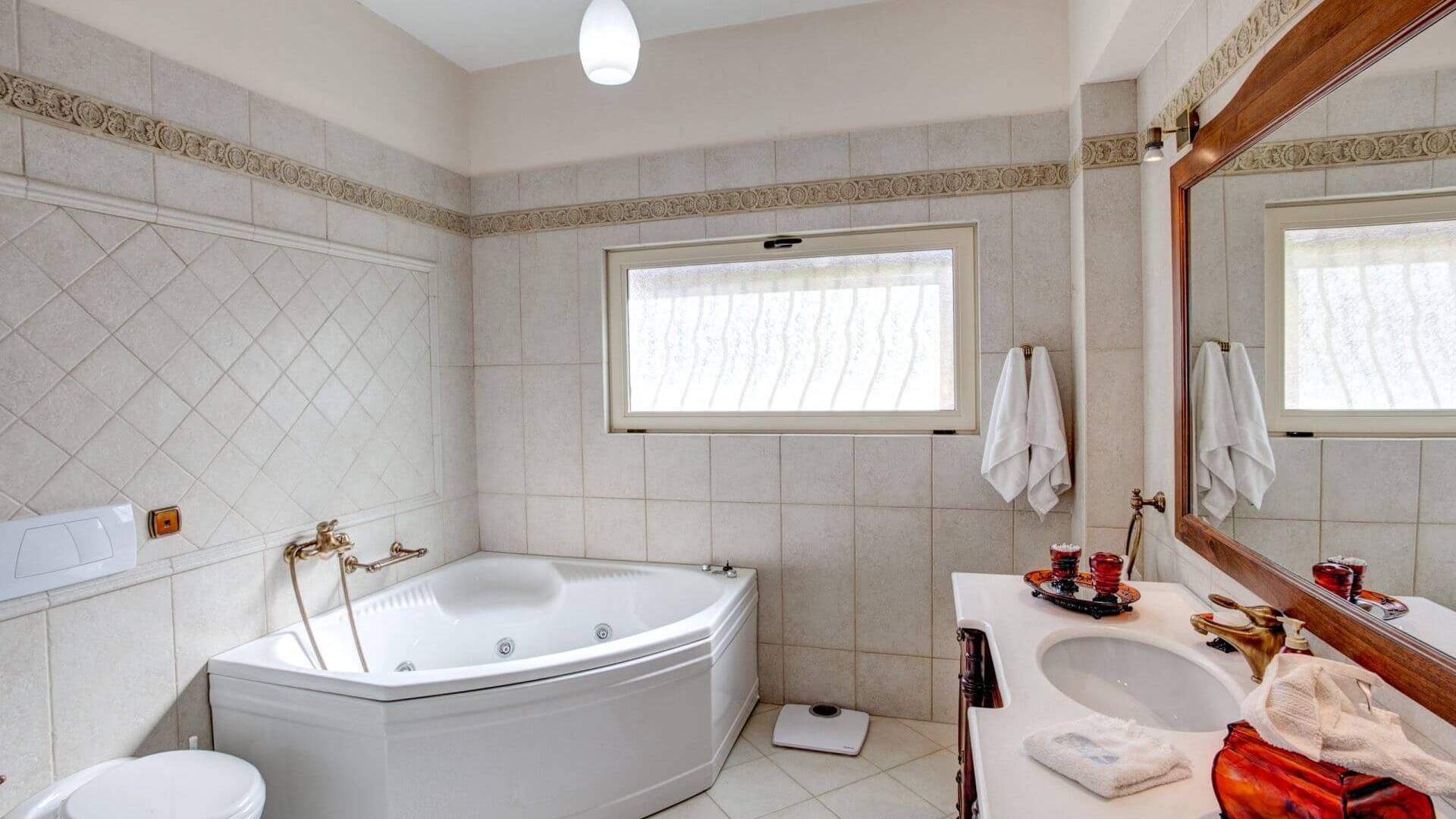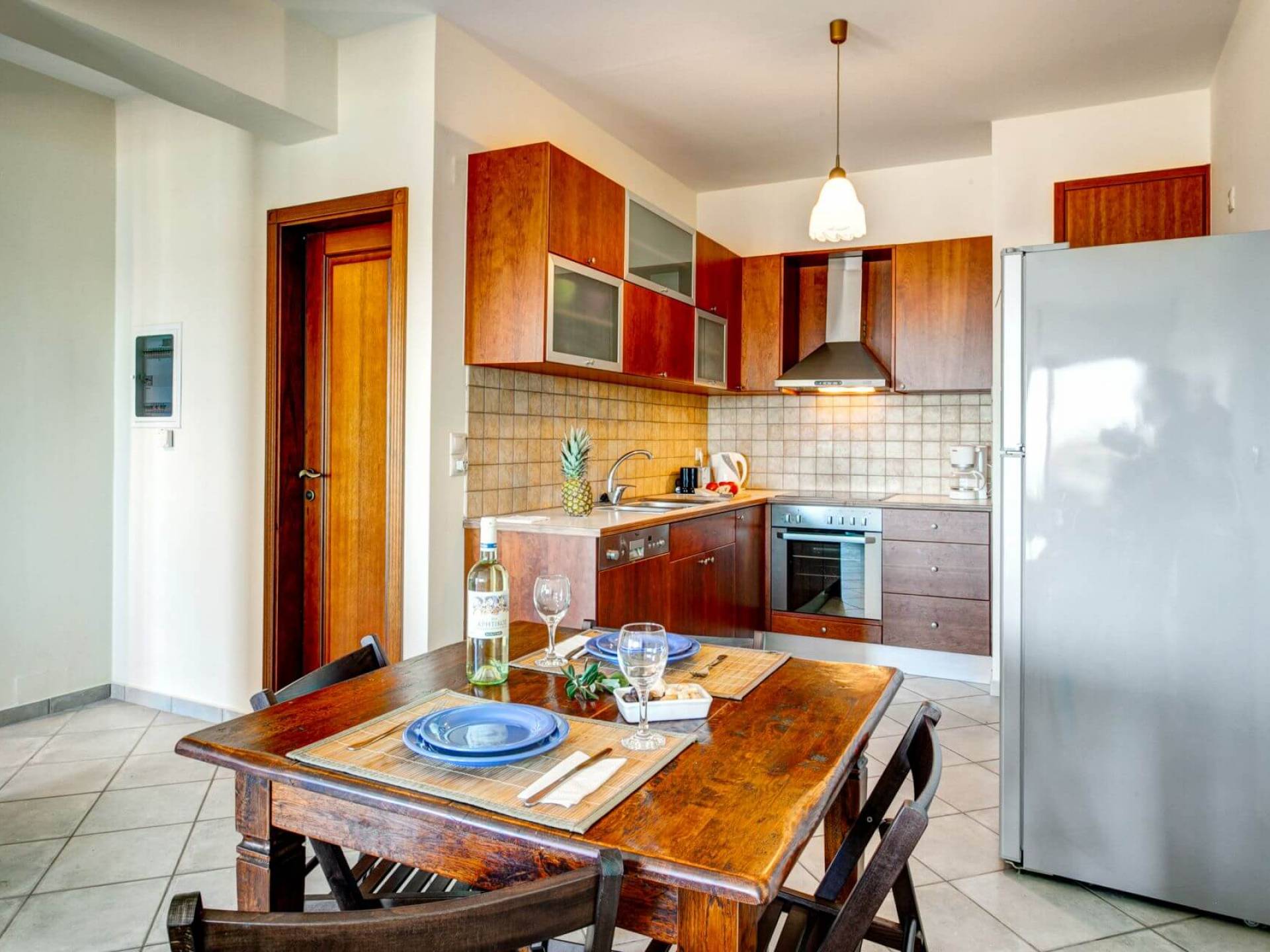Disposition d'Eros Villa Chania : La Villa dispose de cinq chambres - trois avec lits doubles et deux avec deux lits simples - quatre salles de bains, une cuisine entièrement équipée, un salon avec vue sur la mer et une grande piscine. Au rez-de-chaussée, il y a un appartement indépendant avec deux chambres et une salle de bain, une cuisine entièrement équipée et un salon avec une télévision. Au premier étage, il y a trois autres chambres, trois salles de bains, une deuxième cuisine entièrement équipée, une salle à manger et un grand salon. A ce niveau spécifique et à l'intérieur du salon, il y a deux canapés-lits pouvant accueillir jusqu'à trois personnes supplémentaires. Votre séjour à Eros Villa Chania sera inoubliable !