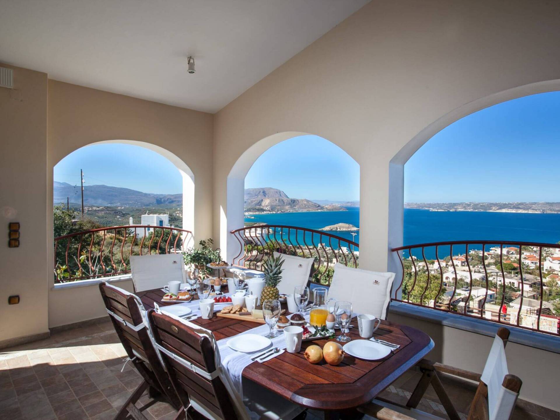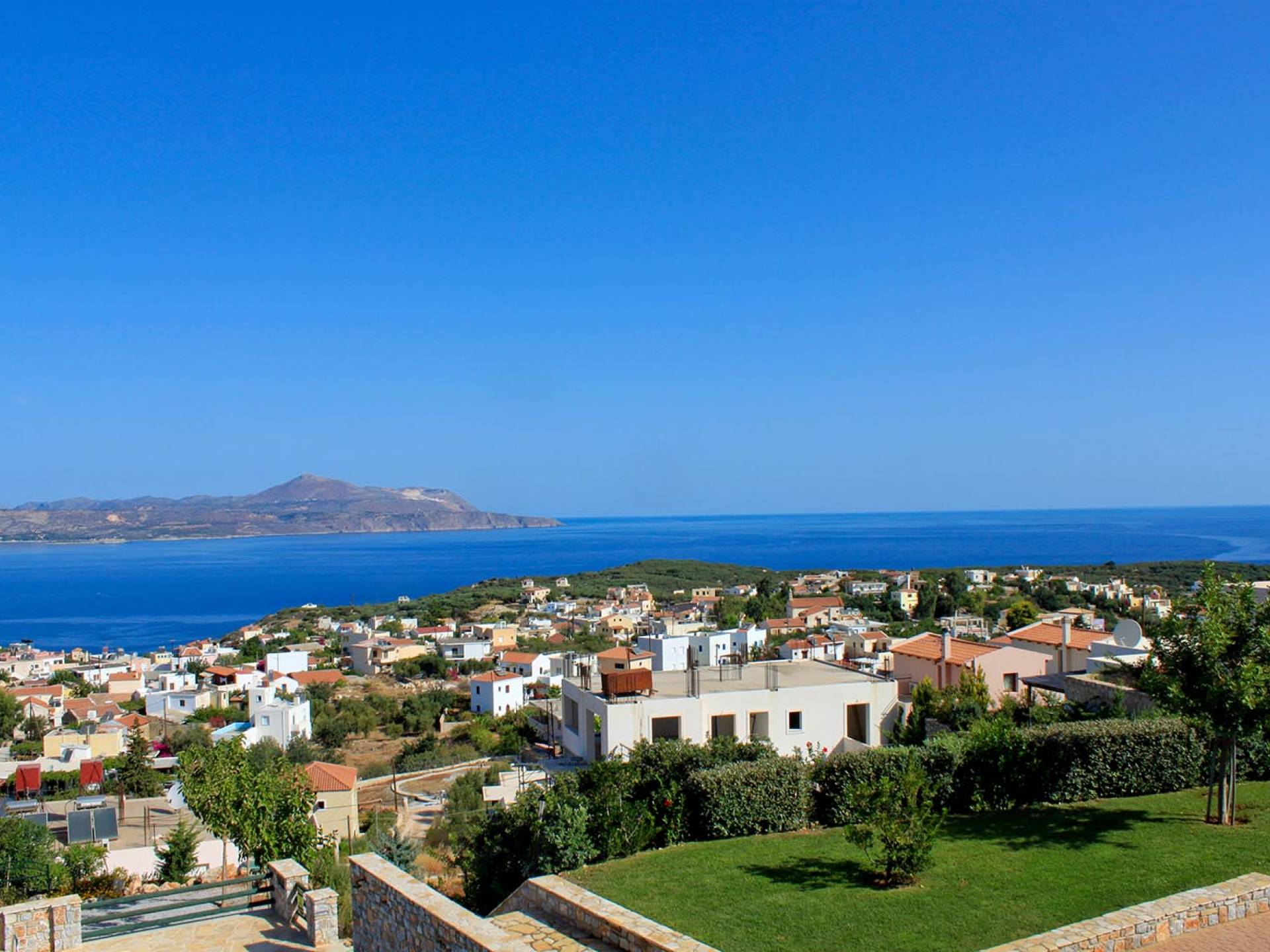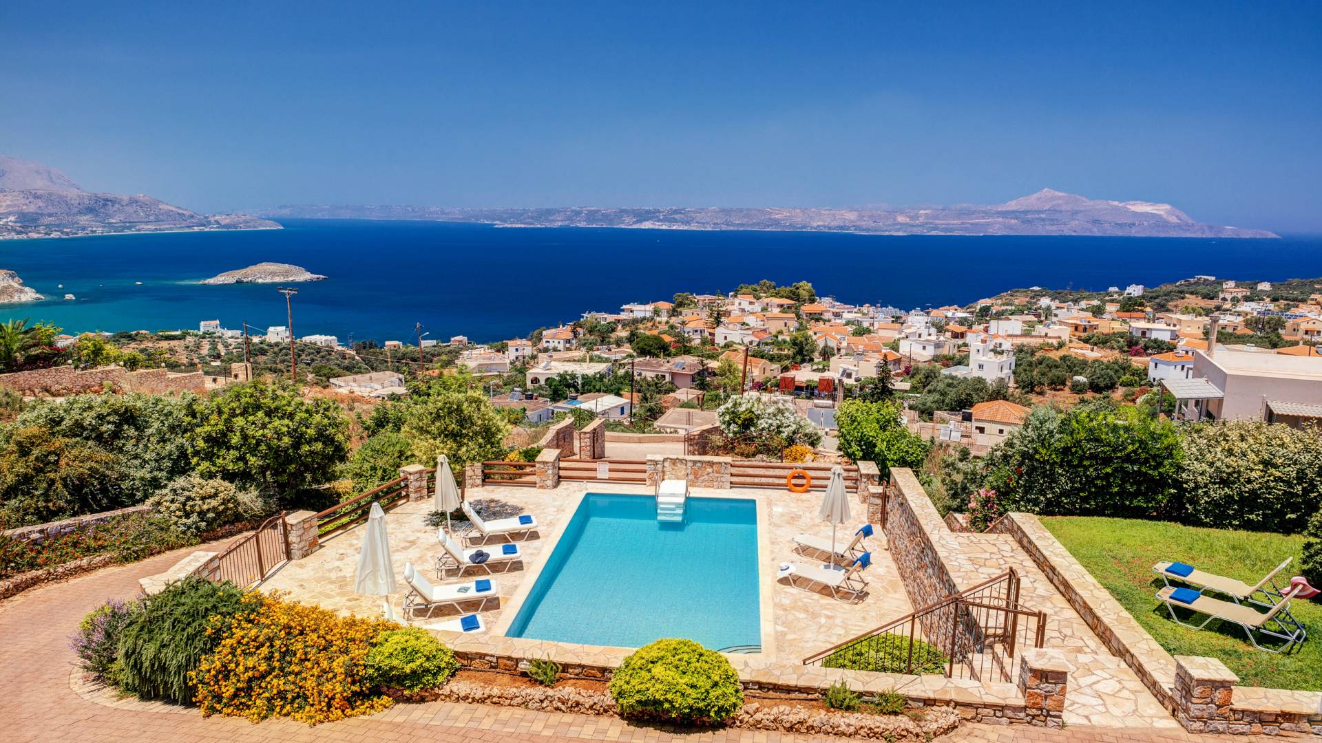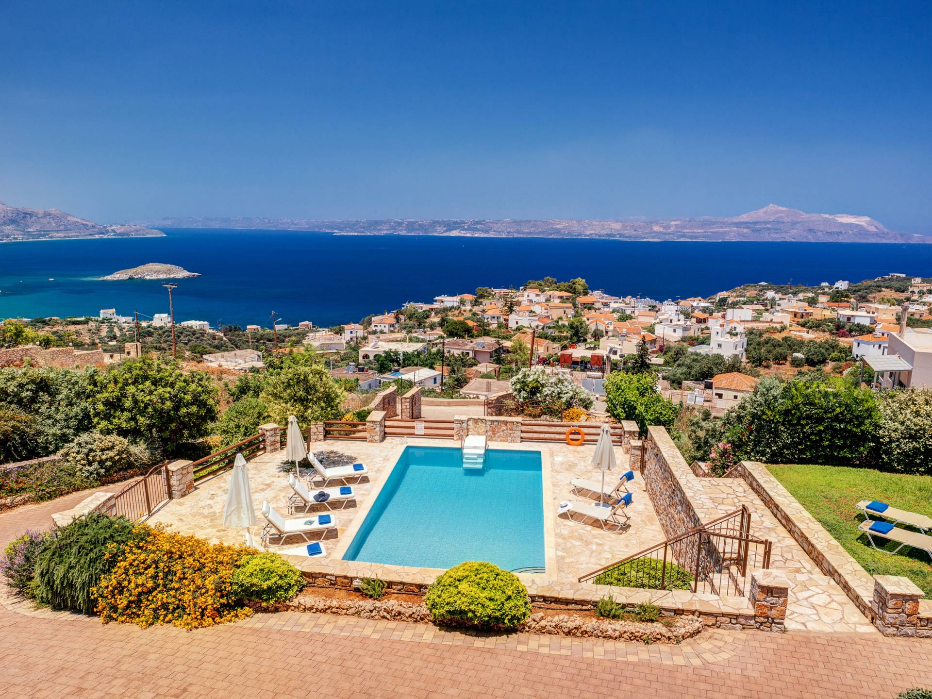 Bienvenue à Eros Luxury Sea View Villa à Plaka, Chania, Crète. Vous pouvez profiter de fabuleux couchers de soleil ou d'une vue sur la mer Méditerranée et les Montagnes Blanches. Vous pourrez vous détendre assis sur les grandes vérandas et lire un livre avec cette magnifique vue sur la mer. Profitez d'une belle baignade dans notre piscine privée ou détendez-vous simplement et bronzez au bord de la piscine.