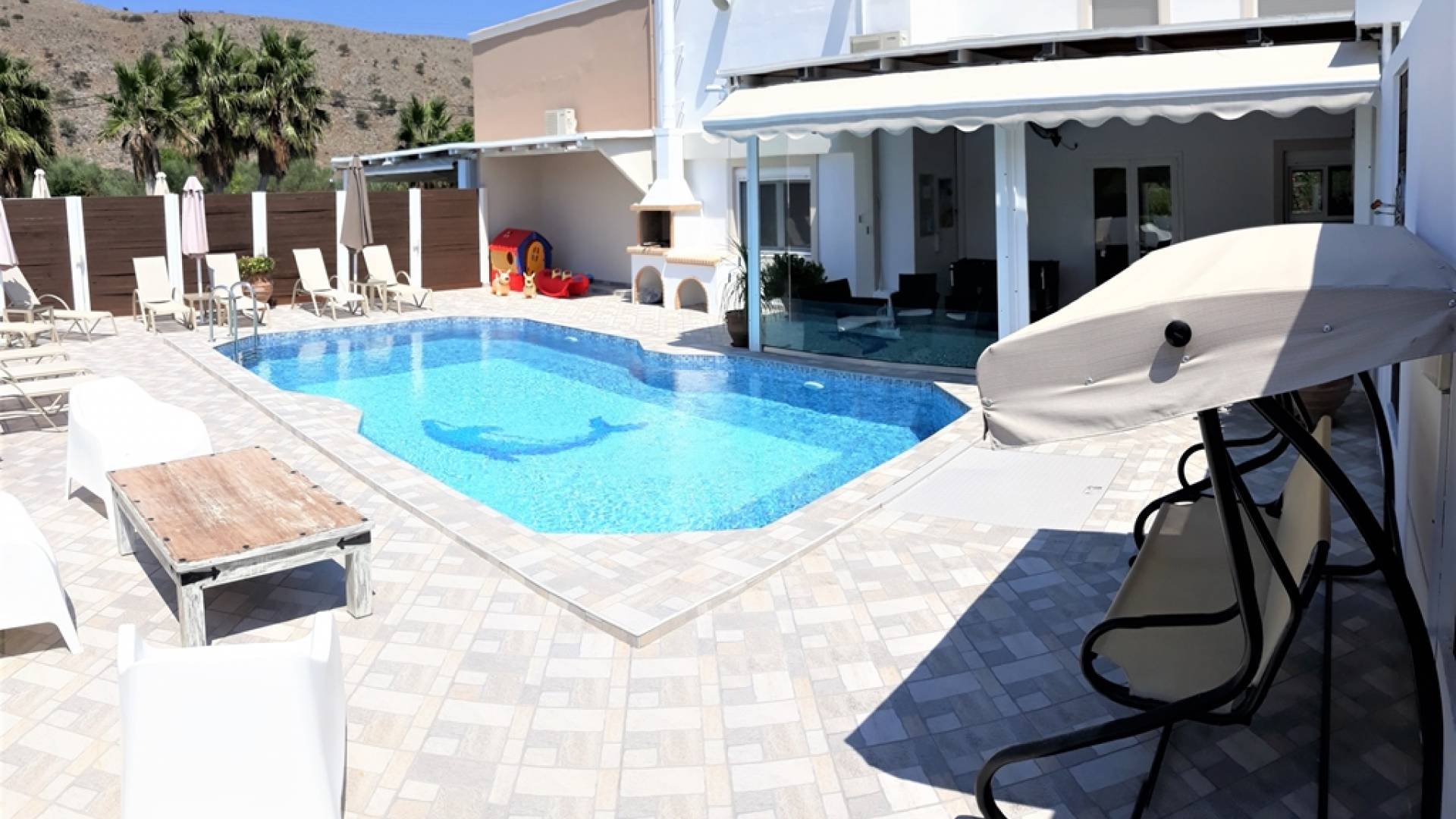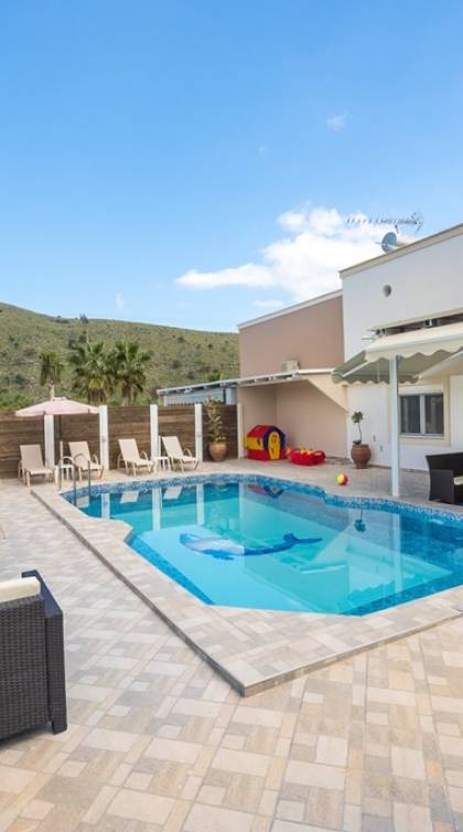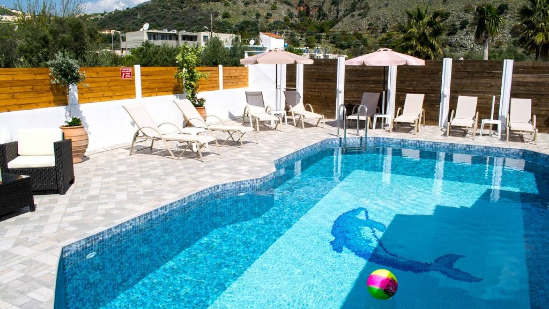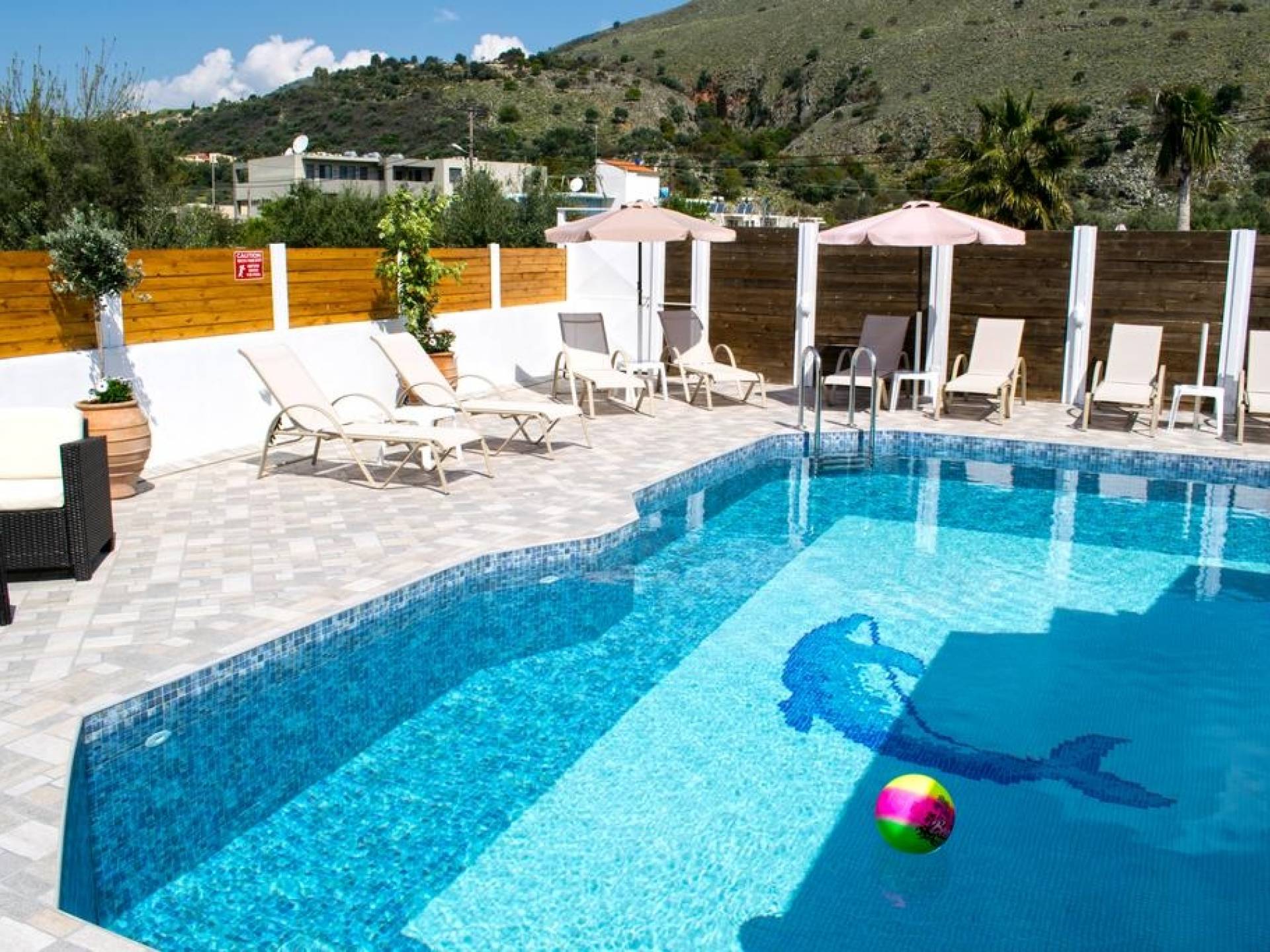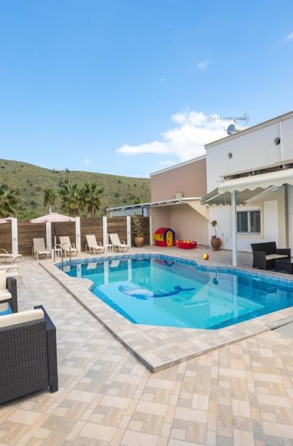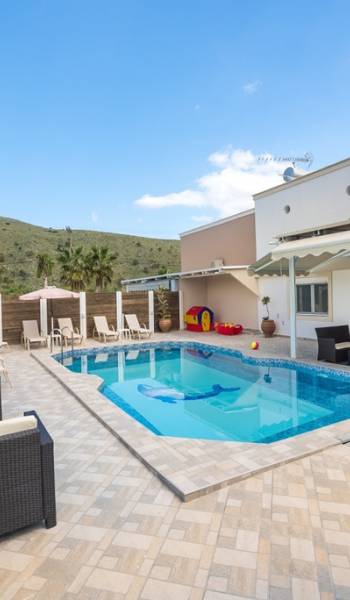 Fantasia Villa Chania est l'une des cinq villas indépendantes du complexe. Des murs en bois et en pierre entourent la propriété et assurent votre intimité. Le Fantasia Villa Chania possède une piscine et un jardin privés. Il y a un barbecue, un coin salon et un grand ensemble de salle à manger sous une pergola ombragée et des chaises longues et des parasols à côté de la piscine et créent un environnement agréable, parfait pour des vacances reposantes. Pour des vacances actives, vous pouvez choisir parmi une variété d'activités, telles que des excursions quotidiennes, de l'équitation, des sorties de pêche, de la plongée, des sports nautiques, etc.