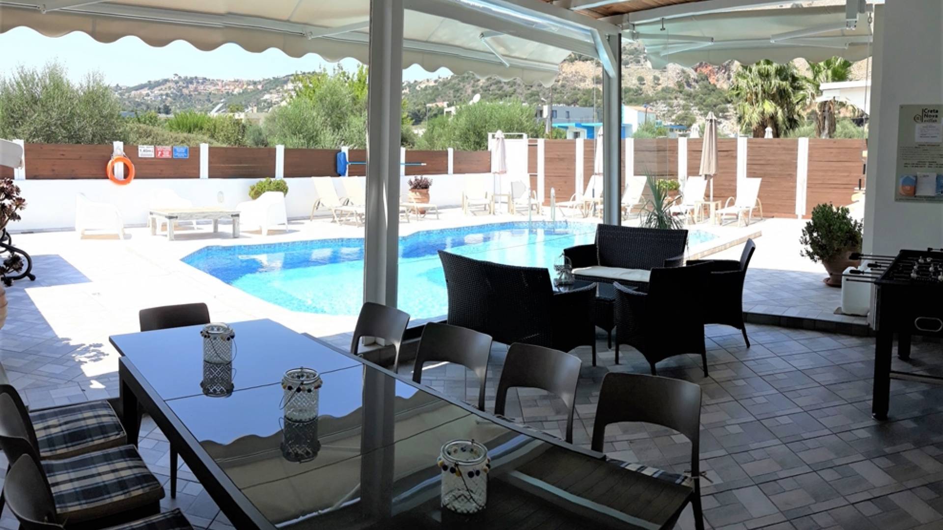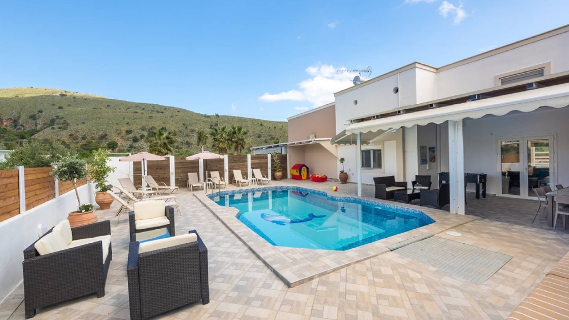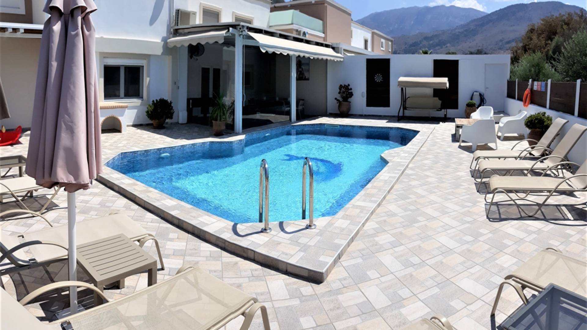 Fantasia Villa Chania est l'une des cinq villas indépendantes du complexe. Des murs en bois et en pierre entourent la propriété et assurent votre intimité. Le Fantasia Villa Chania possède une piscine et un jardin privés. Il y a un barbecue, un coin salon et un grand ensemble de salle à manger sous une pergola ombragée et des chaises longues et des parasols à côté de la piscine et créent un environnement agréable, parfait pour des vacances reposantes. Pour des vacances actives, vous pouvez choisir parmi une variété d'activités, telles que des excursions quotidiennes, de l'équitation, des sorties de pêche, de la plongée, des sports nautiques, etc.
