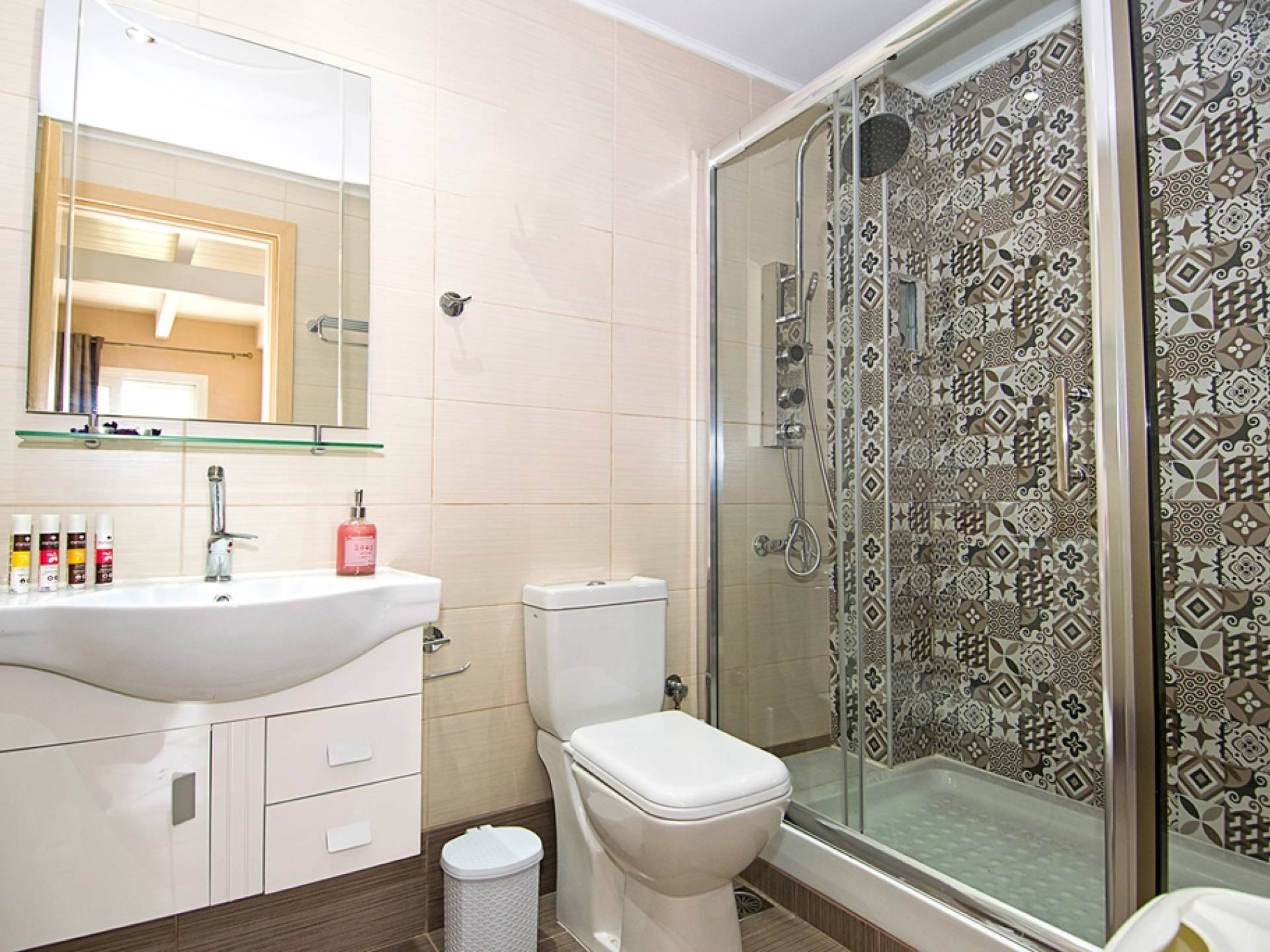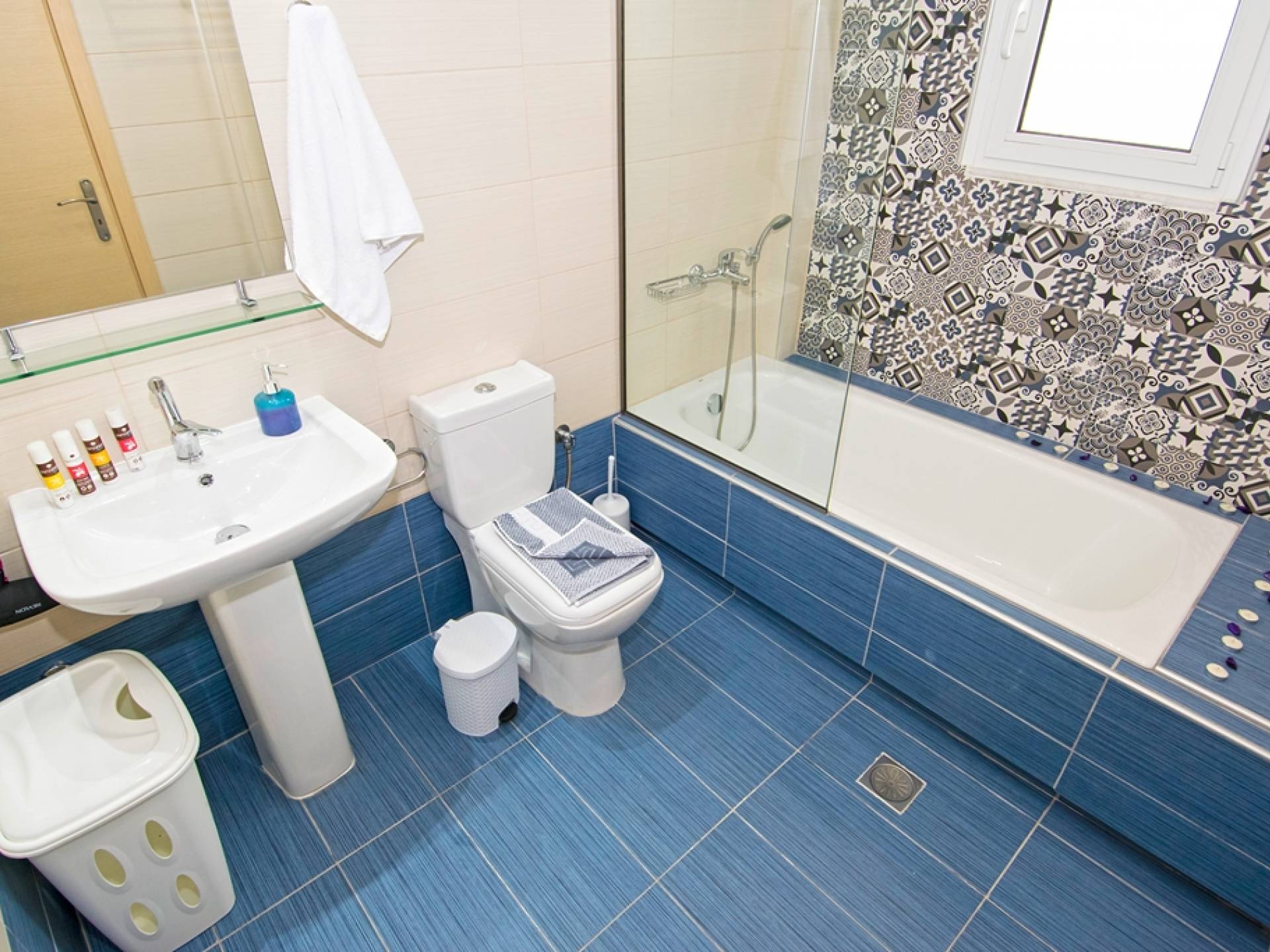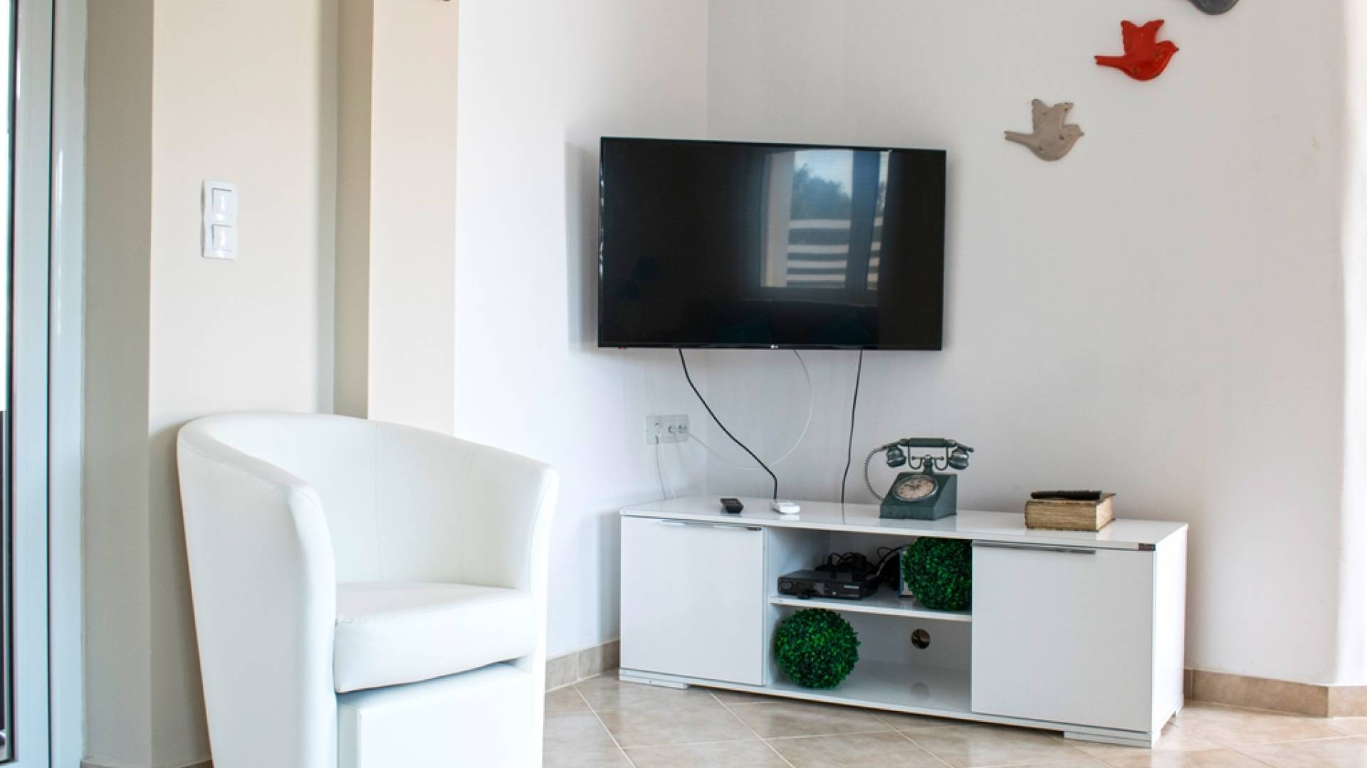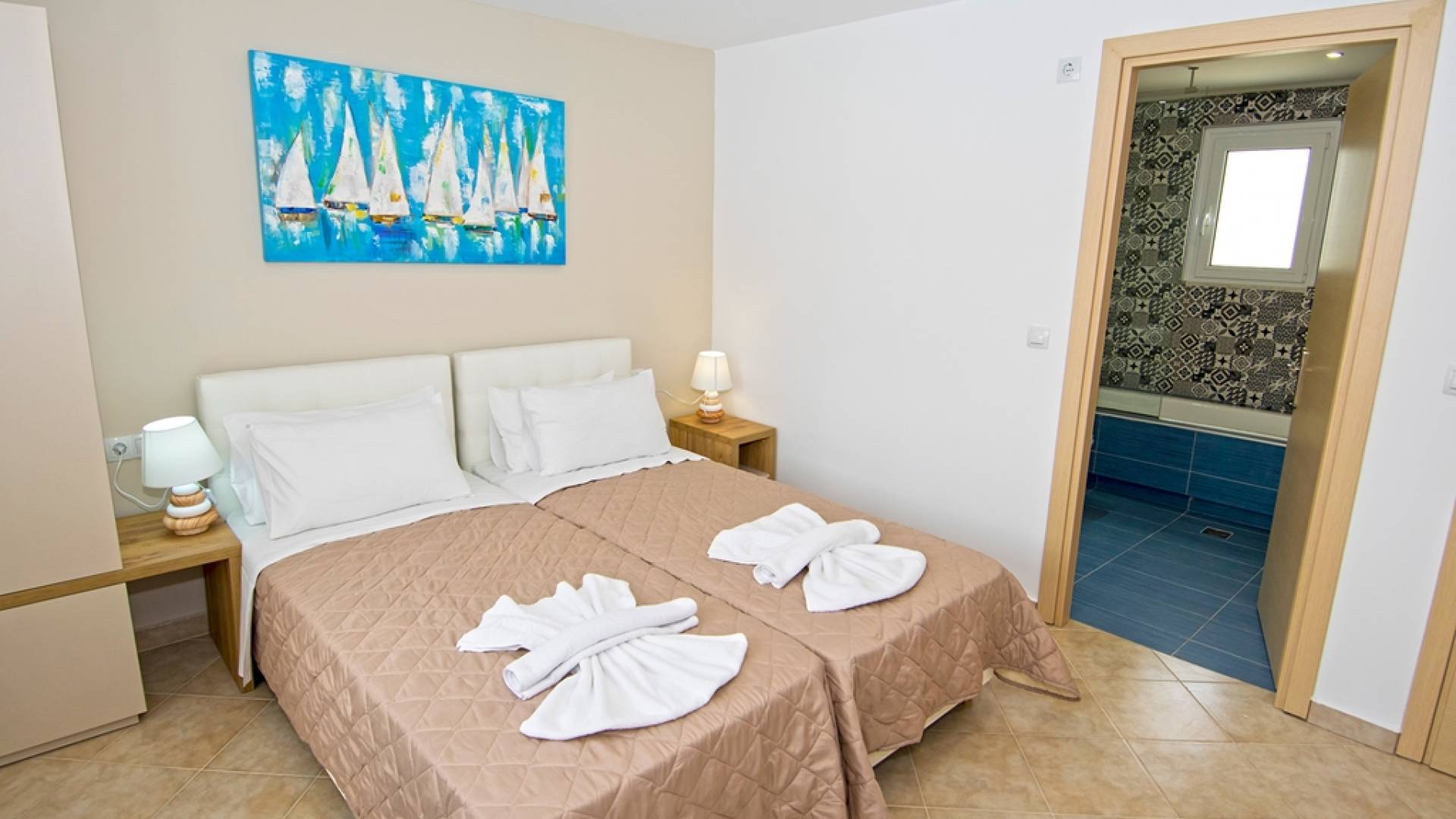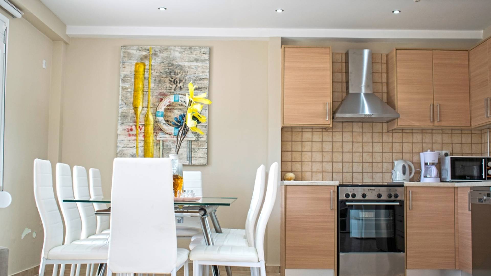 La porte s'ouvre sur une villa ensoleillée et joliment décorée. Au rez-de-chaussée, on trouve le coin salon, le coin repas, la cuisine entièrement équipée, une chambre avec 3 lits simples, et une salle de bain attenante. Il y a trois autres chambres, deux doubles et une twin, toutes avec un balcon avec vue sur la mer, au premier étage et deux salles de bains. Une des chambres a une salle de bain attenante.