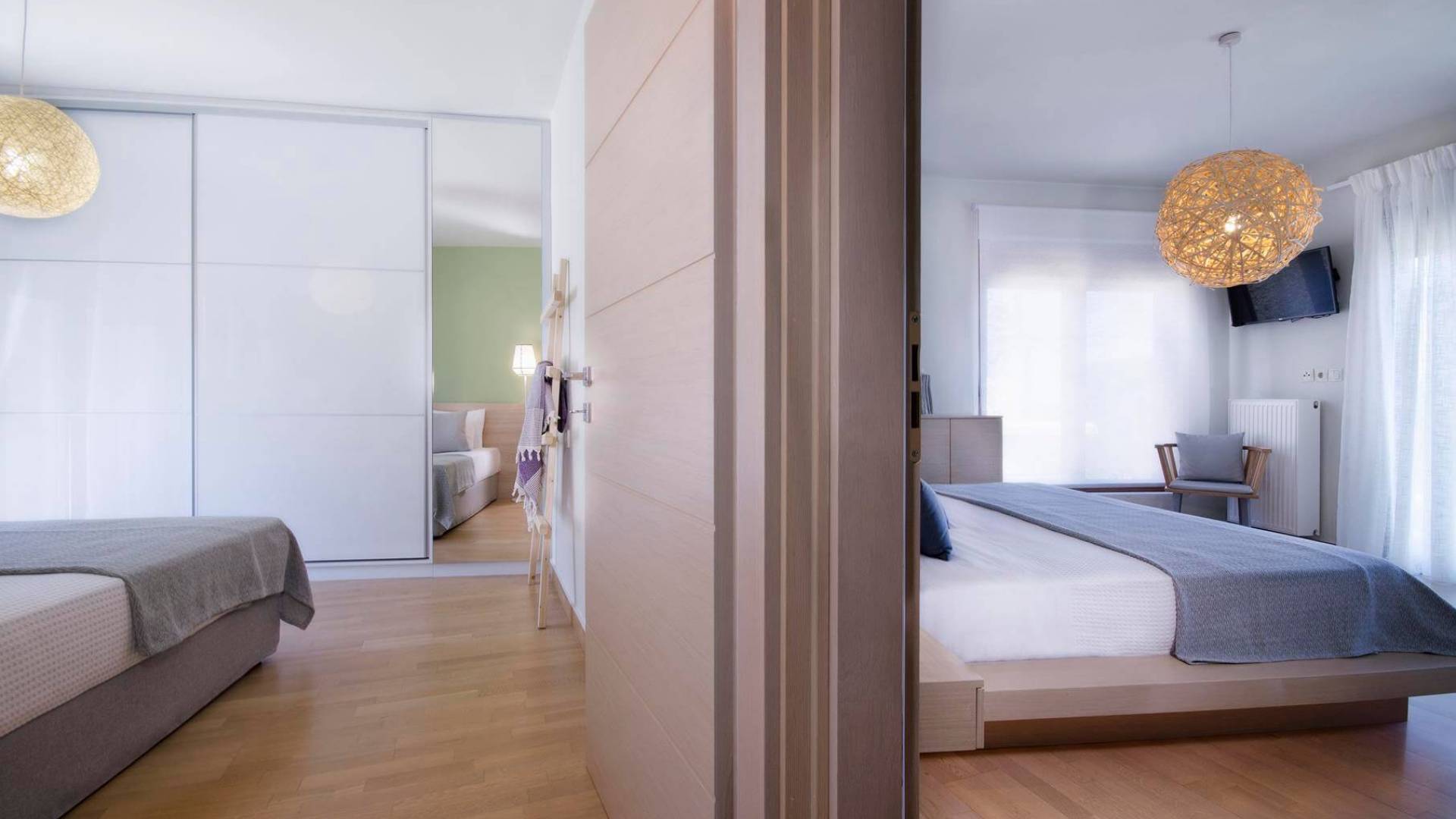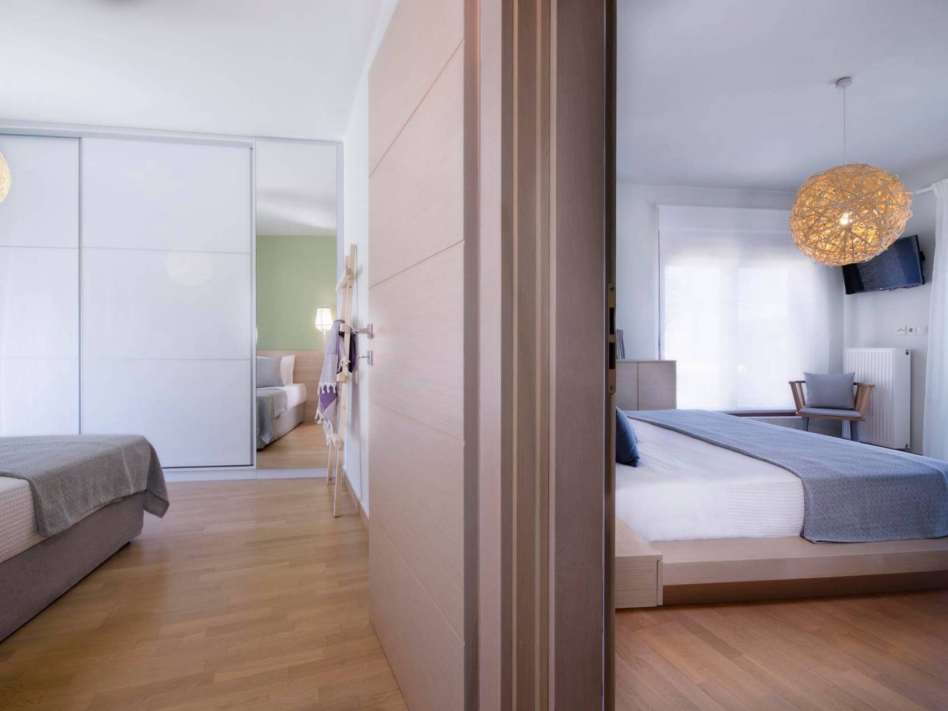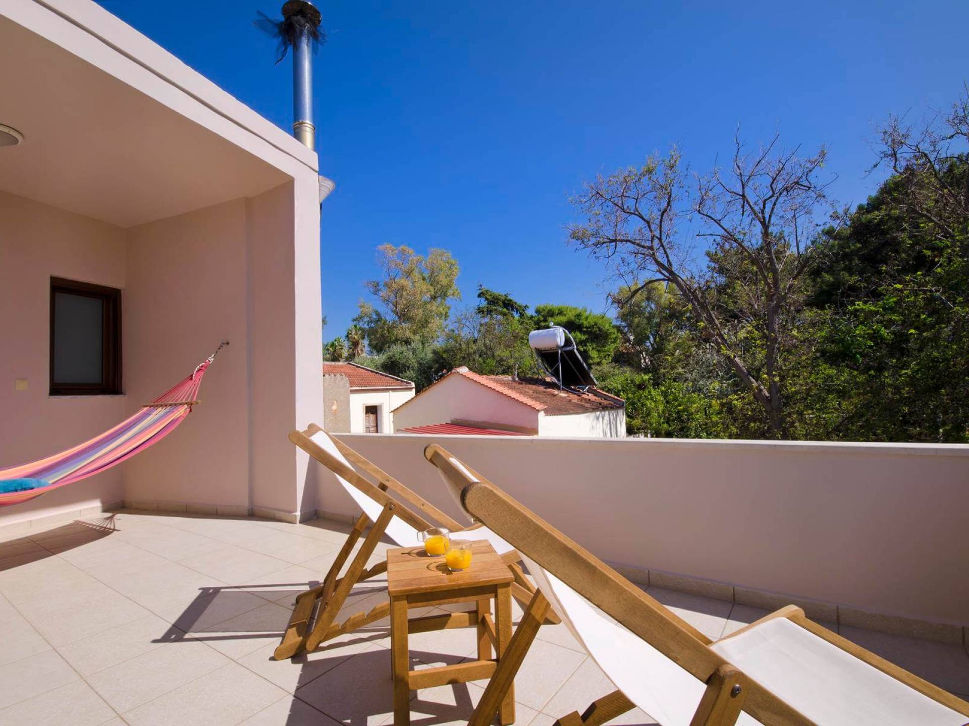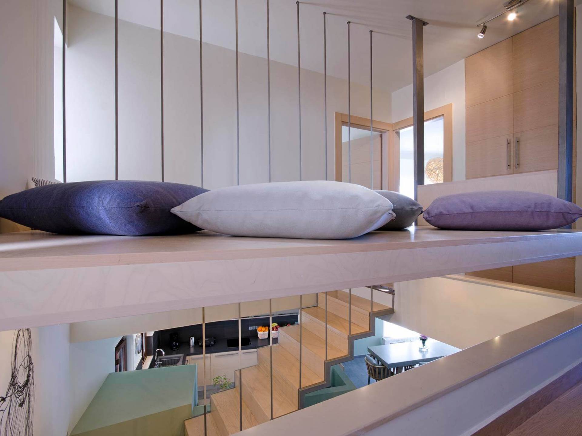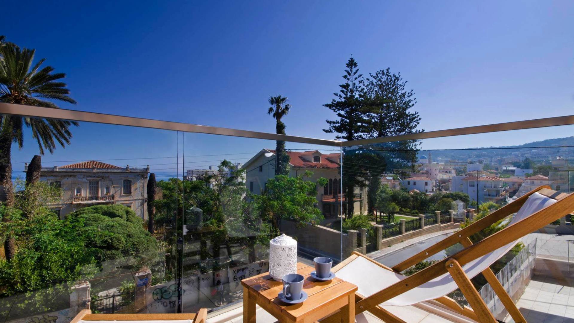 À l'étage supérieur de Halepa Villa Chania, il y a trois chambres (chacune avec son propre balcon), une mezzanine suspendue et une deuxième salle de bain avec bain à remous. Les deux chambres à l'avant donnent sur le palais, El. Le musée Venizelos et l'Académie française et la troisième chambre ont une vue sur le jardin d'Agia Magdalini. La chambre principale a un matelas 200 x 200 cm, la deuxième chambre a des lits jumeaux (peut être transformé en double si demandé) et la troisième chambre a un lit double queen. Halepa Villa Chania a des entrées séparées pour chaque étage et il y a un ascenseur aux deux étages.