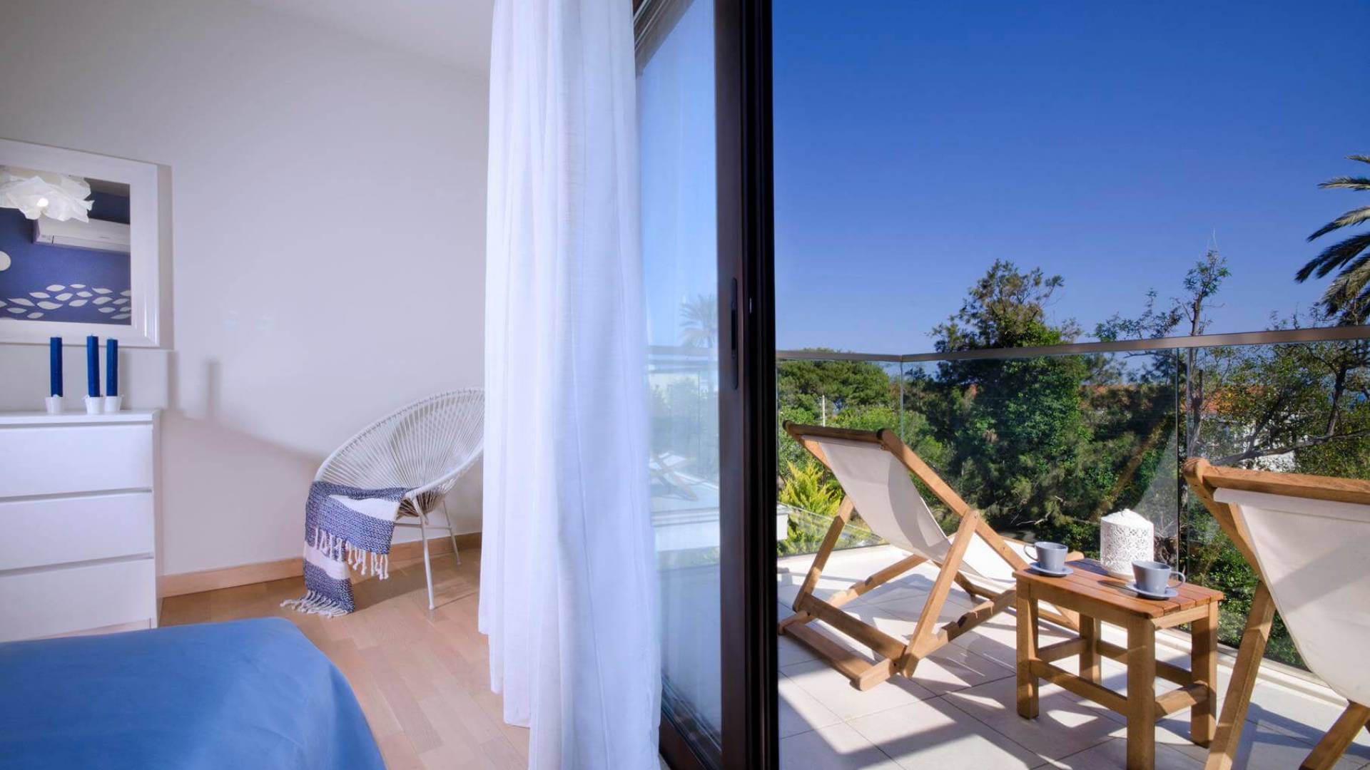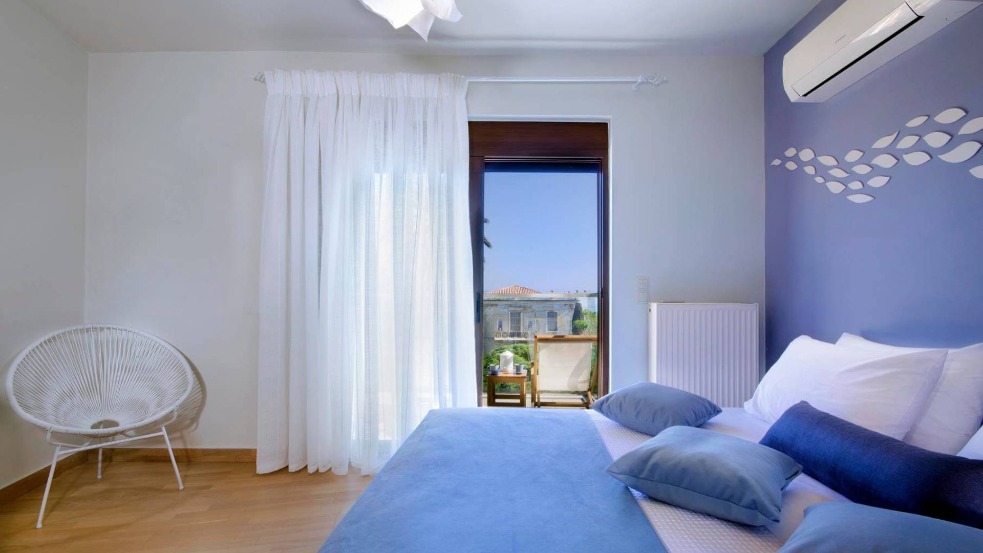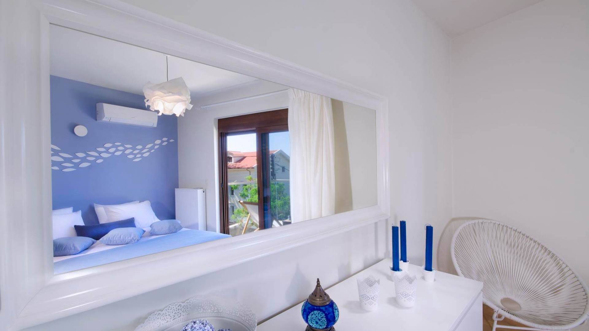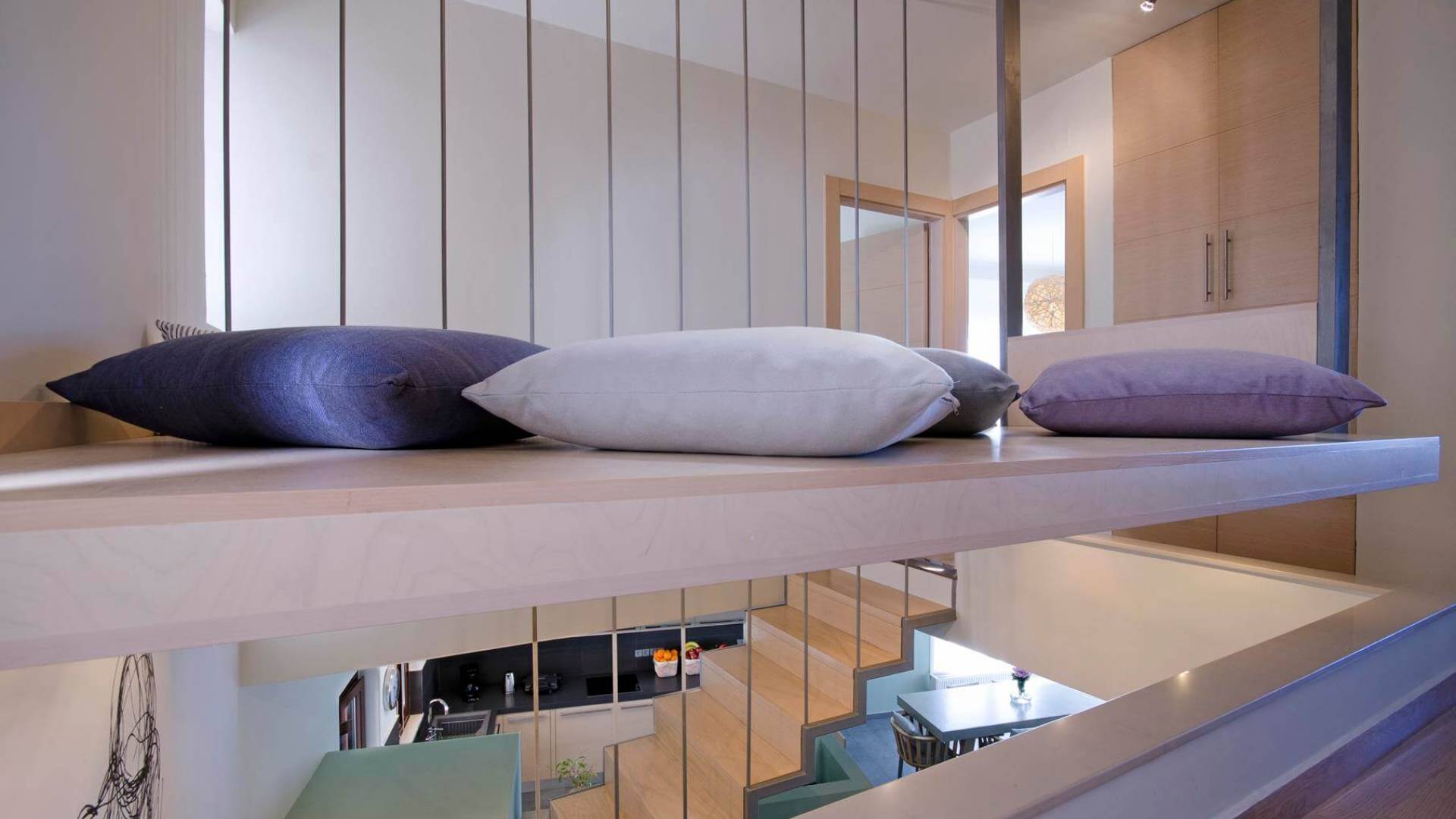À l'étage supérieur de Halepa Villa Chania, il y a trois chambres (chacune avec son propre balcon), une mezzanine suspendue et une deuxième salle de bain avec bain à remous. Les deux chambres à l'avant donnent sur le palais, El. Le musée Venizelos et l'Académie française et la troisième chambre ont une vue sur le jardin d'Agia Magdalini. La chambre principale a un matelas 200 x 200 cm, la deuxième chambre a des lits jumeaux (peut être transformé en double si demandé) et la troisième chambre a un lit double queen. Halepa Villa Chania a des entrées séparées pour chaque étage et il y a un ascenseur aux deux étages.