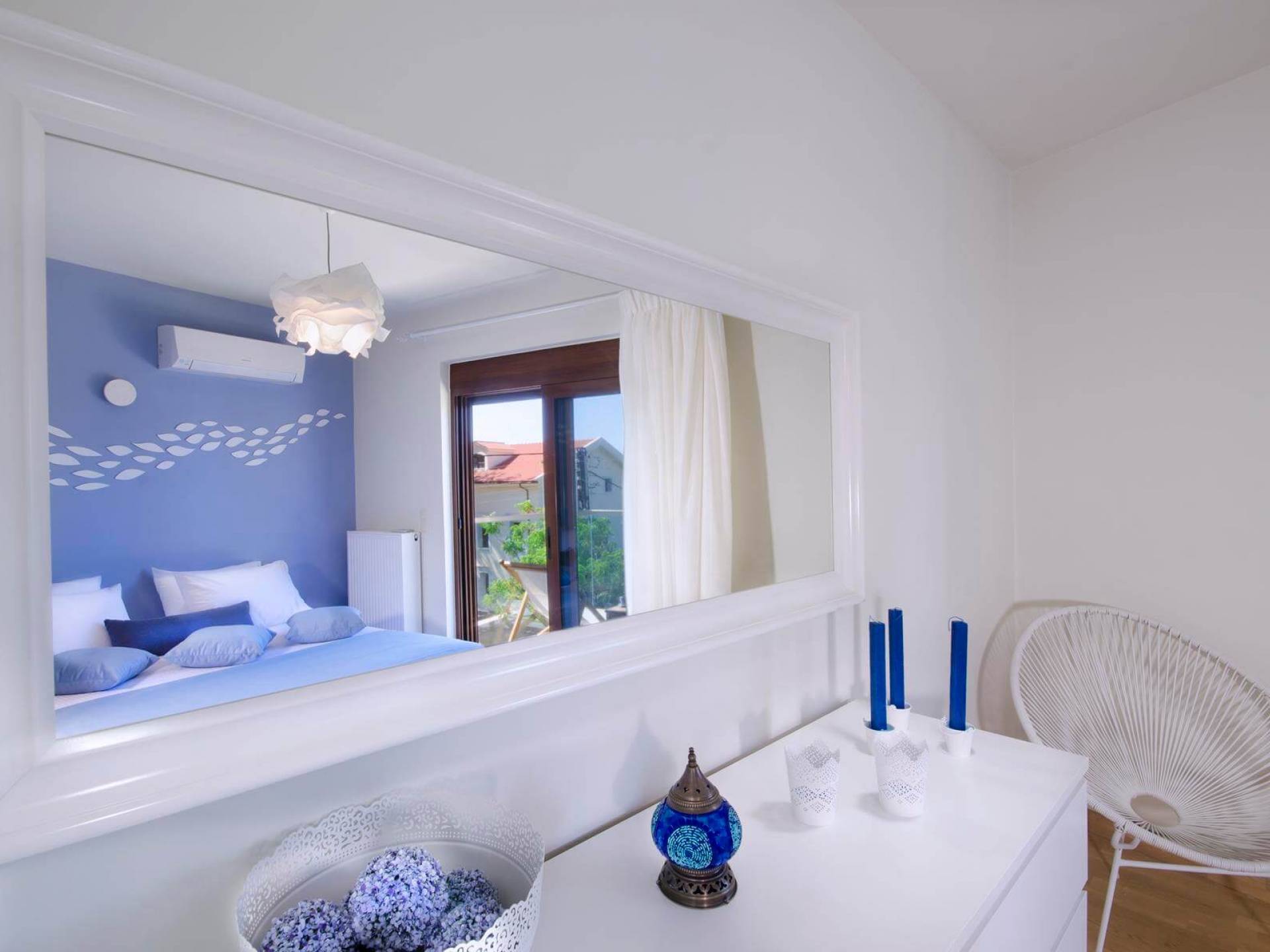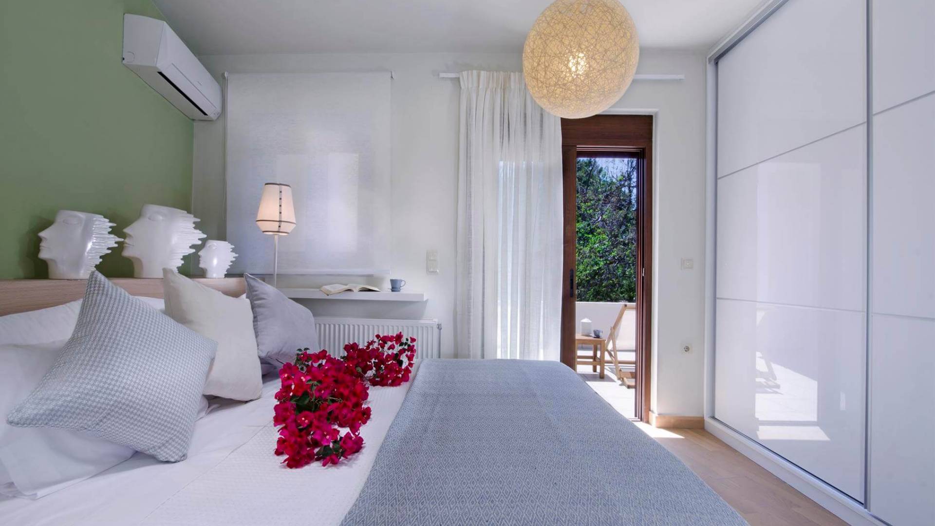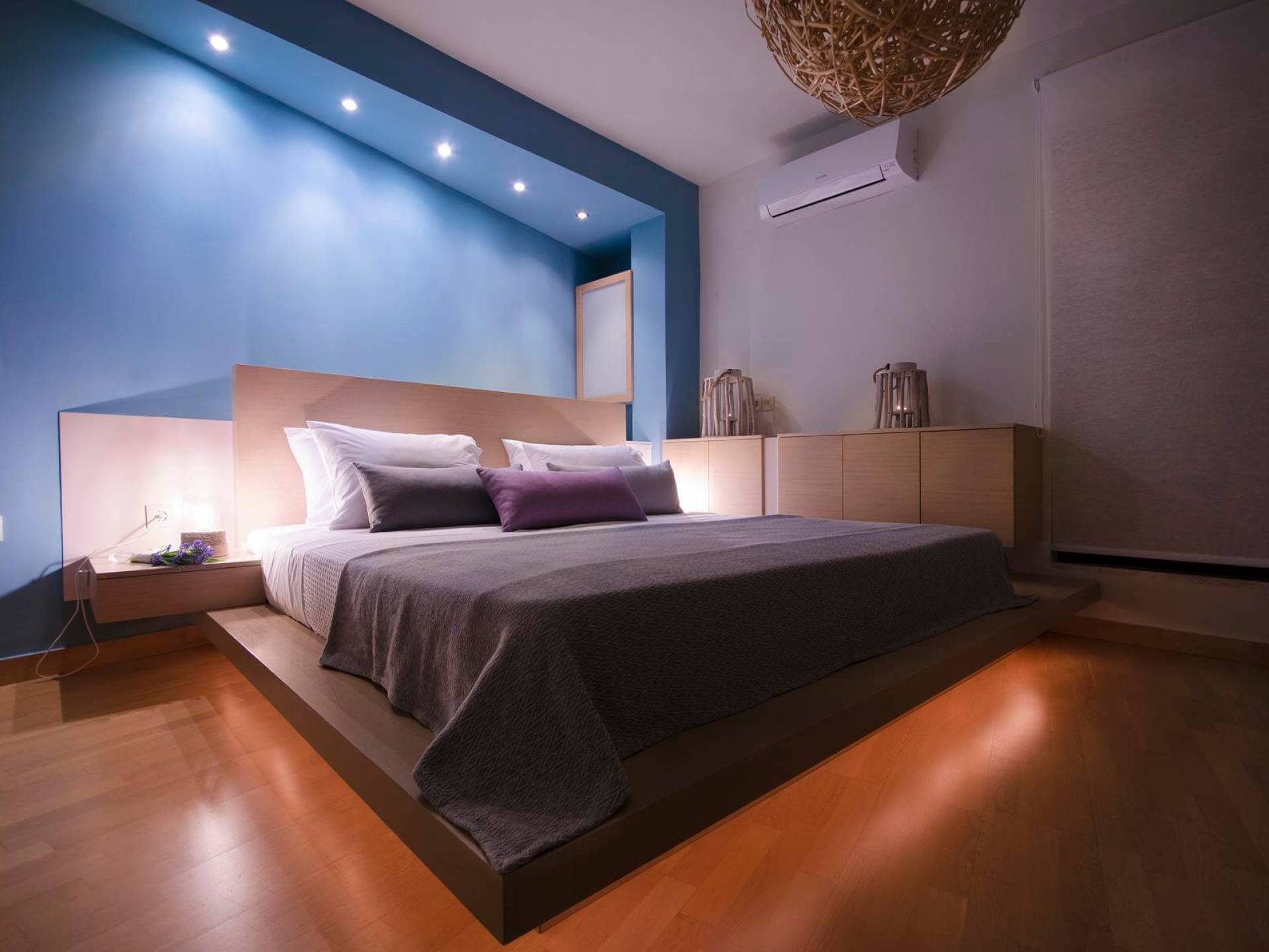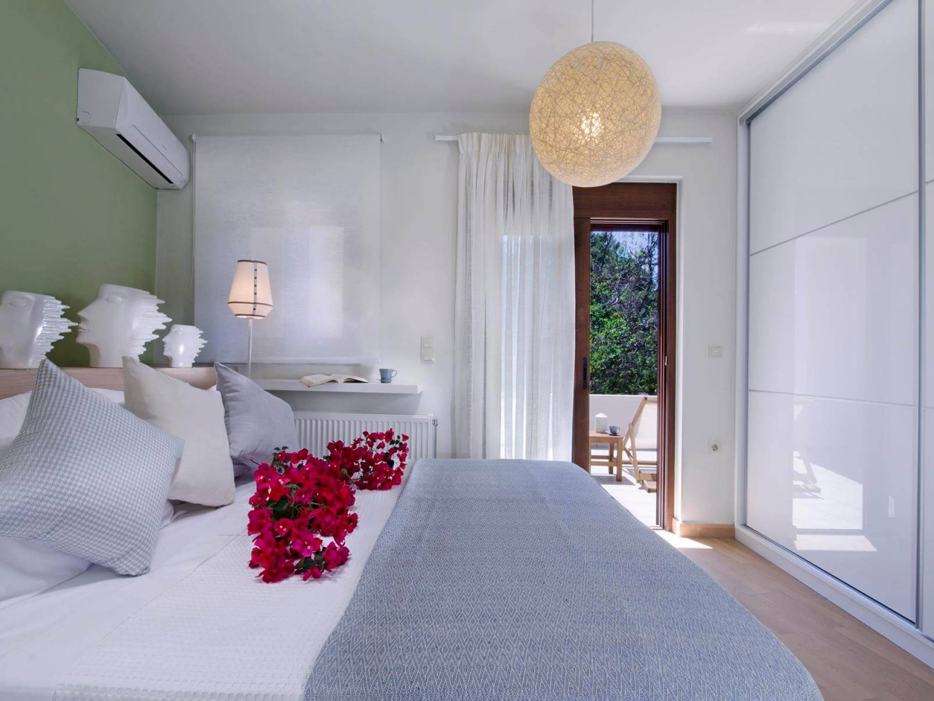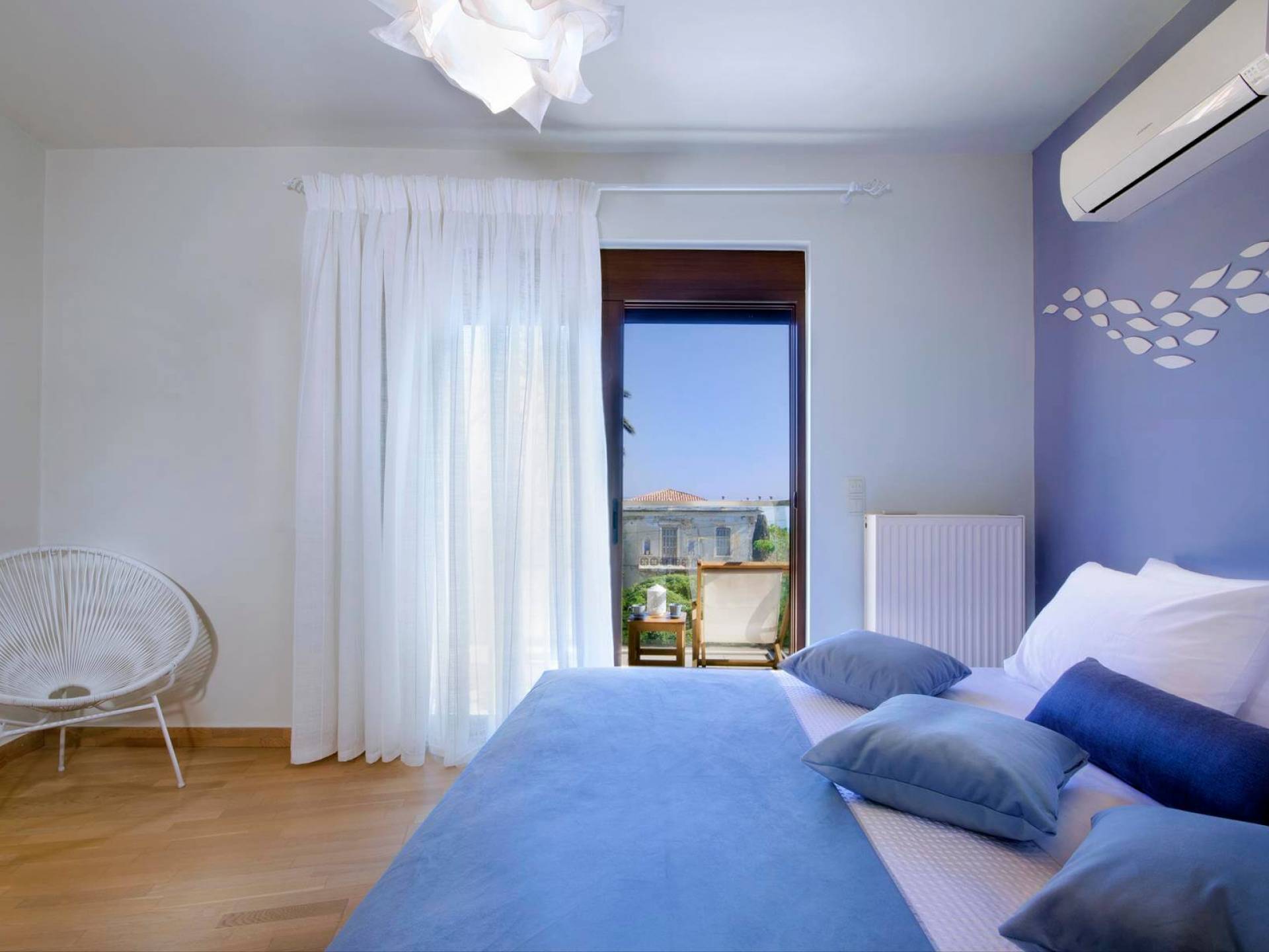 À l'étage supérieur de Halepa Villa Chania, il y a trois chambres (chacune avec son propre balcon), une mezzanine suspendue et une deuxième salle de bain avec bain à remous. Les deux chambres à l'avant donnent sur le palais, El. Le musée Venizelos et l'Académie française et la troisième chambre ont une vue sur le jardin d'Agia Magdalini. La chambre principale a un matelas 200 x 200 cm, la deuxième chambre a des lits jumeaux (peut être transformé en double si demandé) et la troisième chambre a un lit double queen. Halepa Villa Chania a des entrées séparées pour chaque étage et il y a un ascenseur aux deux étages.