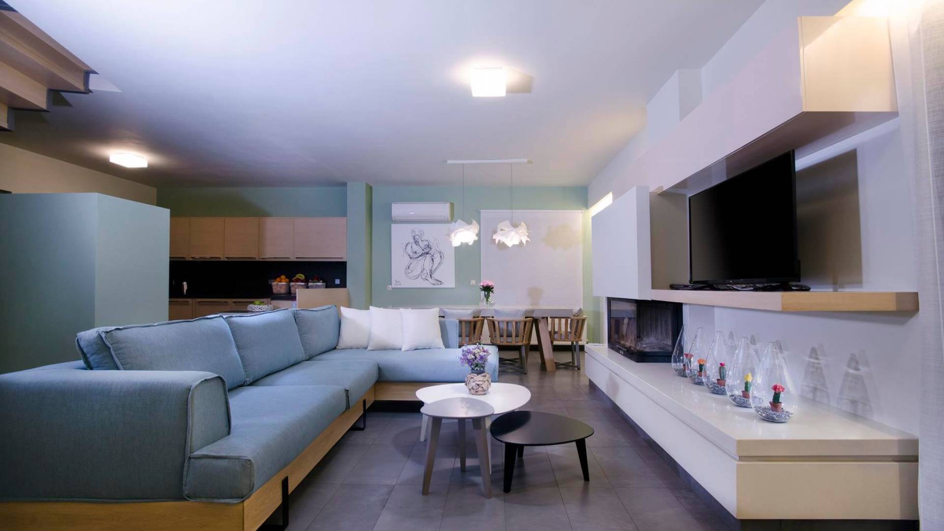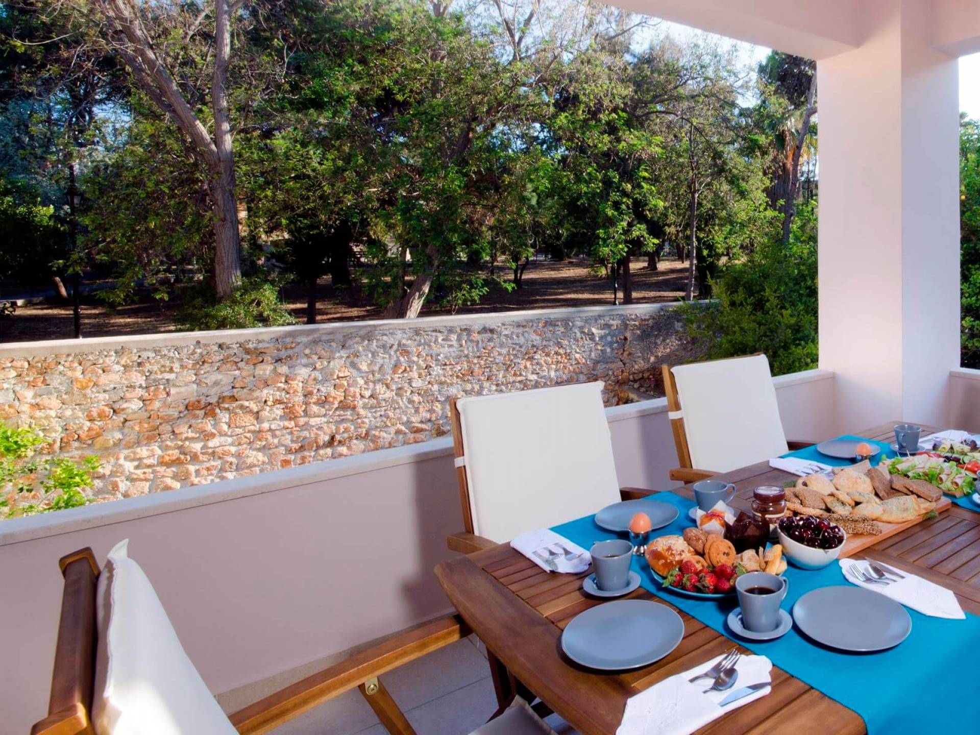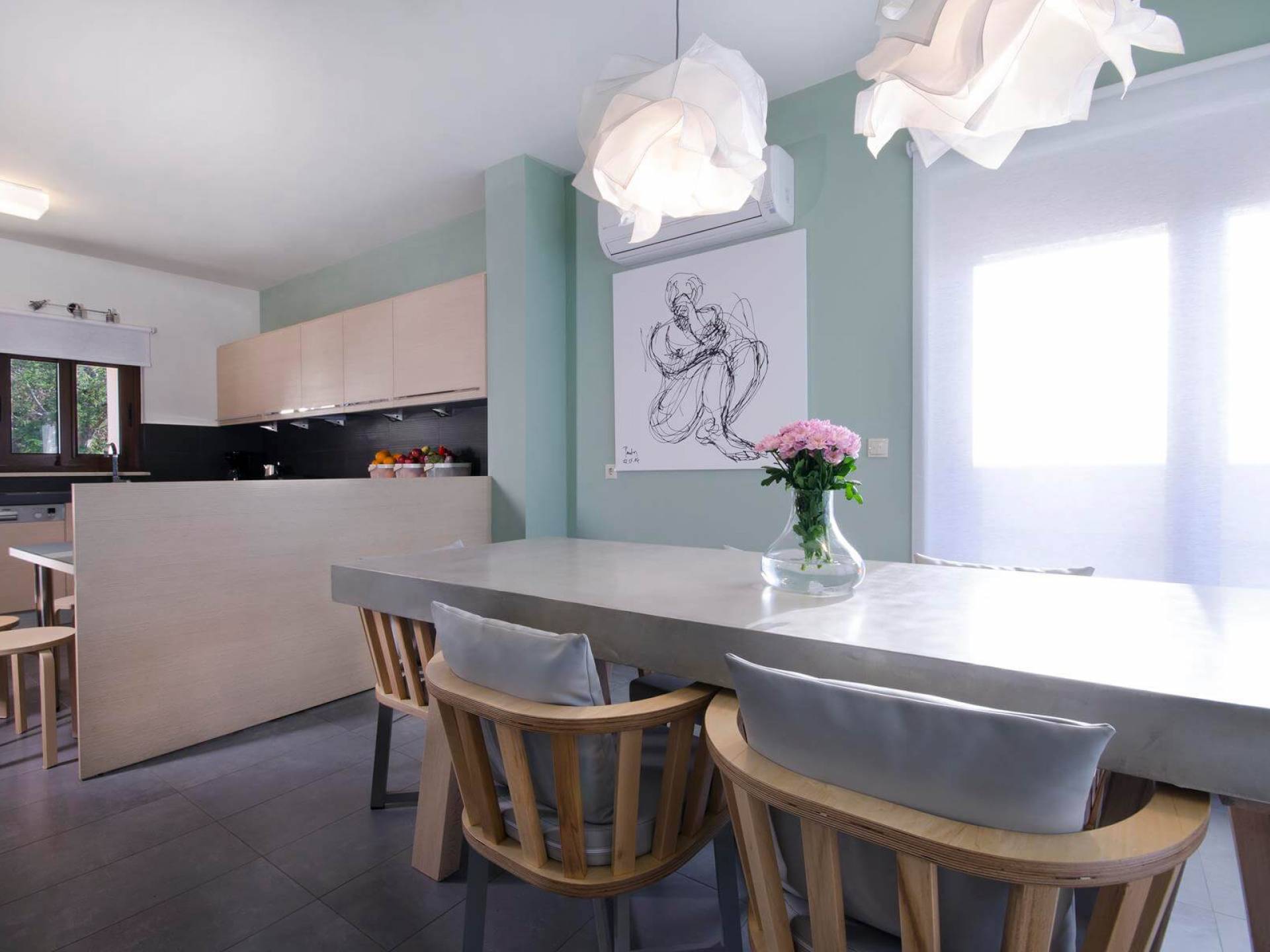 Le premier étage comprend un salon spacieux, une salle à manger, une cuisine à aire ouverte et une grande salle de bain (avec une colonne d'hydromassage). Il y a deux larges balcons; l'avant offre une vue sur le "palais" du prince George, le musée Venizelos et l'école française et l'arrière sur le jardin de l'église russe Agia Magdalini et notre jardin biologique d'où vous pouvez sélectionner autant de légumes que vous le souhaitez tout en tu restes ici !