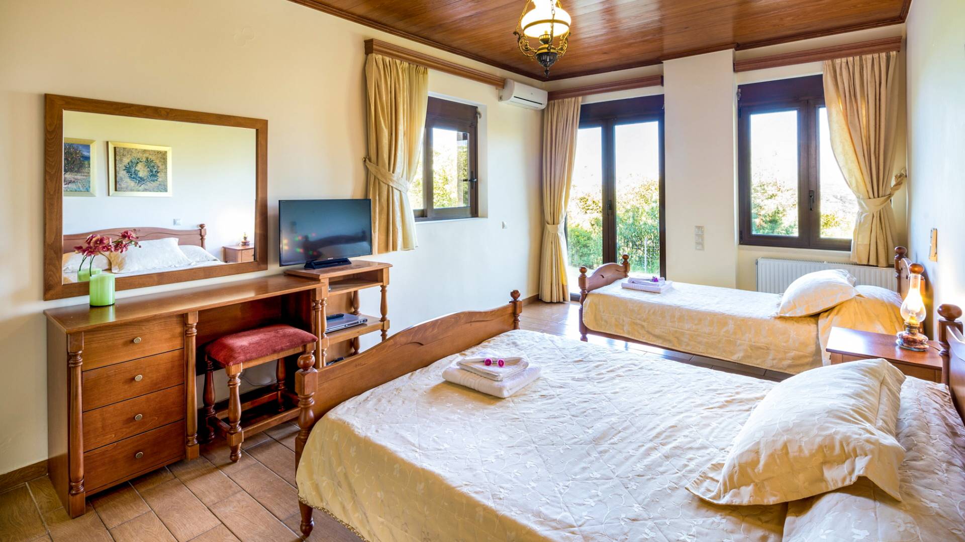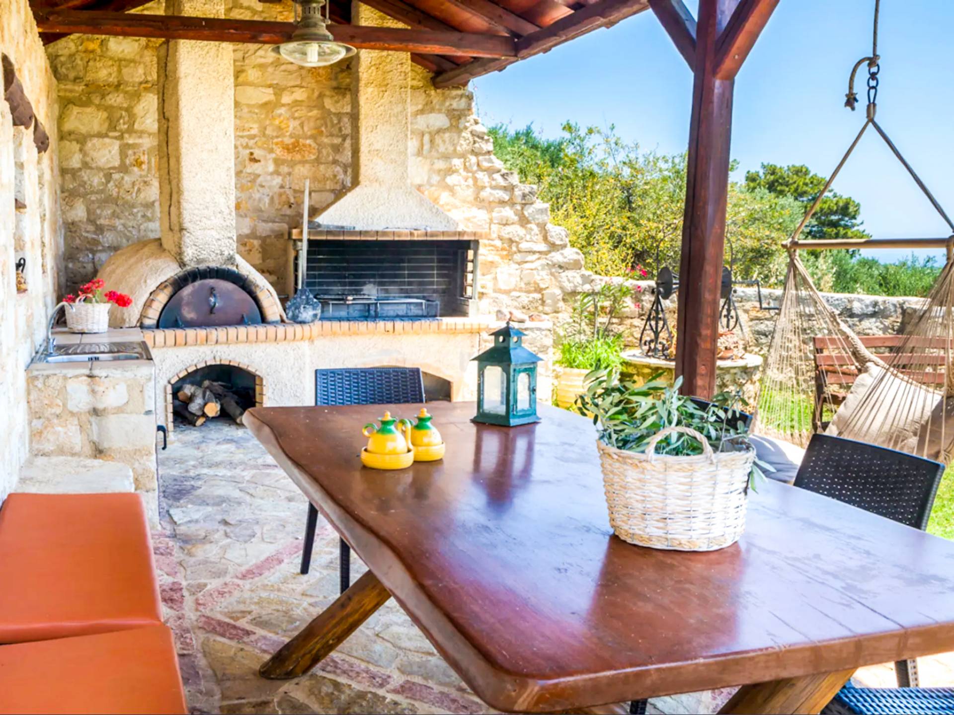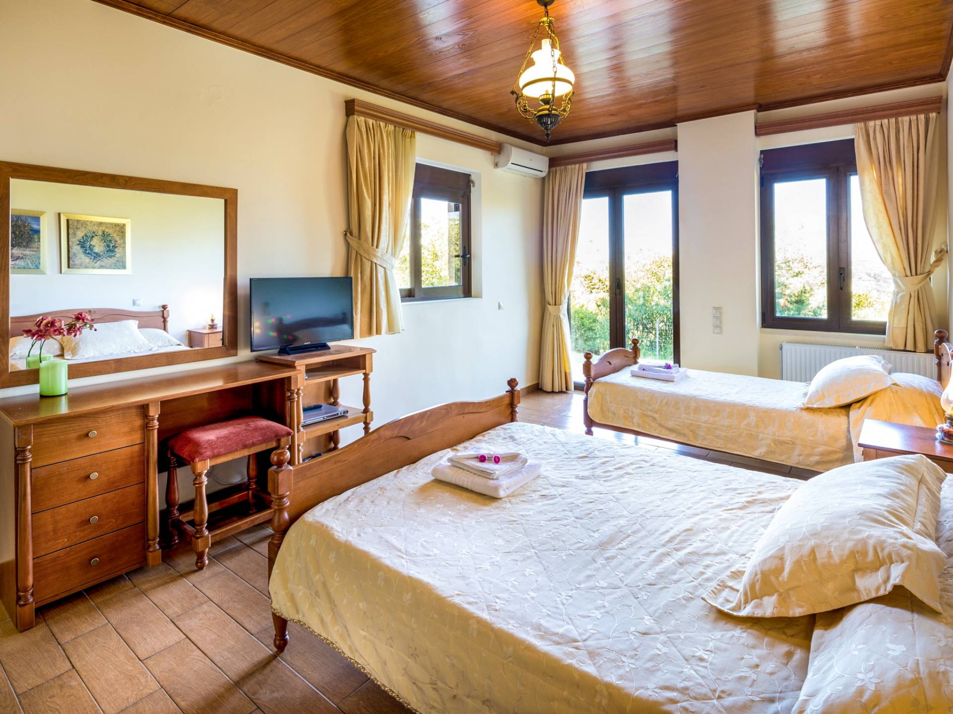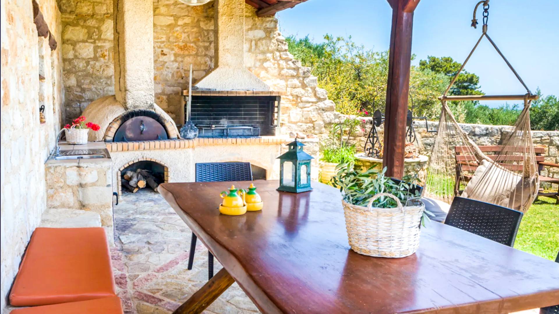 Dès l'entrée centrale, le salon avec 2 canapés et la table basse vous présente le rez-de-chaussée de la villa. Dans le salon, vous trouverez une télévision par satellite à écran plasma, un lecteur DVD, un lecteur CD stéréo et une grande cheminée. Reliée au salon, la cuisine est dotée de tout le confort moderne. Vous y trouverez également la table à manger avec 8 chaises et dans le coin la cheminée. La vue panoramique sur le paysage depuis les hautes montagnes jusqu'à la mer bleue peut être appréciée depuis la table à manger ainsi que depuis le groupe de canapés et le balcon. La villa Iris dispose de 4 chambres, deux avec lits doubles, une avec 3 lits simples et une avec 2 lits simples, toutes avec salle de bains privative, TV, DVD et baignoire ou douche à hydromassage. Deux chambres ont un balcon privé et les deux autres ont accès au jardin.