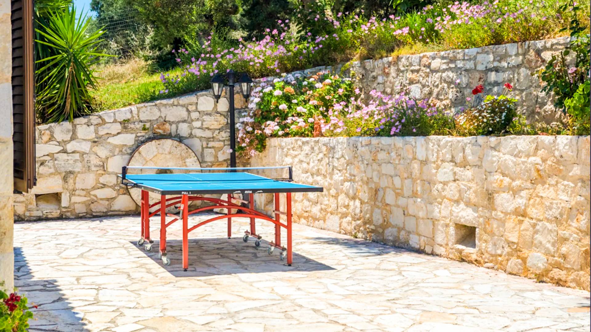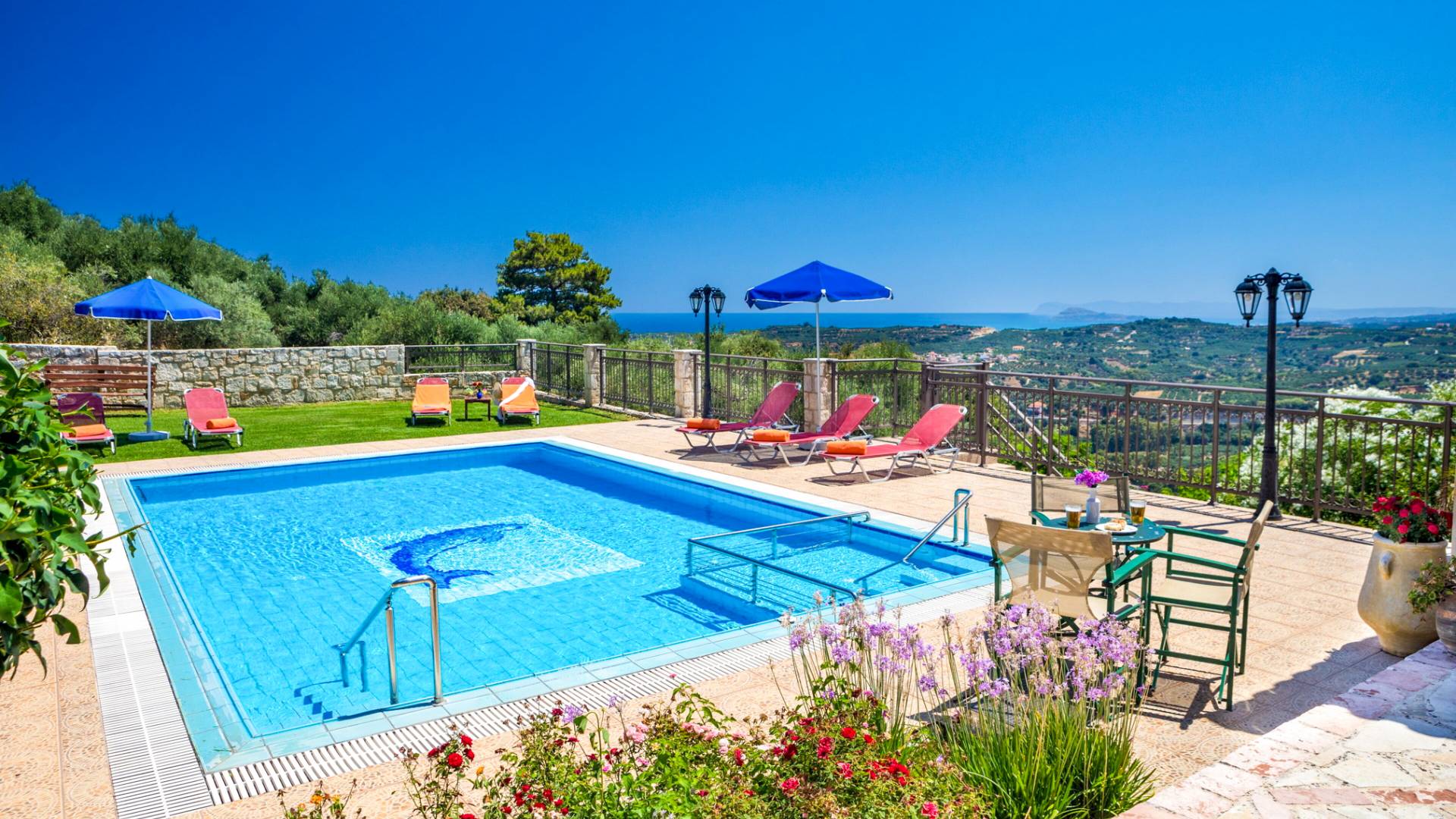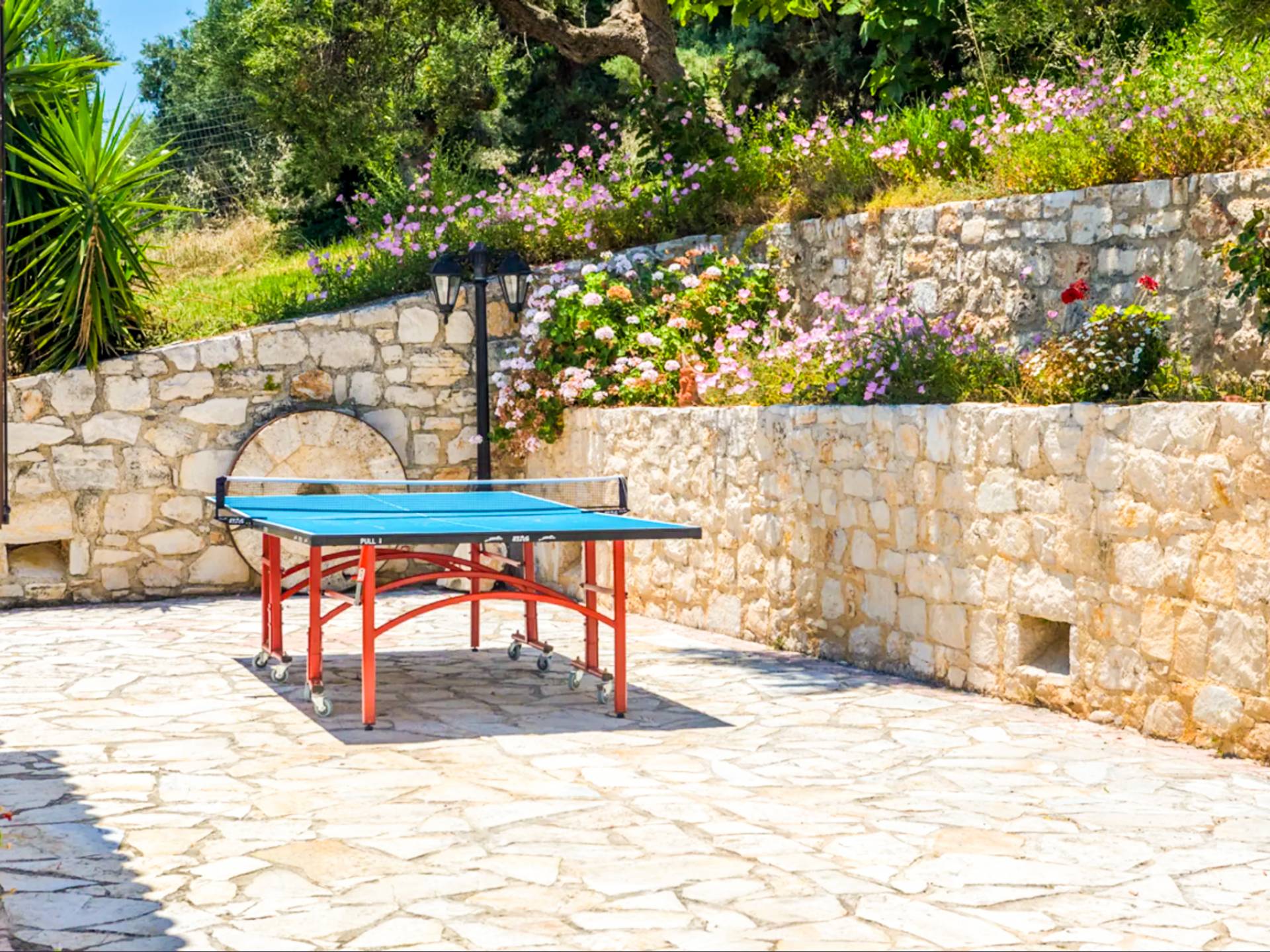 L'Iris Villa Chania dispose d'un grand jardin et d'une piscine avec un mobilier d'extérieur complet (transats, parasols, table, chaises, etc.). Il y a aussi une table de ping-pong en plein air. La grande piscine privée et la plus petite piscine pour enfants avec vue panoramique promettent des moments fantastiques. Détendez-vous et profitez de vos vacances à Iris Villa Chania.