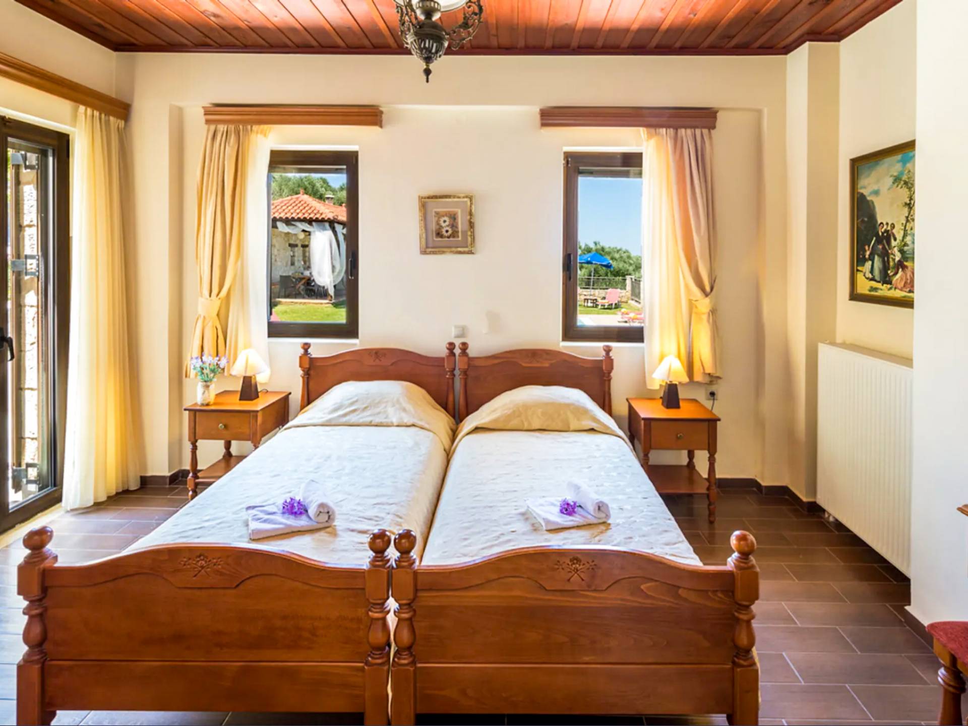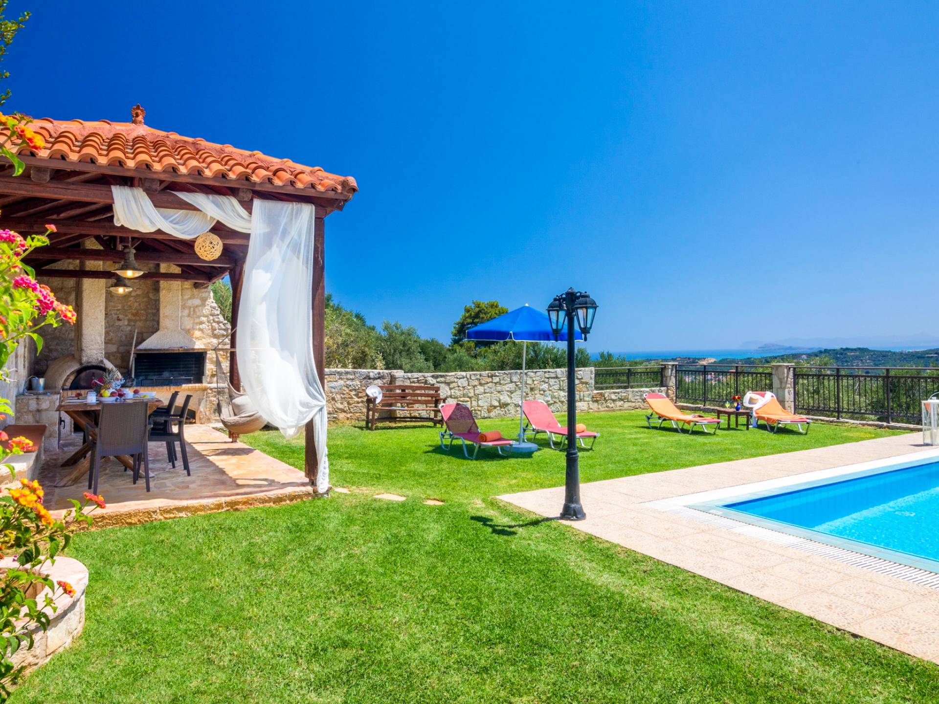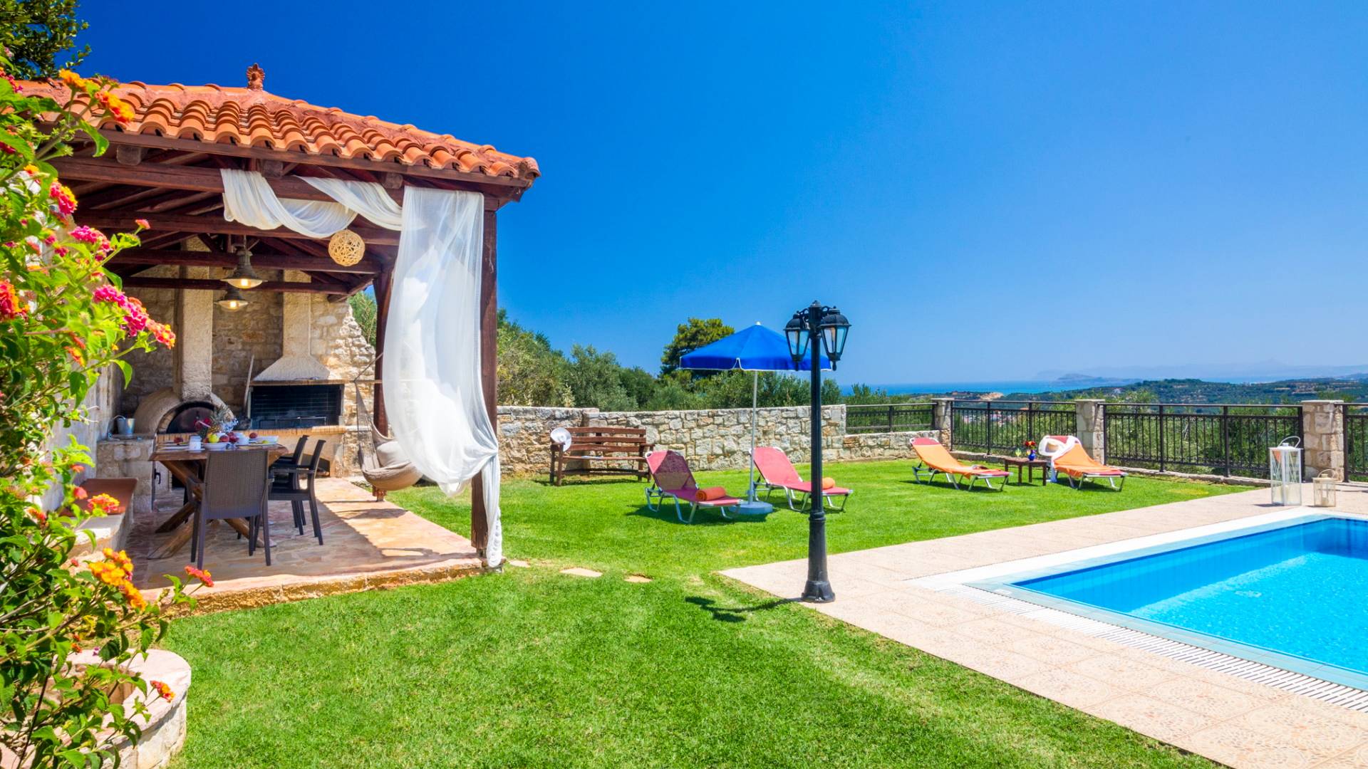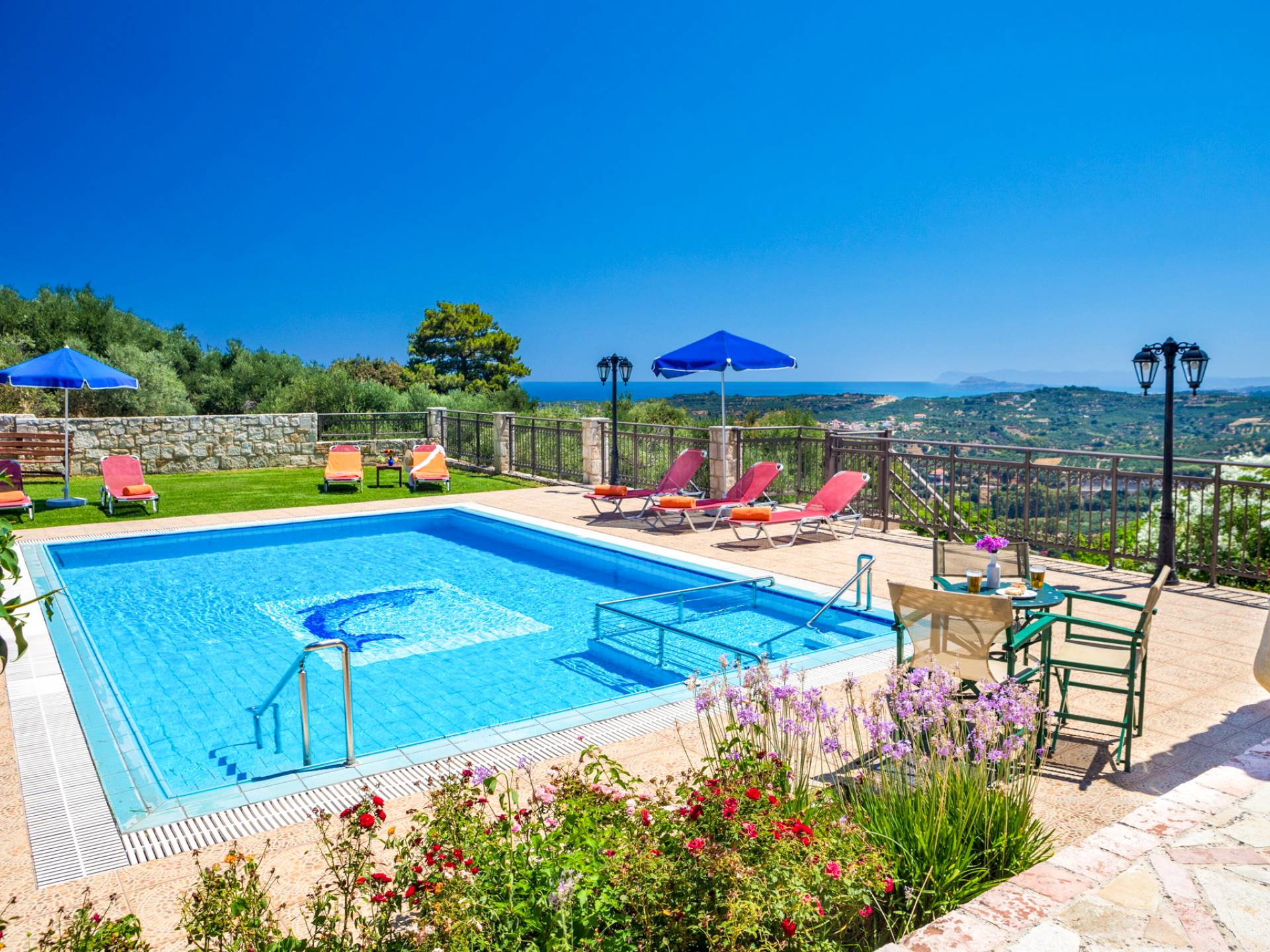 L'Iris Villa Chania dispose d'un grand jardin et d'une piscine avec un mobilier d'extérieur complet (transats, parasols, table, chaises, etc.). Il y a aussi une table de ping-pong en plein air. La grande piscine privée et la plus petite piscine pour enfants avec vue panoramique promettent des moments fantastiques. Détendez-vous et profitez de vos vacances à Iris Villa Chania.