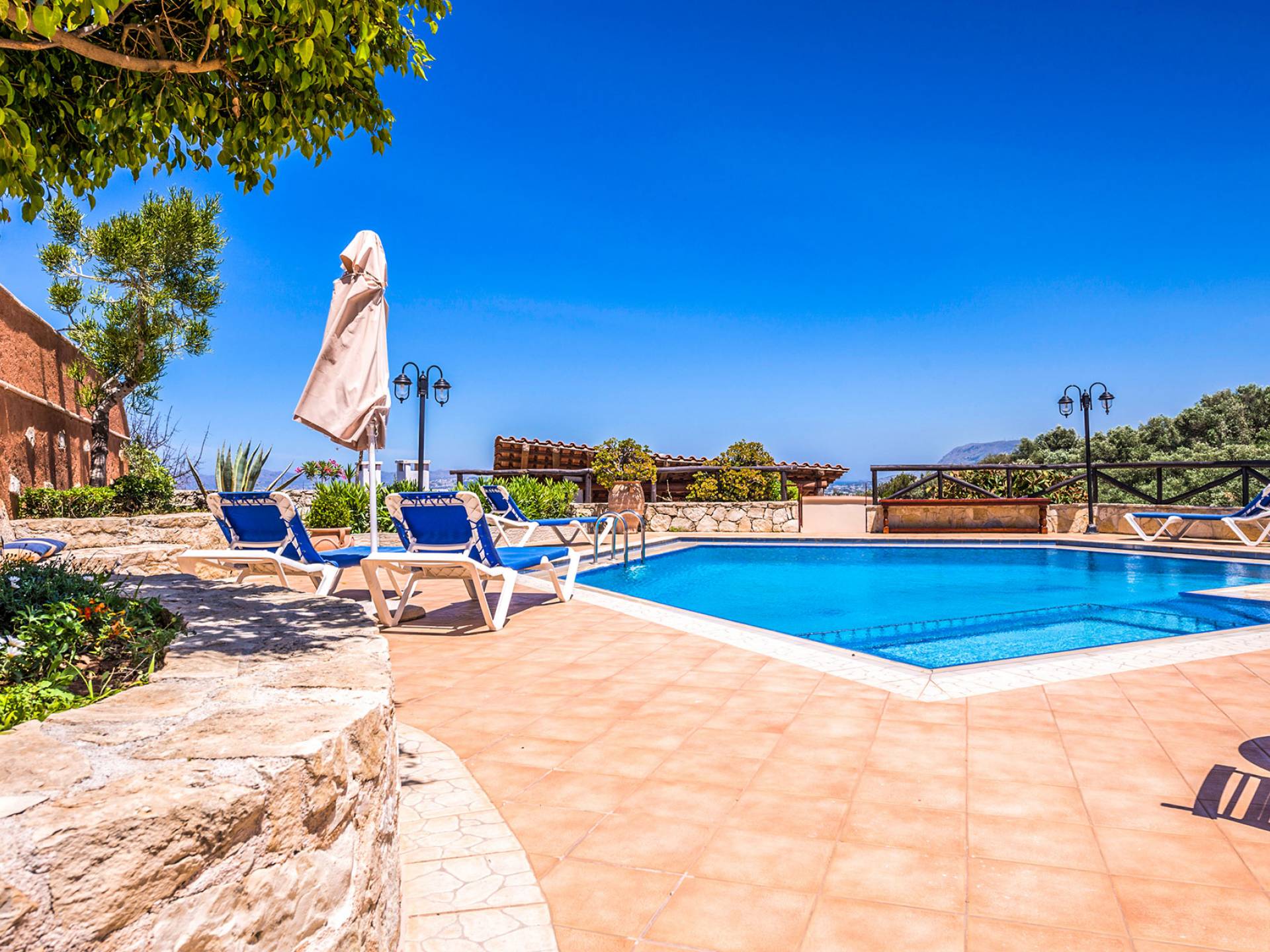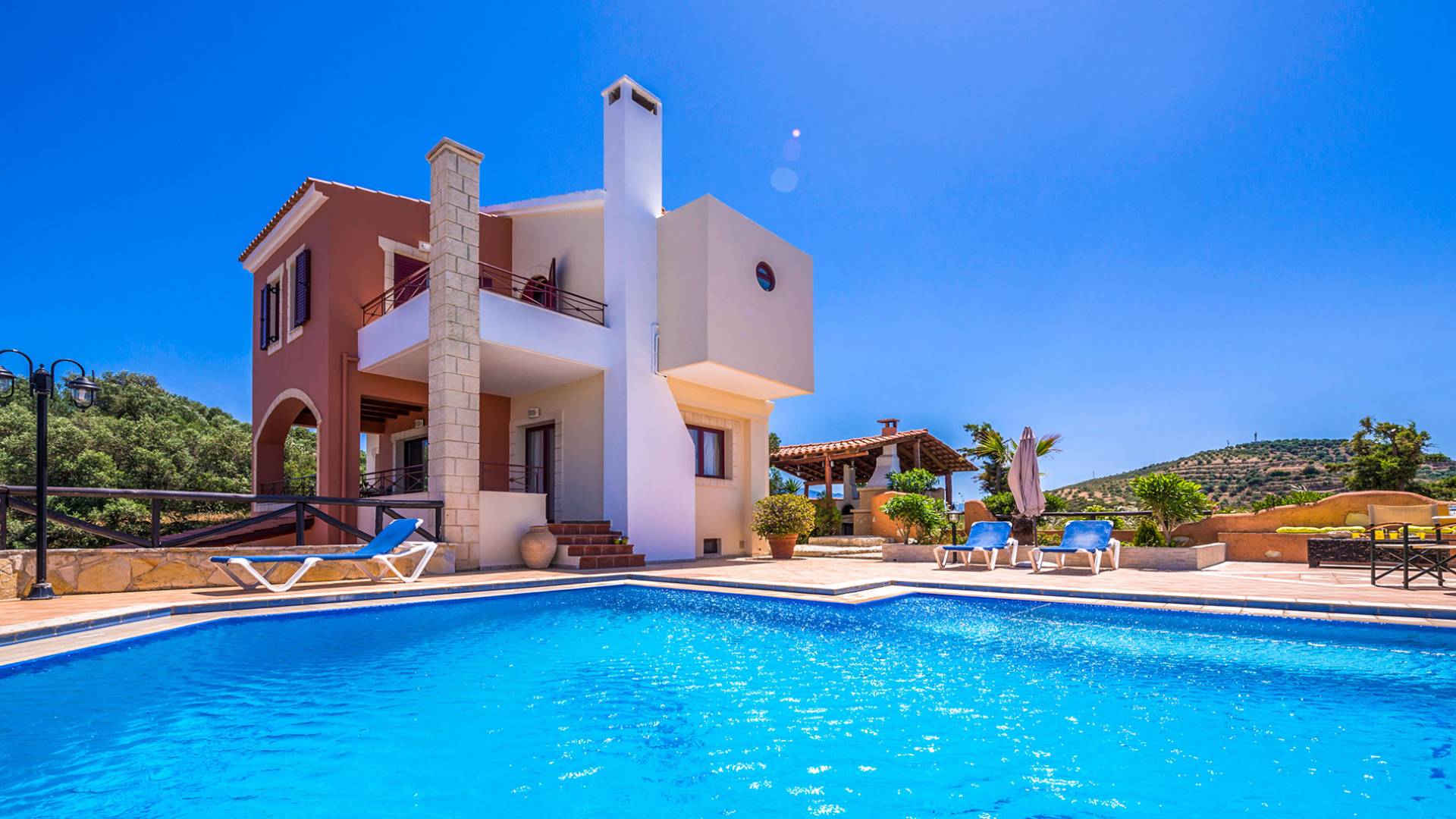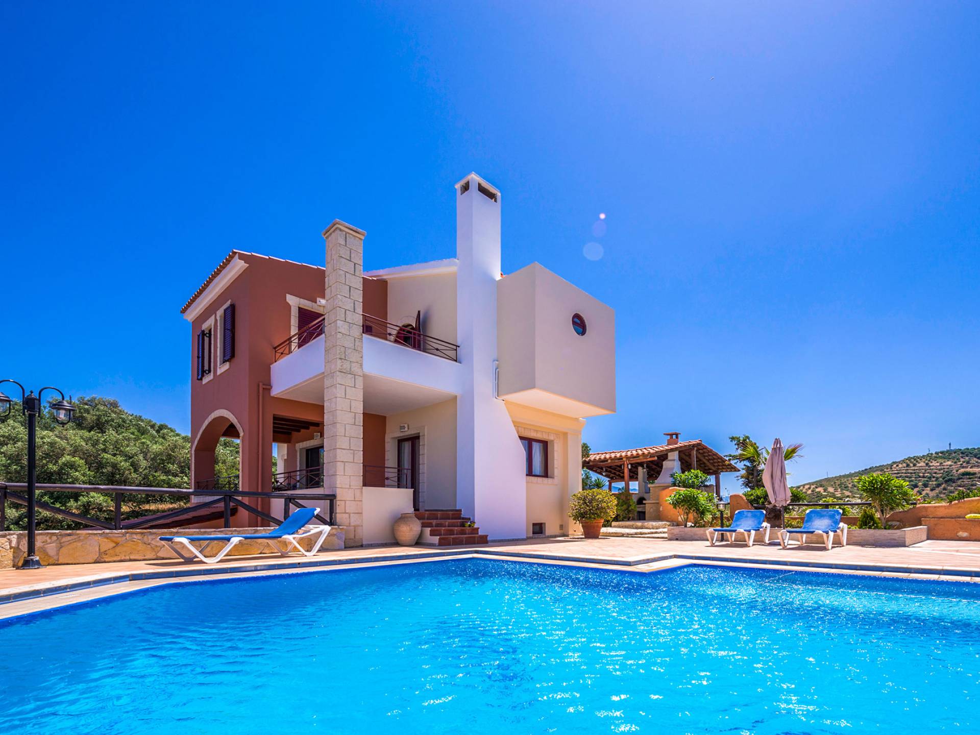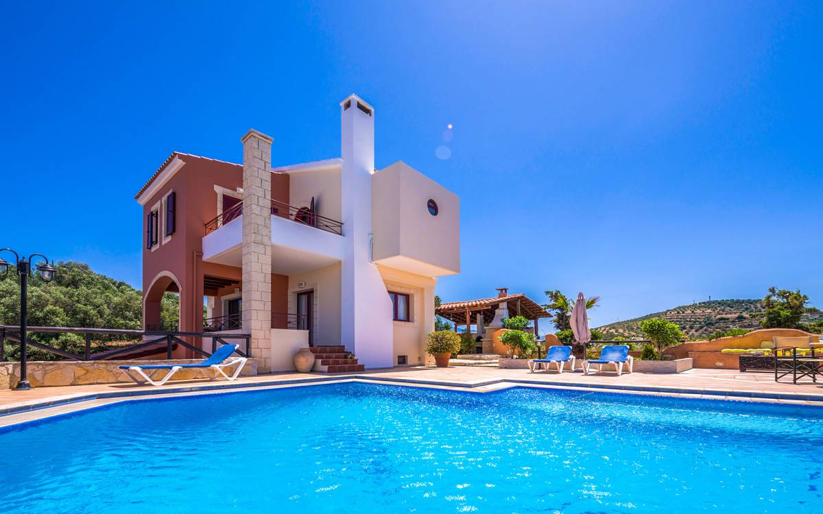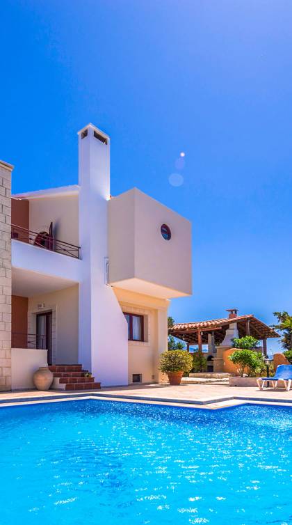 Toutes les villas disposent également d'une piscine privée chauffée séparée, d'un jacuzzi, d'une télévision par satellite, d'une cuisine entièrement équipée, d'un barbecue, de la climatisation, d'un téléphone, d'un lave-linge, d'un lave-vaisselle, d'un sèche-cheveux, d'un coffre-fort, d'une chaîne stéréo et d'un parking privé. Chaque villa Skenare est équipée d'un barbecue de construction traditionnelle, où vous et vos amis pourrez profiter d'inoubliables nuits d'été au bord de la piscine. Chaque villa a sa propre piscine ayant pour toile de fond le golfe de La Canée et la montagne Lefka Ori. Les villas Skenare disposent chacune d'une piscine privée de 45 m², d'un bassin pour enfants intégré et d'un espace jacuzzi.