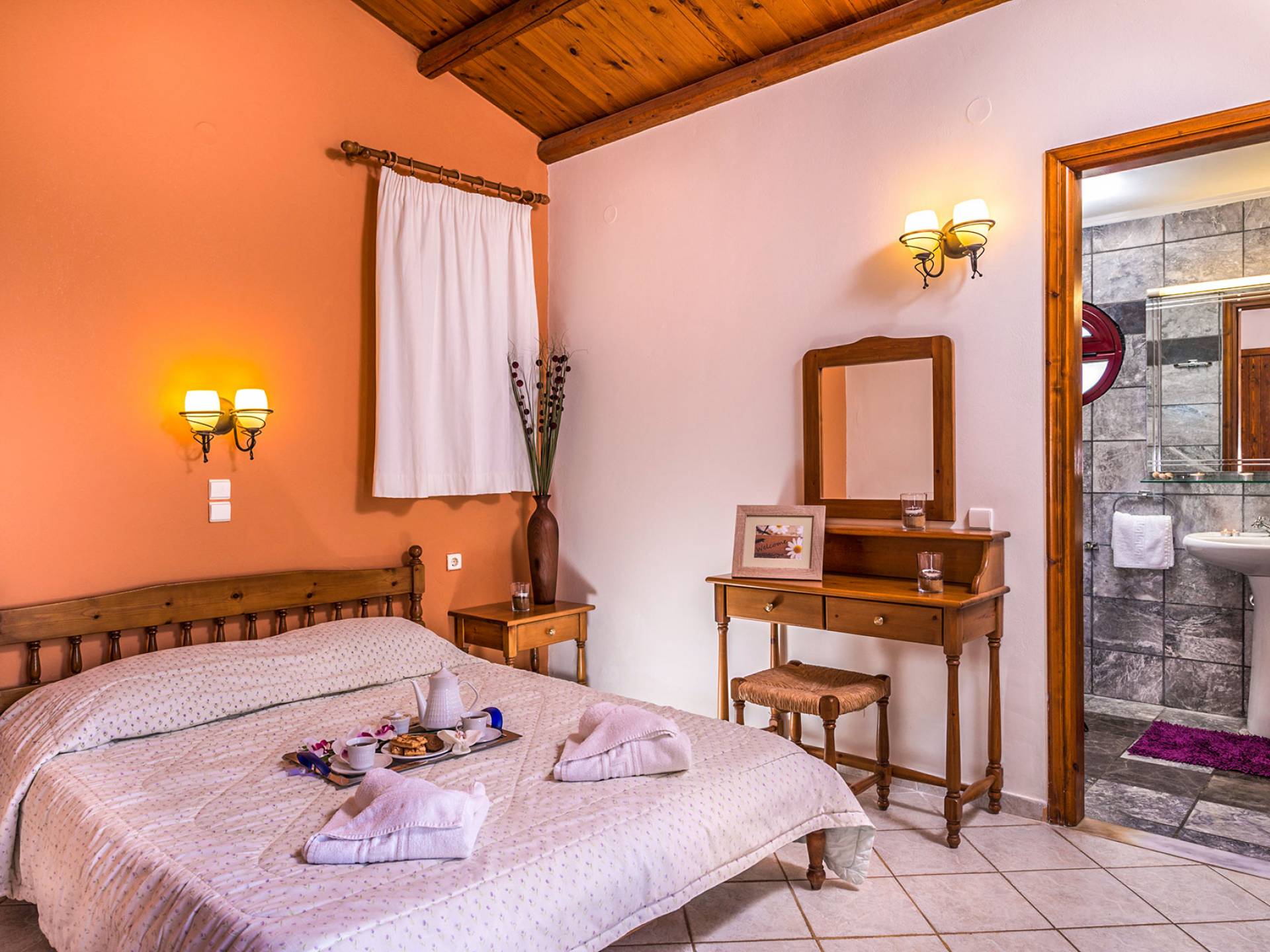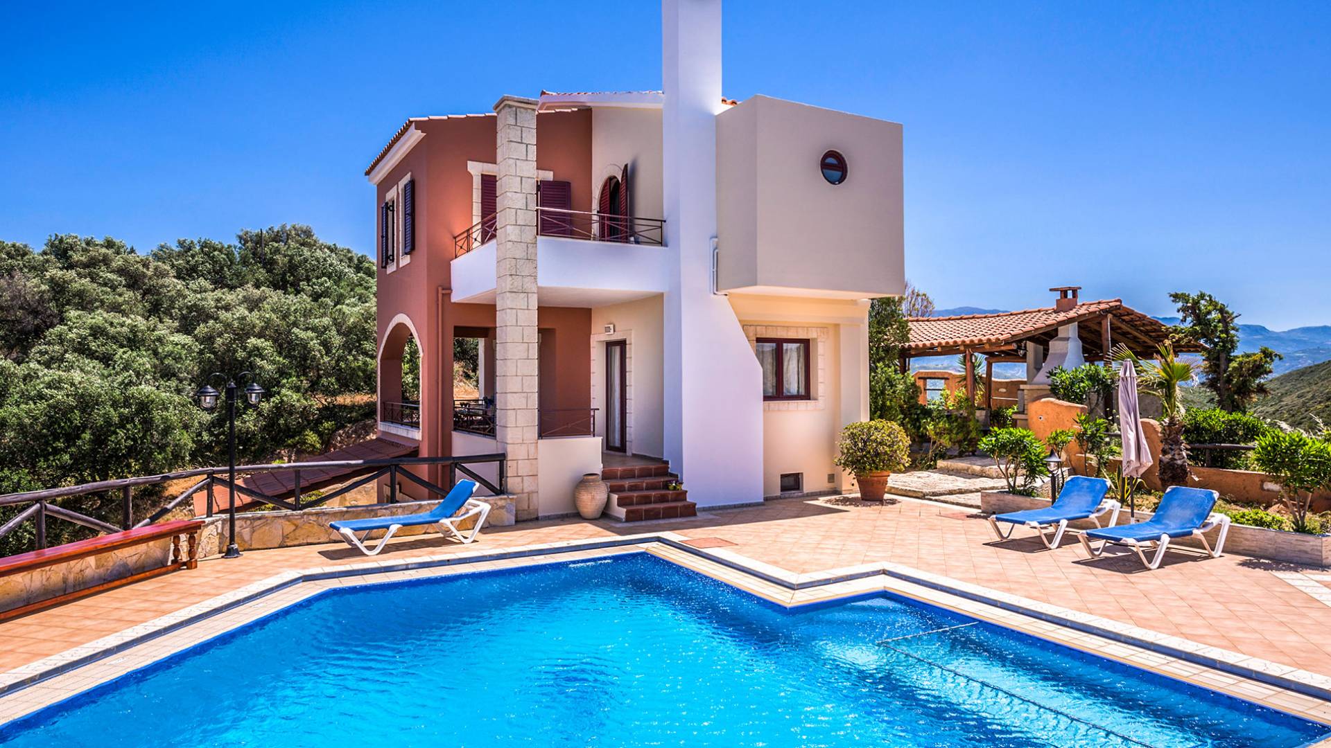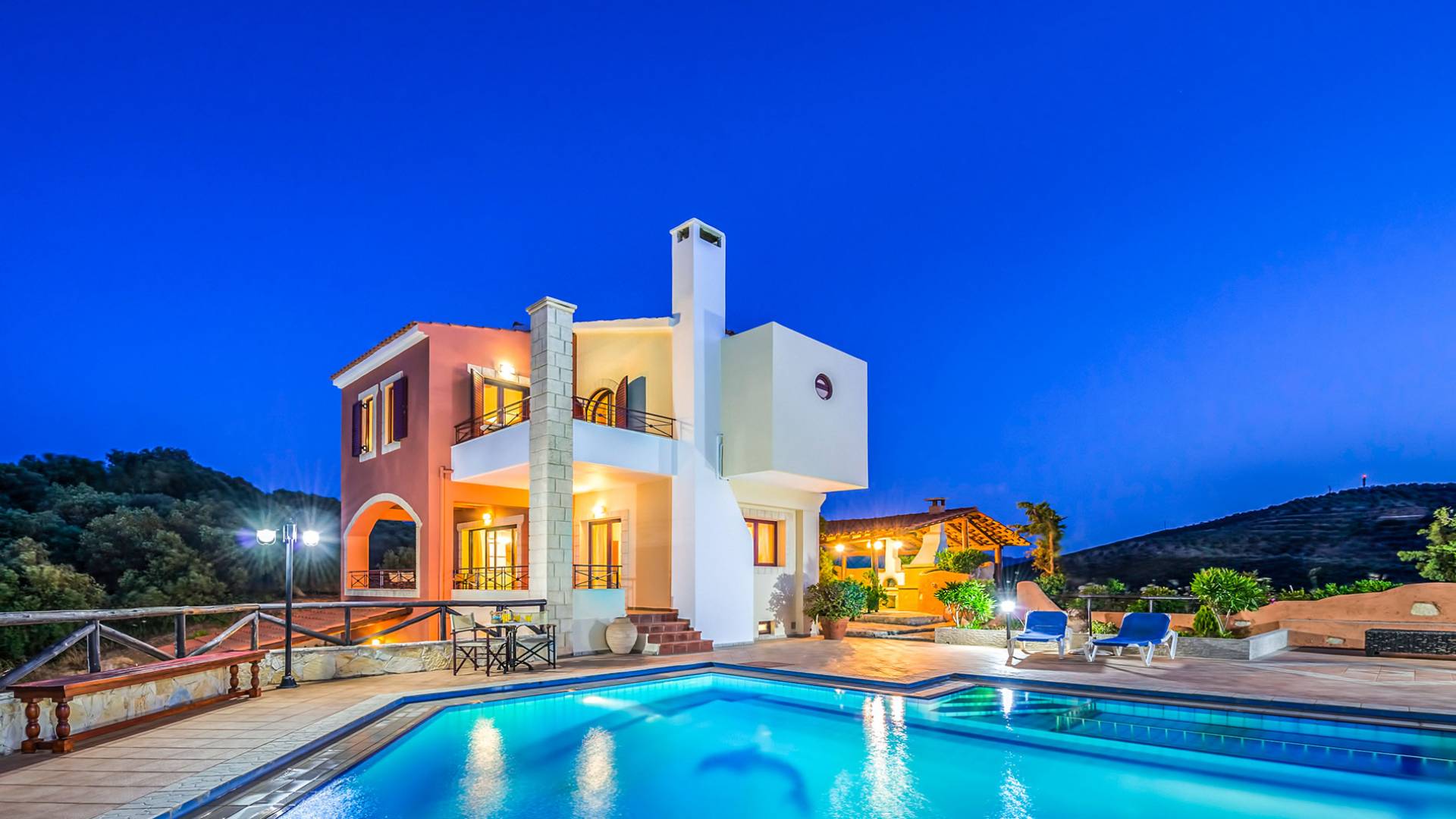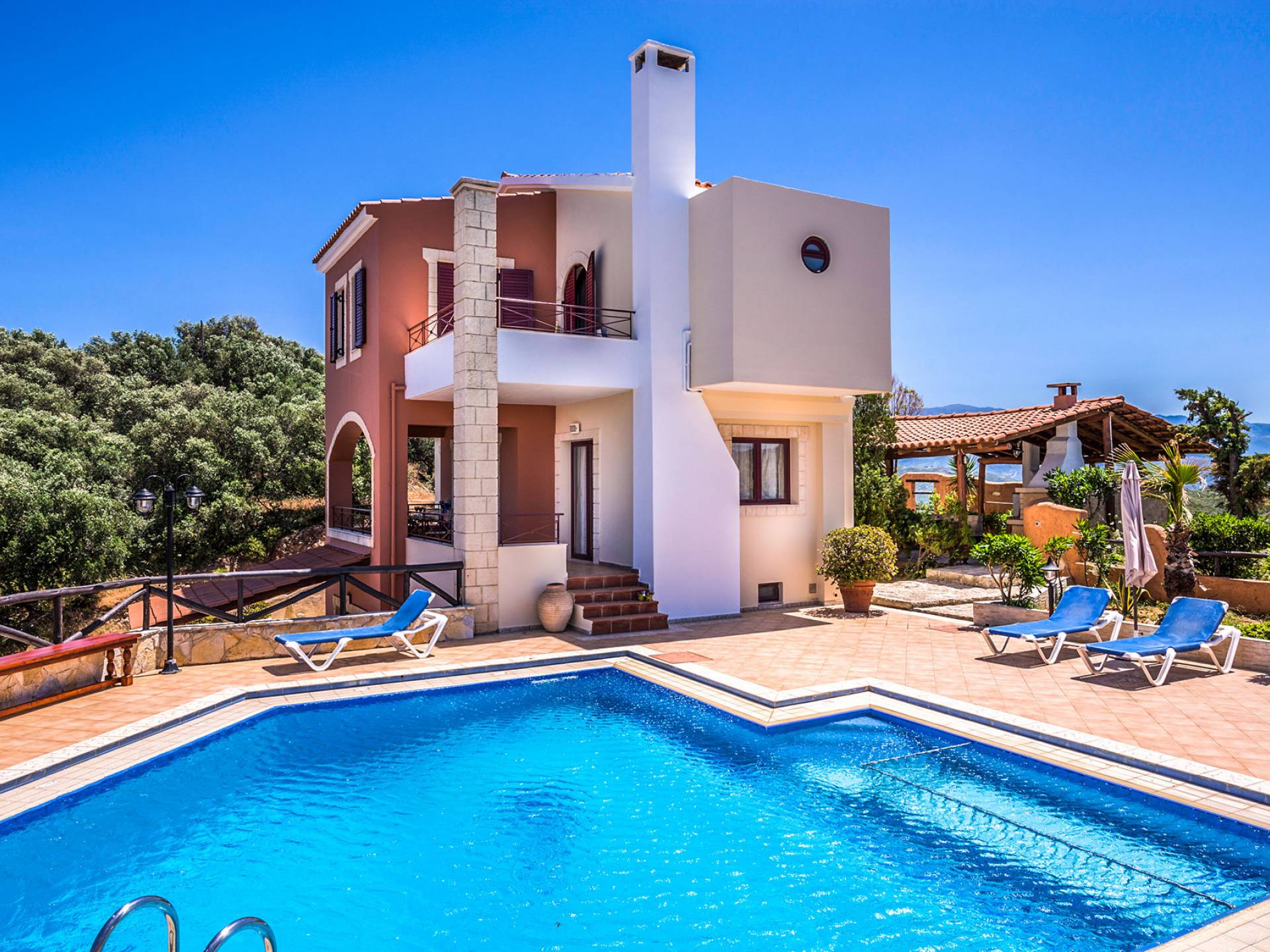 Toutes les villas disposent également d'une piscine privée chauffée séparée, d'un jacuzzi, d'une télévision par satellite, d'une cuisine entièrement équipée, d'un barbecue, de la climatisation, d'un téléphone, d'un lave-linge, d'un lave-vaisselle, d'un sèche-cheveux, d'un coffre-fort, d'une chaîne stéréo et d'un parking privé. Chaque villa Skenare est équipée d'un barbecue de construction traditionnelle, où vous et vos amis pourrez profiter d'inoubliables nuits d'été au bord de la piscine. Chaque villa a sa propre piscine ayant pour toile de fond le golfe de La Canée et la montagne Lefka Ori. Les villas Skenare disposent chacune d'une piscine privée de 45 m², d'un bassin pour enfants intégré et d'un espace jacuzzi.