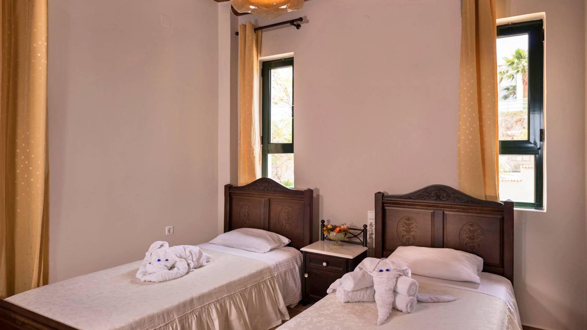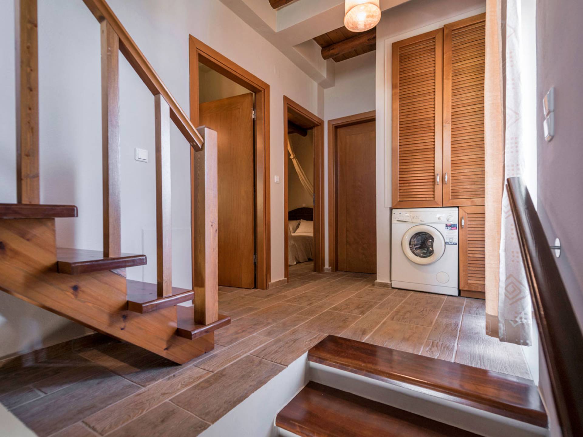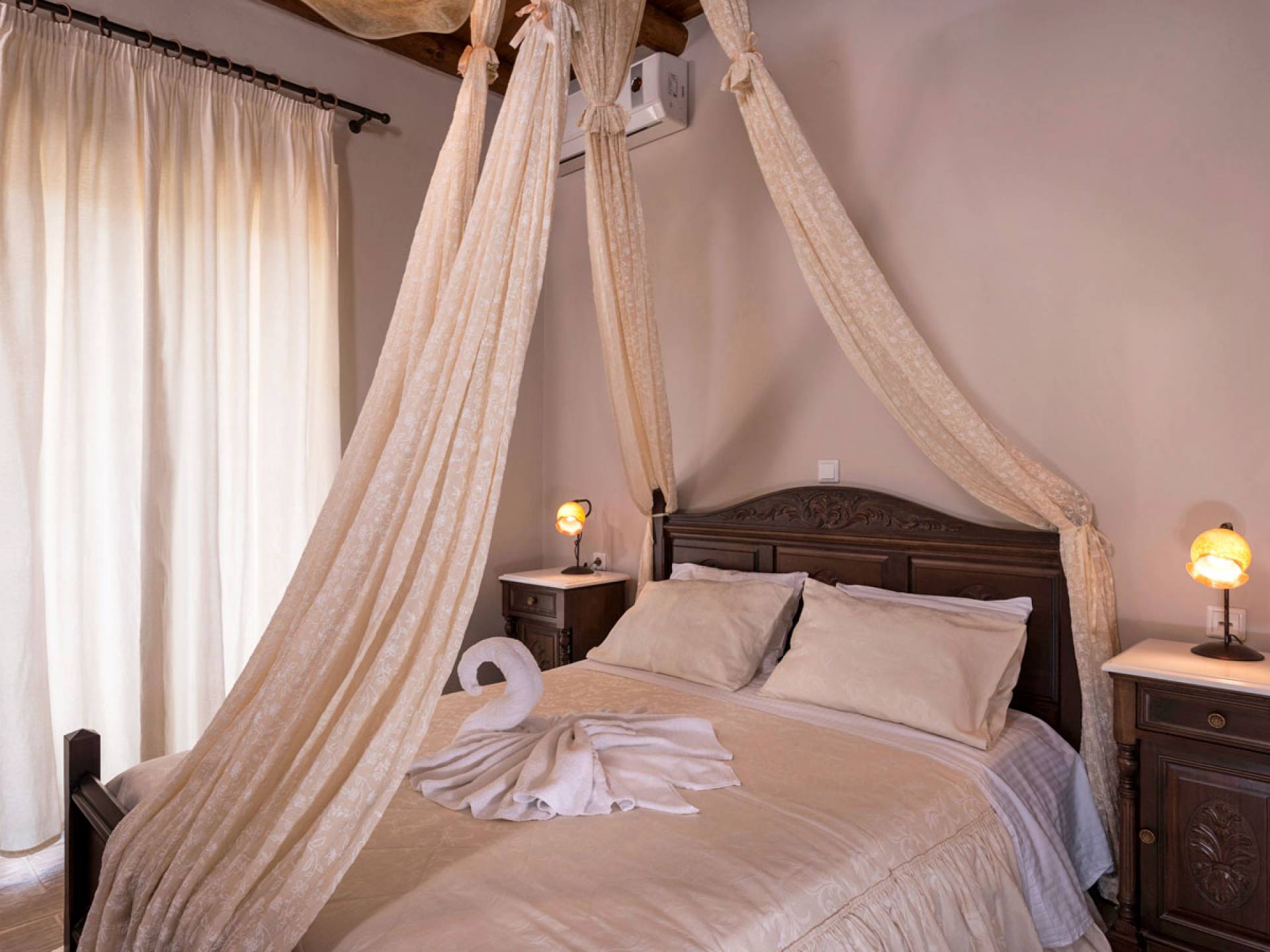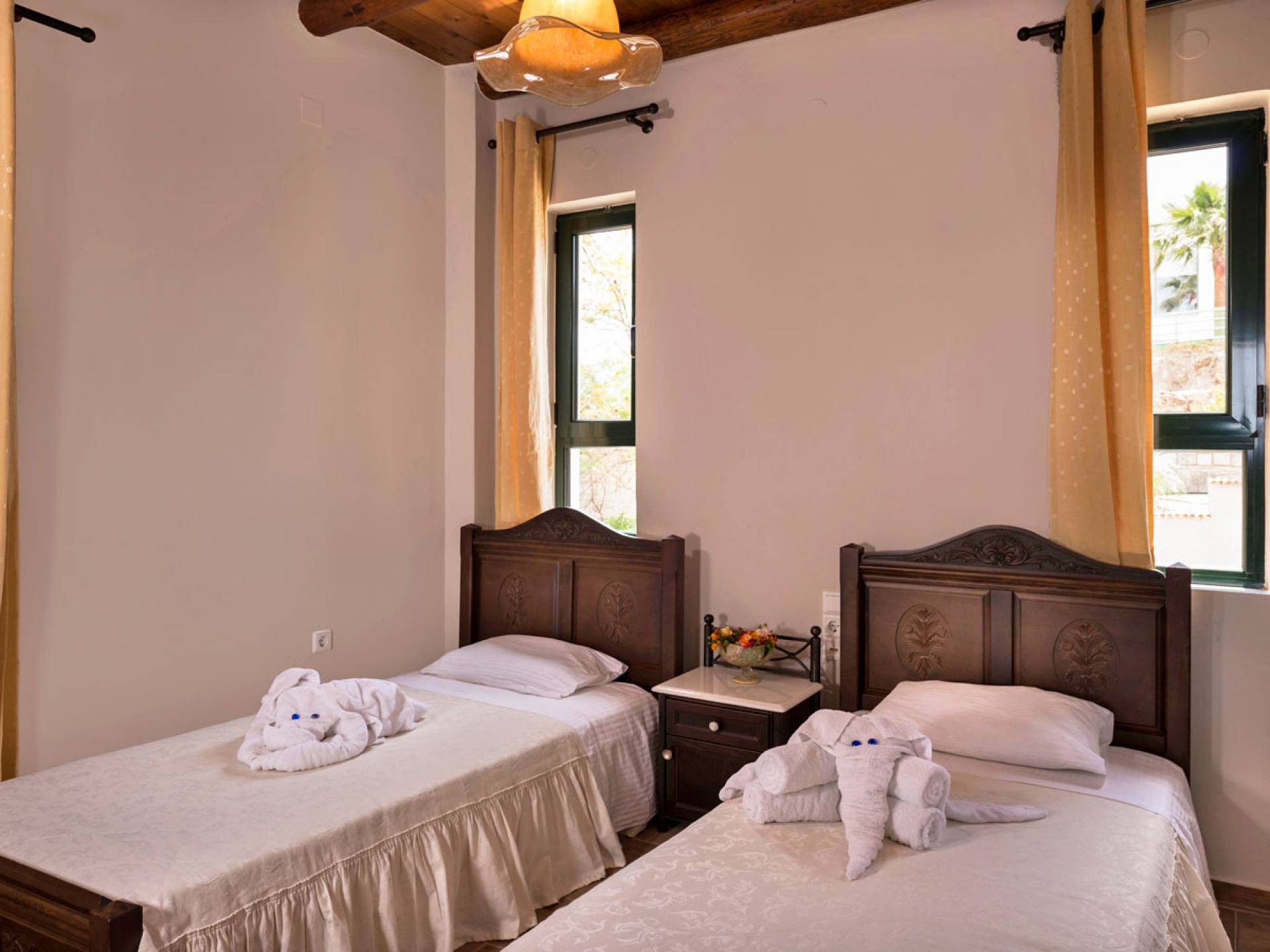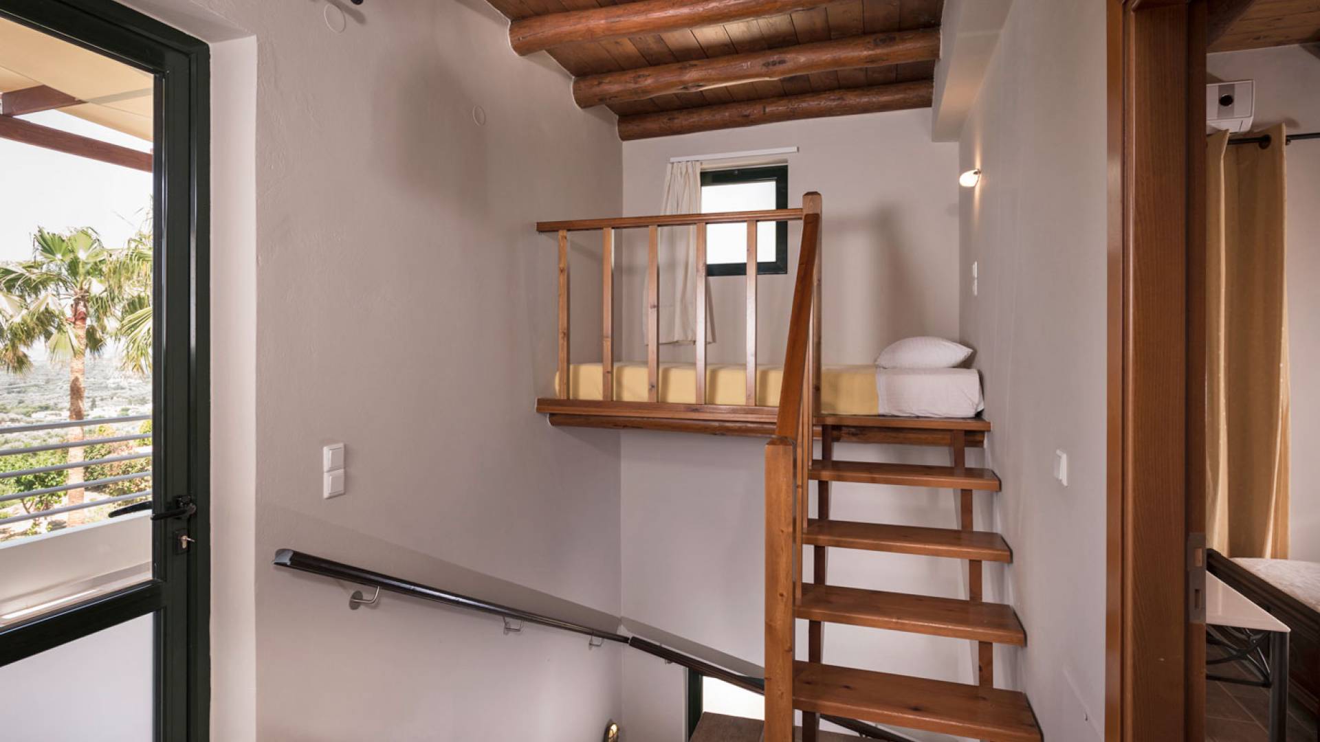 Kissos Villa Chania avec piscine privée à louer à Xamoudochori, Chania, Crète. Kissos Villa Chania accueille entre 2 et 5 personnes car elle dispose d'une chambre avec un grand lit double, une autre avec deux lits simples et un grenier en bois avec un lit simple. Bois et textiles délicats caractérisent la décoration qui vous charmera à n'en pas douter. Des moustiquaires vaporeuses, des miroirs faits à la main et des meubles étonnants vous aident à vous sentir comme à la maison.