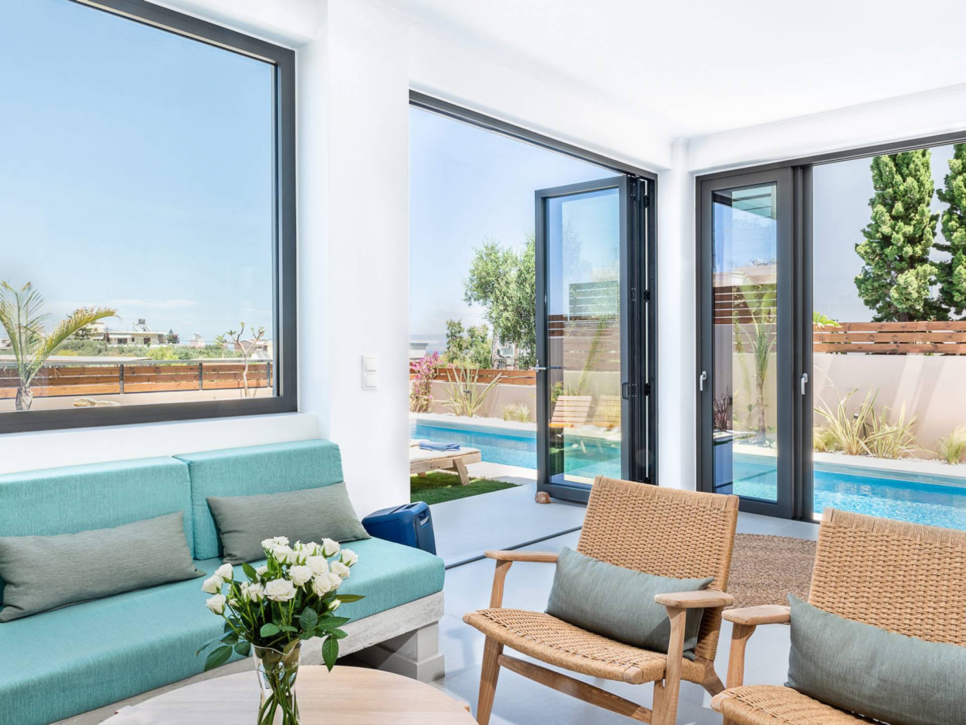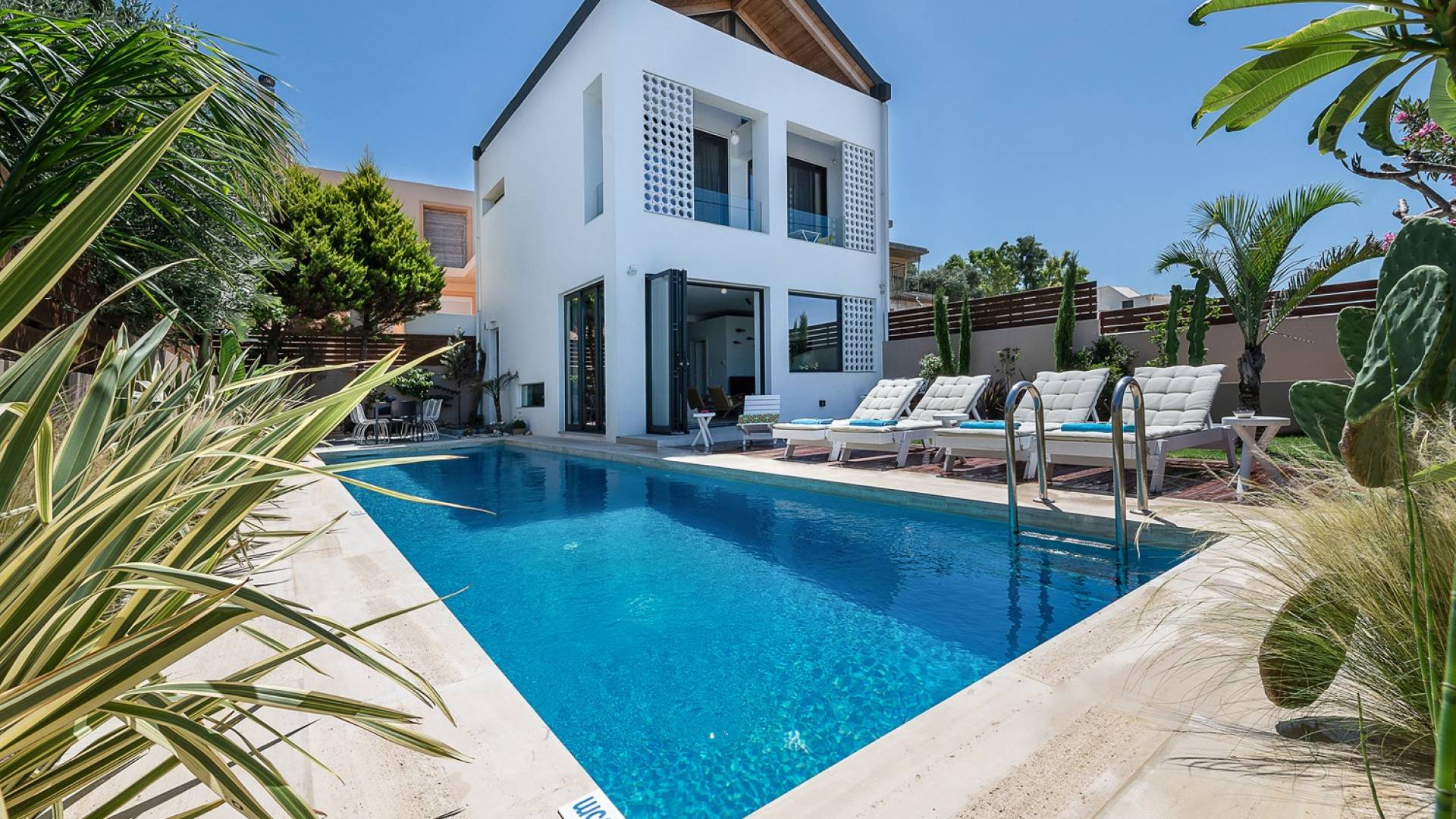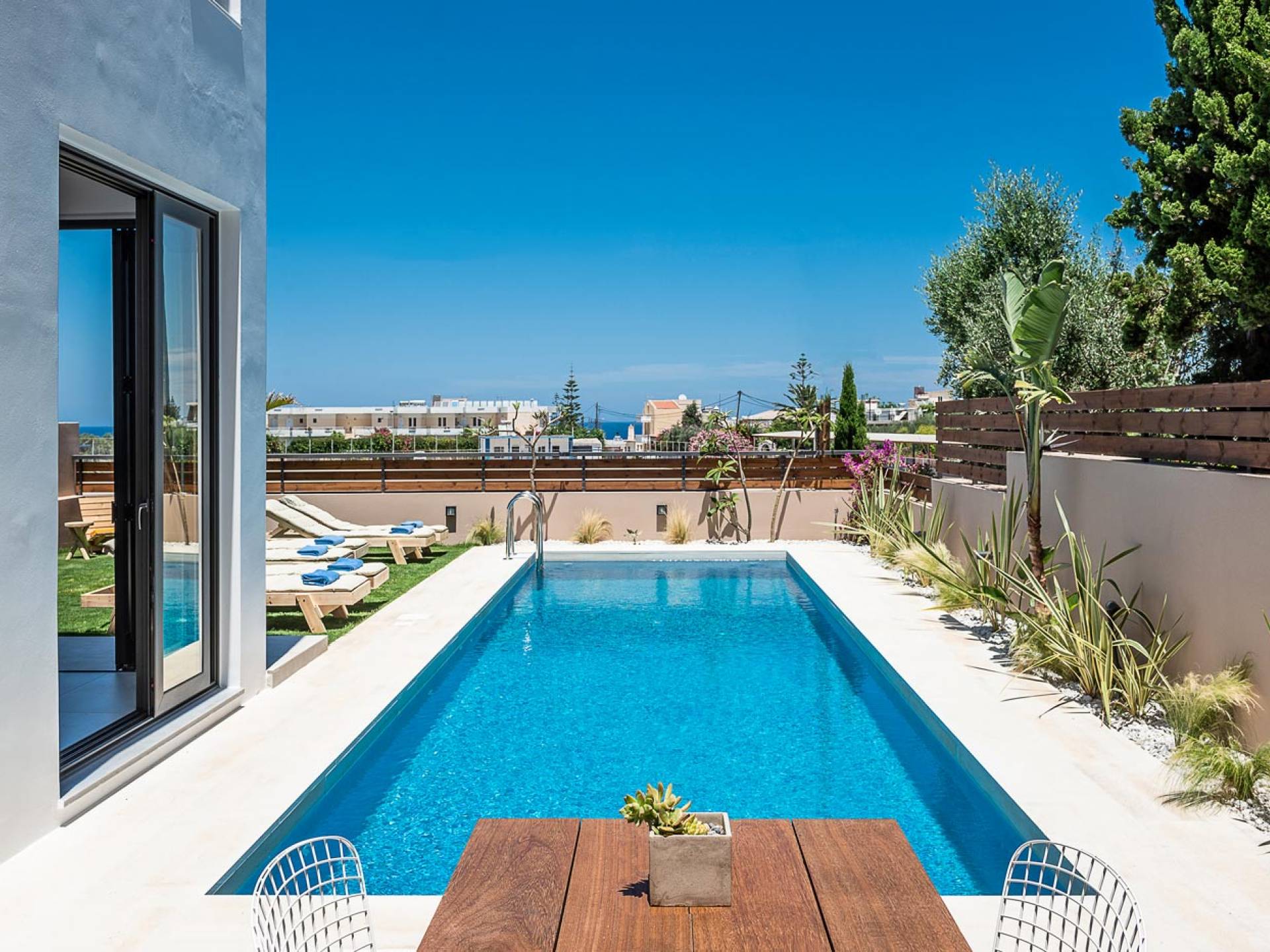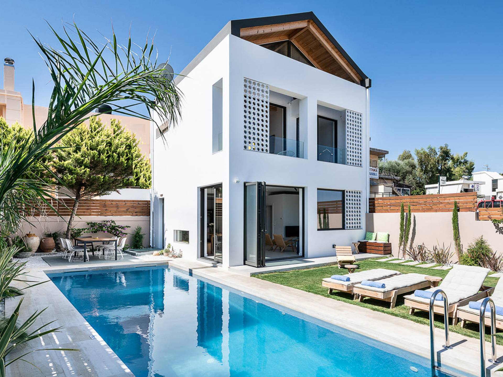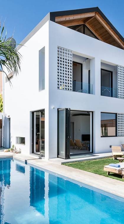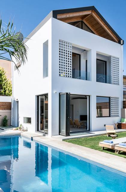 Light Villa Chania est une location de villa de luxe avec 5 chambres et une piscine privée chauffée. L'architecture élégante du bâtiment et sa décoration intérieure sophistiquée et minimaliste associée à tout le confort moderne d'une maison de vacances de luxe offre une très belle expérience de séjour à ses hôtes. Un accent particulier a été mis sur la détente du client, c'est pourquoi toutes les chambres sont équipées de matelas et de systèmes de couchage fabriqués à la main avec des matériaux naturels de COCO-MAT.
