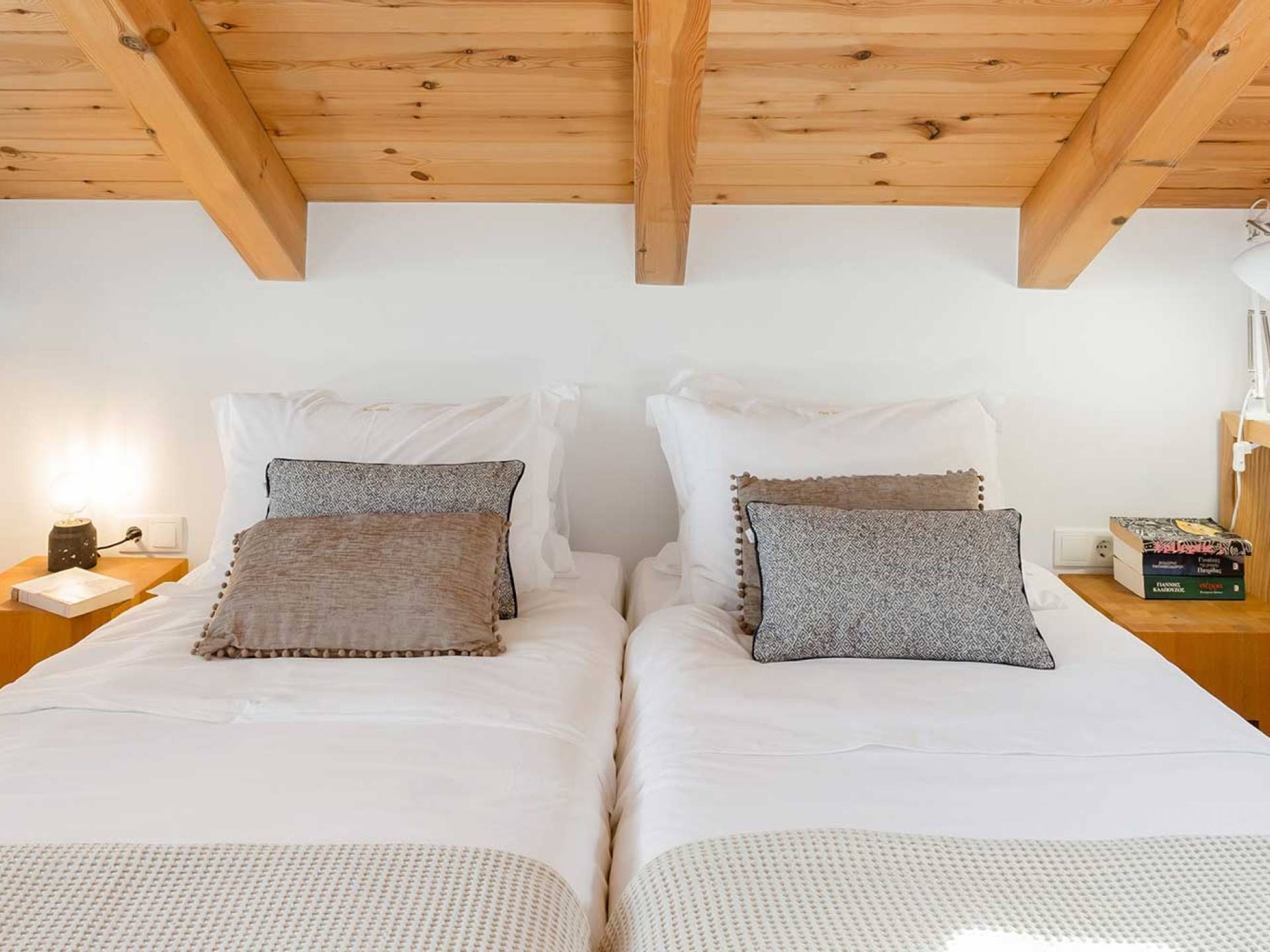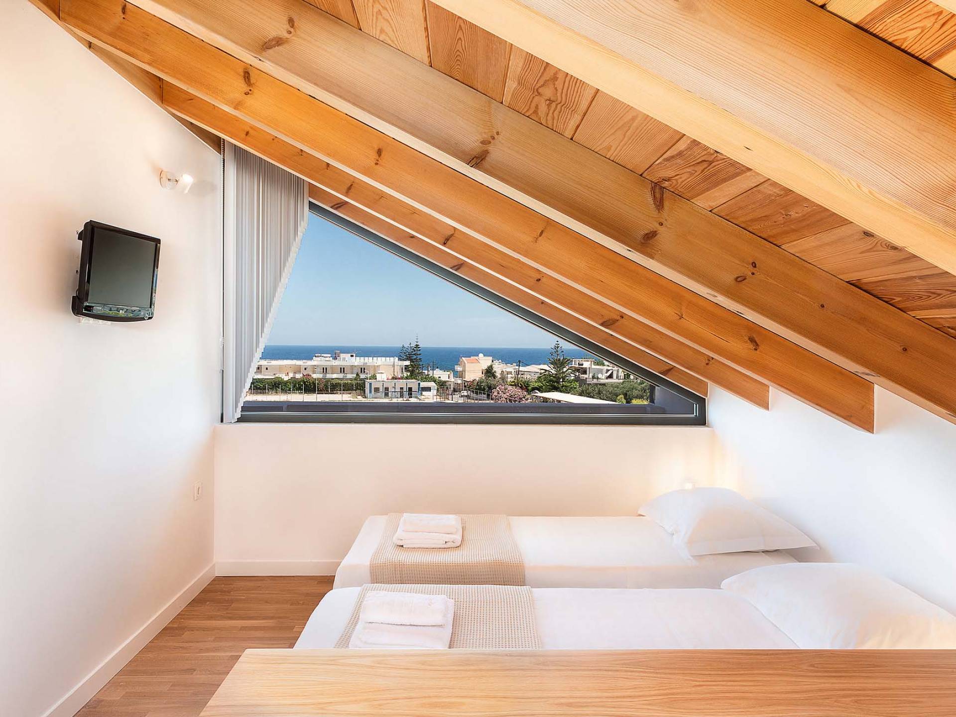 Light Villa Chania se compose d'un sous-sol, d'un rez-de-chaussée, d'un premier étage et d'un dernier étage (un grenier), pour un total de 180m2. De plus, l'espace extérieur comprend un espace libre de 150m2 et un jardin avec une piscine de 30m2. Totally est un domaine de vacances spacieux, pouvant accueillir jusqu'à 11 personnes. Au sous-sol, il y a une chambre et une salle de bain donnant sur un patio. La chambre a un lit double ou deux lits simples (sur demande).