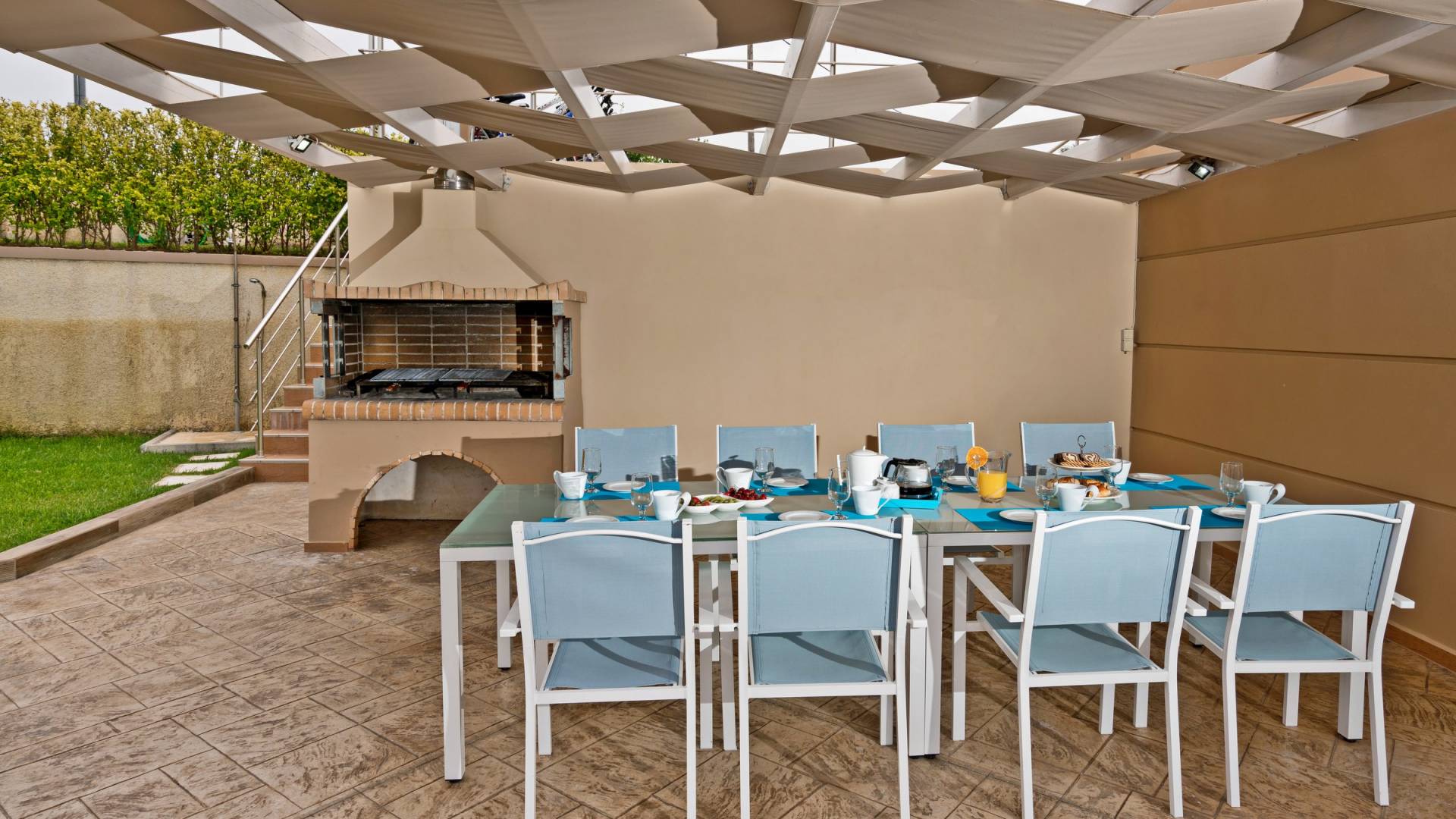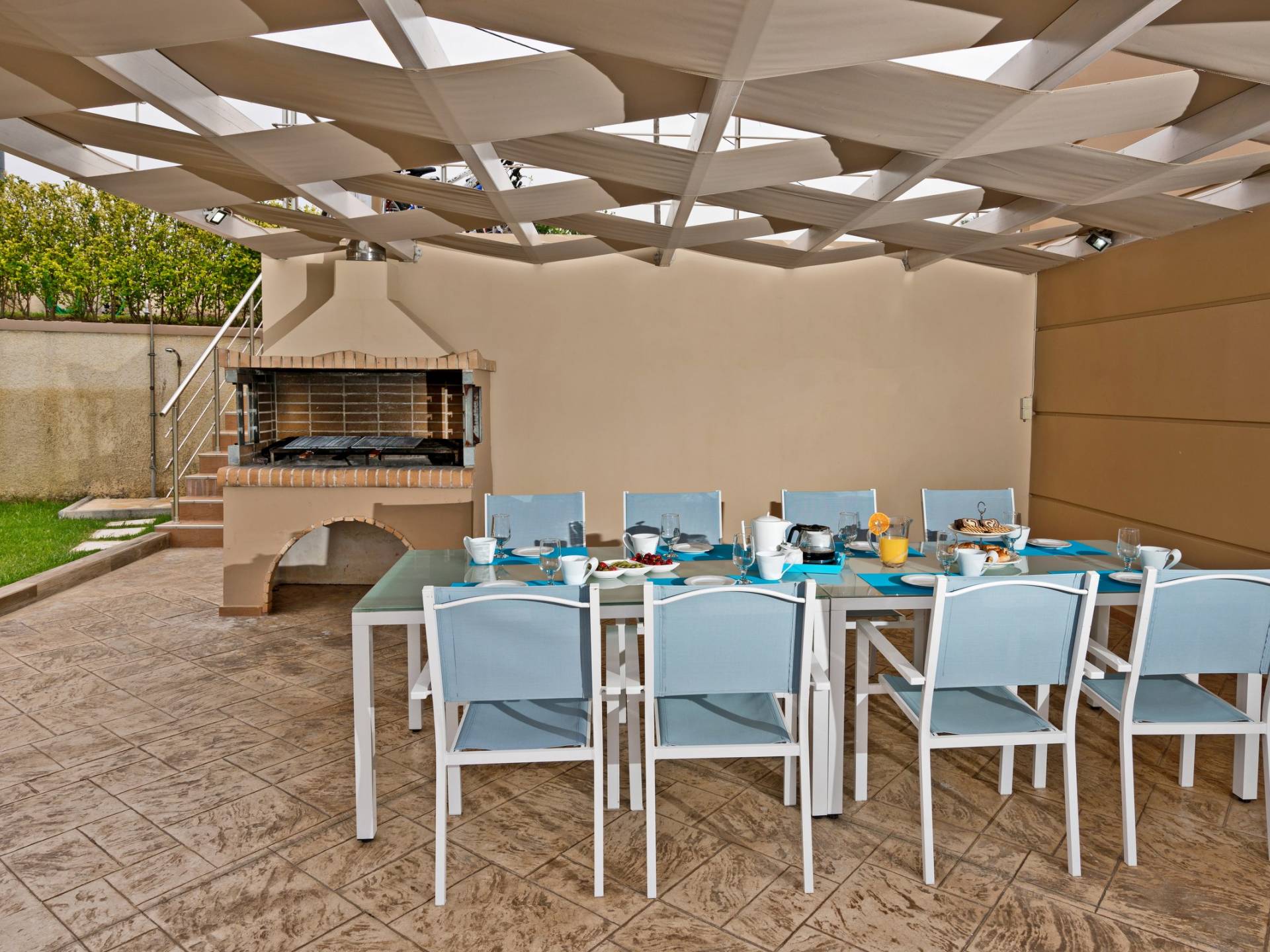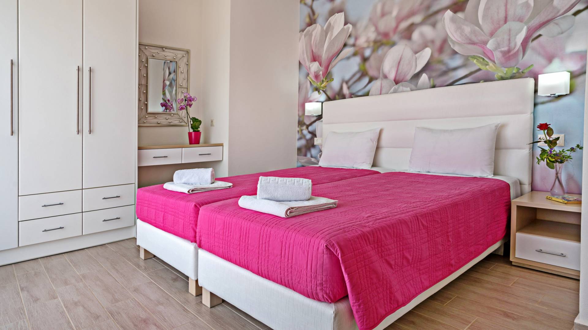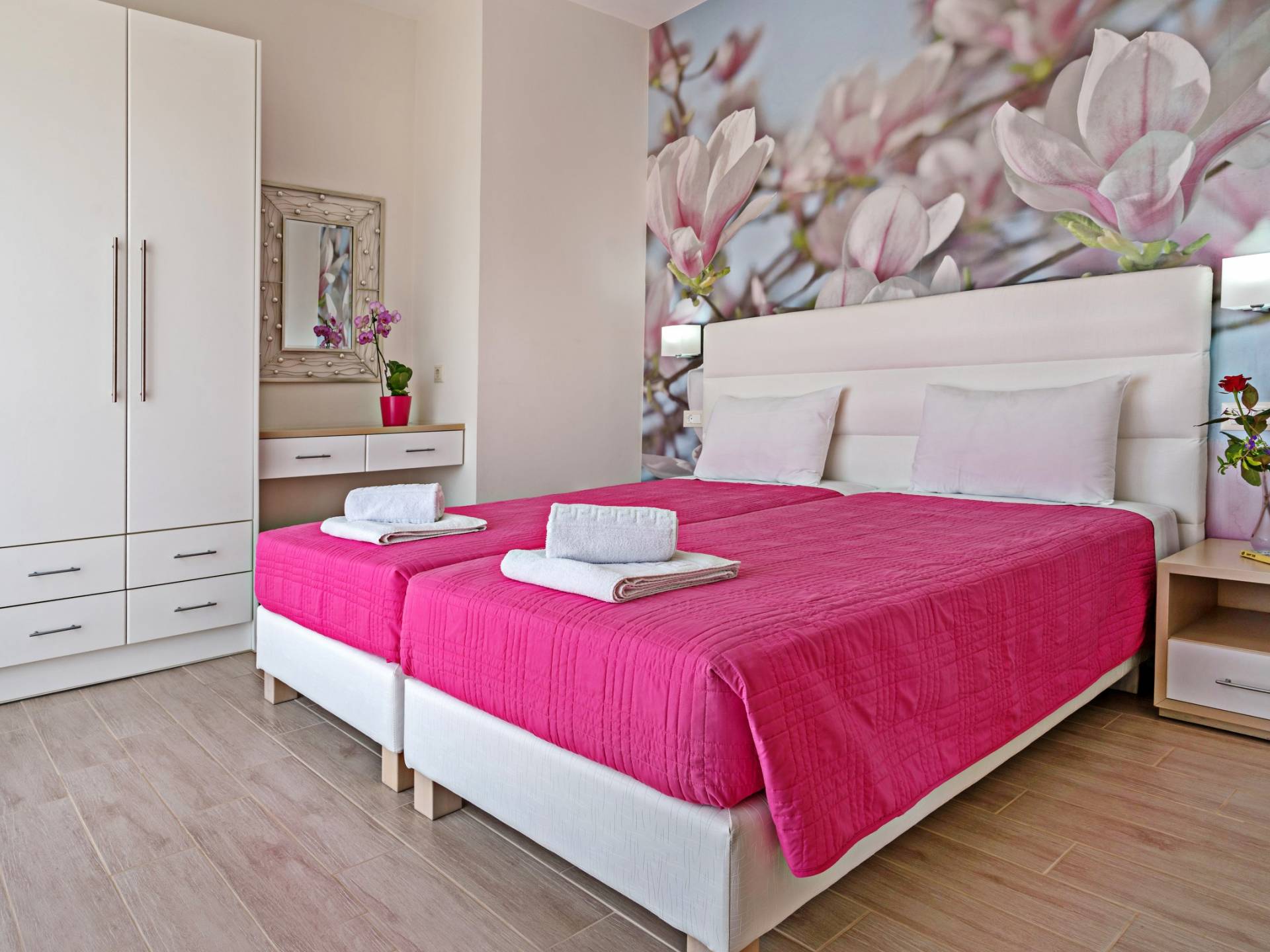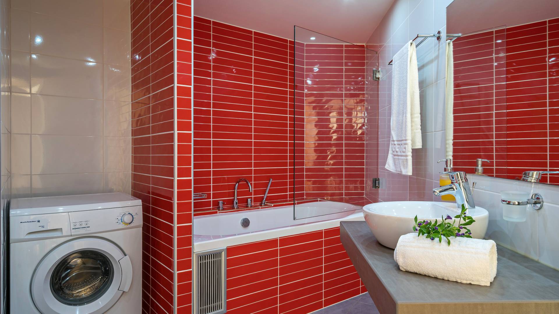 Chaque chambre dispose d'une salle de douche - WC. Toutes les chambres sont climatisées. Les abords de l'endroit où est construite la villa constituent un parking, un mini-golf, un barbecue et des pergolas en bois, un jardin fleuri et une pelouse. Il y a aussi une belle piscine de 40 m² avec des transats et des parasols en bois.