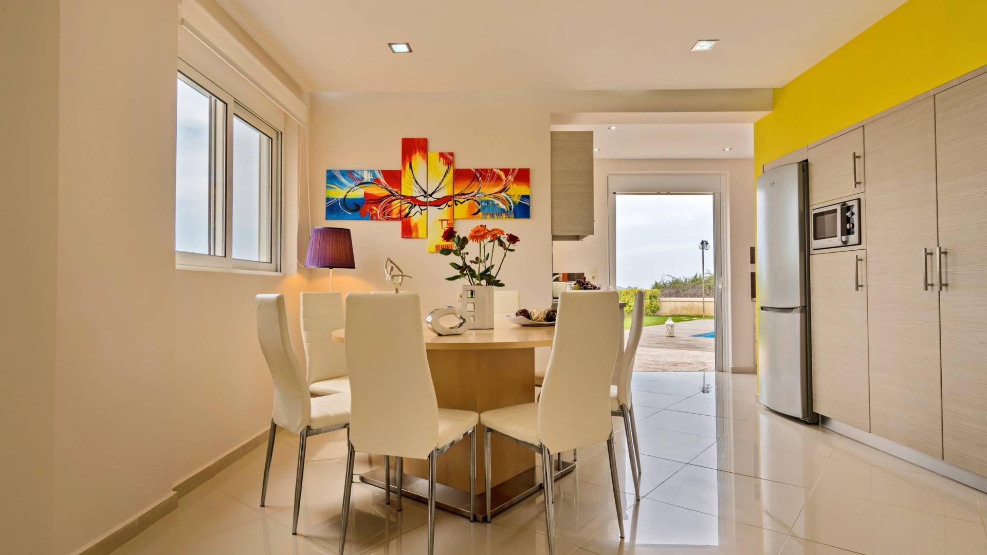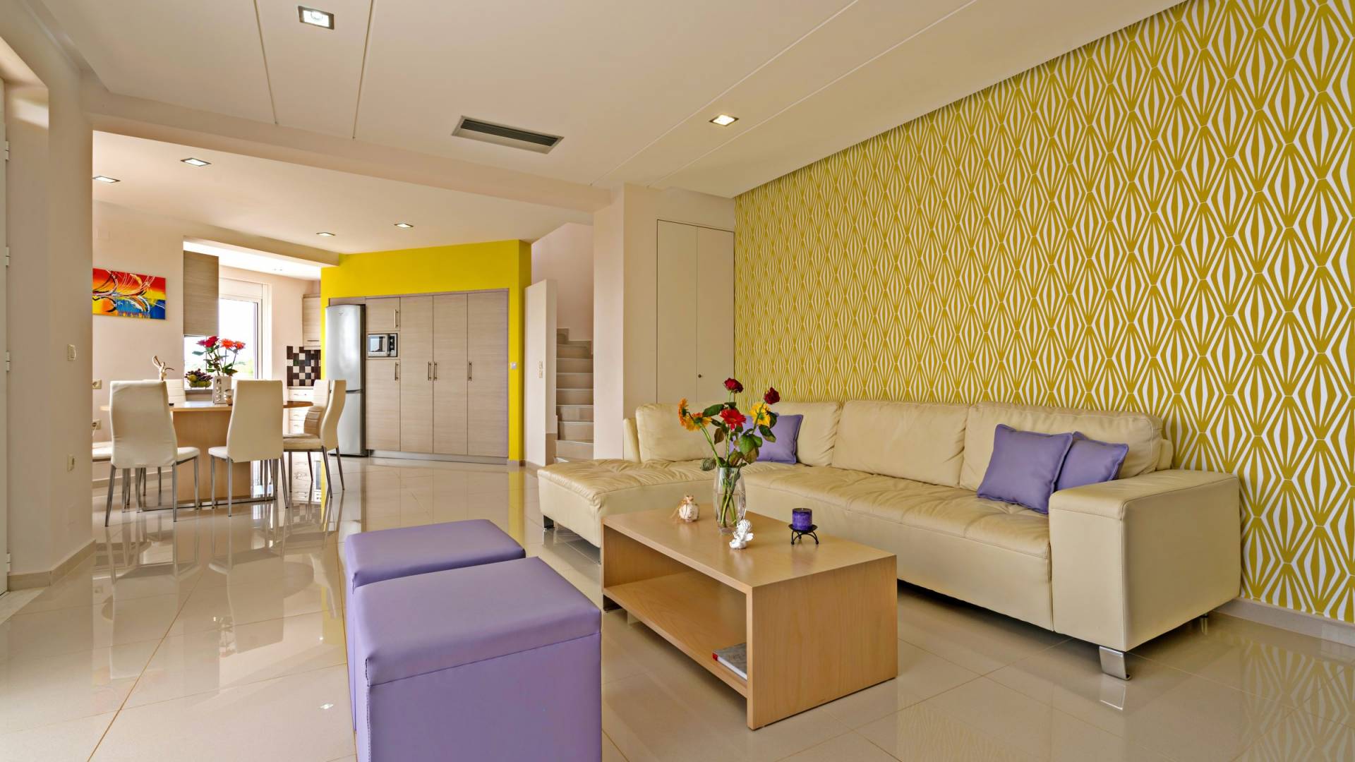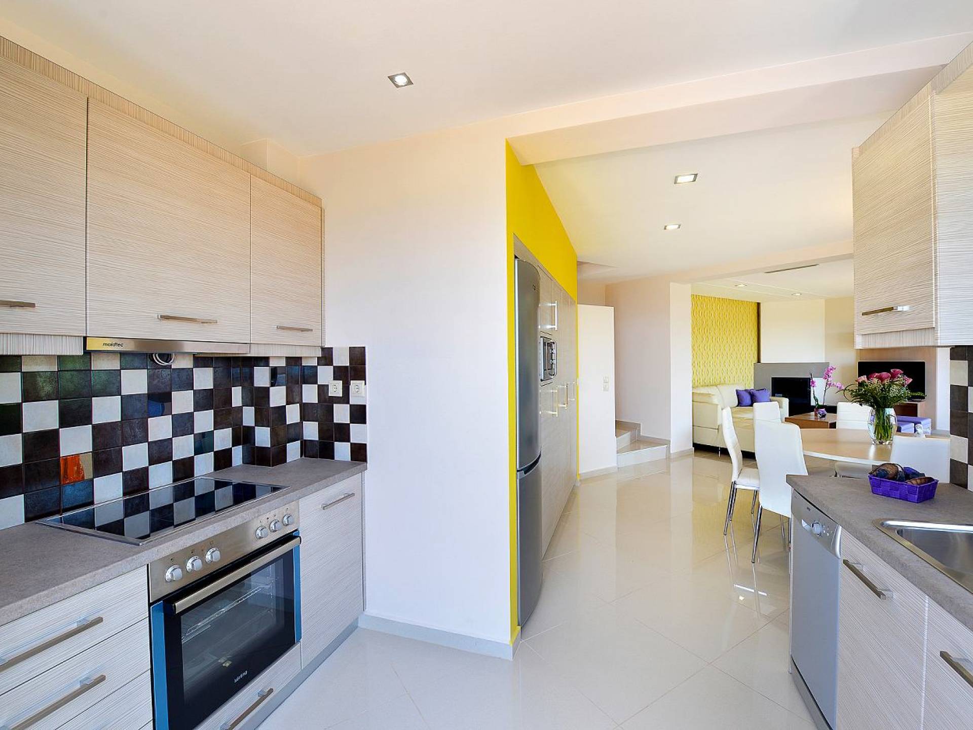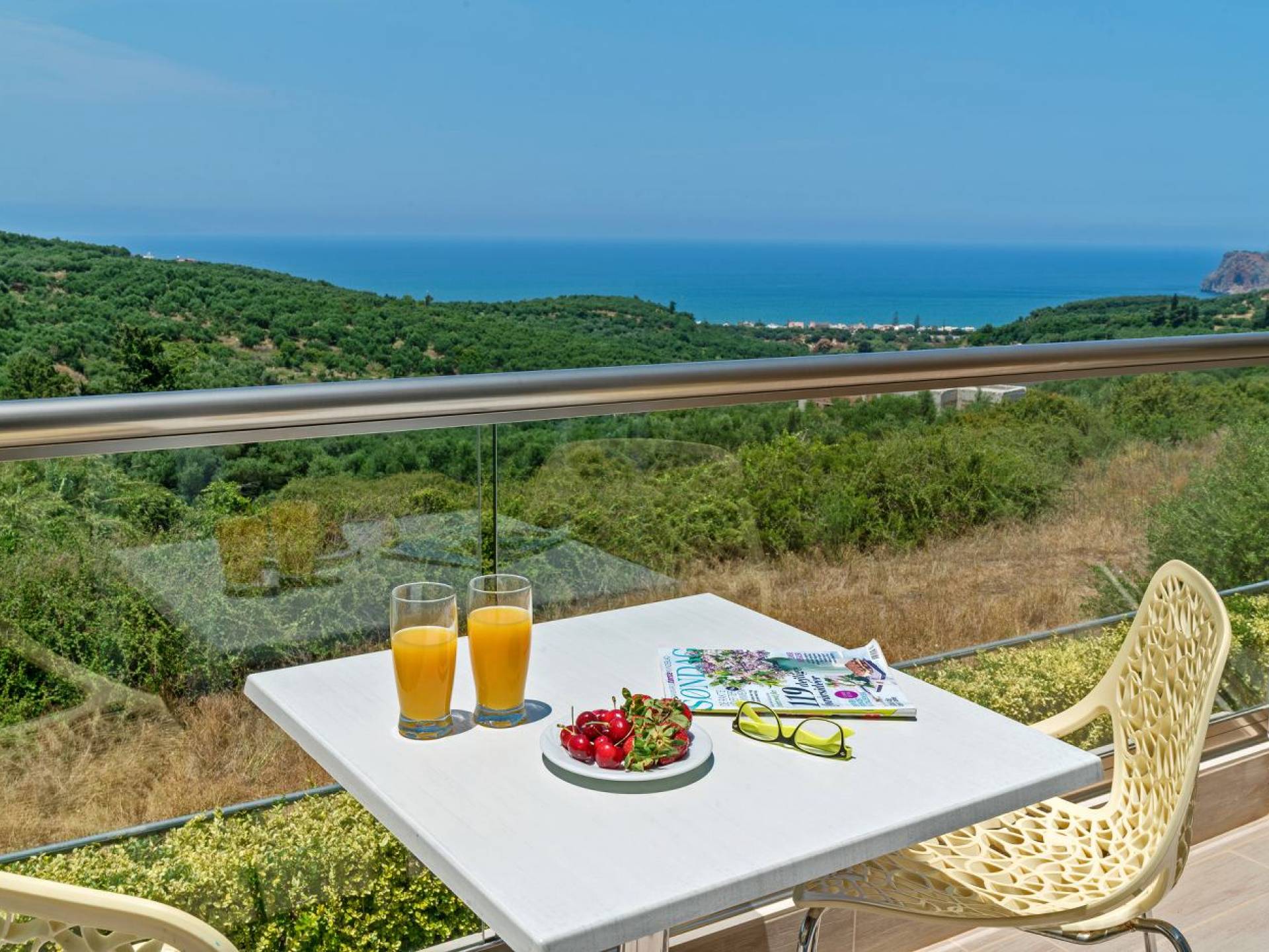 Mistral Villa Chania est une propriété de deux étages et a une superficie de 180 m², quatre chambres, une cuisine, une salle à manger, un salon et quatre salles de bains et peut accueillir jusqu'à huit personnes. Au rez-de-chaussée, il y a une cuisine entièrement équipée avec une cuisinière électrique, un four micro-ondes, un four, un grille-pain, un grill, un gril, un lave-vaisselle et tout ce qui est nécessaire pour un séjour confortable et agréable. De plus, il y a un spacieux salon-salle à manger avec accès direct à l'extérieur et à la piscine. Au même niveau, il y a une chambre spacieuse avec un lit double et une salle de bain avec baignoire oxygénothérapie. Un escalier intérieur mène à l'étage supérieur où se trouvent trois autres chambres, deux avec lit double et une avec lits jumeaux simples.