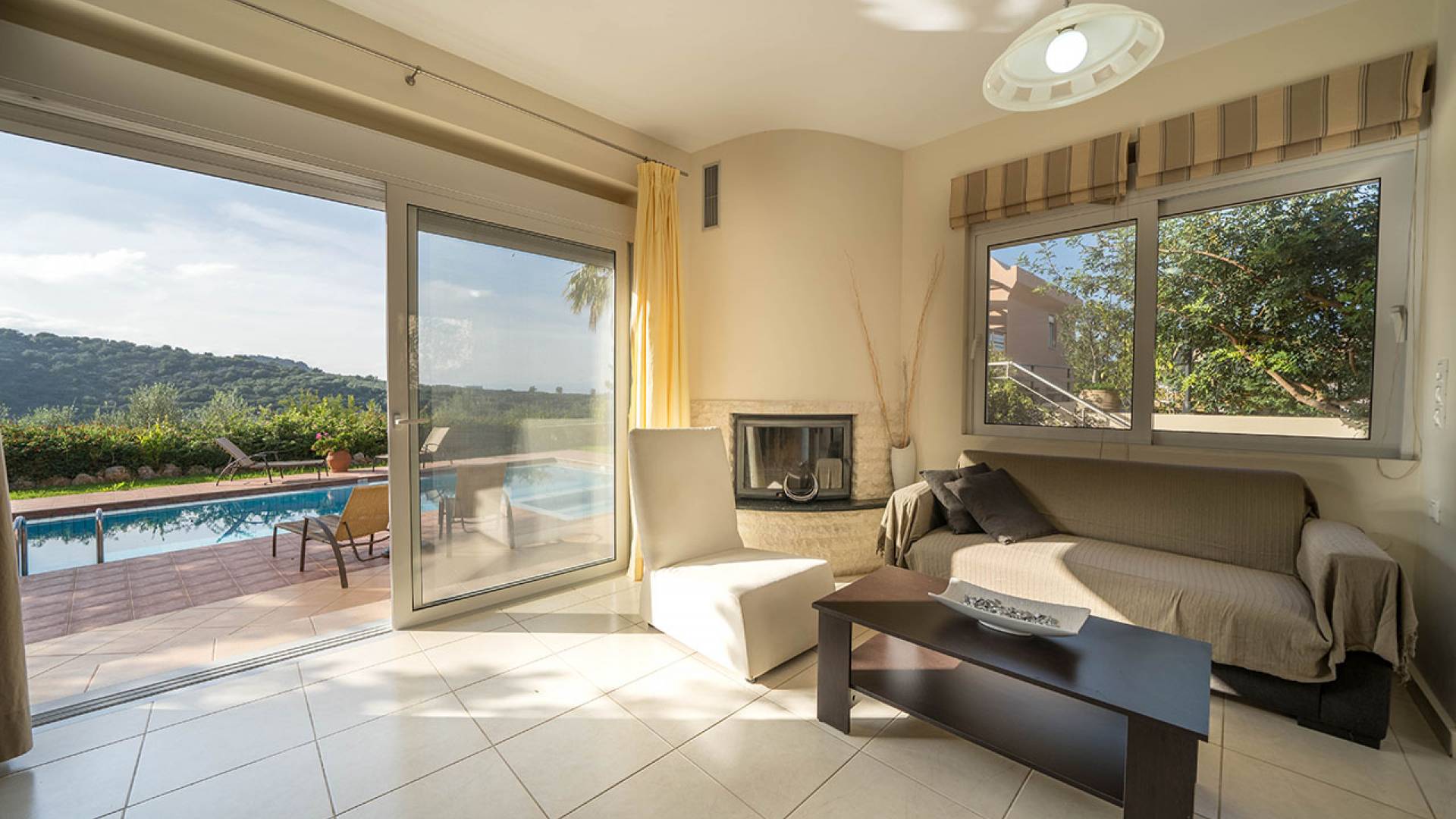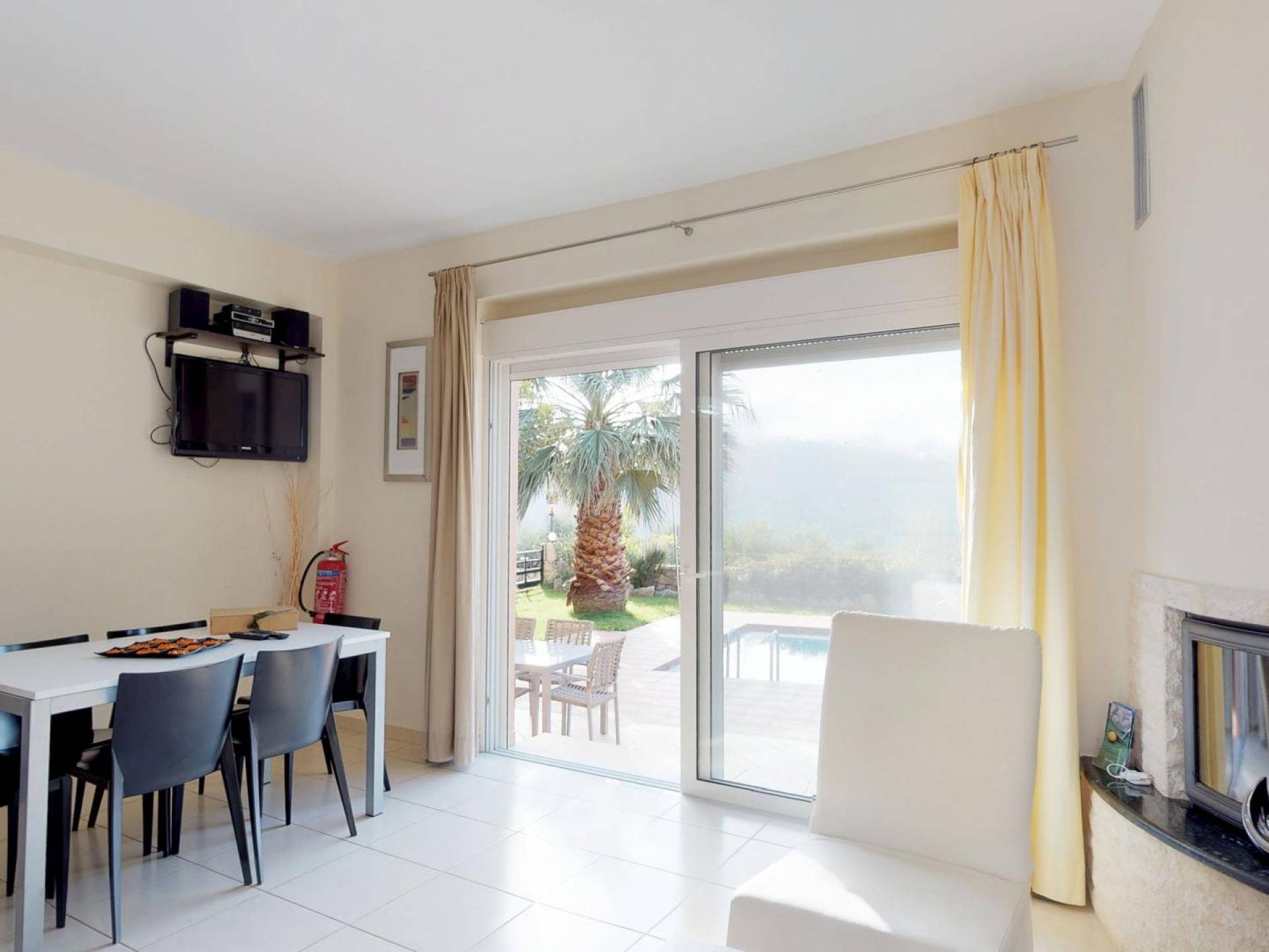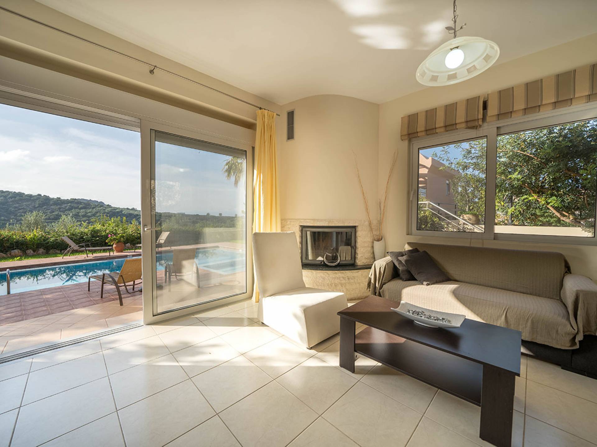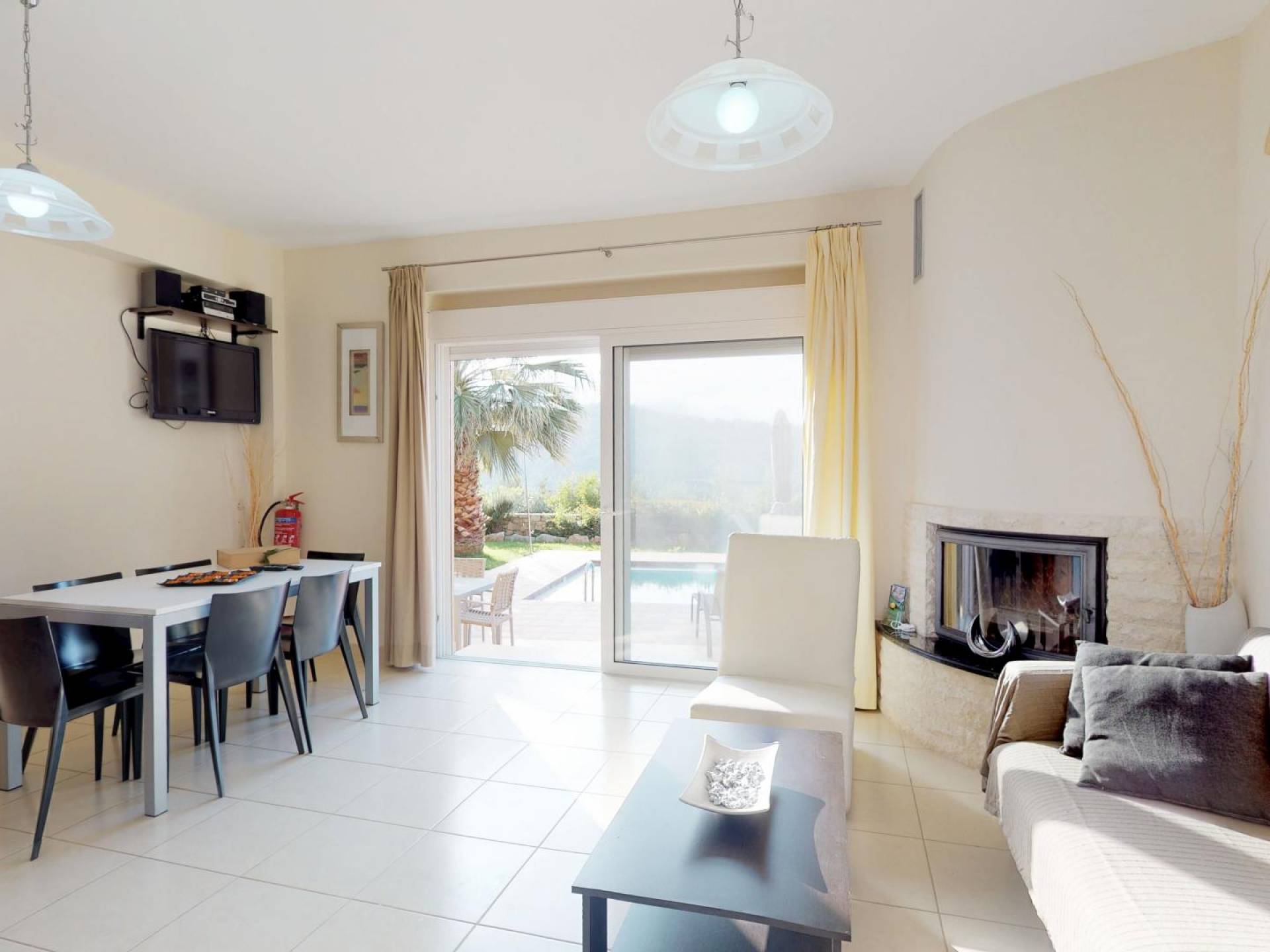 Pour la réalisation de cet objectif et malgré l'esthétique distincte de la villa, ont été conçues à l'envers de manière à offrir un maximum de plaisir aux visiteurs qui peuvent passer des moments de détente au salon tout en profitant de l'accès direct à la piscine et au jardin privés, asseyez-vous confortablement à la salle à manger, facilitez leur séjour en utilisant la cuisine entièrement équipée, reposez-vous dans les chambres spacieuses et bien sûr profitez de la vue imprenable sur la nature environnante, la mer, les collines verdoyantes, la beau coucher de soleil, le jardin et la piscine depuis les vérandas du 1er étage.