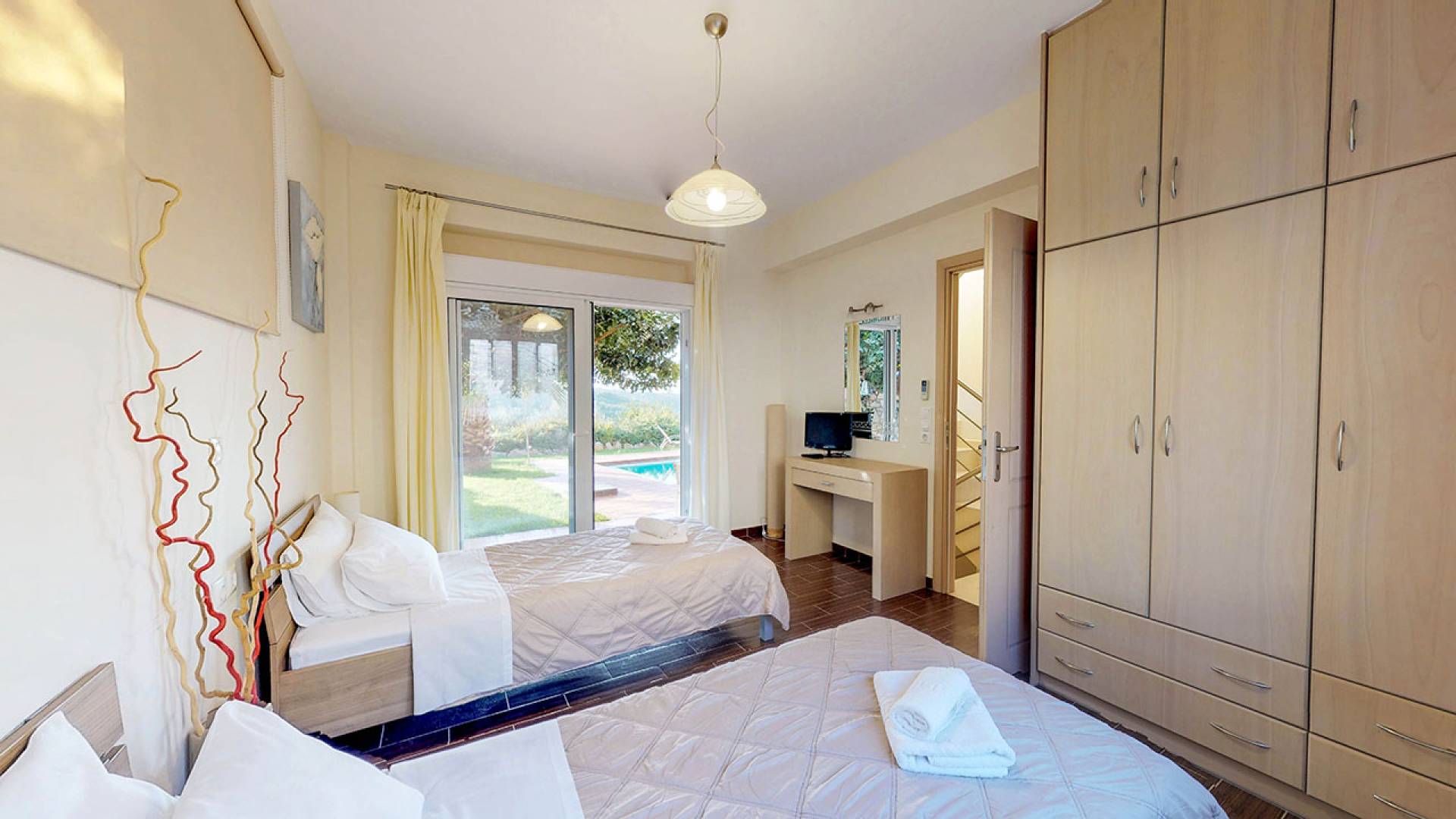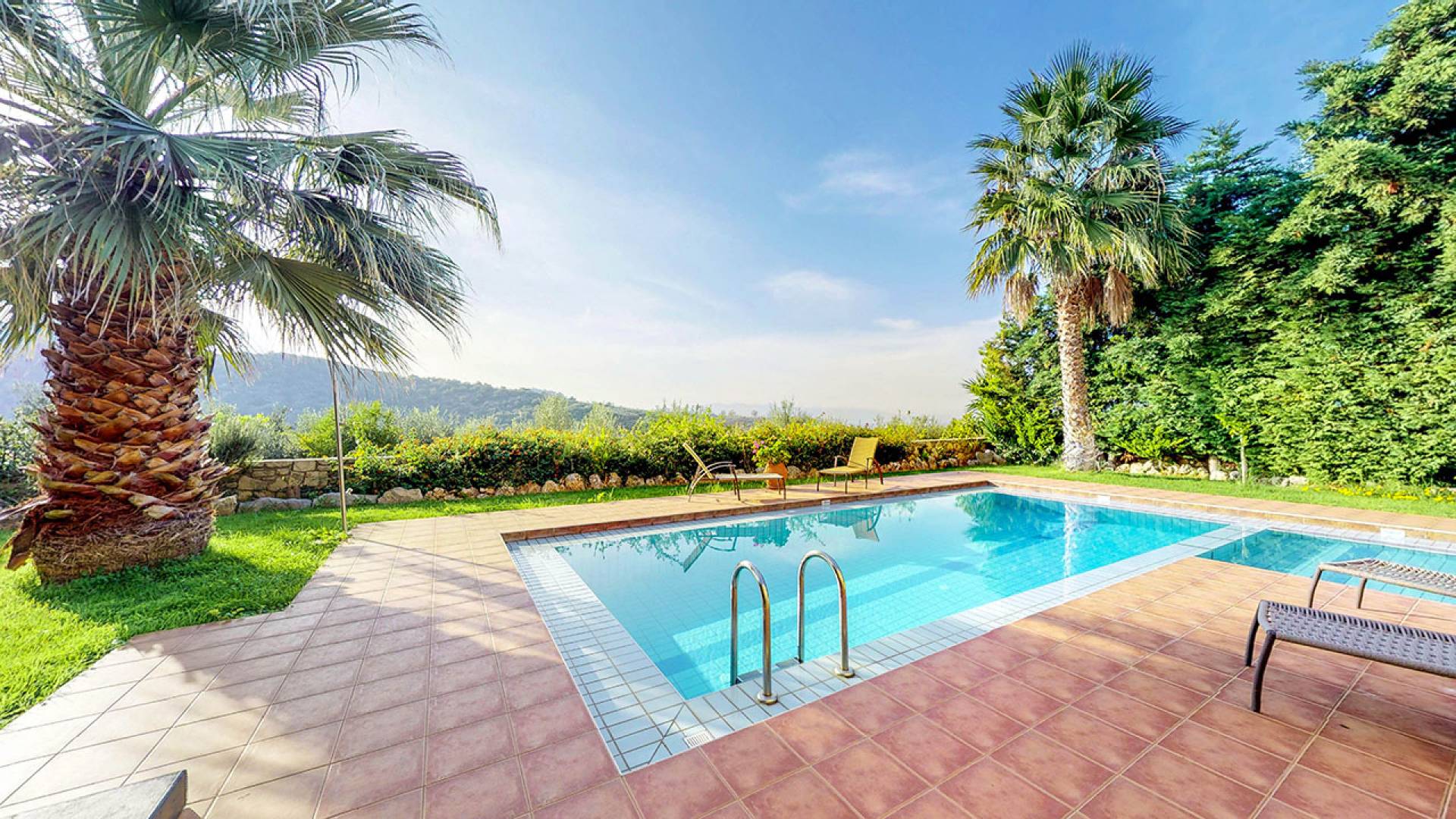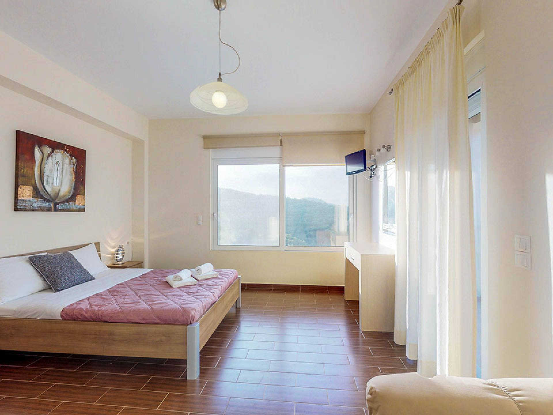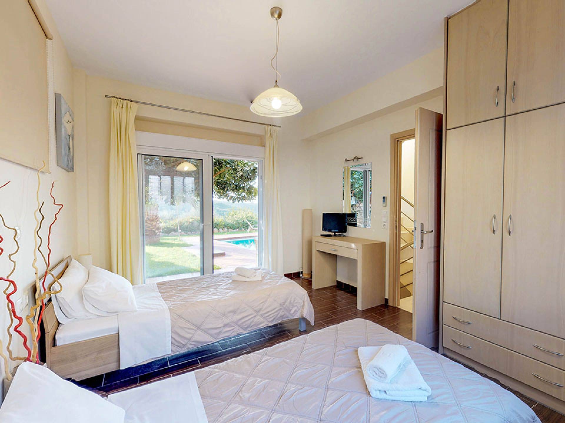 Pour la réalisation de cet objectif et malgré l'esthétique distincte de la villa, ont été conçues à l'envers de manière à offrir un maximum de plaisir aux visiteurs qui peuvent passer des moments de détente au salon tout en profitant de l'accès direct à la piscine et au jardin privés, asseyez-vous confortablement à la salle à manger, facilitez leur séjour en utilisant la cuisine entièrement équipée, reposez-vous dans les chambres spacieuses et bien sûr profitez de la vue imprenable sur la nature environnante, la mer, les collines verdoyantes, la beau coucher de soleil, le jardin et la piscine depuis les vérandas du 1er étage.