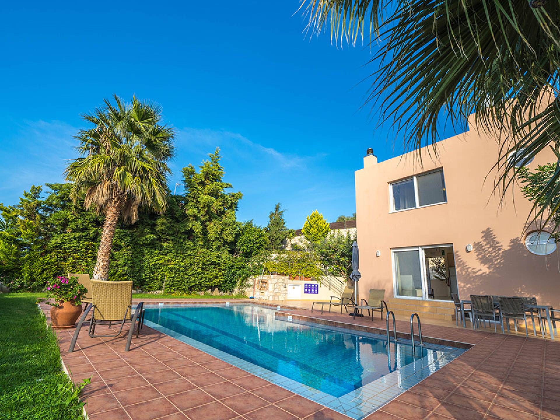 Nefeli Villa Chania dans la région d'Agia Marina, La Canée en Crète. La villa a sa propre personnalité inspirée par la vision de la famille du propriétaire d'offrir à ses invités, y compris les personnes handicapées, une hospitalité, une commodité, un luxe et une détente incomparables.
