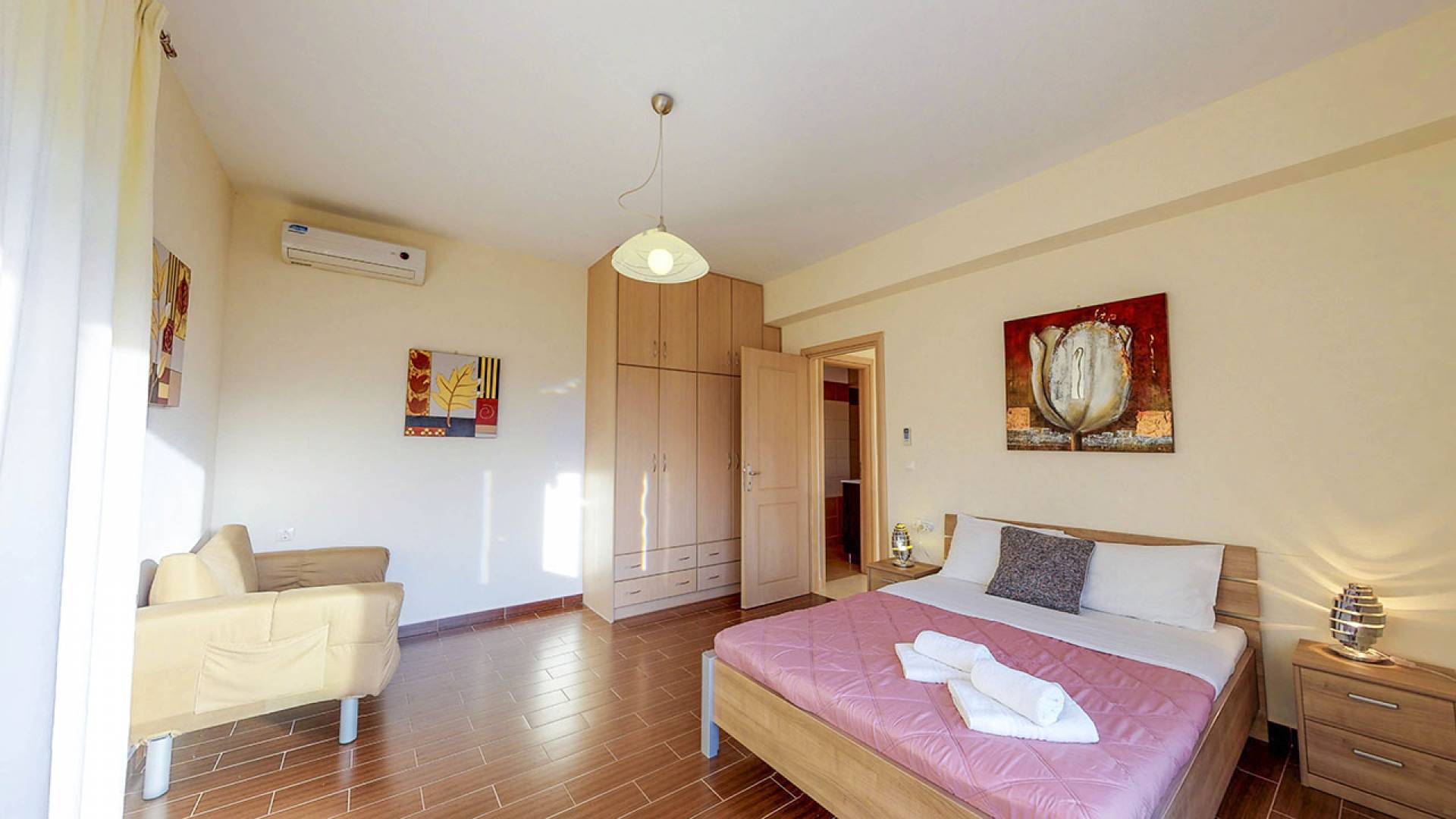 Grâce à sa proximité avec La Canée, vous pouvez facilement explorer le port vénitien, les ruelles pittoresques de la vieille ville et ses marchés animés. Les amoureux de la nature pourront faire des excursions à la plage d’Elafonissi, aux gorges de Samaria ou à la lagune de Balos.