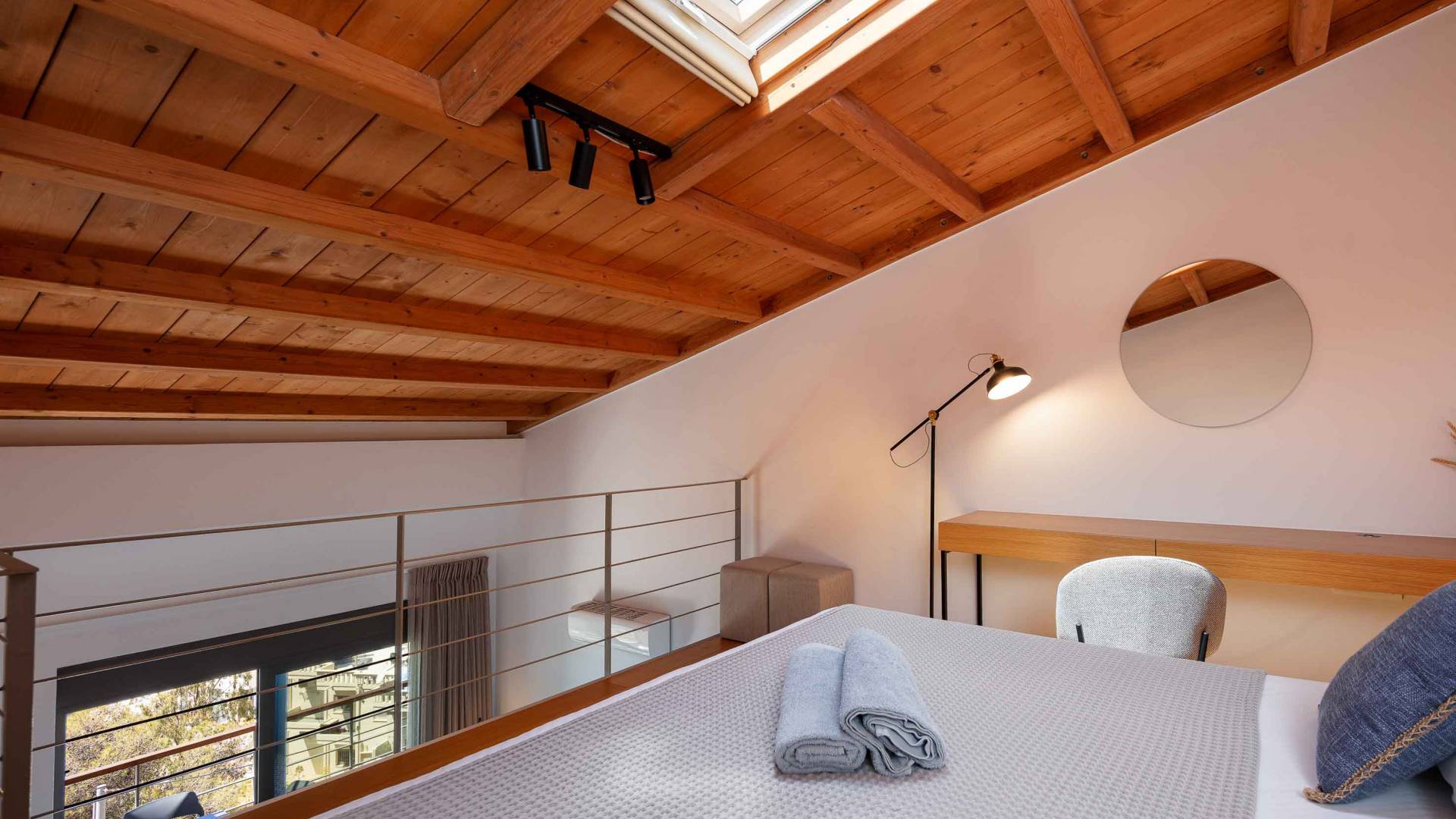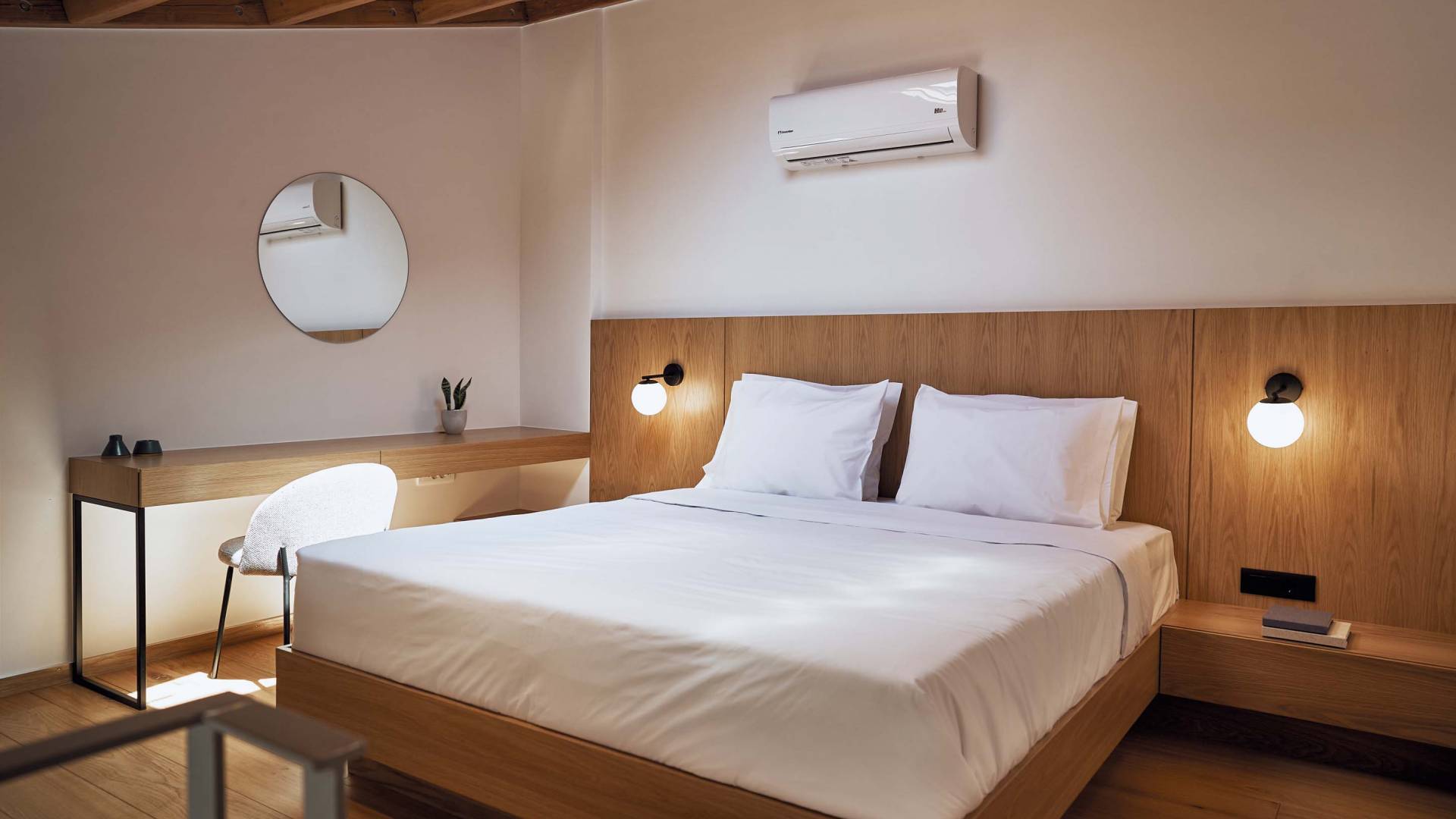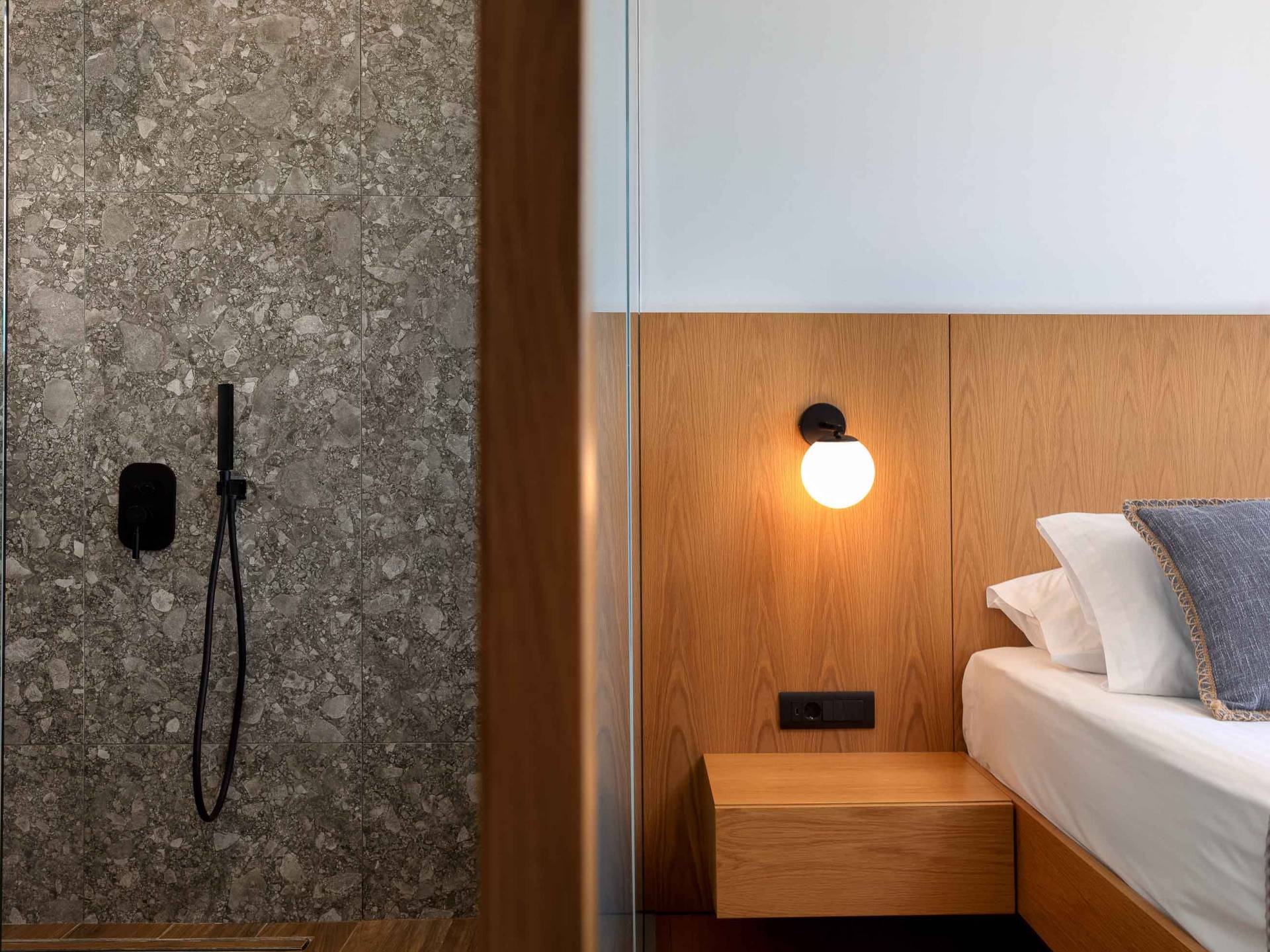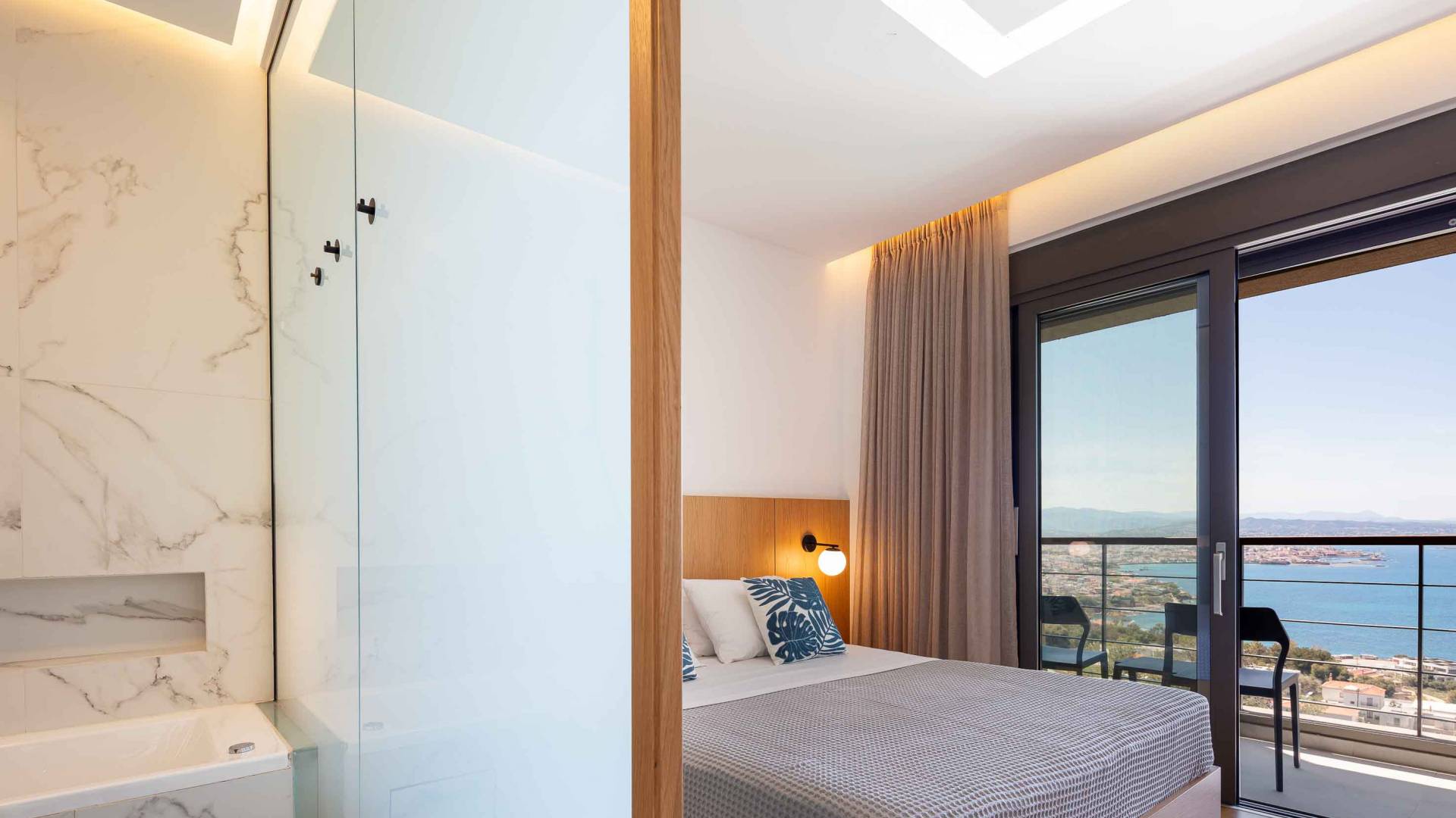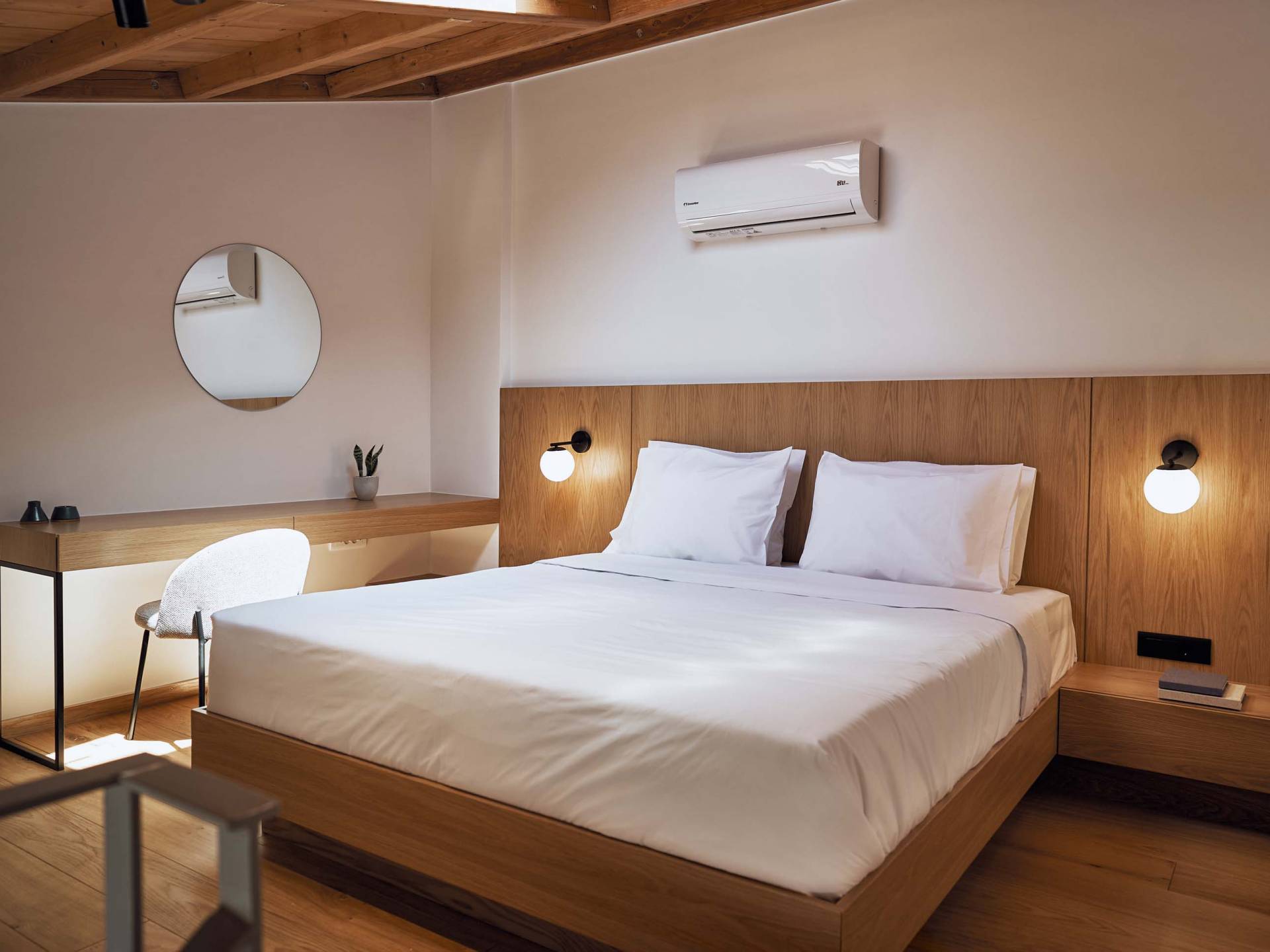 Les trois chambres de la villa sont situées au premier et au deuxième étage. La première chambre est située au premier étage avec un lit double et une salle de bain attenante avec baignoire. Au deuxième étage, il y a une chambre avec un lit double et une salle de bain attenante avec douche tandis que la dernière chambre a un lit king-size, un canapé-lit qui peut être converti en deux lits simples avec un matelas de haute qualité , et une salle de bain attenante avec douche. Chaque chambre dispose d'un accès direct aux balcons, d'une télévision connectée avec chaînes satellite, d'une connexion Wi-Fi gratuite, d'articles de toilette, de draps et de serviettes pour tous les invités, d'un sèche-cheveux et de matelas de haute qualité.