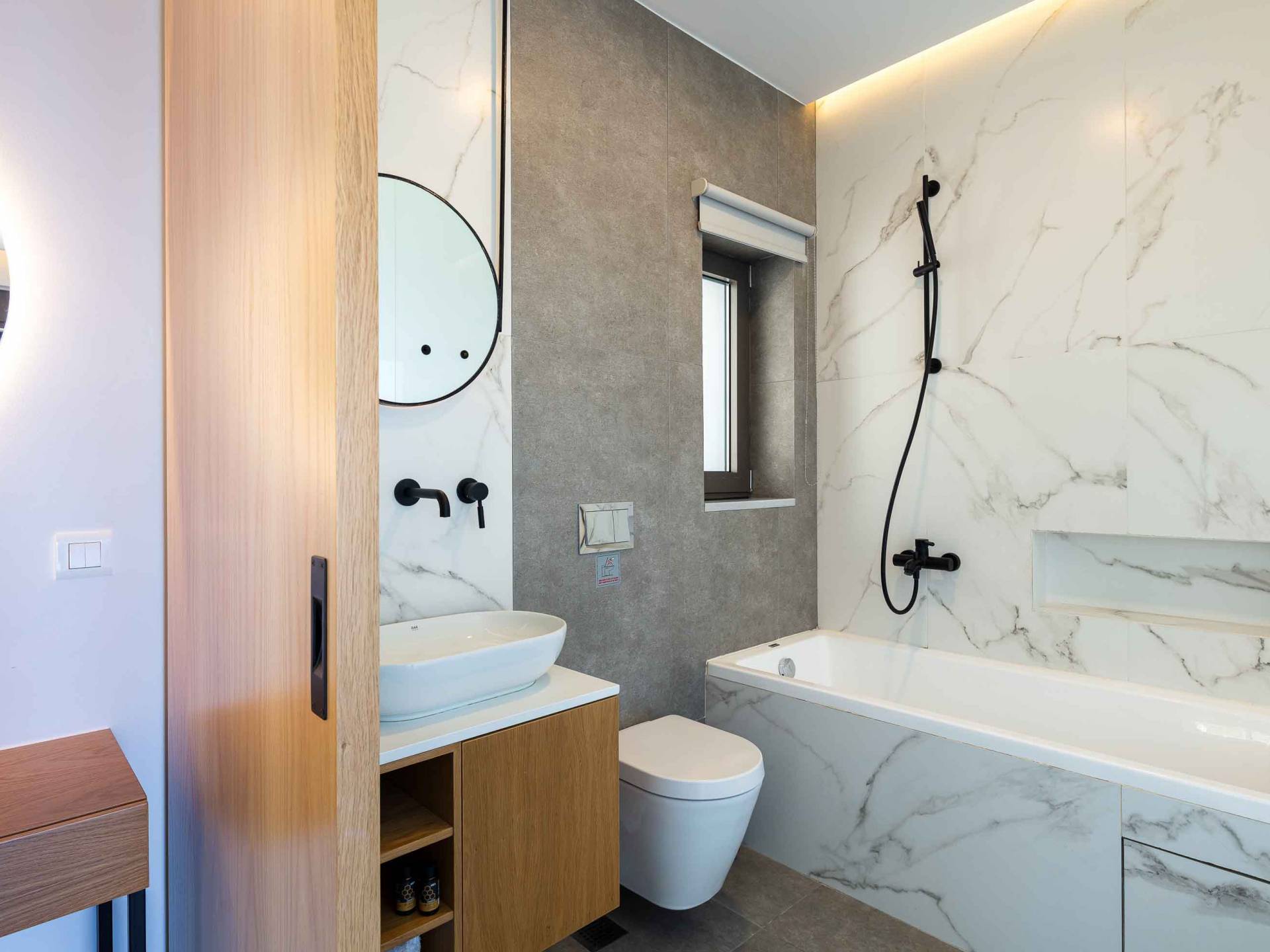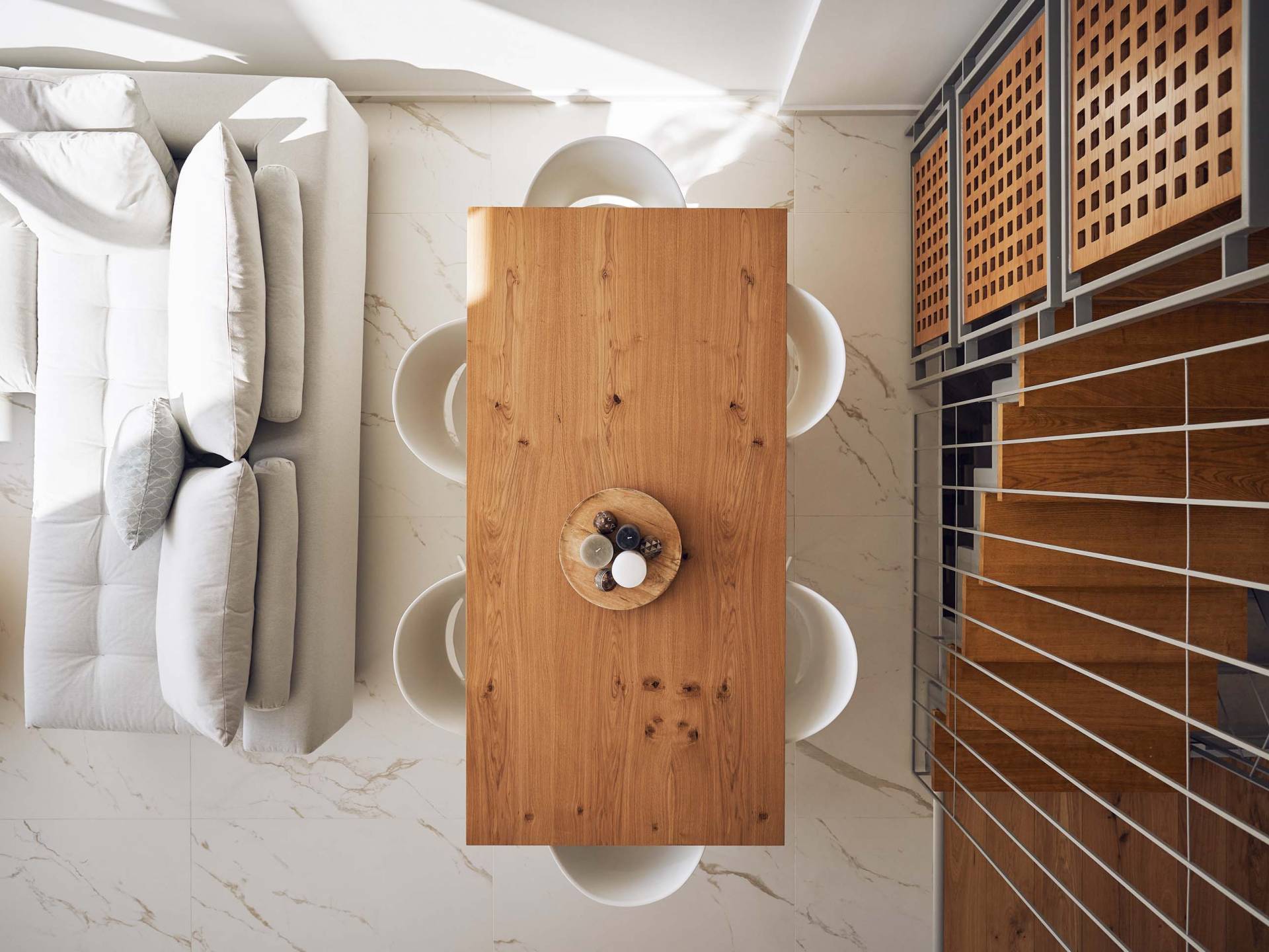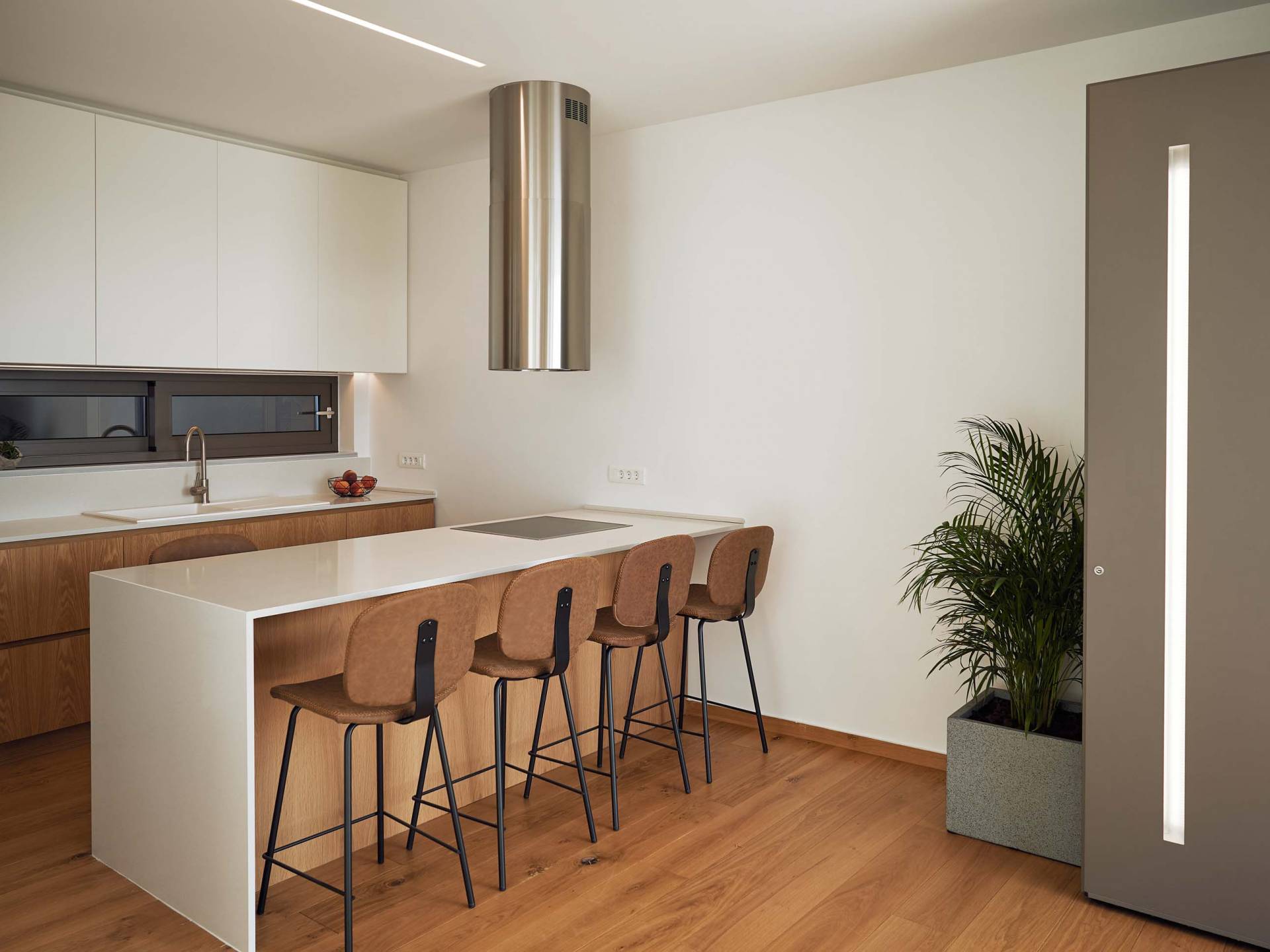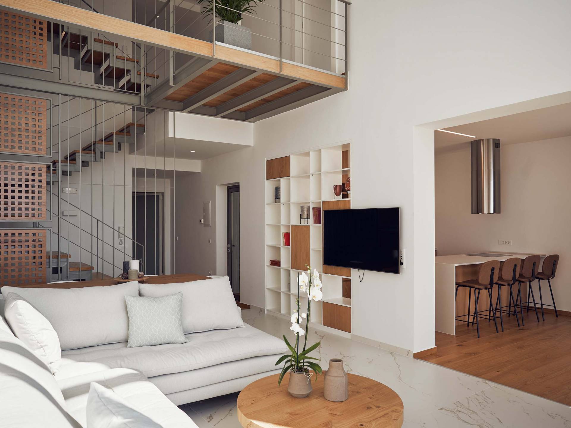 La villa est conçue pour accueillir 6 personnes dans les lits existants et deux autres (adultes ou enfants) dans les canapés dotés de matelas de haute qualité. Il est divisé en trois étages qui peuvent être reliés soit par les escaliers, soit par l'ascenseur. Au rez-de-chaussée, il y a une cuisine entièrement équipée avec tous les appareils électriques nécessaires, un contemporain avec un espace de vie minimal avec une cheminée, un grand téléviseur plat Smart TV 60 '' avec chaînes satellite et un coin repas pour 6- 8 convives. Au même étage, près de l'ascenseur, il y a un WC commun et une machine à laver.