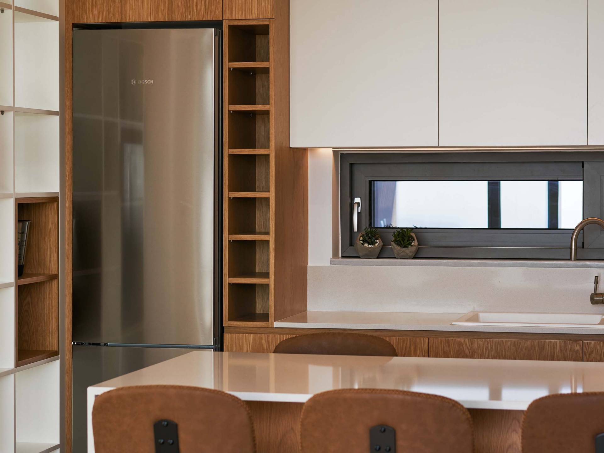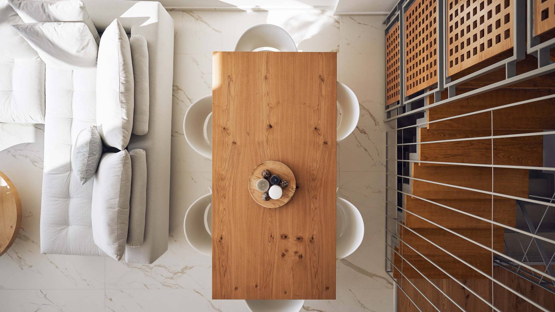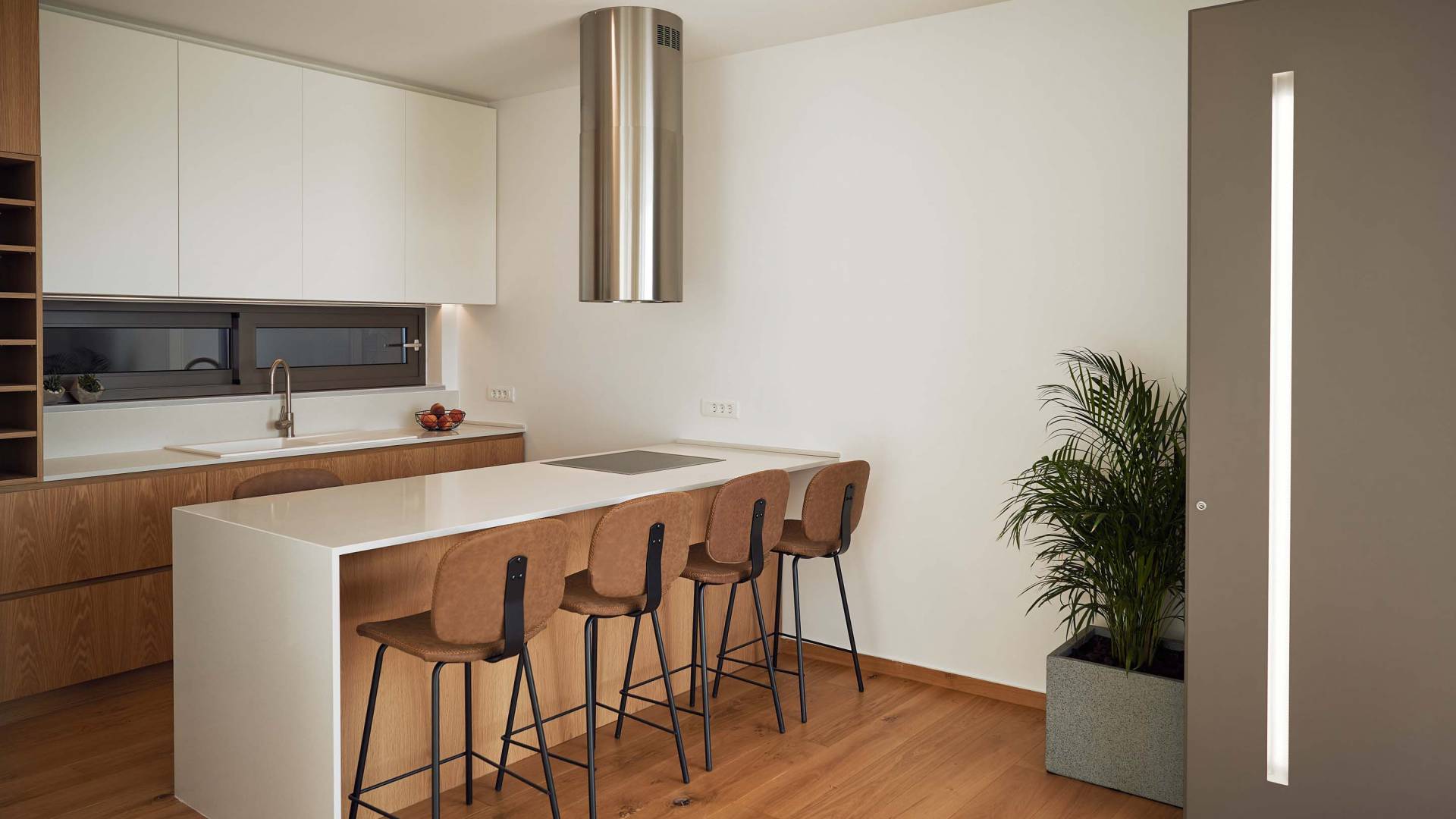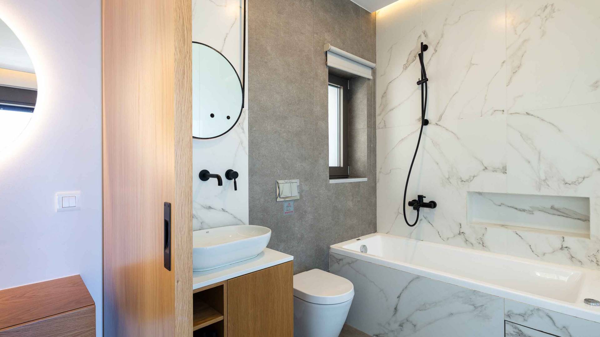 La villa est conçue pour accueillir 6 personnes dans les lits existants et deux autres (adultes ou enfants) dans les canapés dotés de matelas de haute qualité. Il est divisé en trois étages qui peuvent être reliés soit par les escaliers, soit par l'ascenseur. Au rez-de-chaussée, il y a une cuisine entièrement équipée avec tous les appareils électriques nécessaires, un contemporain avec un espace de vie minimal avec une cheminée, un grand téléviseur plat Smart TV 60 '' avec chaînes satellite et un coin repas pour 6- 8 convives. Au même étage, près de l'ascenseur, il y a un WC commun et une machine à laver.