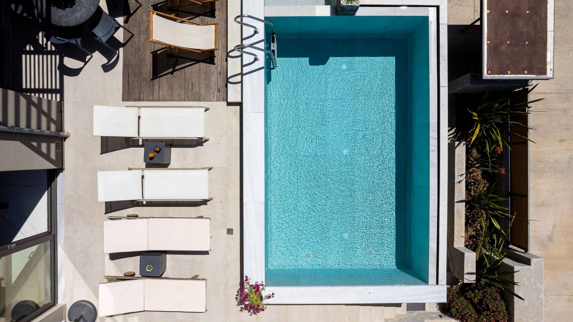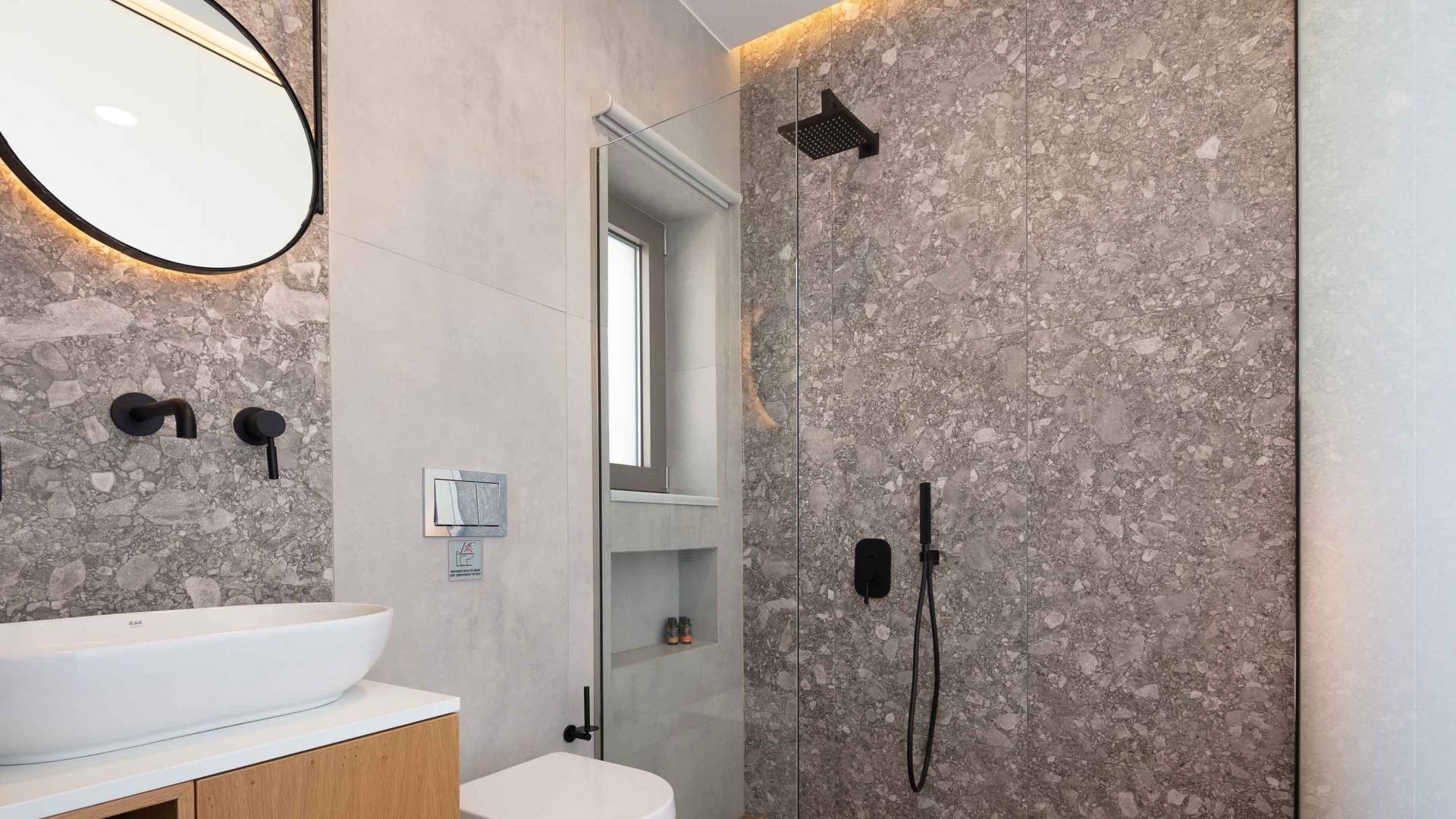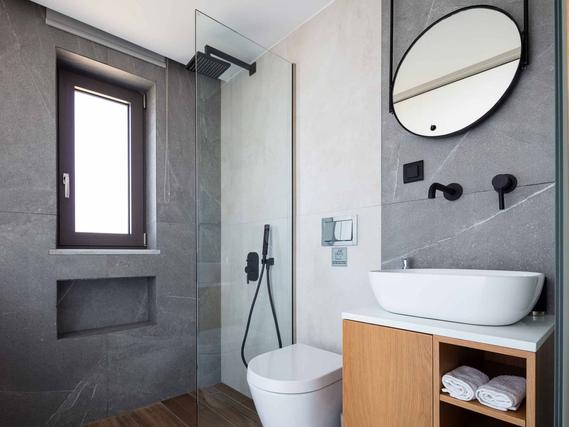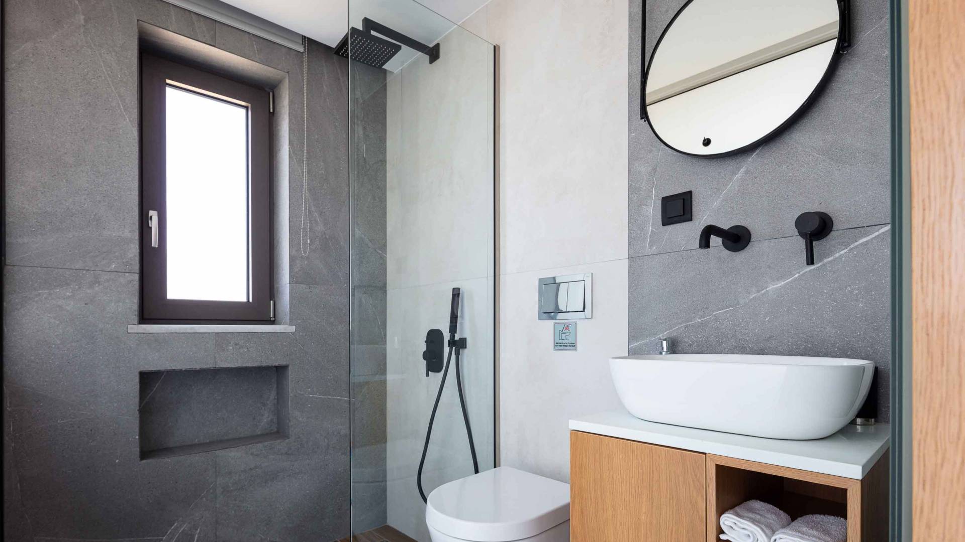 En entrant sur le balcon, vous verrez une vue qui vous impressionnera ! Nager dans la piscine extérieure ou boire un verre de vin au-dessus de la mer vous offrira l'expérience la plus inoubliable que vous puissiez vivre. Des transats, des douches et une table avec des chaises complètent l'espace extérieur. Le choix sélectionné de couleurs terreuses crée un endroit chaleureux qui permet à vos enfants de nager en toute sécurité car il y a une piscine séparée peu profonde et sûre pour eux à côté de la piscine principale. Au niveau inférieur, il y a une place de parking sécurisée commune aux deux villas, pouvant accueillir 2 voitures (pour chaque villa).