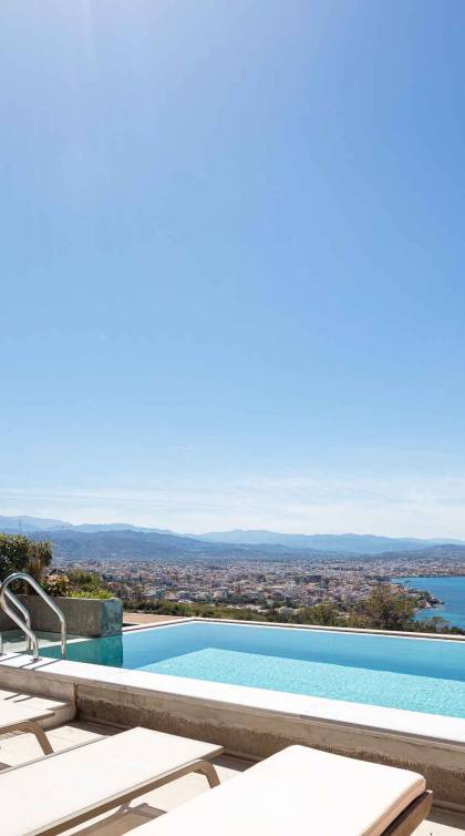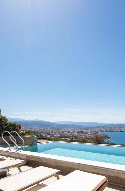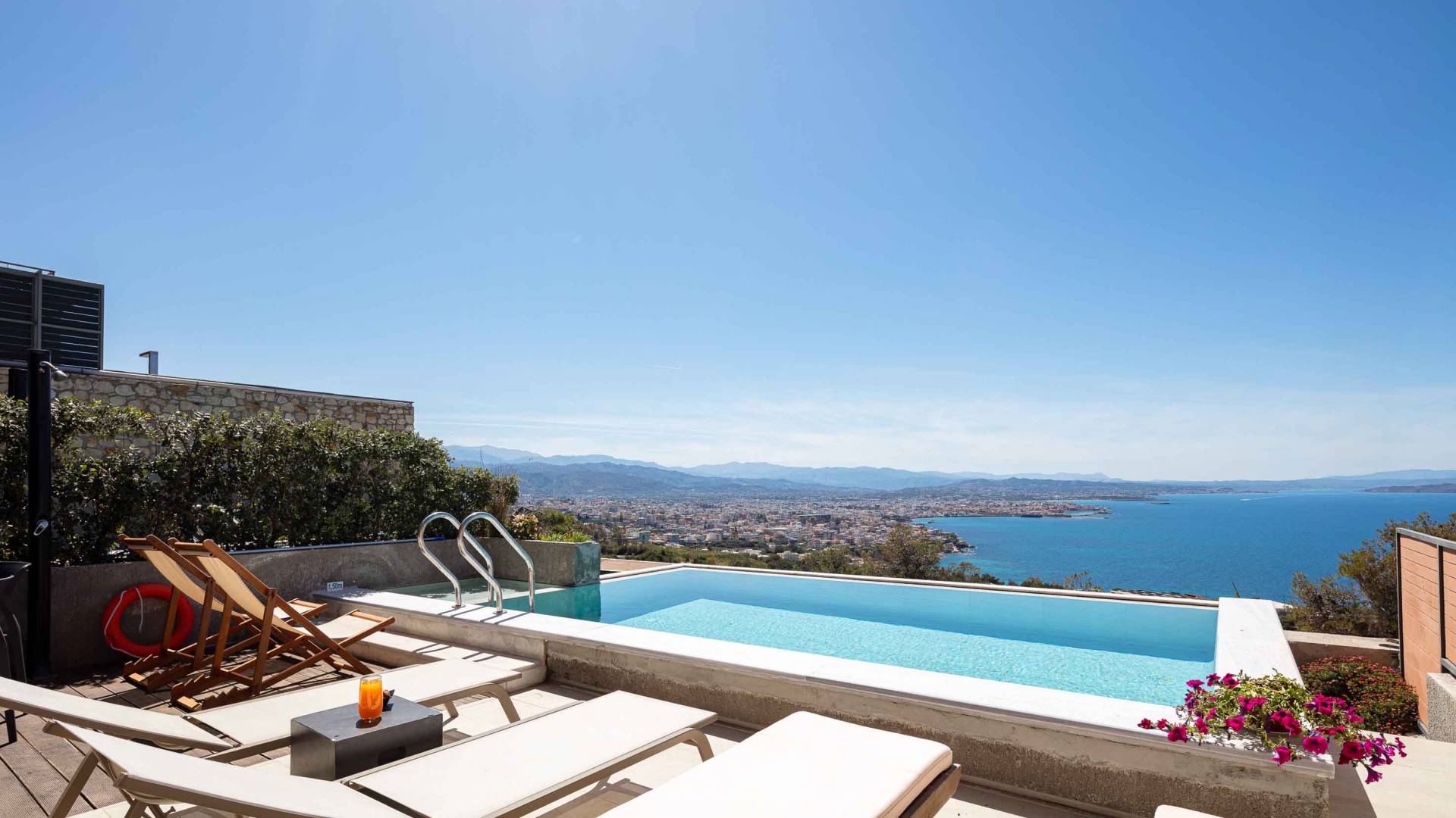 Villa Omnia I, est une villa de luxe nouvellement construite, au-dessus des lumières de La Canée et des eaux bleues de la mer de Crète. Est une résidence de vacances au sommet d'une colline, située à seulement quelques minutes en voiture de la plage de Kalathas et de la ville de La Canée. Avec ses installations et équipements de haute qualité, la vue isolée, élégante et imprenable sera un véritable paradis pour des vacances en Crète !