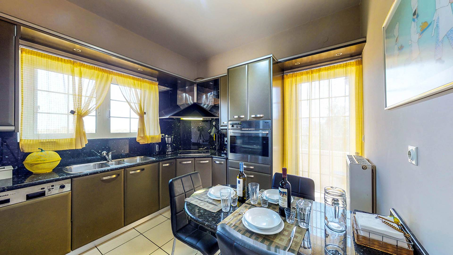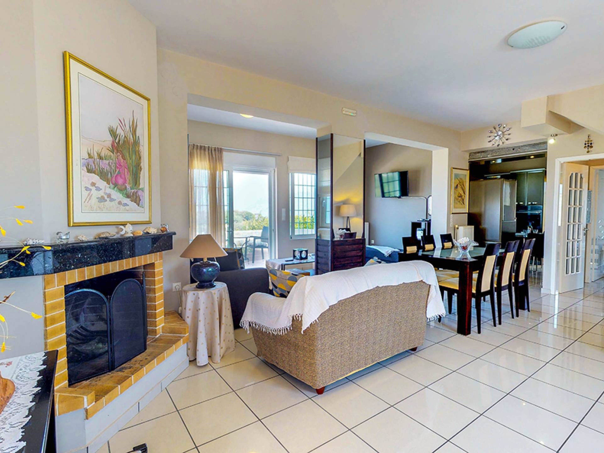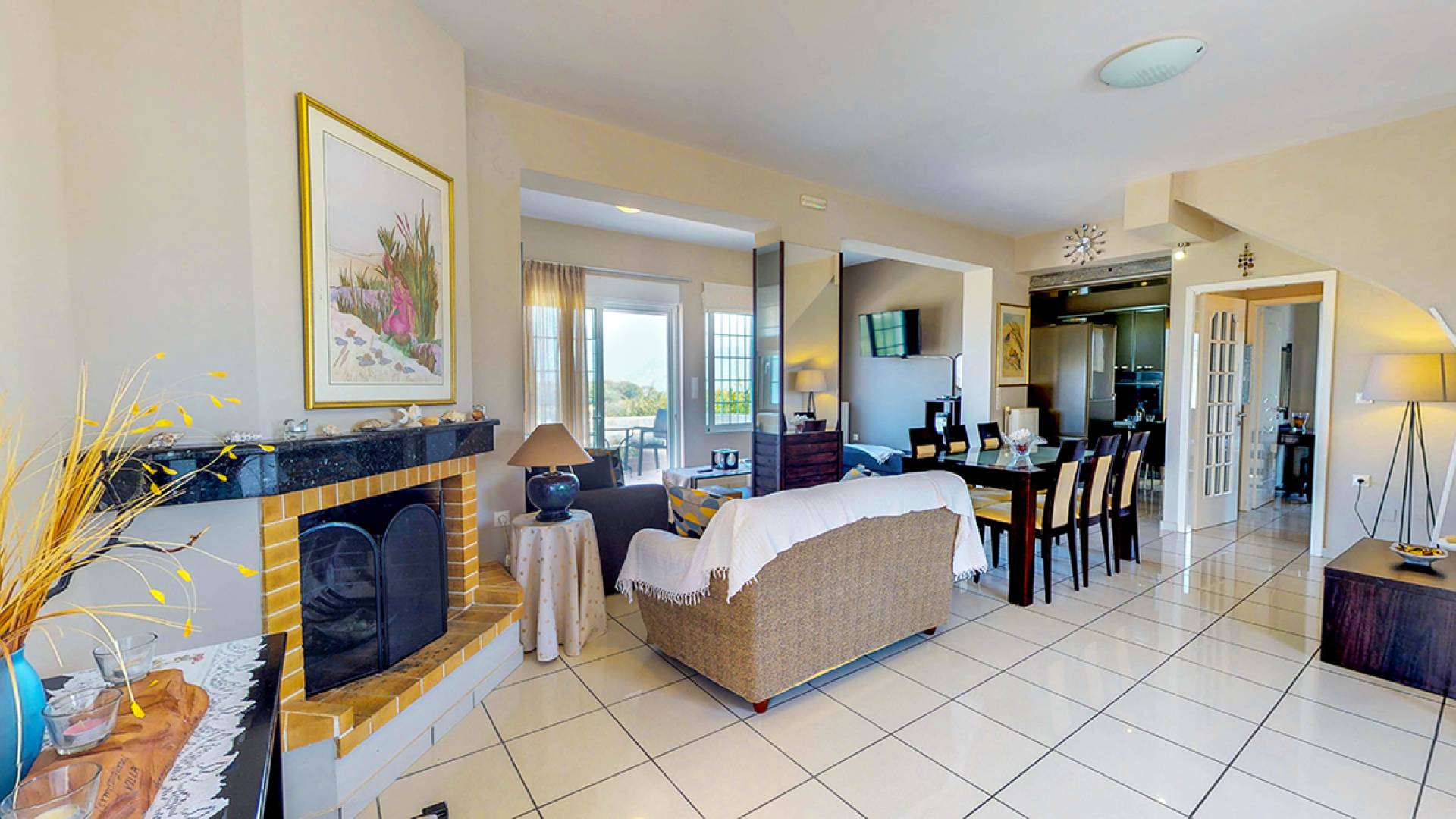 Au rez-de-chaussée, il y a de grandes fenêtres et un balcon. La villa en duplex se compose d'un coin salon avec cheminée et télévision par satellite à écran plat. Il y a une grande chambre double, 1 salle de bain et une cuisine entièrement équipée avec lave-vaisselle et micro-ondes. Au premier étage, il y a la chambre principale avec un grand lit double et une salle de bain attenante. Il y a deux autres chambres qui partagent une autre salle de bain. L'une des chambres a un lit double et l'autre deux lits simples. À l'extérieur, il y a une piscine privée, la piscine avec transats et parasols, un grand jardin avec gazon et barbecue et une place de parking. Il y a aussi des terrasses et des balcons avec vue mer et montagne.