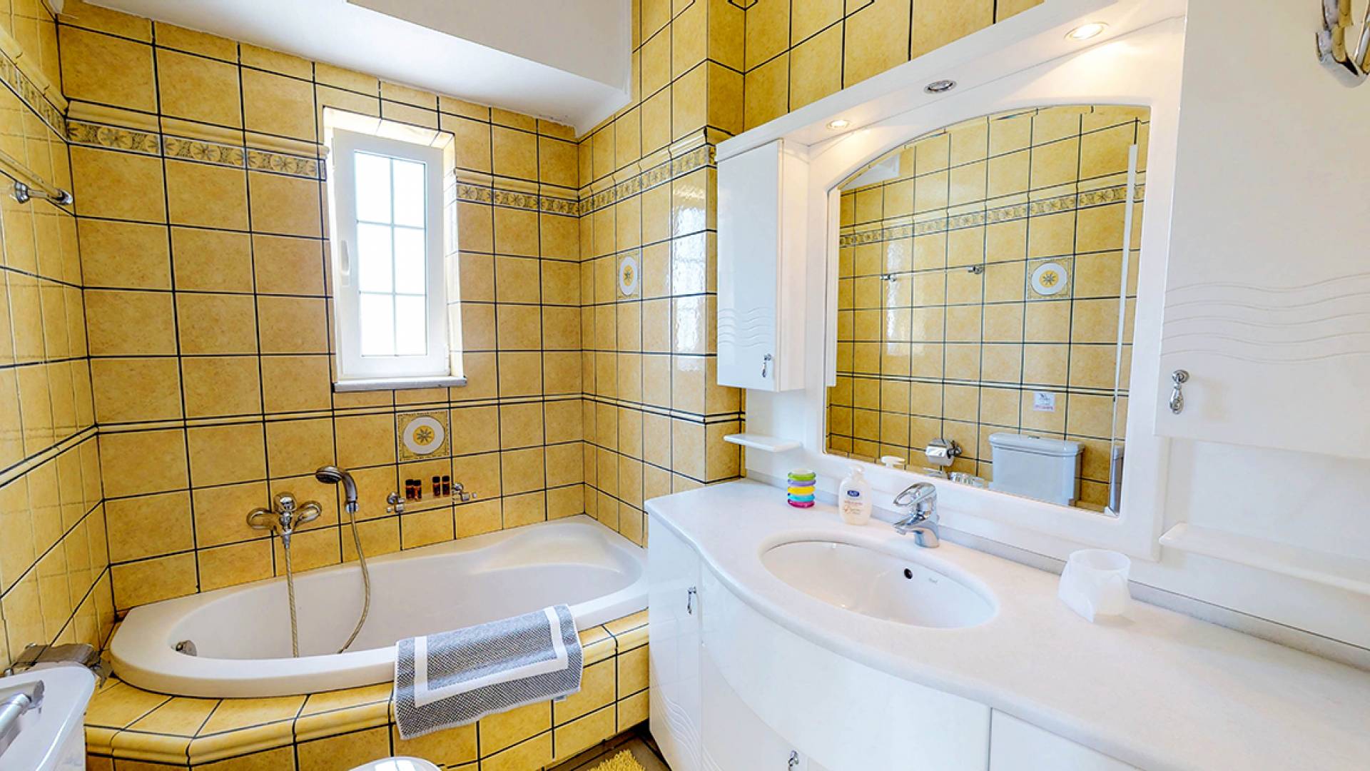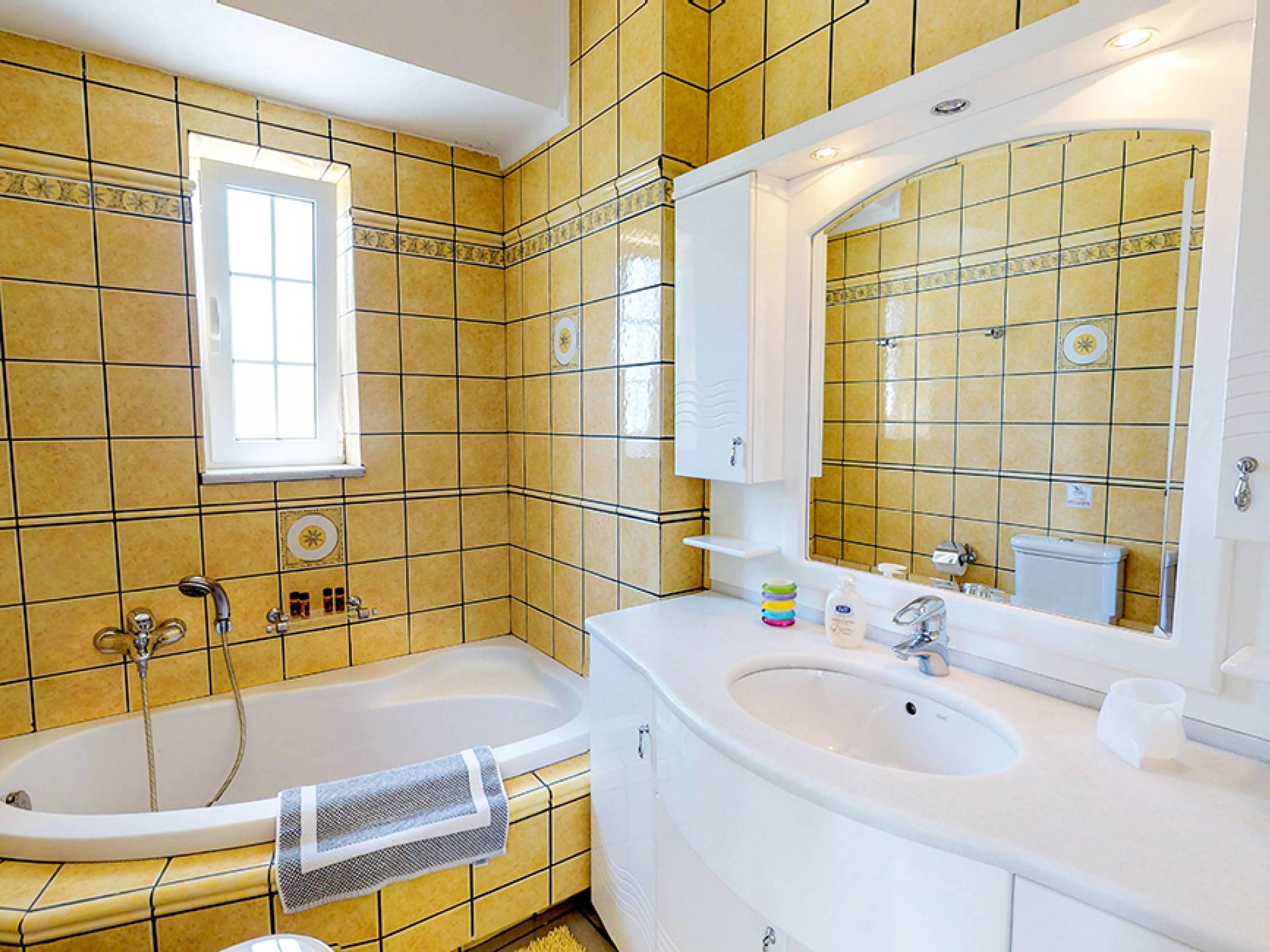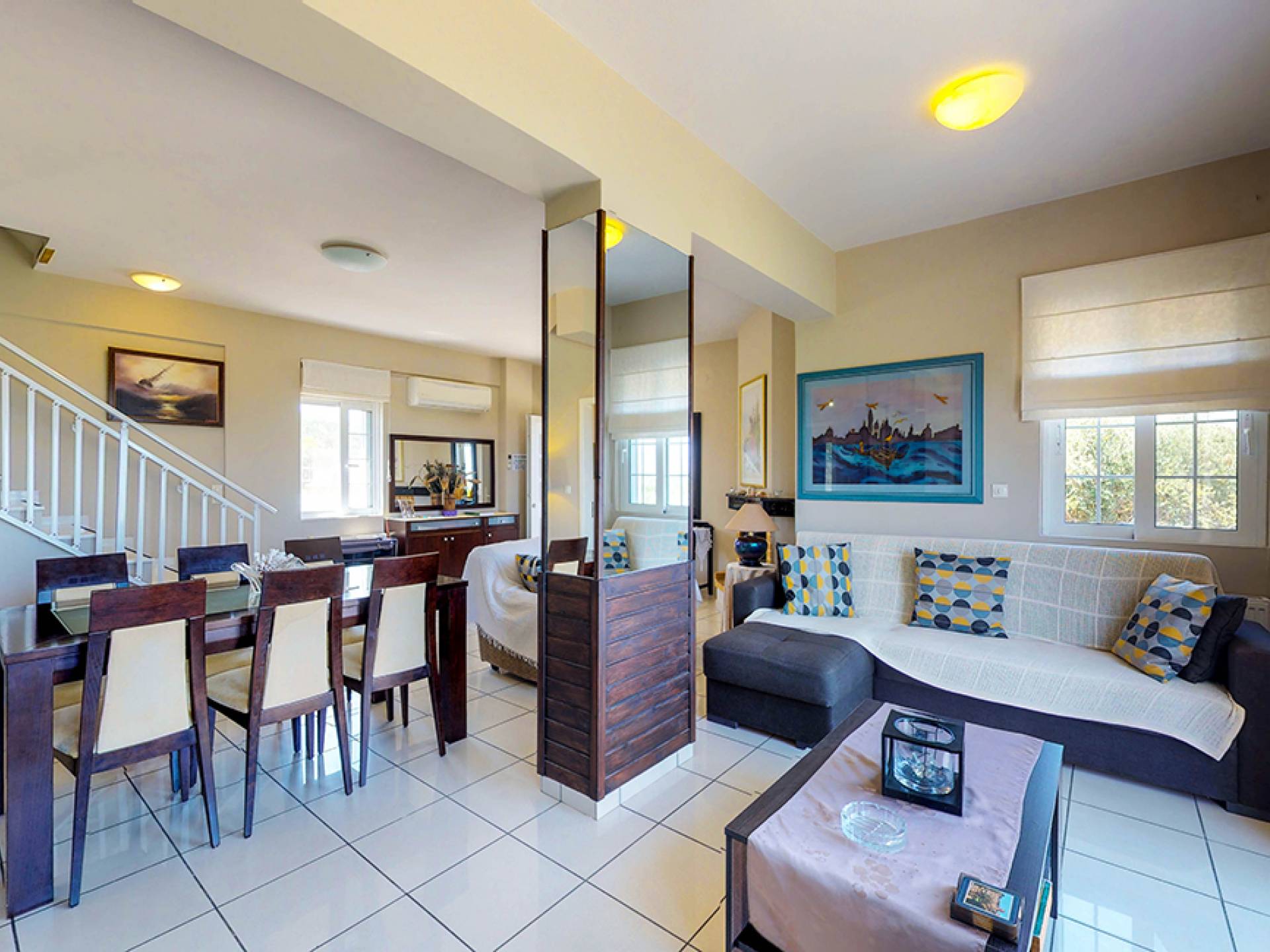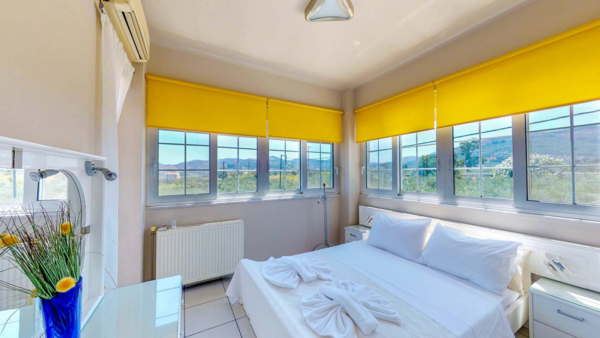 Au rez-de-chaussée, il y a de grandes fenêtres et un balcon. La villa en duplex se compose d'un coin salon avec cheminée et télévision par satellite à écran plat. Il y a une grande chambre double, 1 salle de bain et une cuisine entièrement équipée avec lave-vaisselle et micro-ondes. Au premier étage, il y a la chambre principale avec un grand lit double et une salle de bain attenante. Il y a deux autres chambres qui partagent une autre salle de bain. L'une des chambres a un lit double et l'autre deux lits simples. À l'extérieur, il y a une piscine privée, la piscine avec transats et parasols, un grand jardin avec gazon et barbecue et une place de parking. Il y a aussi des terrasses et des balcons avec vue mer et montagne.