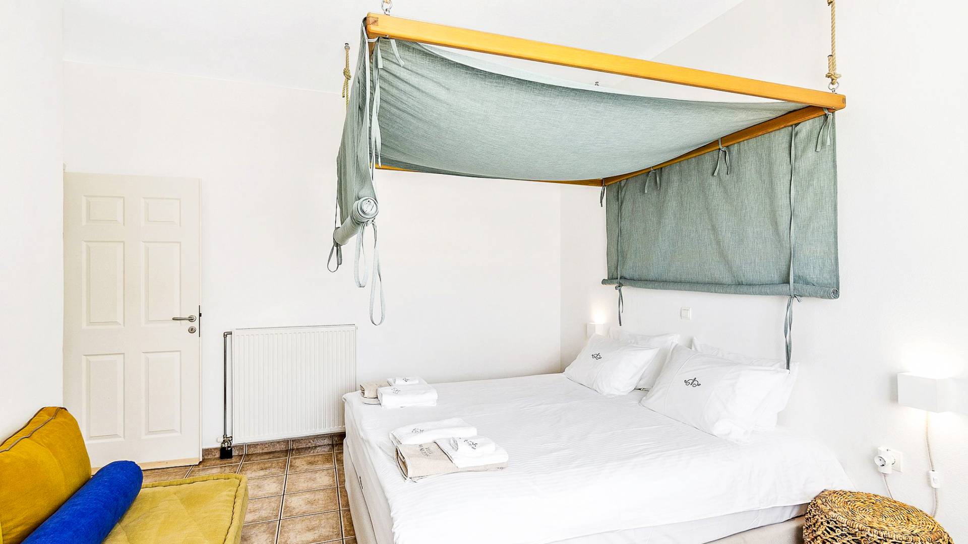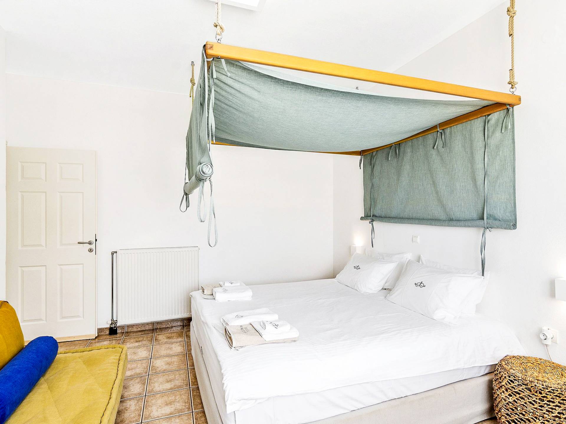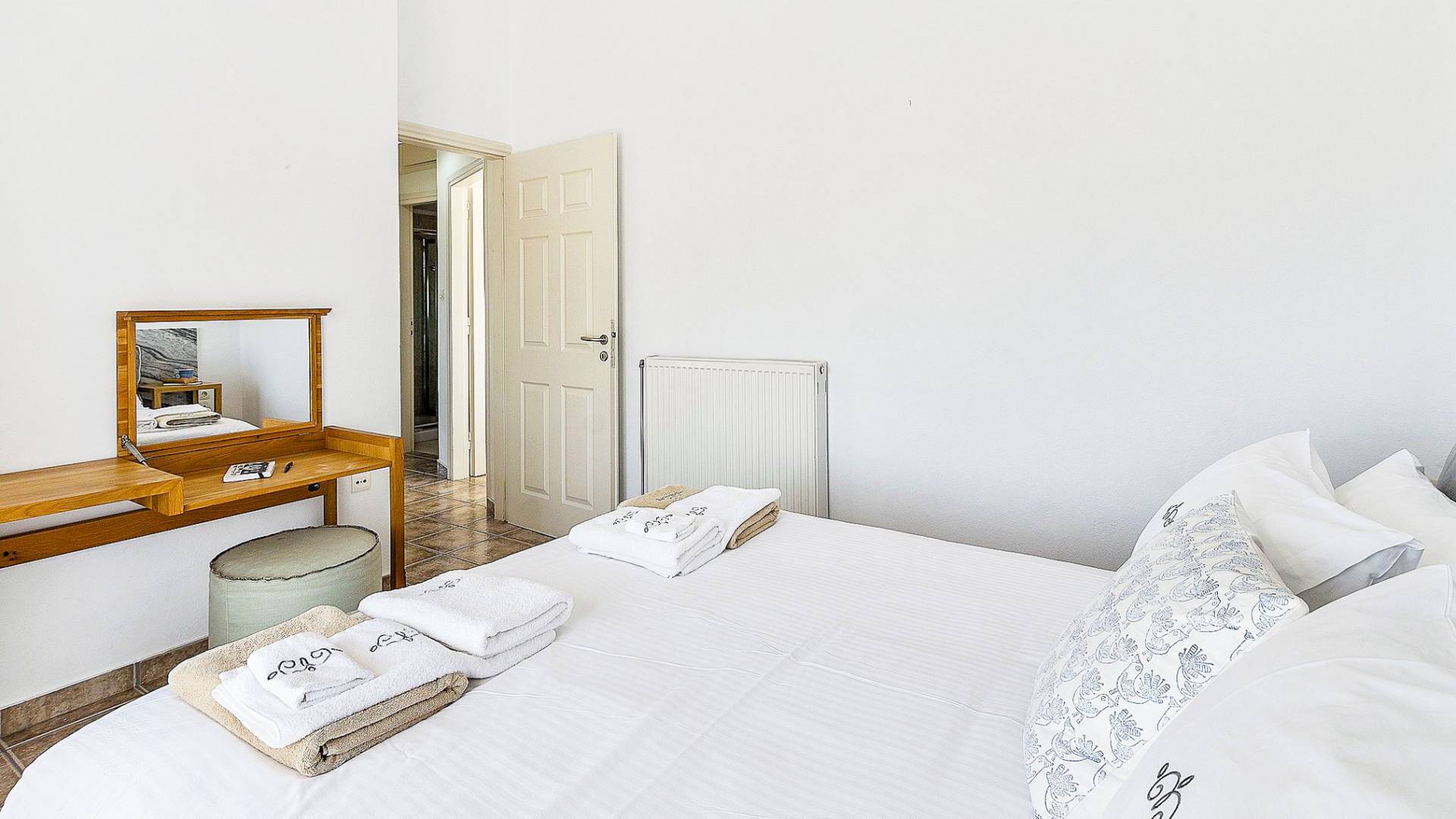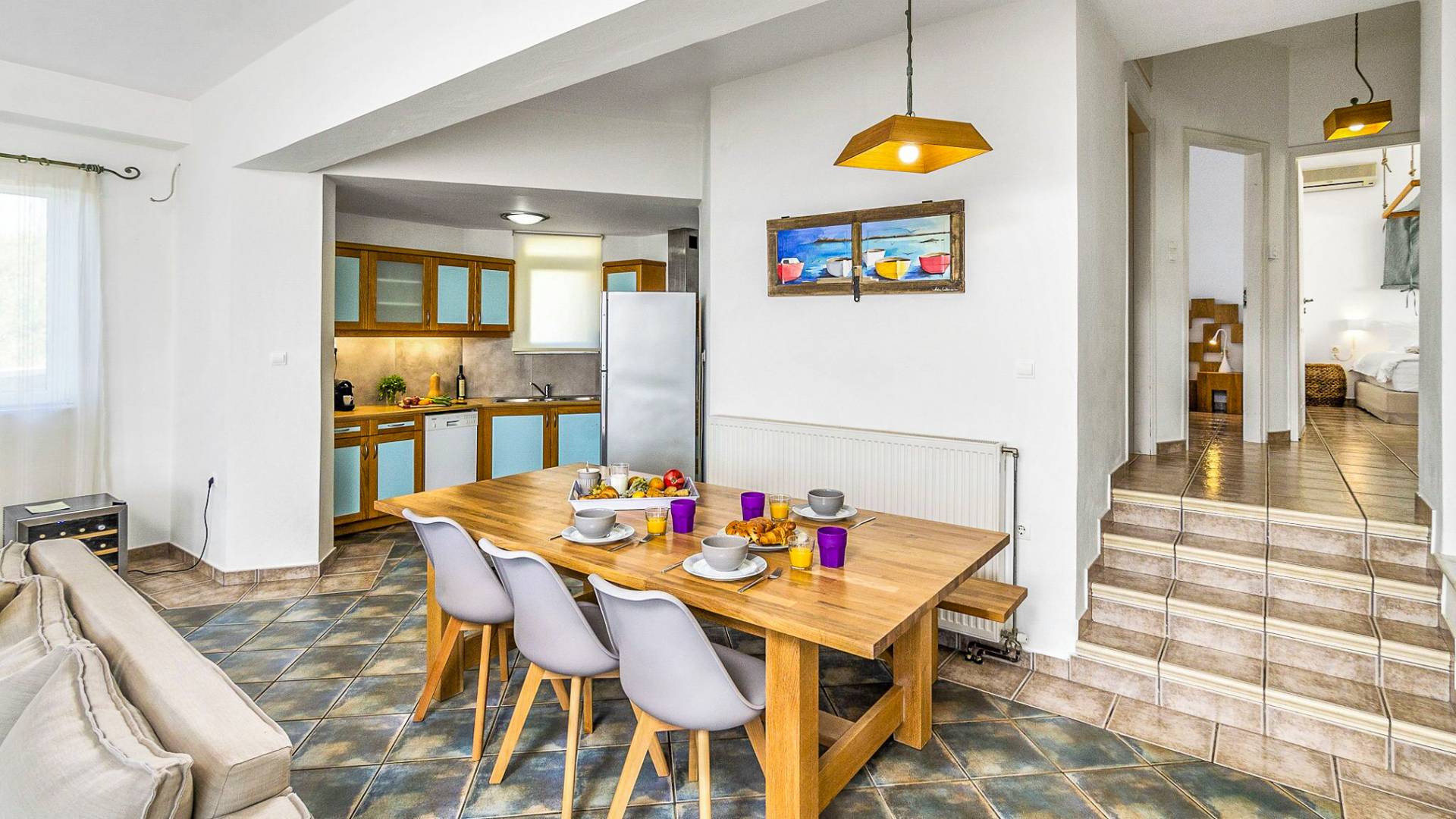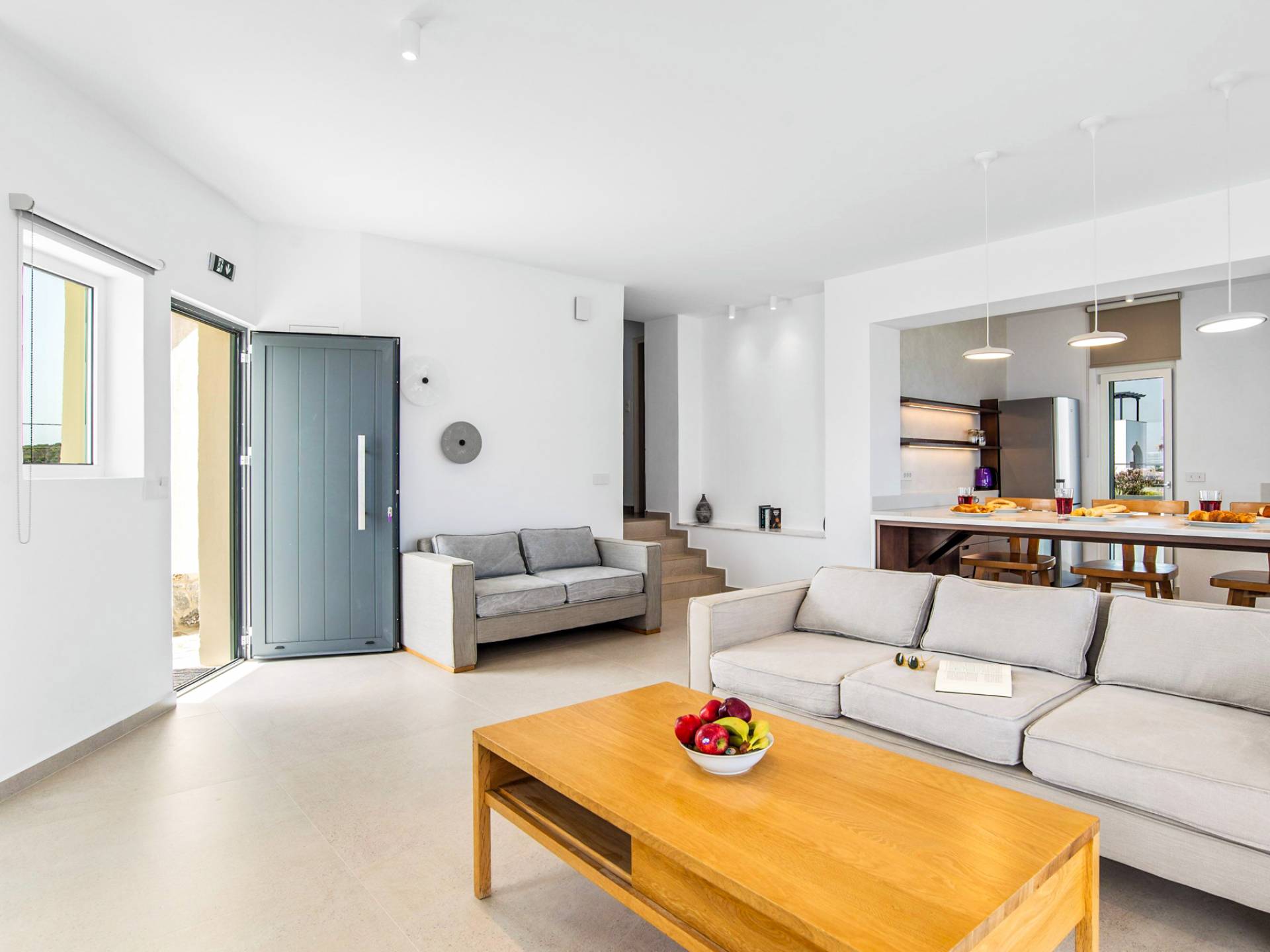 Le salon doté d'une cheminée est meublé avec goût avec des canapés et des fauteuils confortables, une large fenêtre vitrée avec deux portes mène à un immense balcon avec une vue à couper le souffle. Chaque appartement dispose en outre d'un lave-vaisselle et d'un lave-linge dans la plus grande des deux salles de bains. Avec une brise constante pour laquelle la Crète est bien connue, Passion Villa Chania ne se sent jamais étouffante et pourtant la climatisation est fournie dans chaque pièce.