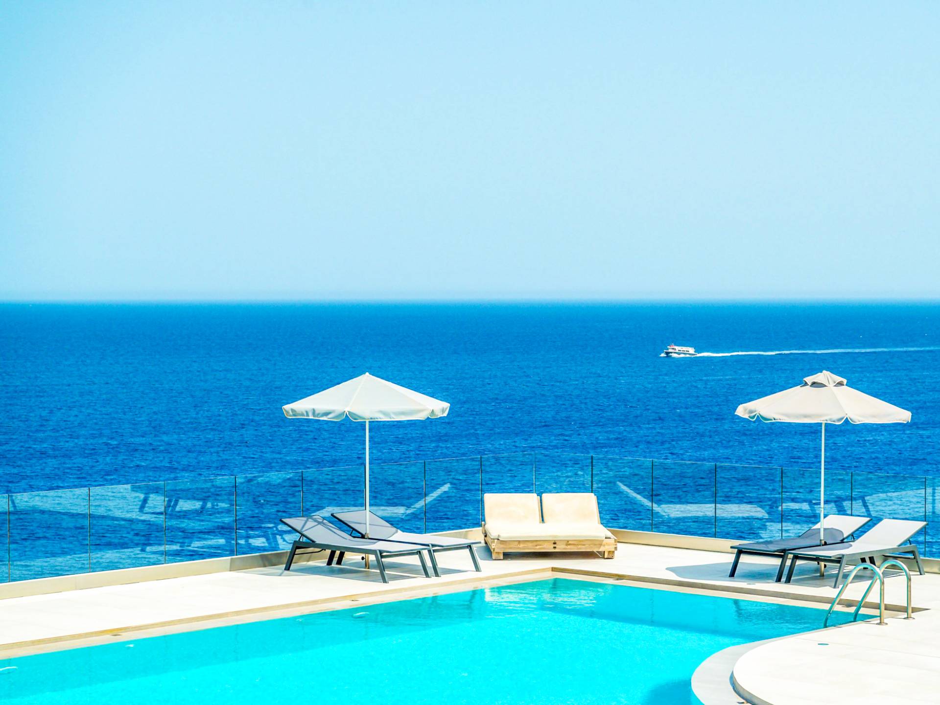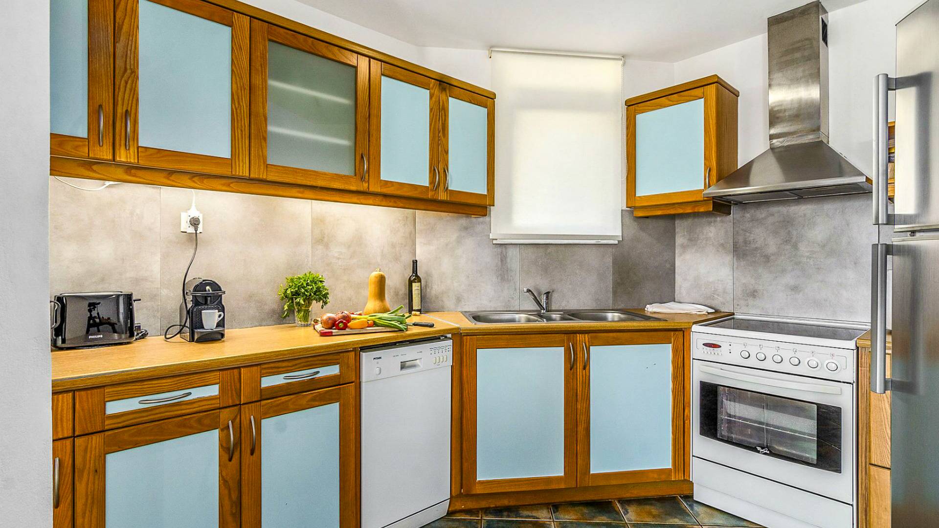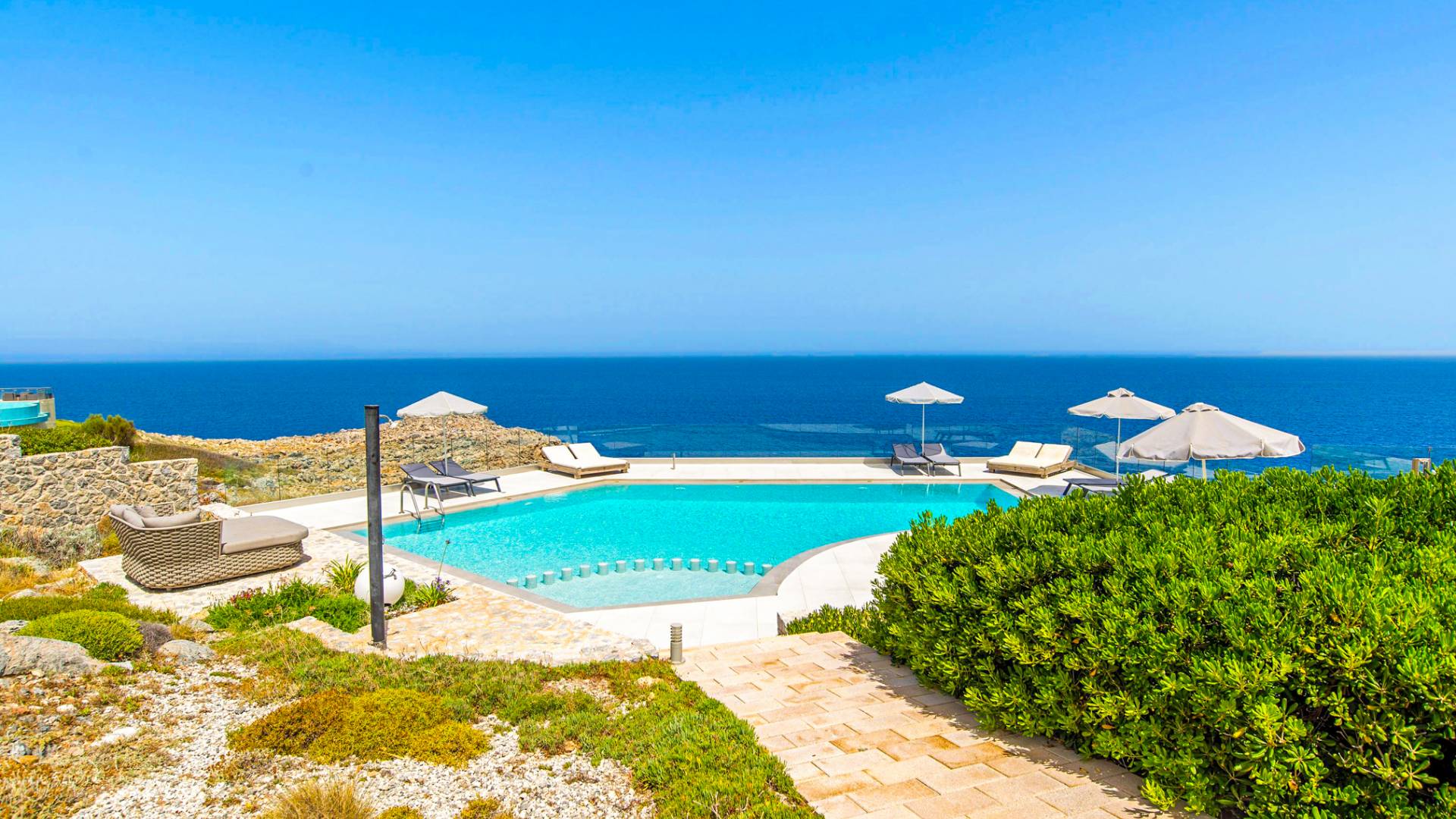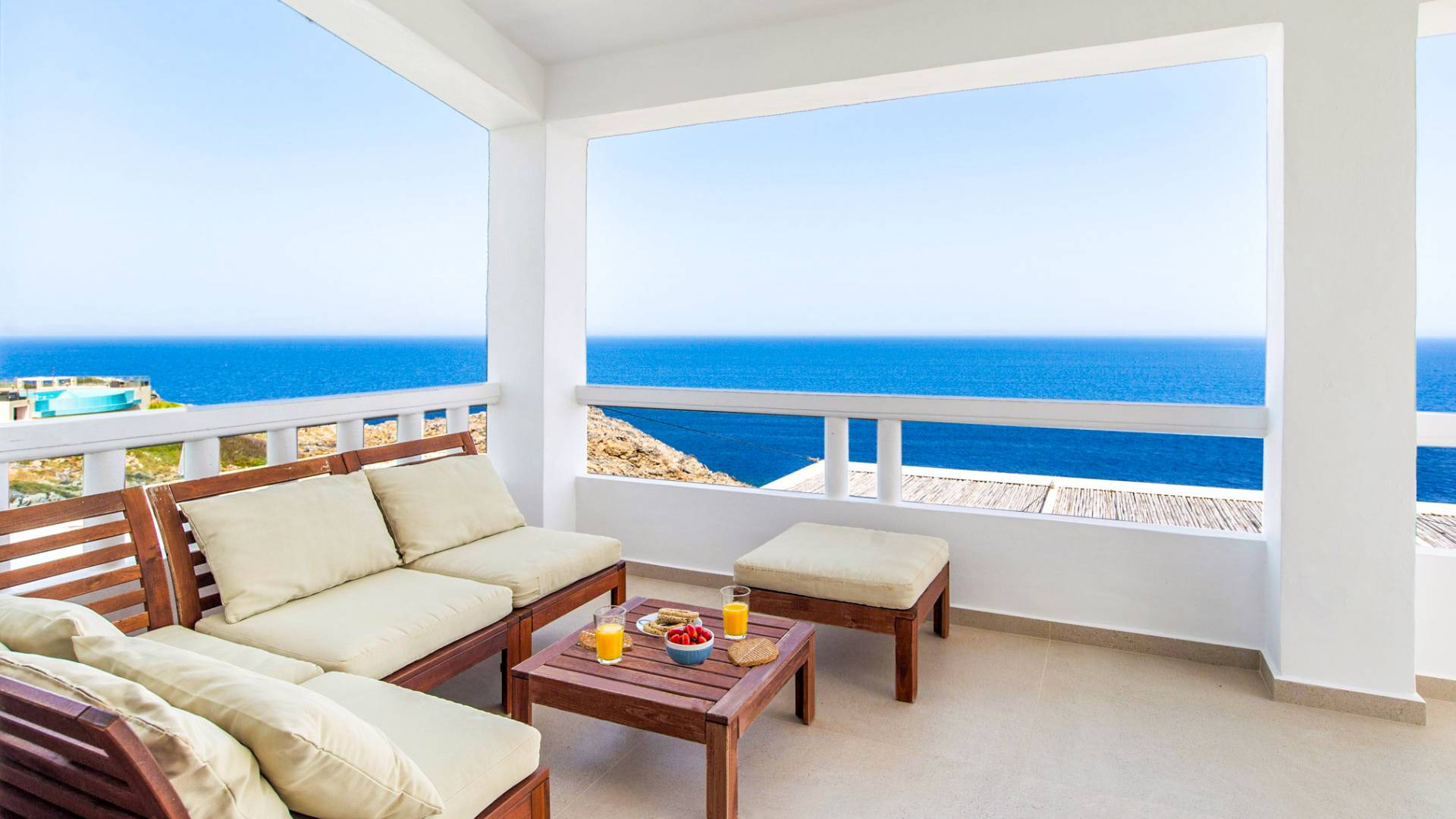 La piscine est située dans les rochers d'un côté et est accessible par un chemin commun depuis la maison. Que vous vous prélassiez sur les terrasses autour de la piscine ou que vous vous détendiez sur les spacieux balcons privés, les vues sont fabuleuses et le silence n'est rompu que par les vagues contre le rivage rocheux en contrebas. Le niveau des intérieurs est élevé, chaque appartement se compose de deux salles de bains, une avec douche et une avec baignoire, trois chambres de bonne taille, deux doubles et une twin, certaines chambres ont un balcon, un spacieux salon/salle à manger avec un cuisine dans une partie à côté du salon.