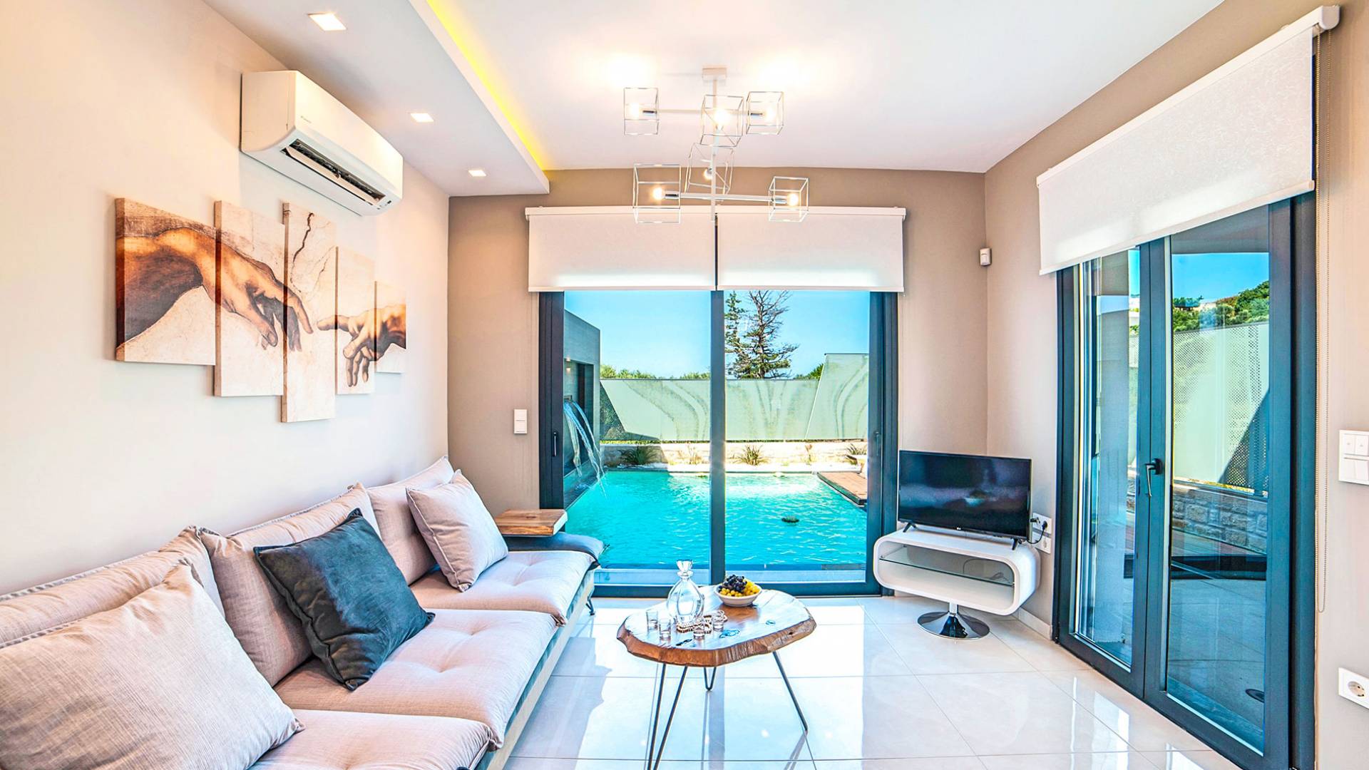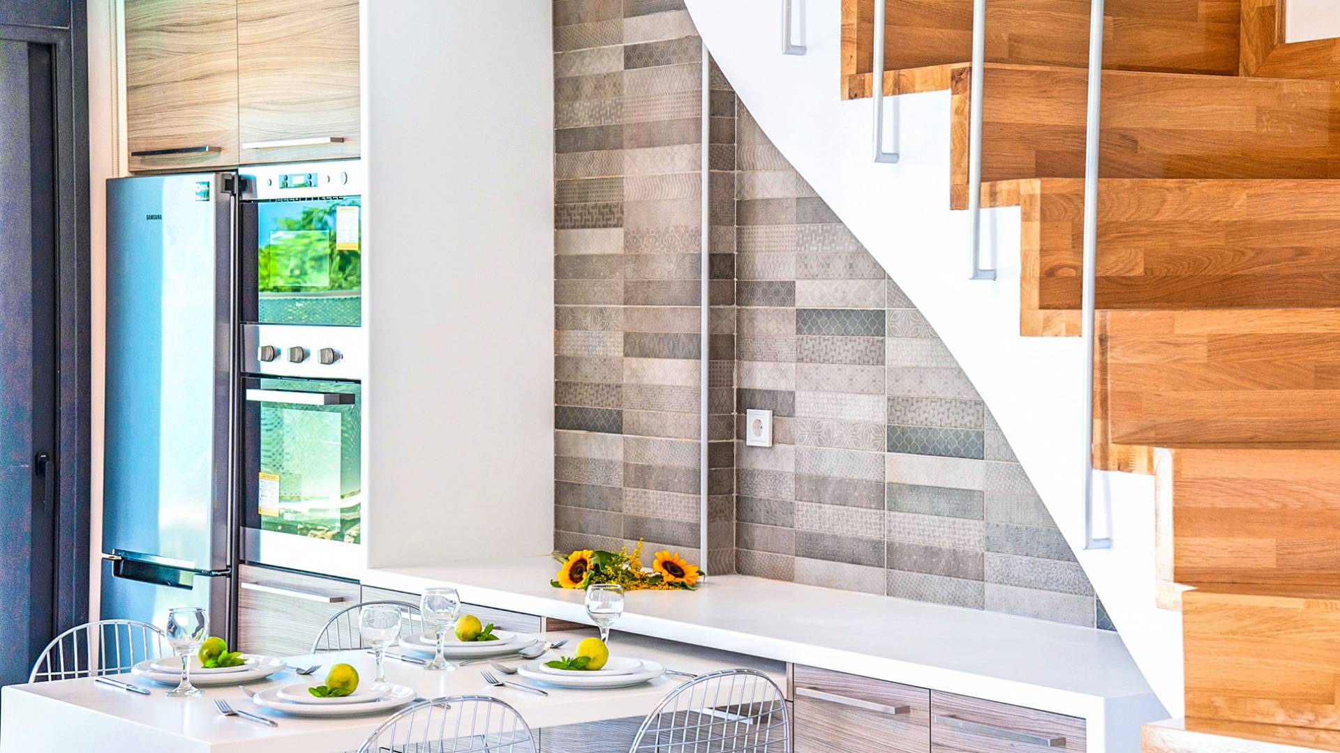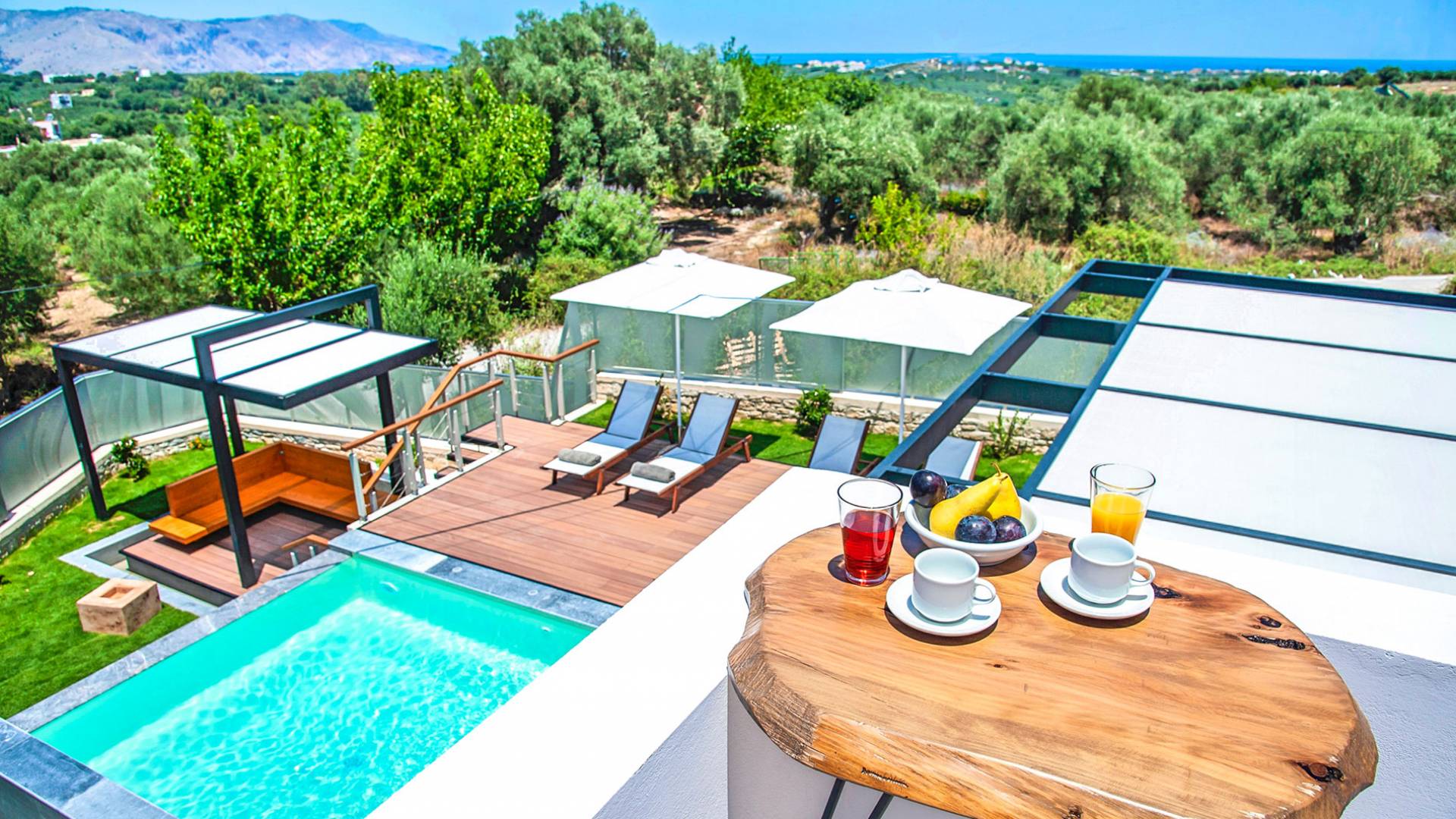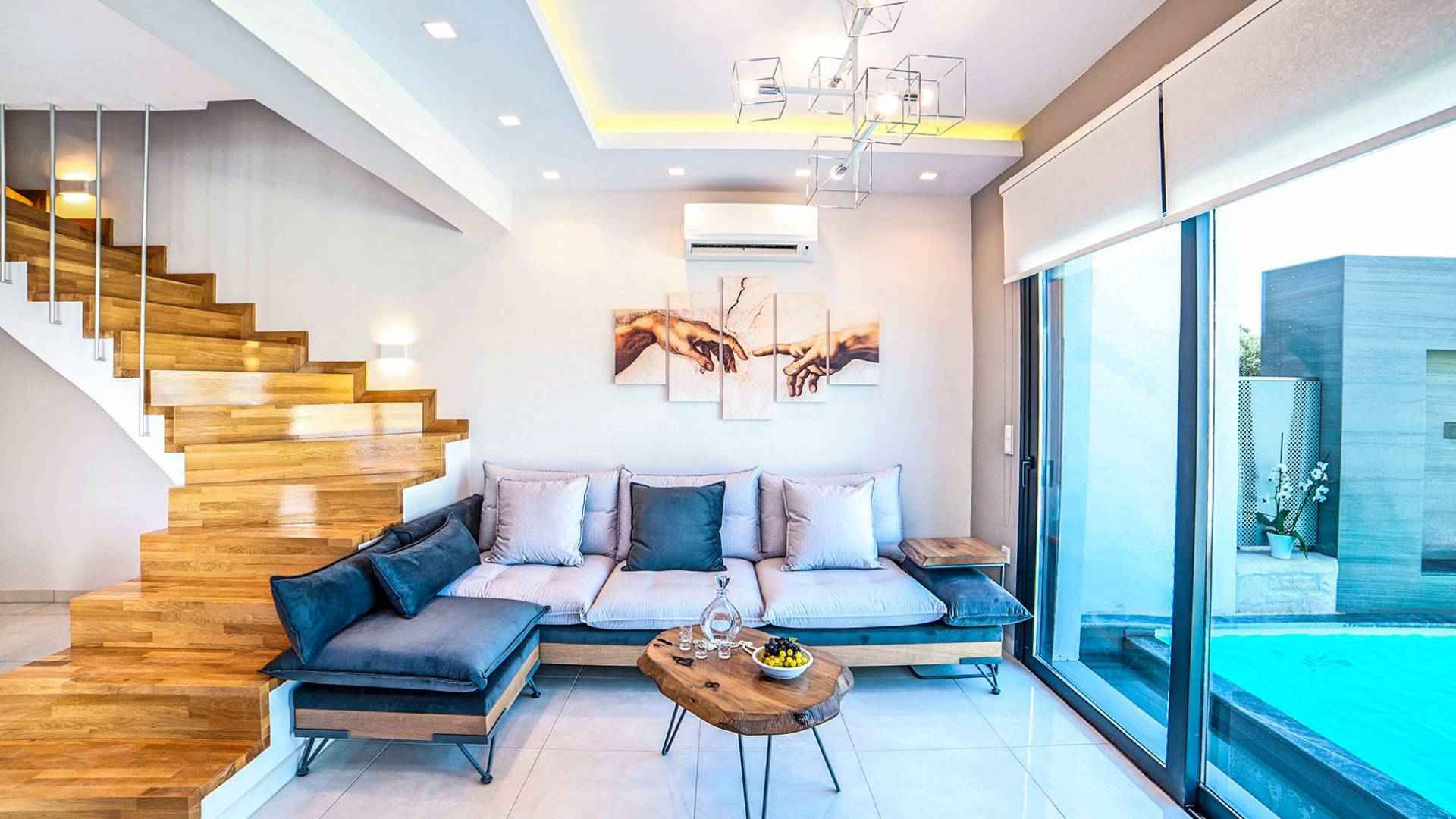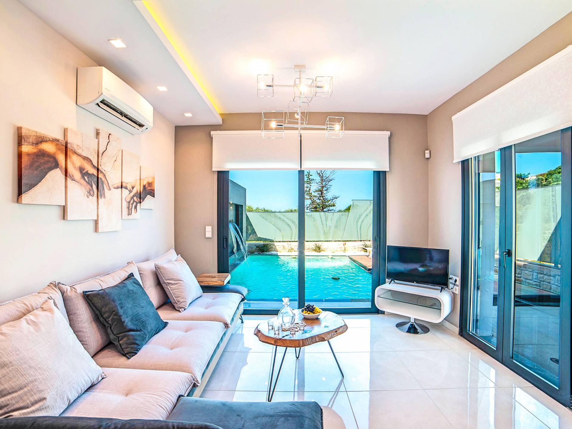 Une intimité maximale, des installations enrichies et une piscine privée en cascade avec jacuzzi complètent l'escapade la plus inoubliable et offrent un espace de vie décloisonné avec des chaises longues flottantes, un barbecue et un coin repas. À l'intérieur de chaque villa, l'étage supérieur comprend deux chambres spacieuses, une avec des lits queen-size, une deuxième chambre avec des lits jumeaux rapprochés et une salle de bains élégante avec douche. Une cuisine moderne entièrement équipée avec un coin repas se trouve au niveau inférieur de chaque villa, combinée à une salle de bain luxueuse et un coin salon attenant avec un canapé d'angle et tout cela avec un accès direct à la piscine. Perla Estate est idéal pour les familles, un groupe de familles ou un groupe d'amis. Profitez de vos vacances avec vos parents ou avec le reste de votre famille tout en préservant votre intimité comme chez vous.