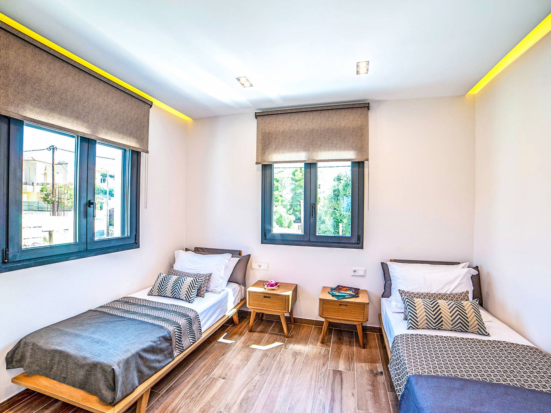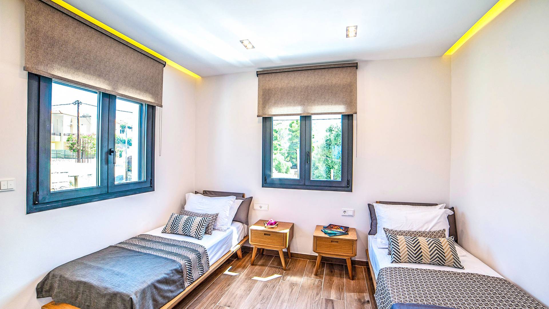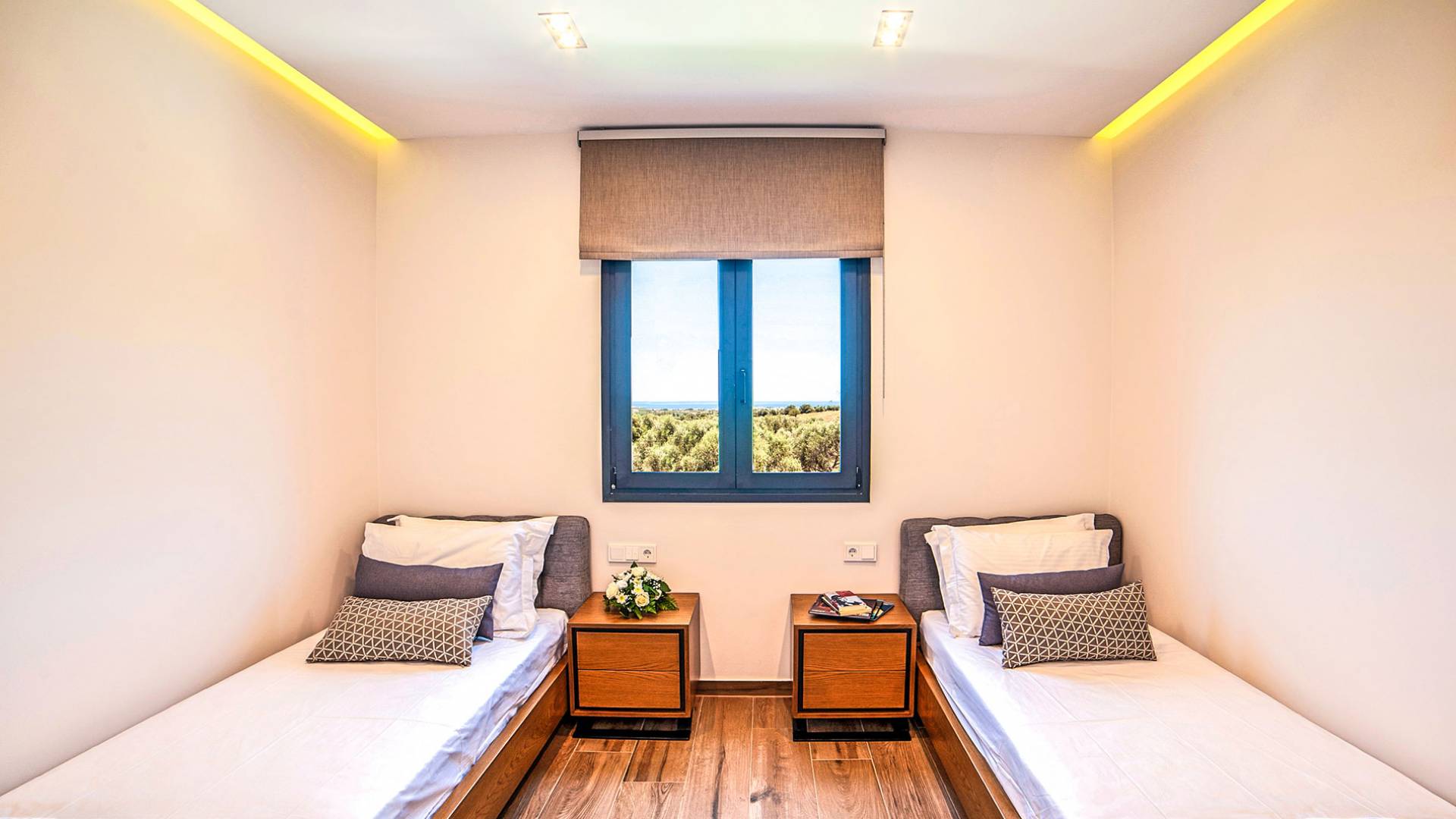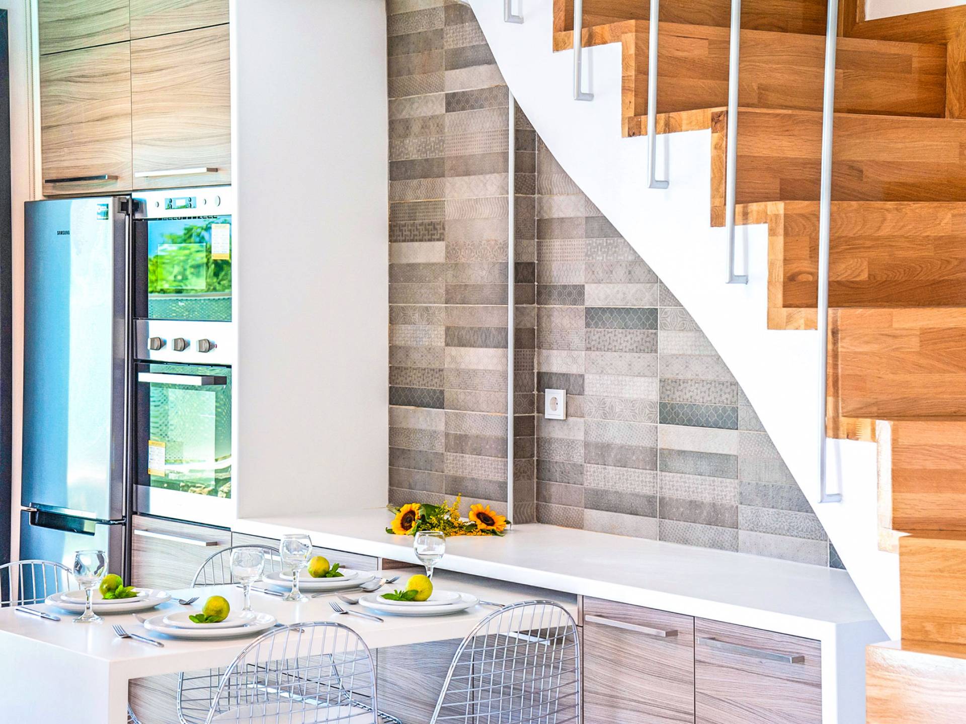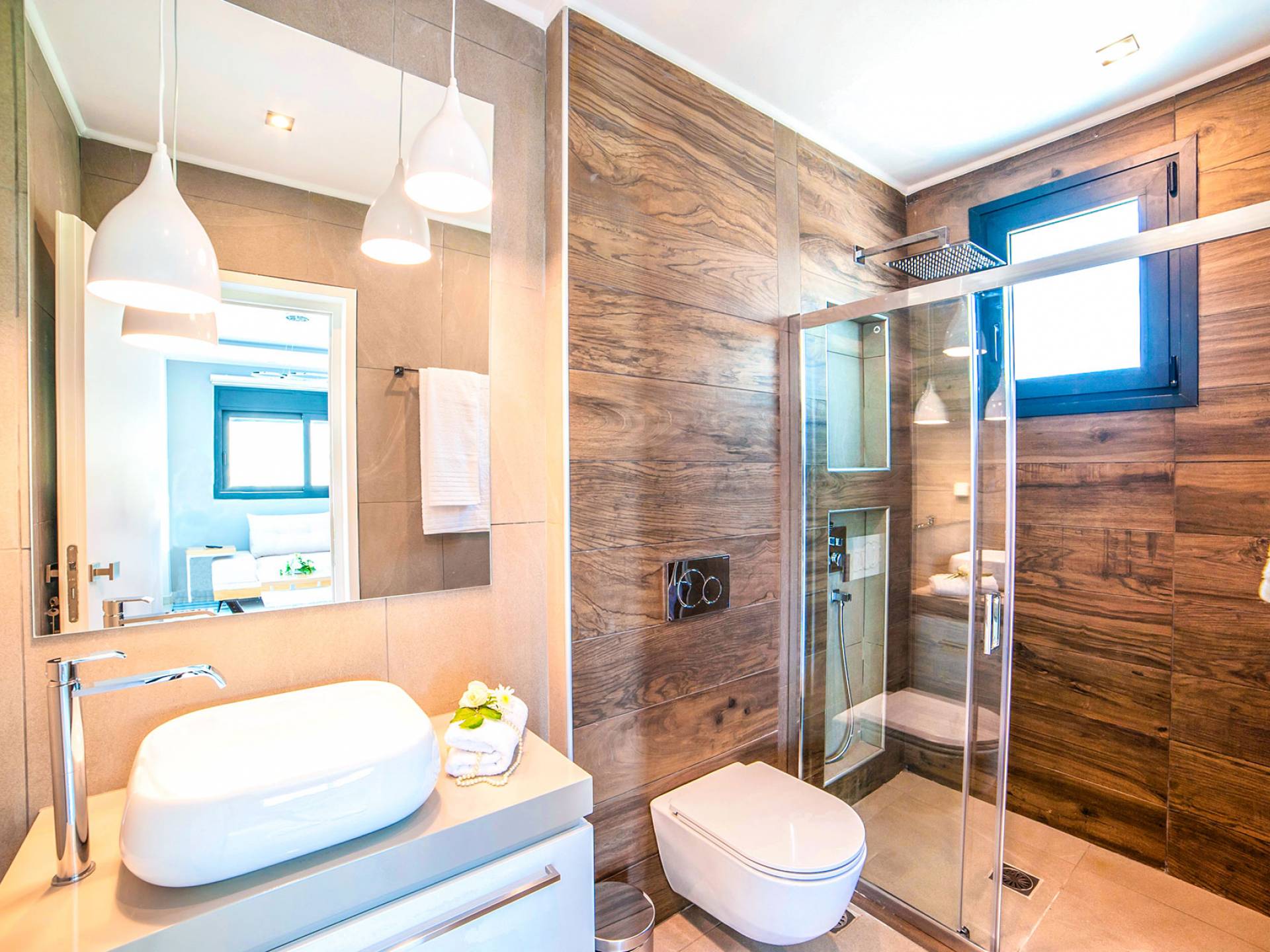 Une intimité maximale, des installations enrichies et une piscine privée en cascade avec jacuzzi complètent l'escapade la plus inoubliable et offrent un espace de vie décloisonné avec des chaises longues flottantes, un barbecue et un coin repas. À l'intérieur de chaque villa, l'étage supérieur comprend deux chambres spacieuses, une avec des lits queen-size, une deuxième chambre avec des lits jumeaux rapprochés et une salle de bains élégante avec douche. Une cuisine moderne entièrement équipée avec un coin repas se trouve au niveau inférieur de chaque villa, combinée à une salle de bain luxueuse et un coin salon attenant avec un canapé d'angle et tout cela avec un accès direct à la piscine. Perla Estate est idéal pour les familles, un groupe de familles ou un groupe d'amis. Profitez de vos vacances avec vos parents ou avec le reste de votre famille tout en préservant votre intimité comme chez vous.