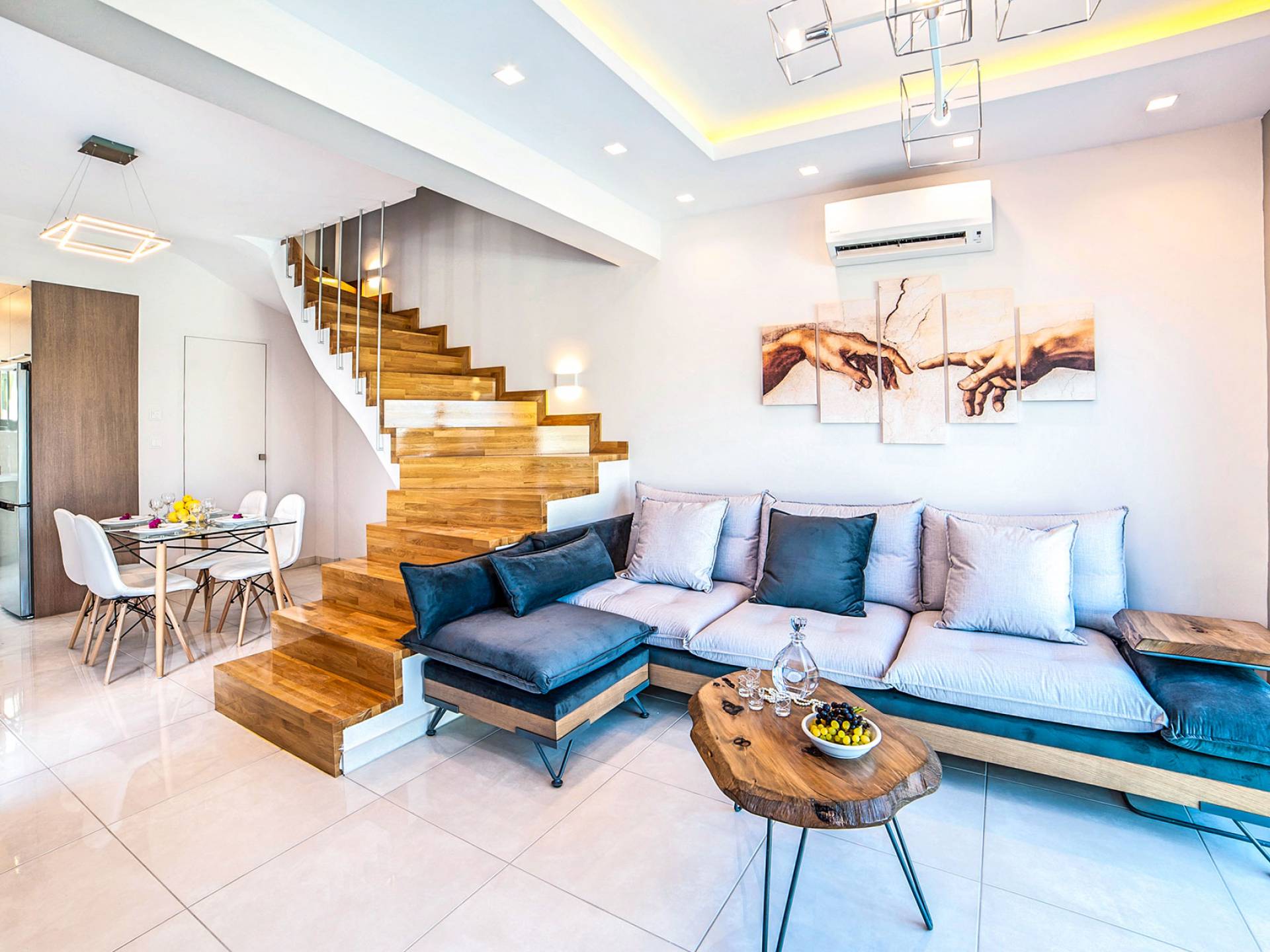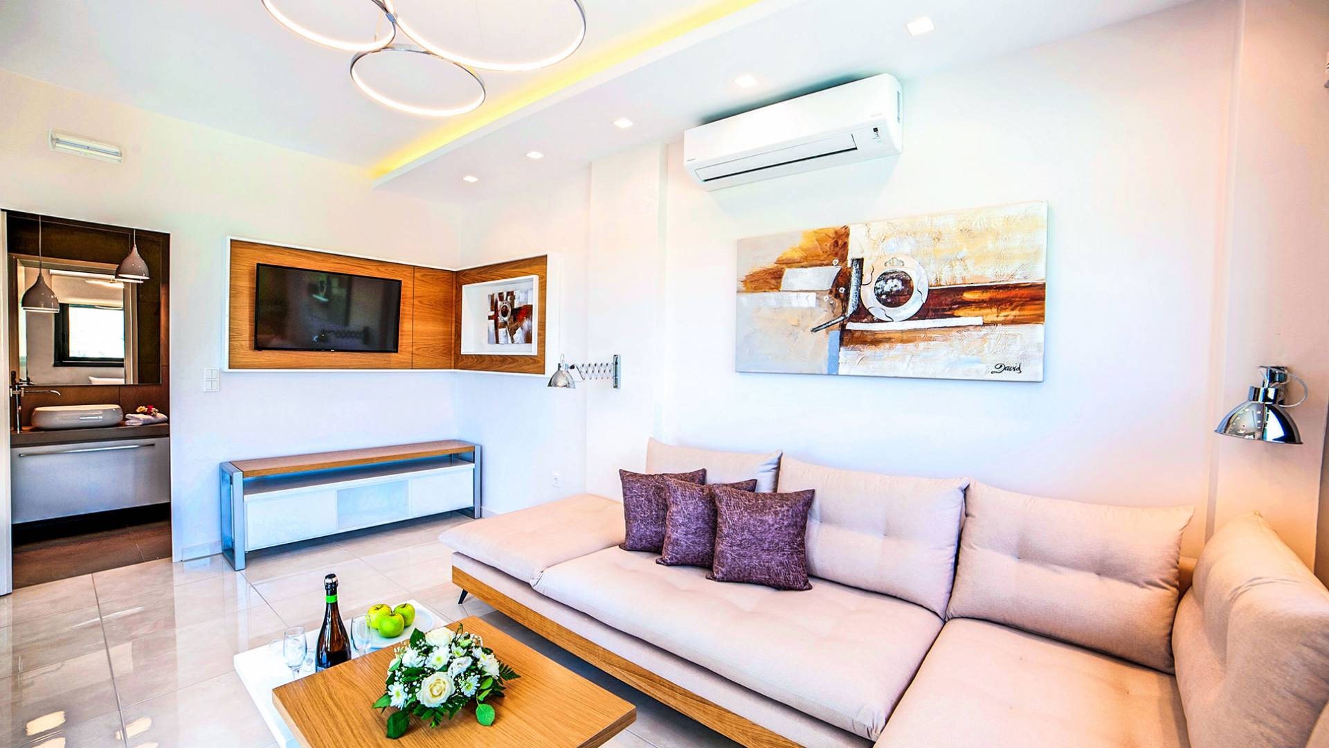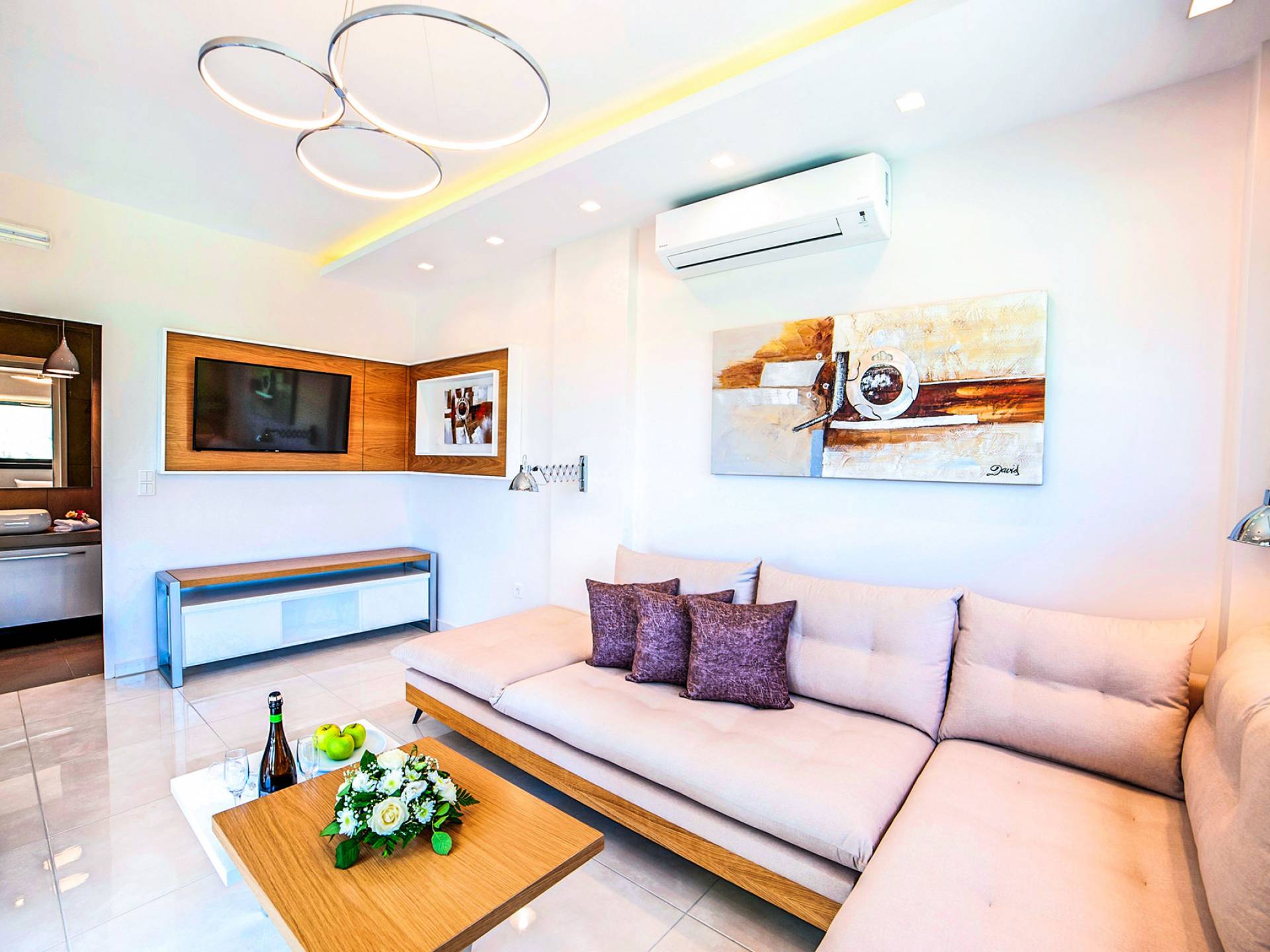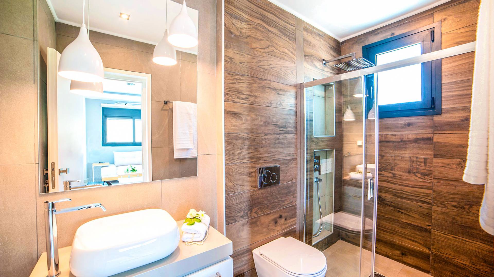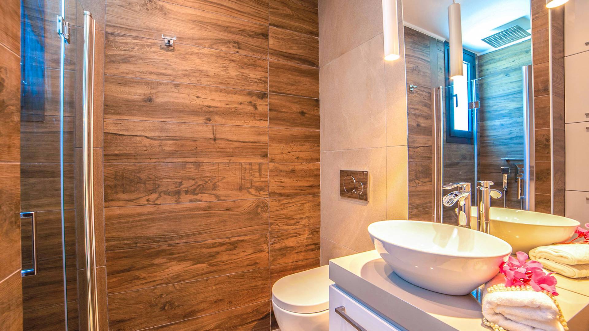 Une intimité maximale, des installations enrichies et une piscine privée en cascade avec jacuzzi complètent l'escapade la plus inoubliable et offrent un espace de vie décloisonné avec des chaises longues flottantes, un barbecue et un coin repas. À l'intérieur de chaque villa, l'étage supérieur comprend deux chambres spacieuses, une avec des lits queen-size, une deuxième chambre avec des lits jumeaux rapprochés et une salle de bains élégante avec douche. Une cuisine moderne entièrement équipée avec un coin repas se trouve au niveau inférieur de chaque villa, combinée à une salle de bain luxueuse et un coin salon attenant avec un canapé d'angle et tout cela avec un accès direct à la piscine. Perla Estate est idéal pour les familles, un groupe de familles ou un groupe d'amis. Profitez de vos vacances avec vos parents ou avec le reste de votre famille tout en préservant votre intimité comme chez vous.