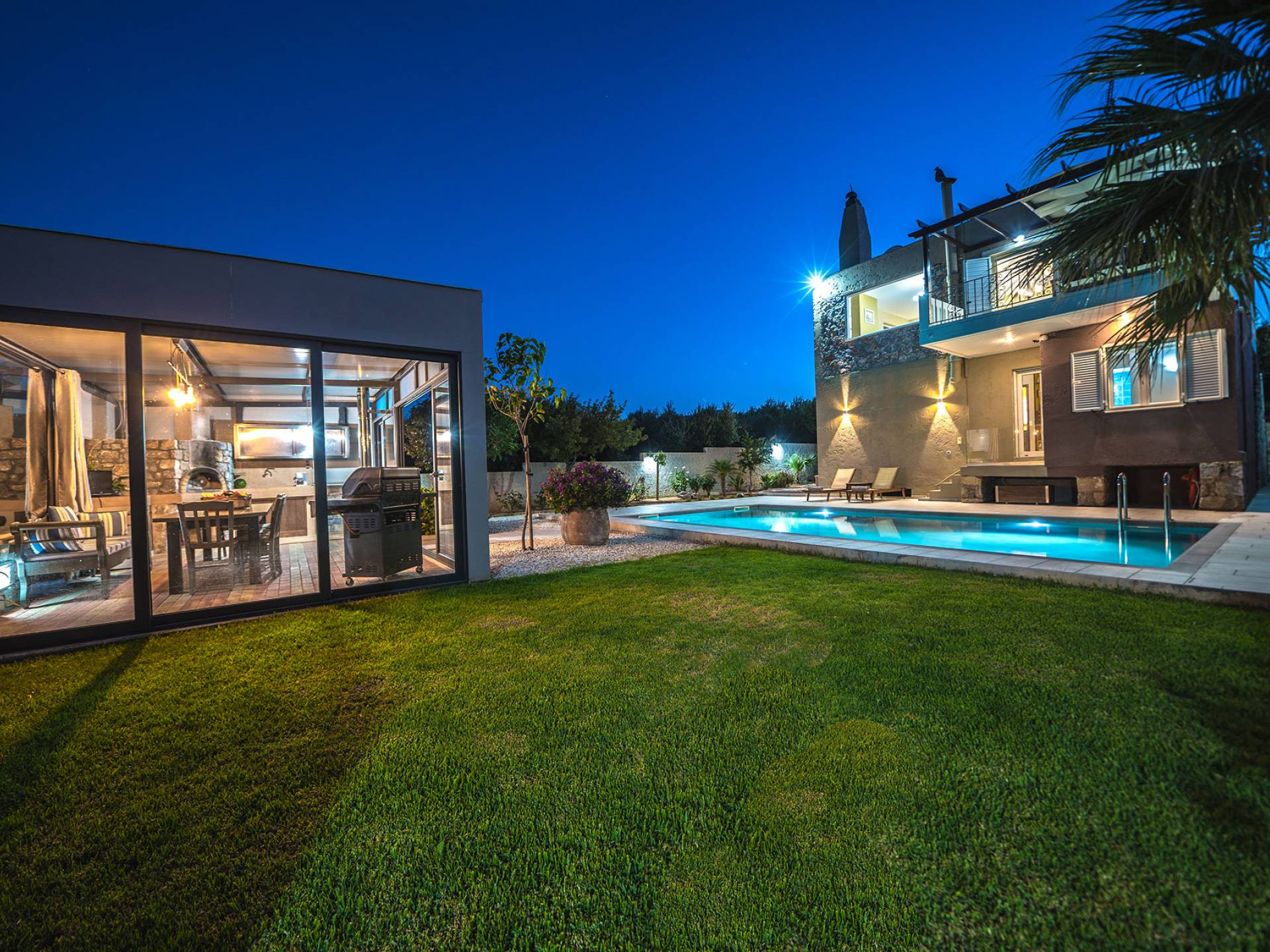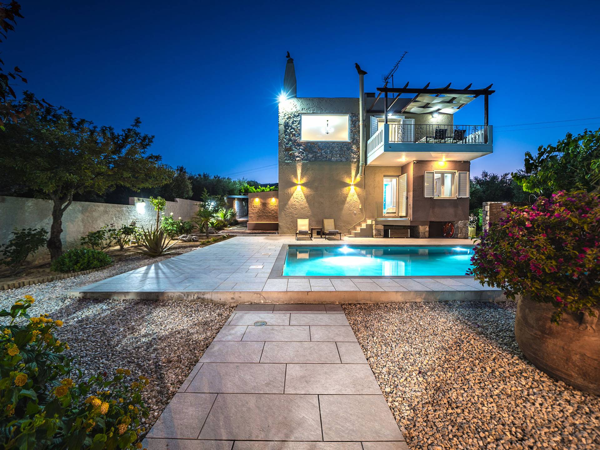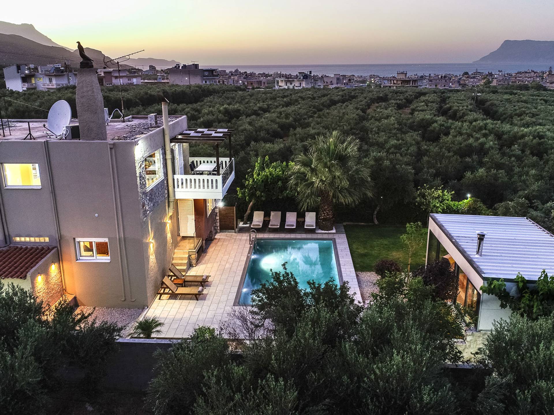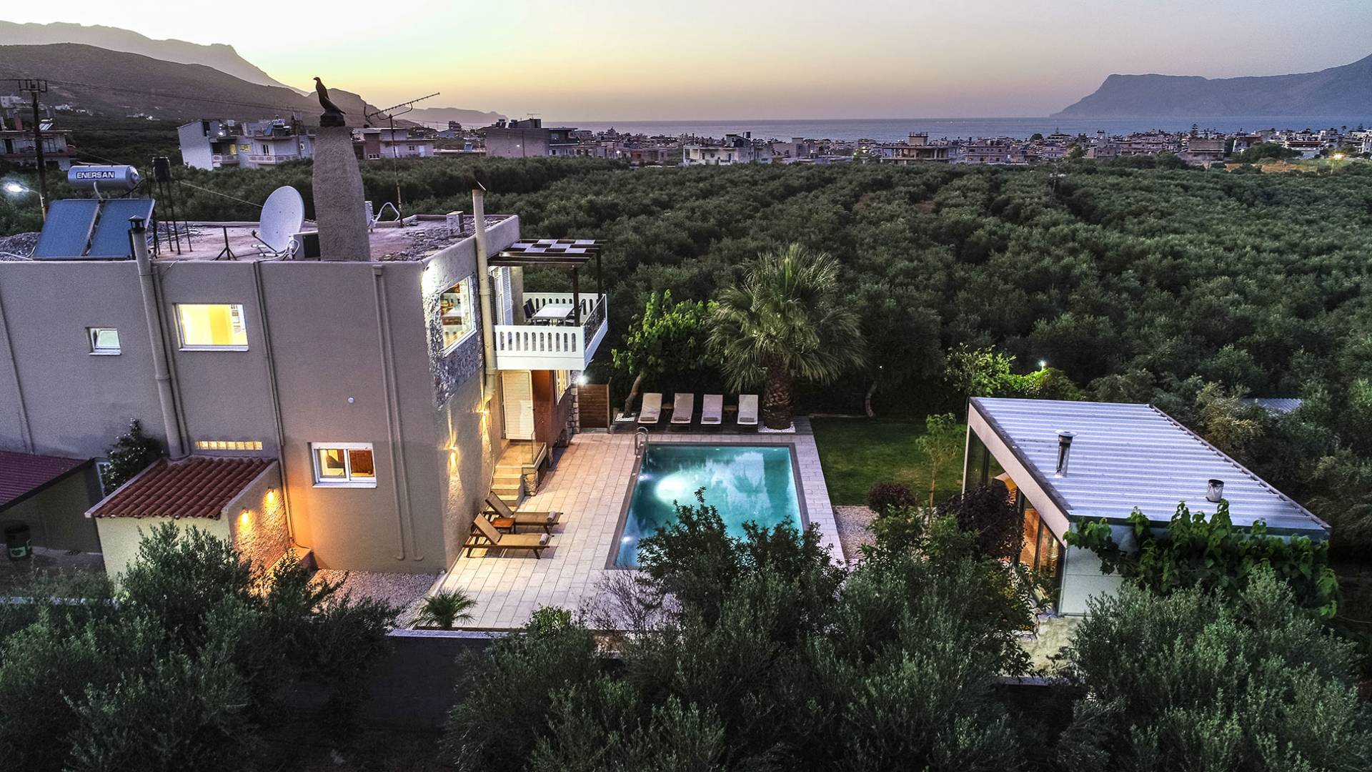 Au 1er étage de la maison, il y a 2 vérandas dont la plus grande est une salle à manger où vous pourrez prendre votre petit déjeuner, avec vue mer et montagne illimitée. Dans le magnifique jardin paysager de la villa, il y a une piscine de 35 m² avec une douche extérieure et une cuisine entièrement équipée avec une table à manger pouvant accueillir 10 personnes. Il y a aussi un four à bois traditionnel. La villa dispose également de 3 télévisions à écran plat, dont une smart tv avec satellite de 50 pouces. Les chambres de la villa sont climatisées, avec wi-fi, ainsi que deux cheminées pouvant contenir. Toutes les couches sont orthopédiques et hypoallergéniques, ainsi qu'une sélection d'oreillers. La villa dispose également d'une piscine privée pouvant être chauffée sur demande. À côté de la villa, il y a un jardin biologique, où vous pouvez visiter et ramasser de nombreuses sortes de légumes frais. Petronila Villa Chania est à seulement 1 km de la plage la plus proche.