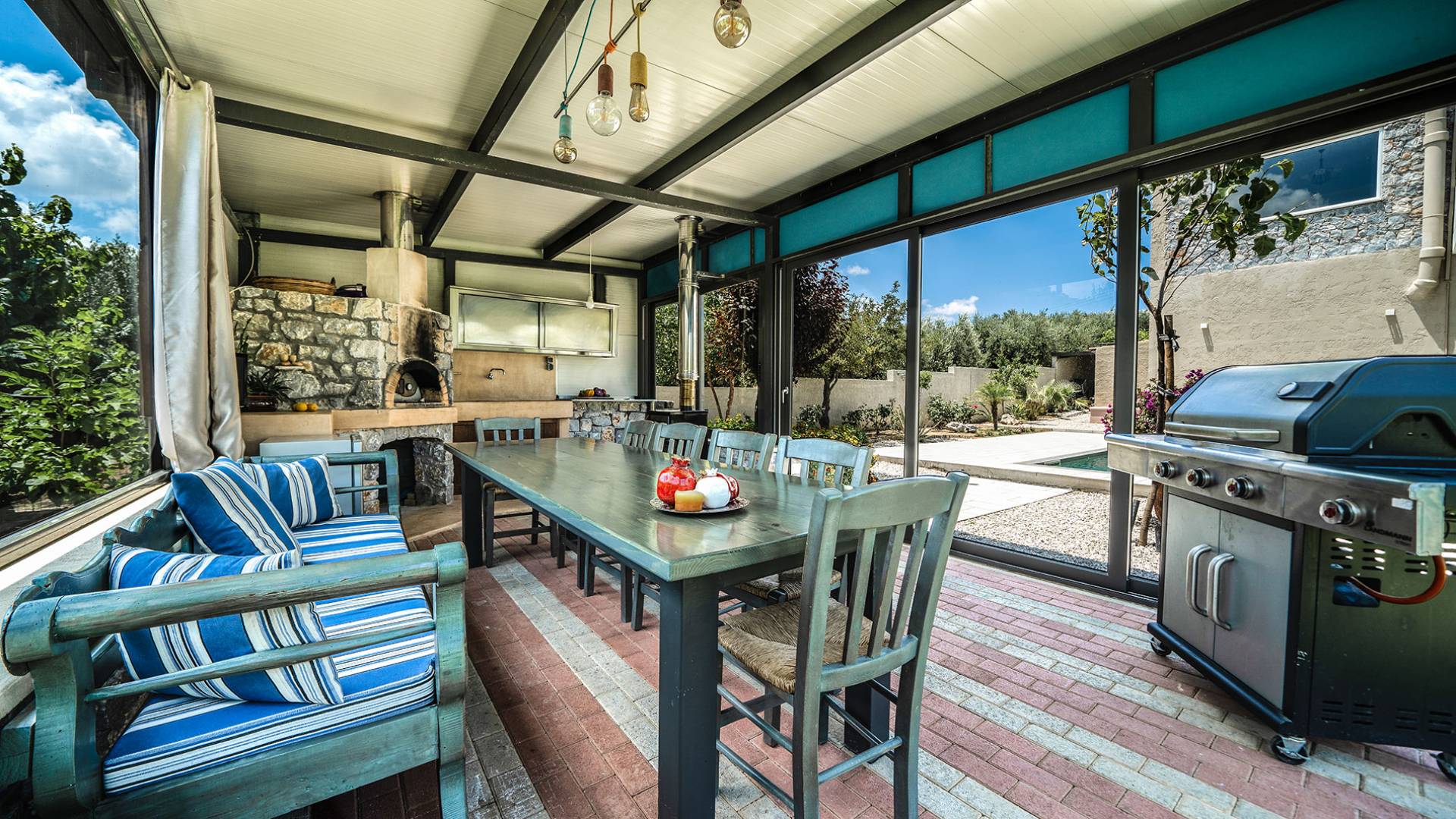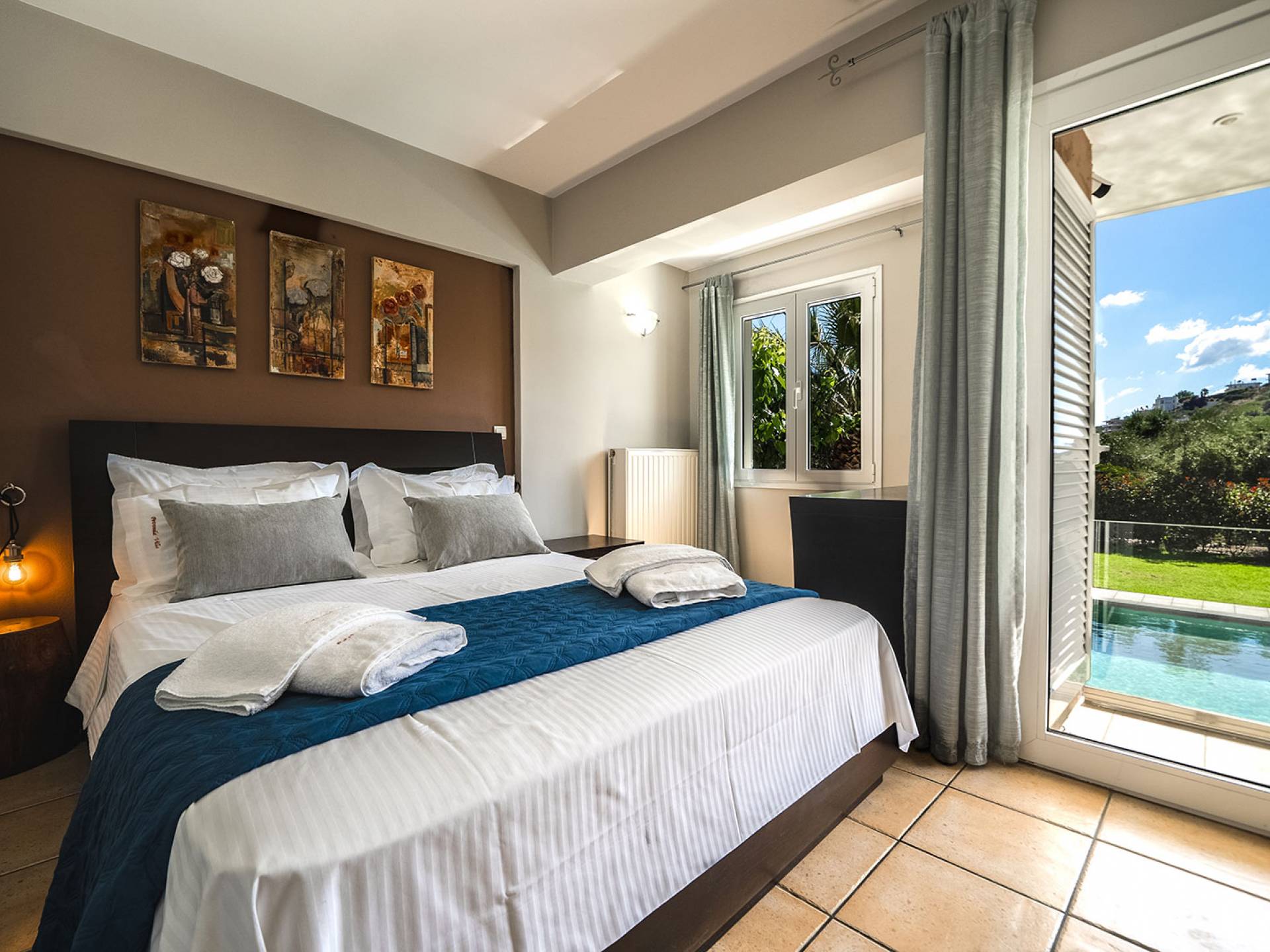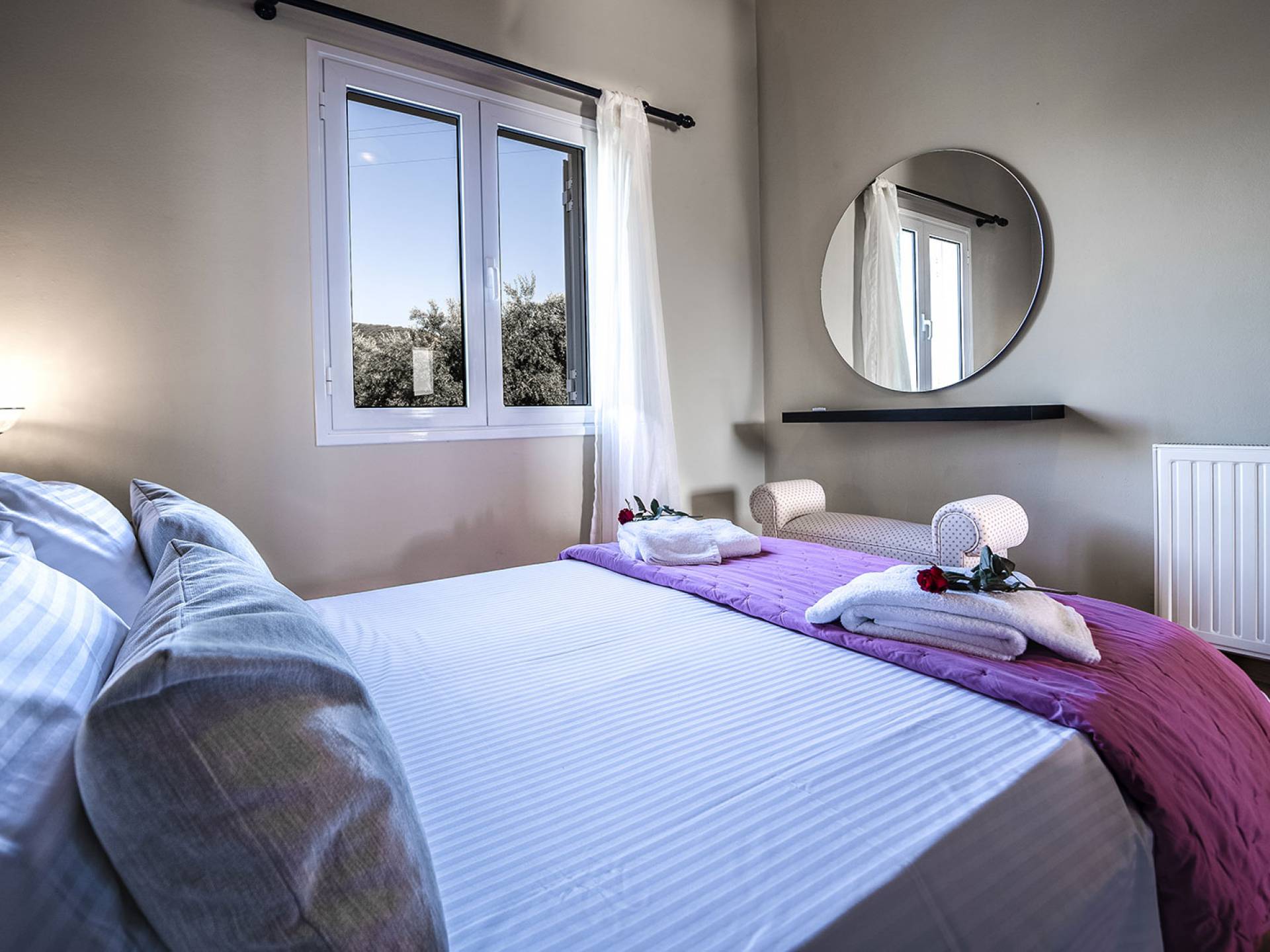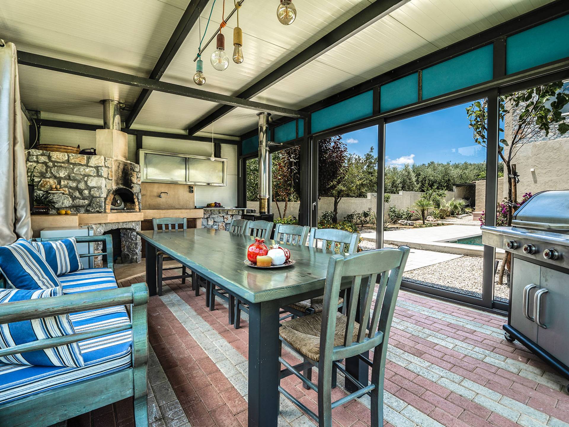 Au 1er étage de la maison, il y a 2 vérandas dont la plus grande est une salle à manger où vous pourrez prendre votre petit déjeuner, avec vue mer et montagne illimitée. Dans le magnifique jardin paysager de la villa, il y a une piscine de 35 m² avec une douche extérieure et une cuisine entièrement équipée avec une table à manger pouvant accueillir 10 personnes. Il y a aussi un four à bois traditionnel. La villa dispose également de 3 télévisions à écran plat, dont une smart tv avec satellite de 50 pouces. Les chambres de la villa sont climatisées, avec wi-fi, ainsi que deux cheminées pouvant contenir. Toutes les couches sont orthopédiques et hypoallergéniques, ainsi qu'une sélection d'oreillers. La villa dispose également d'une piscine privée pouvant être chauffée sur demande. À côté de la villa, il y a un jardin biologique, où vous pouvez visiter et ramasser de nombreuses sortes de légumes frais. Petronila Villa Chania est à seulement 1 km de la plage la plus proche.