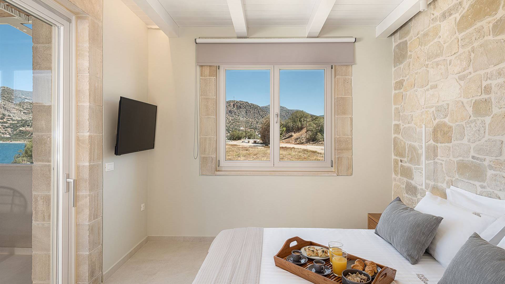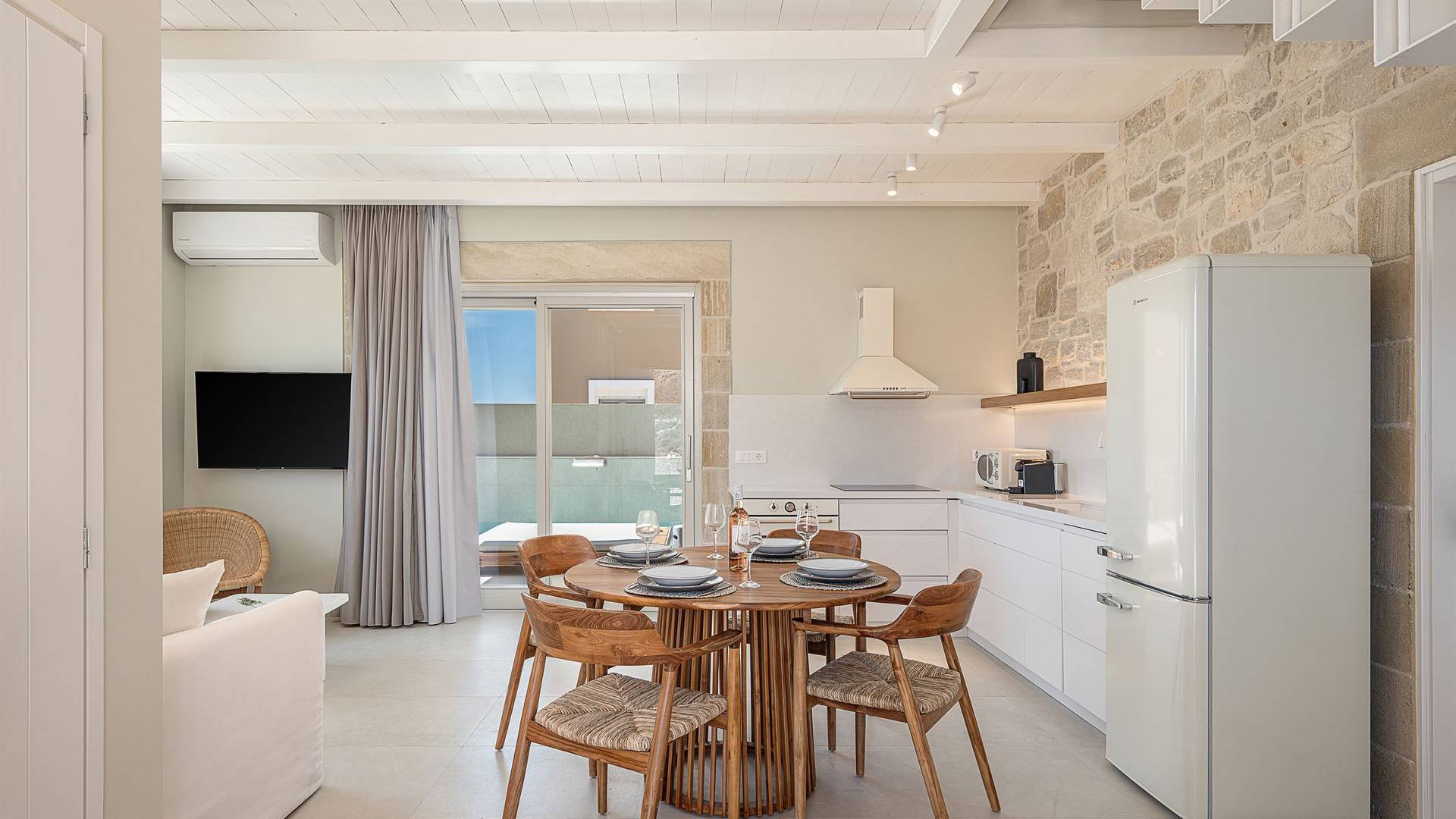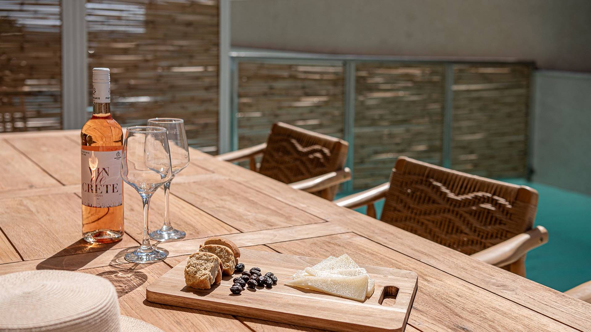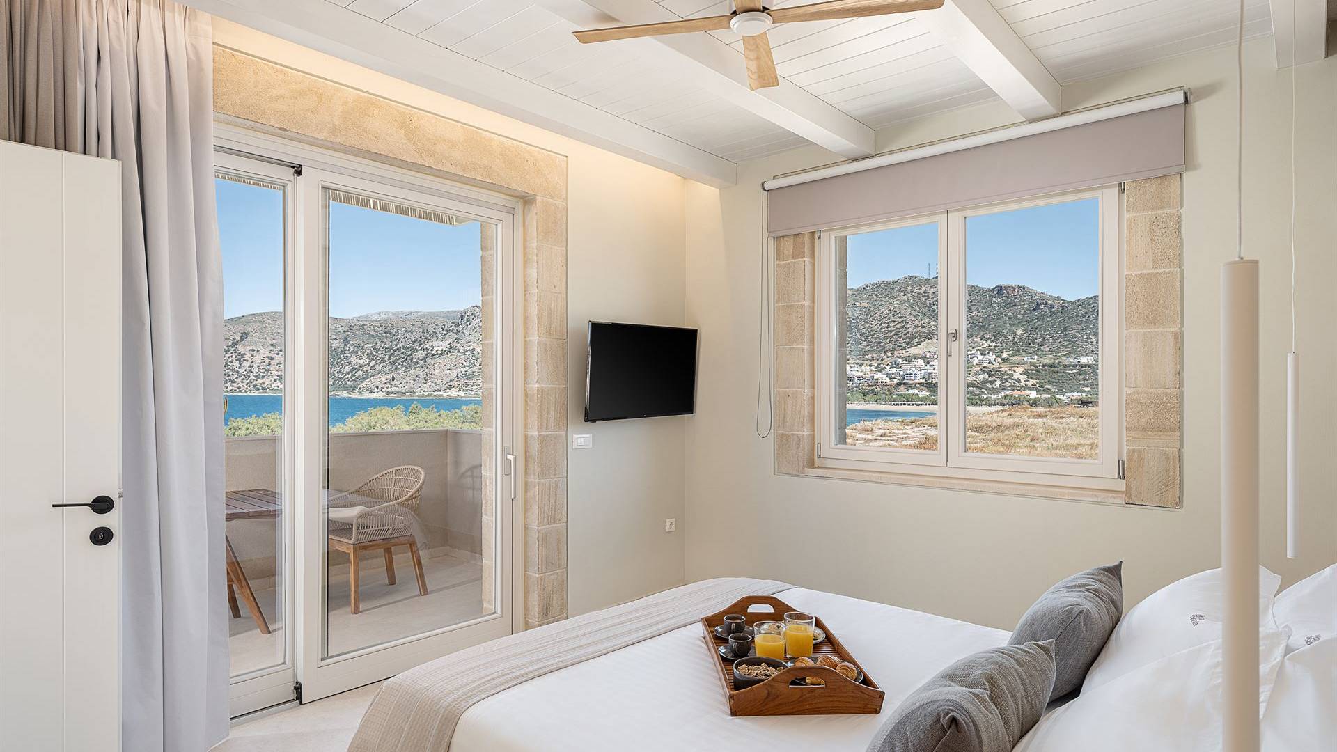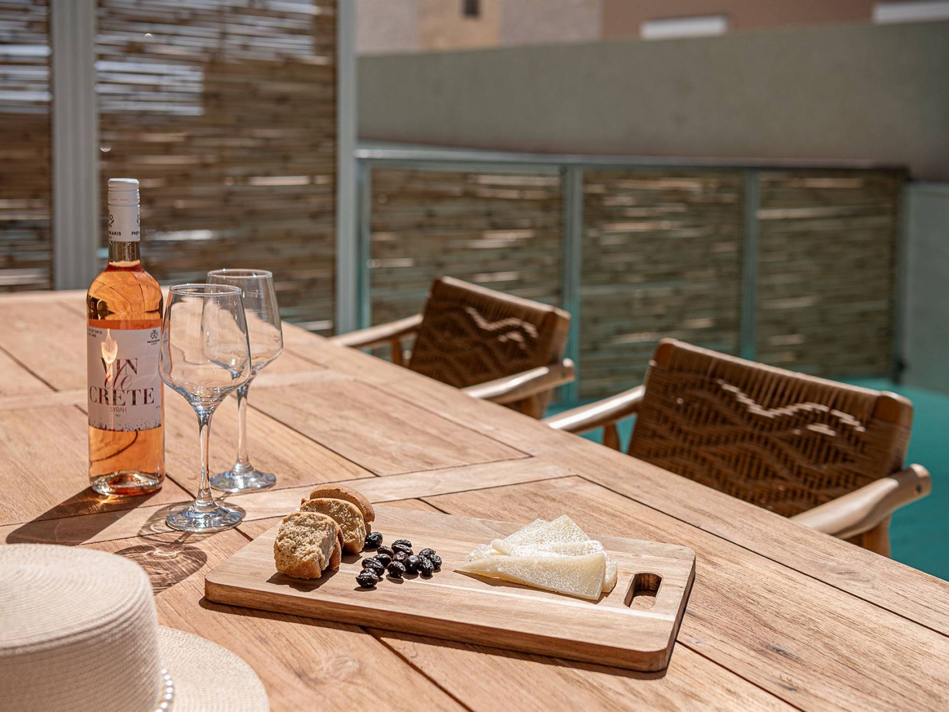 À l'intérieur, l'artisanat crétois traditionnel s'entremêle harmonieusement au design moderne, offrant un mélange harmonieux de confort et d'élégance qui honore la splendeur naturelle qui nous entoure. De vastes espaces de vie ornés de grandes fenêtres fusionnent harmonieusement le magnifique paysage marin avec votre retraite, favorisant une atmosphère sereine propice au rajeunissement du corps et de l'esprit.