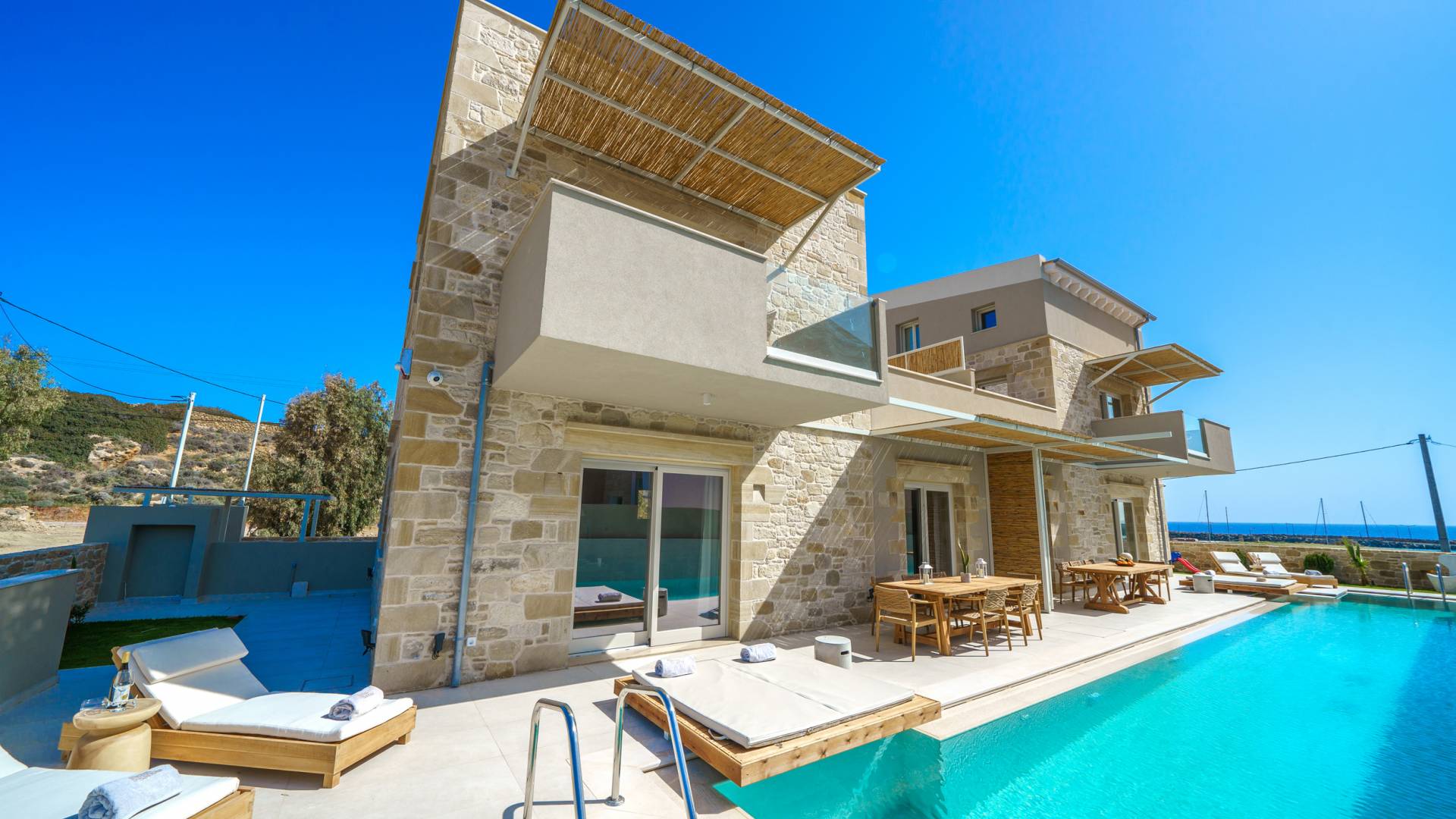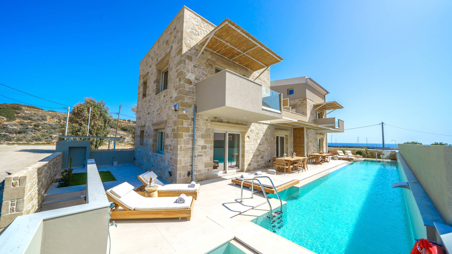 Découvrez un sanctuaire de raffinement et de détente à la Pietra di Sabbia Villa Crete à Palaiochora. Pietra di Sabbia Villa Crete est un complexe luxueusement construit de 2 villas séparées et autonomes, louez-le comme une seule. Nichées au milieu du paisible paysage crétois, nos deux villas en pierre méticuleusement conçues incarnent l'excellence architecturale et une vie opulente. Chaque villa dégage son propre charme distinctif, offrant une évasion sans précédent avec vue sur l'impressionnante mer de Libye.