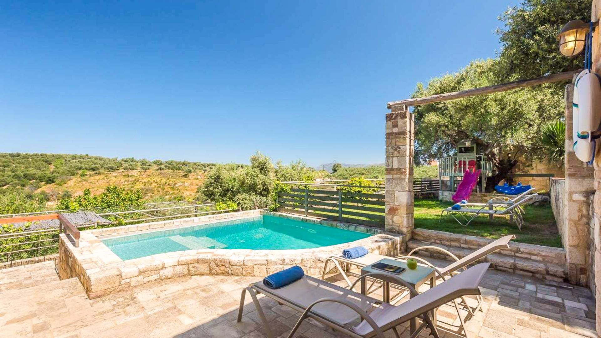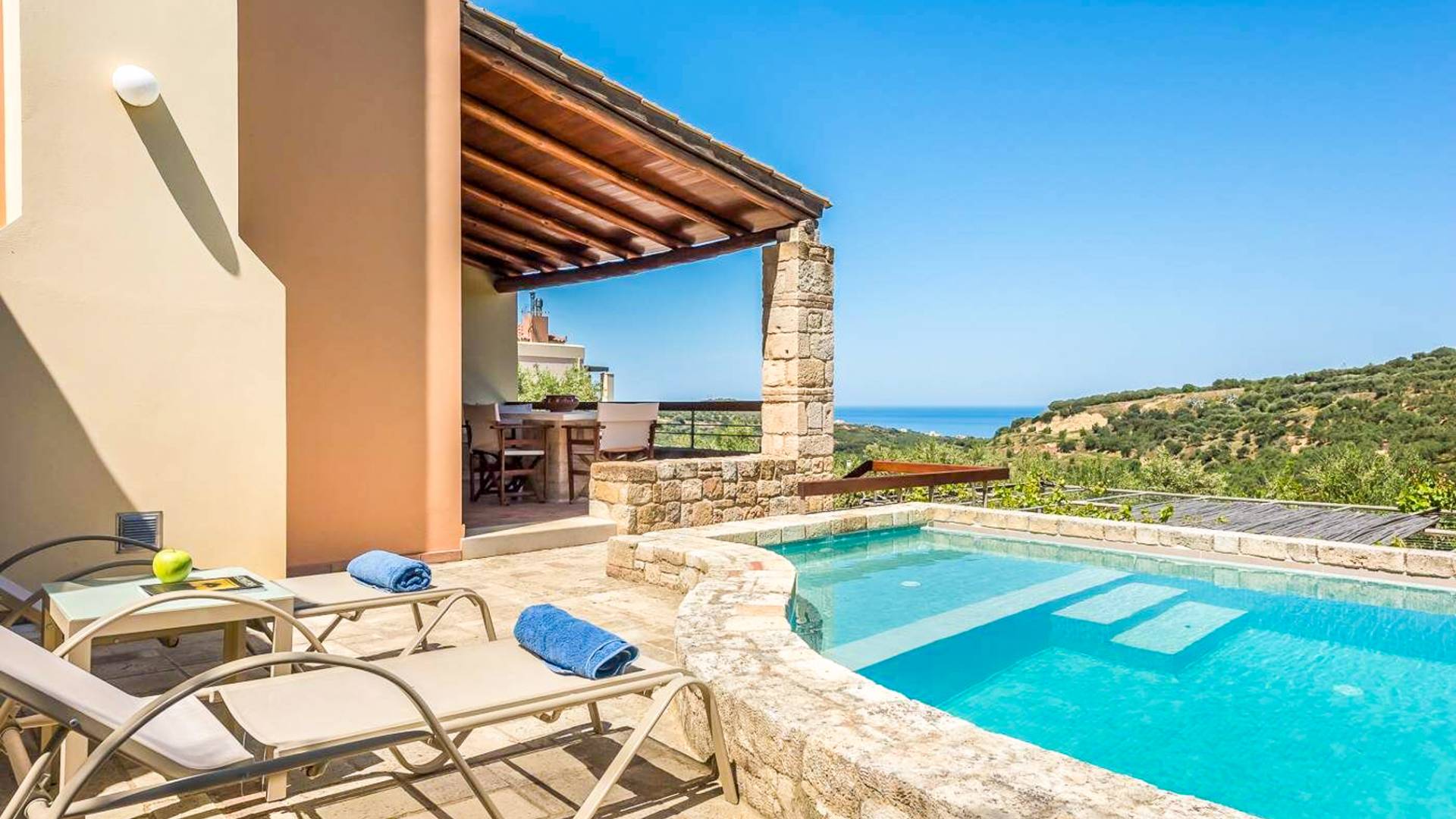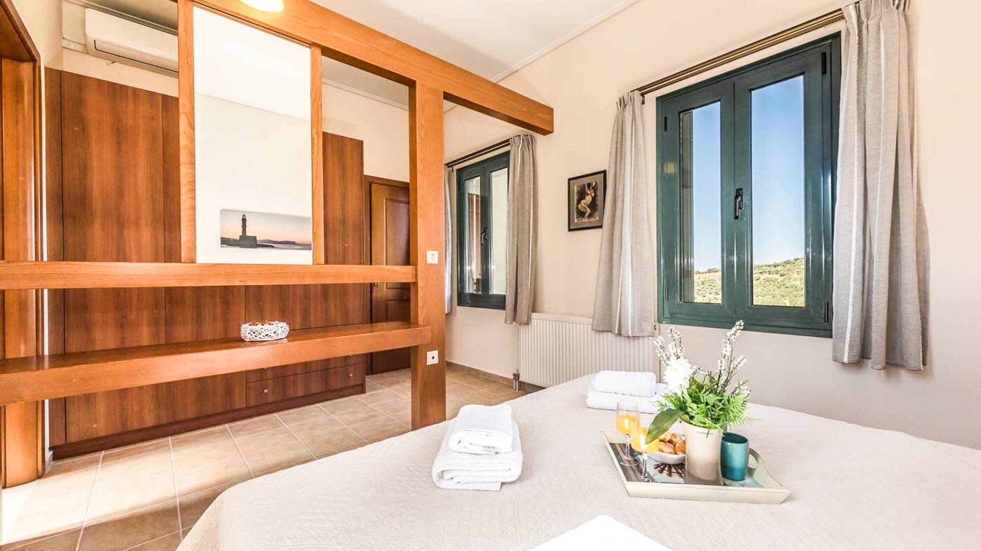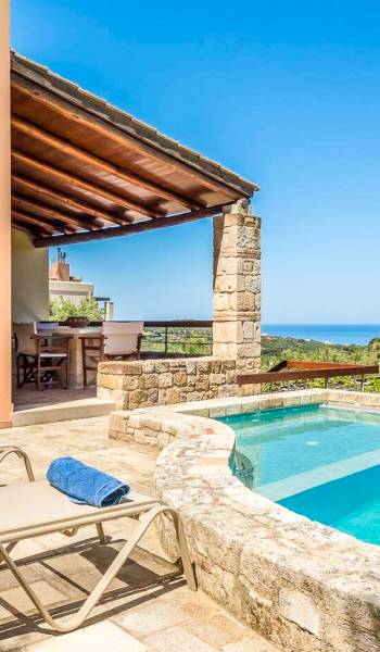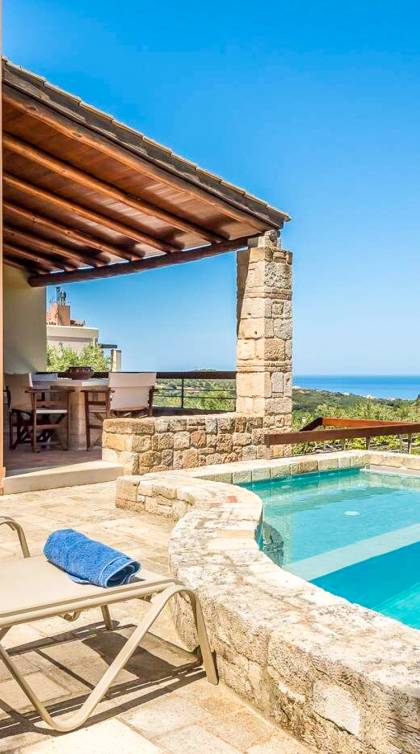 « Scenery Villas » est un complexe de quatre villas autonomes dans la région du Haut Stalos dans la ville de La Canée. Paysage 4 La Villa Chania est construite à seulement 7 km du pittoresque port vénitien et du centre-ville, dans un bosquet de 10 acres, dans le respect absolu et l'harmonisation avec la nature. Combinant une esthétique et une fonctionnalité impeccables, c'est définitivement un endroit qui fait que les clients se sentent spéciaux. La spécificité de ces villas est que bien qu'elles ne soient qu'à 2,5 km de la plage la plus proche, des restaurants et des grands axes routiers, les visiteurs ont la possibilité de profiter de la sérénité absolue et du calme de la nature, tout en ayant une vue pittoresque sur la mer et la montagne.