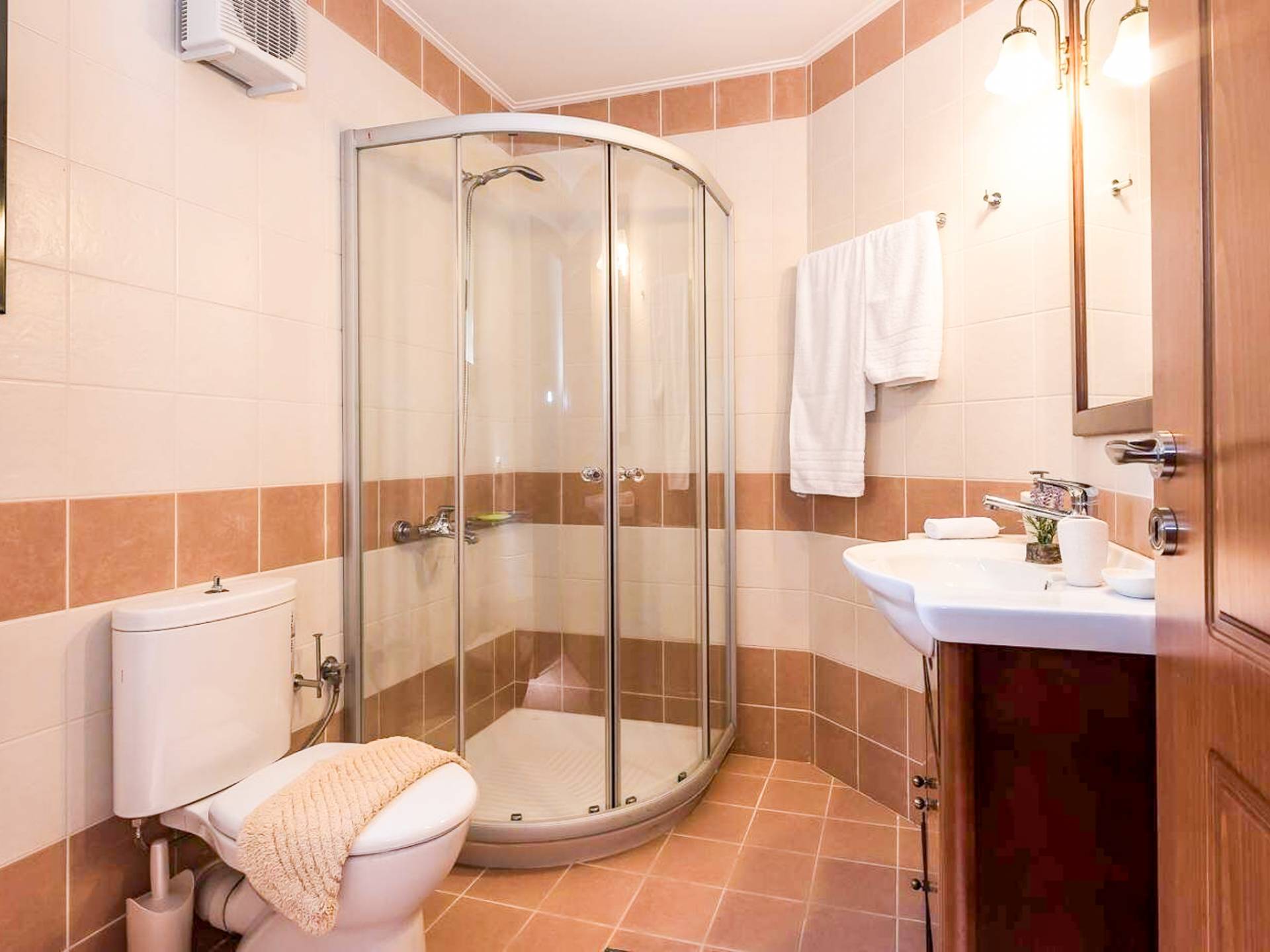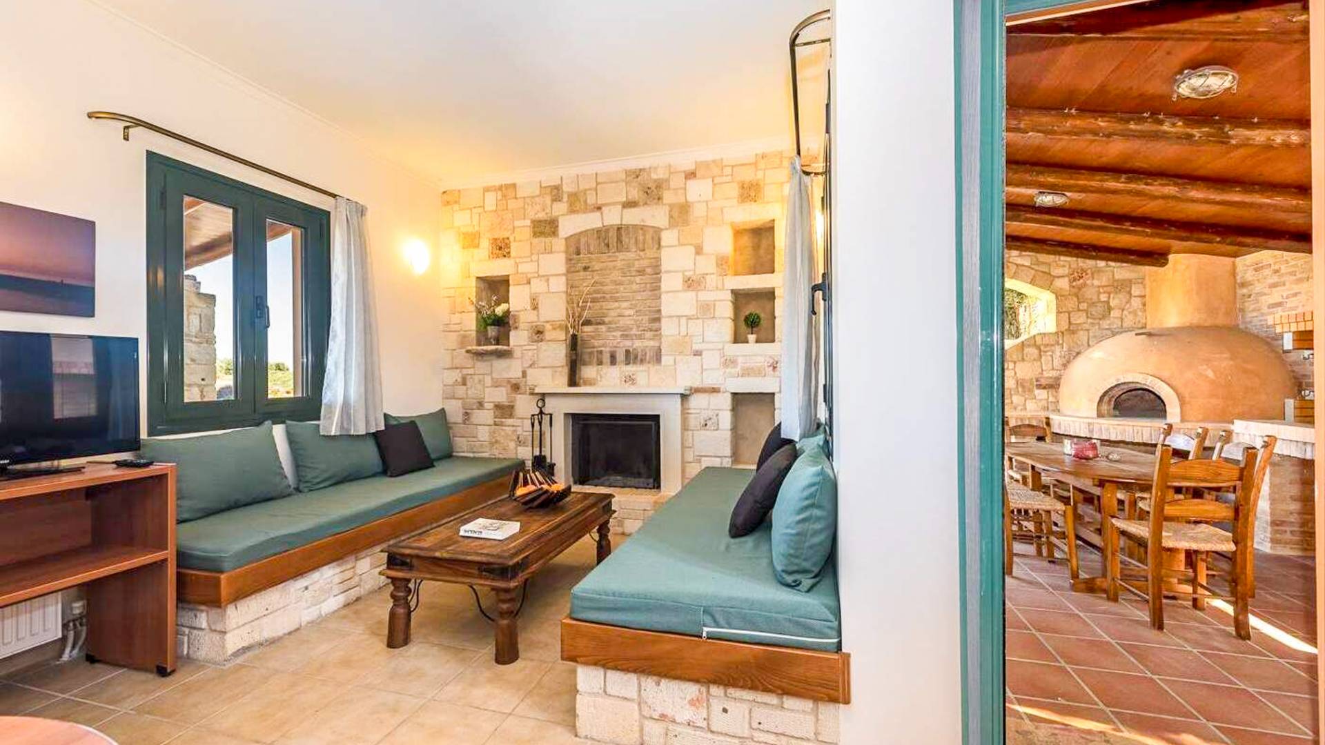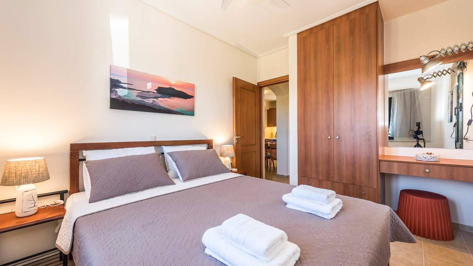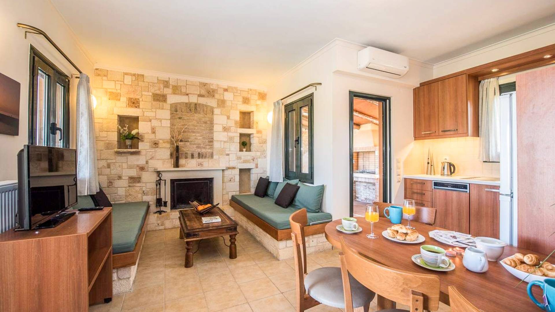Scenery 4 Villa est la villa la plus récente du complexe. Idéal pour les petits groupes, il peut accueillir jusqu'à cinq personnes et dispose de deux chambres et d'un coin bureau avec un lit simple. Paysage 4 La Villa Chania est divisée en deux étages et a une superficie totale de 115 m². Au rez-de-chaussée, nous avons le coin salon et cuisine, une chambre et une salle de bain avec douche. Au premier étage se trouve la chambre principale avec salle de bain en suite avec baignoire et le coin bureau avec le canapé-lit.