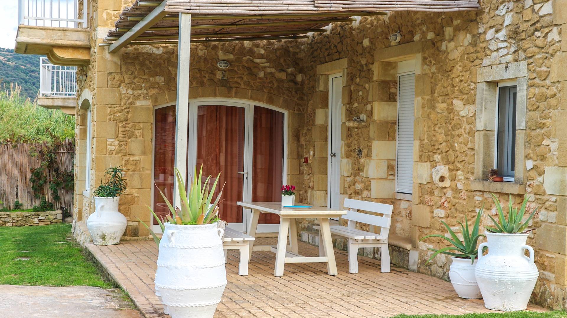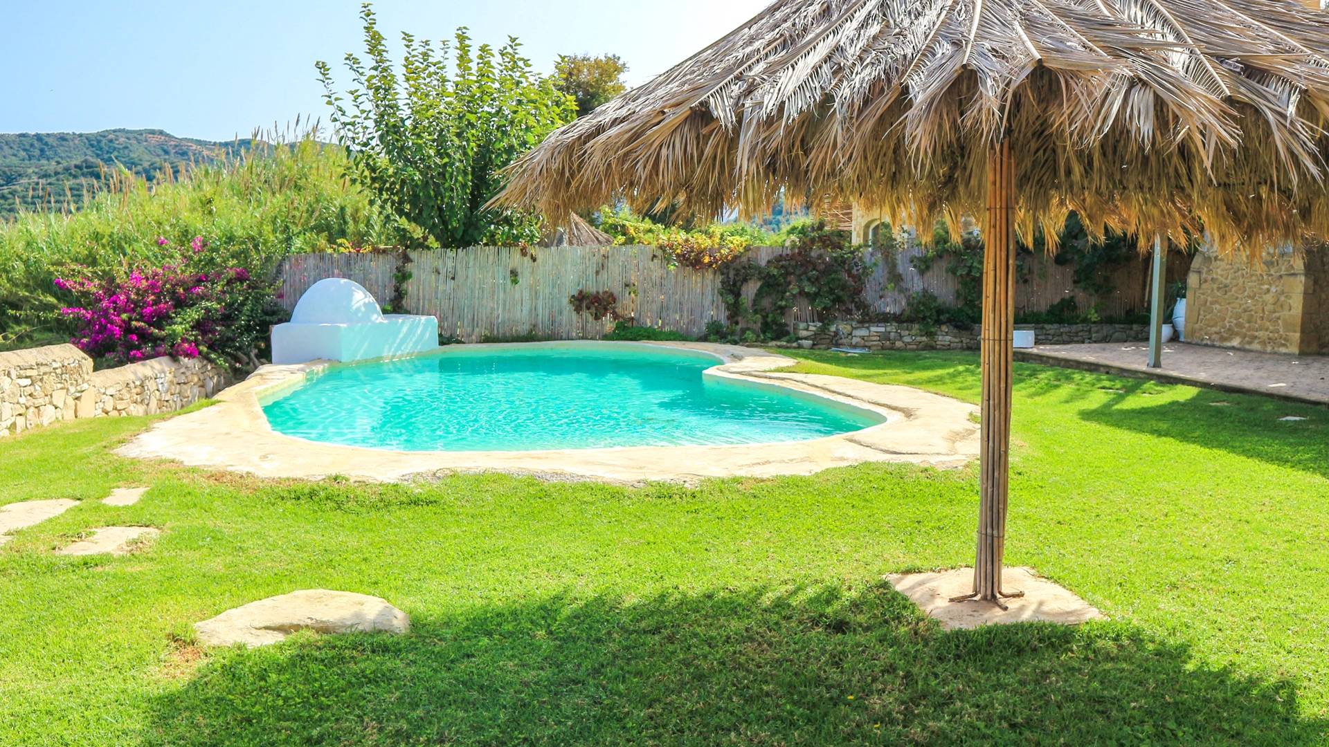 La villa Sonio se compose de trois chambres, de deux salles de bains, d'une cuisine et d'un coin repas avec deux lits ou canapés. Avec son ameublement frais et pratique, la villa convient à une famille jusqu'à 8 personnes. Dans les espaces extérieurs privés, vous trouverez les piscines de 4X4 mètres de large et 1,5 mètre de profondeur, des transats, une grande pelouse, des salles à manger avec table et chaises et un barbecue traditionnel.