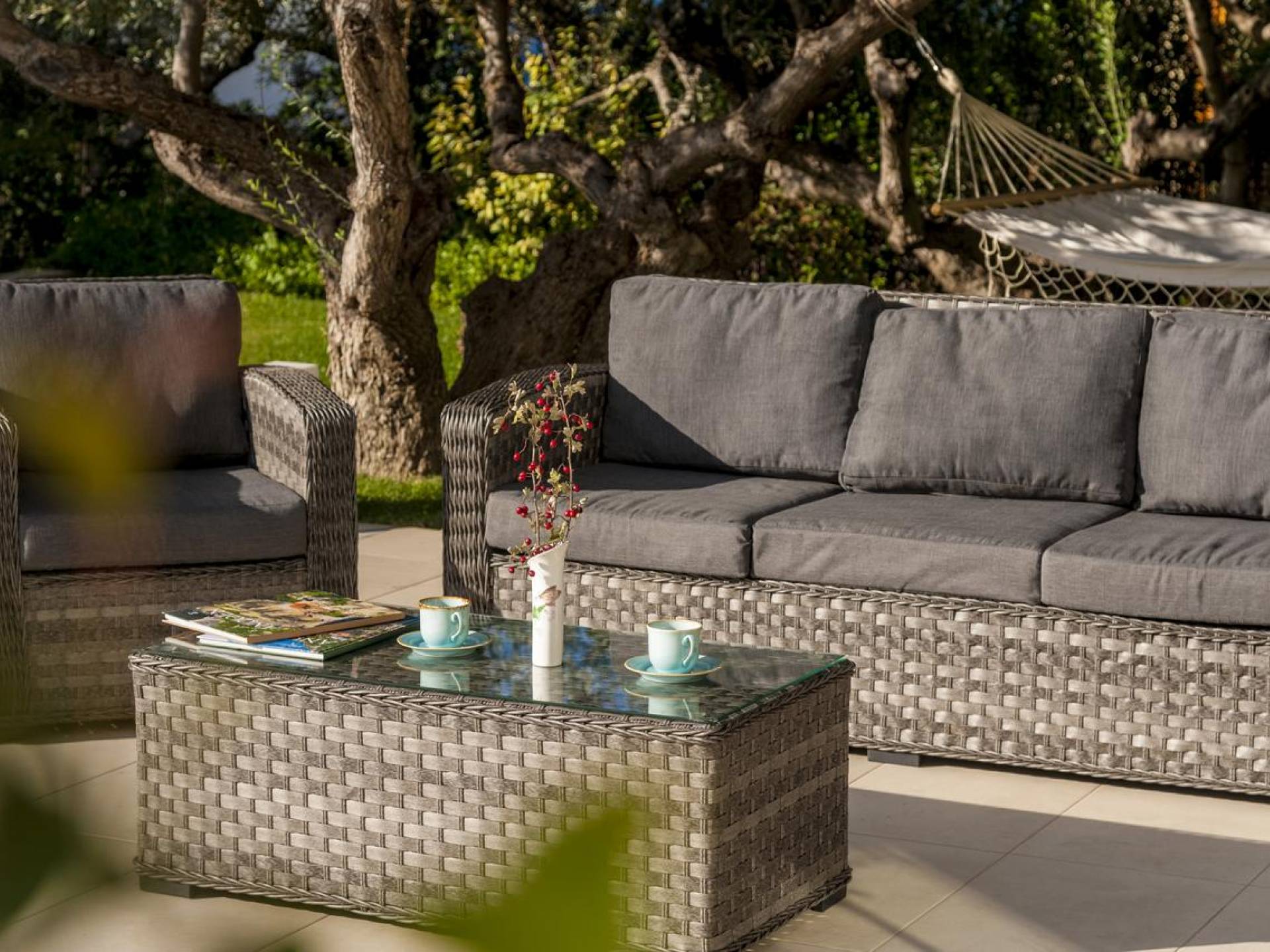 Bienvenue ! Veuillez garer votre voiture dans le parking spacieux et couvert. Entrez par la porte centrale. Des fleurs, des arbres et de l'herbe partout vous accueillent. L'olivier, arbre traditionnel de l'île, offre de l'ombre et de l'huile d'olive. Vous ne pouvez pas imaginer combien de produits peuvent être fabriqués à partir d'huile d'olive.